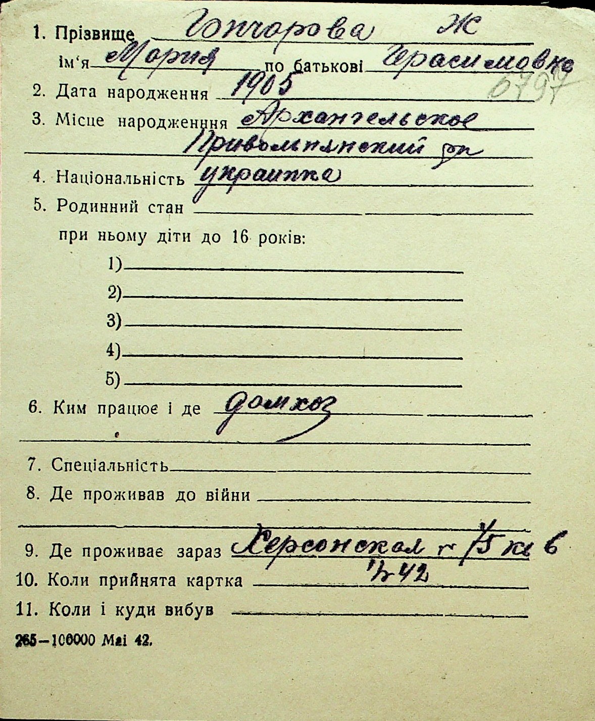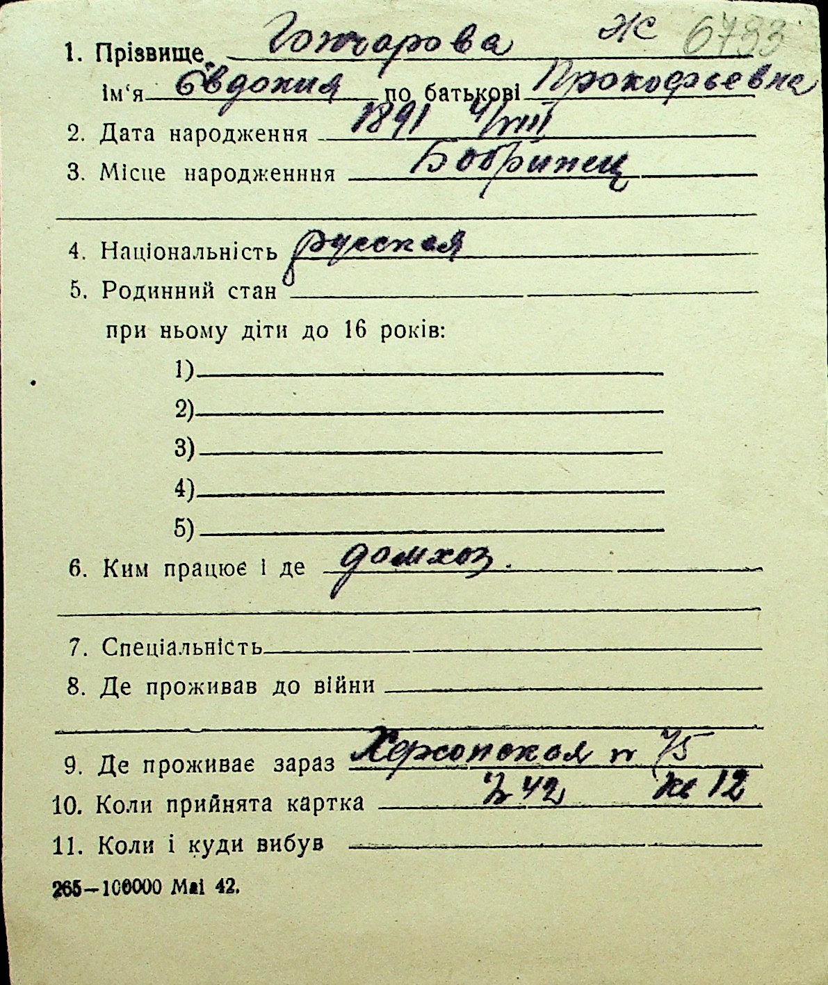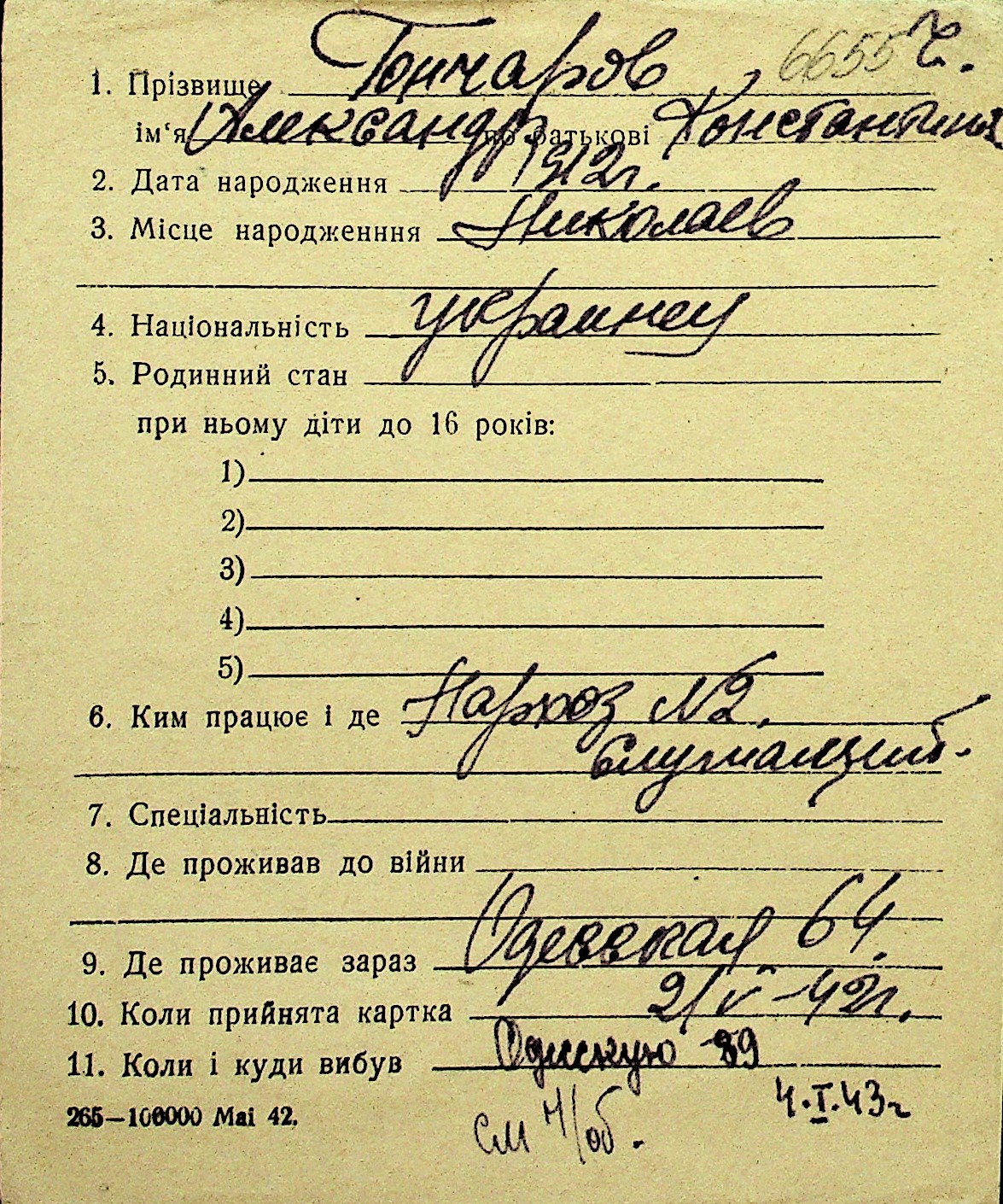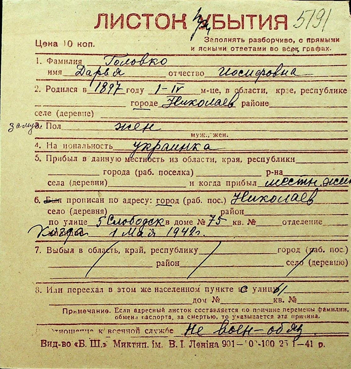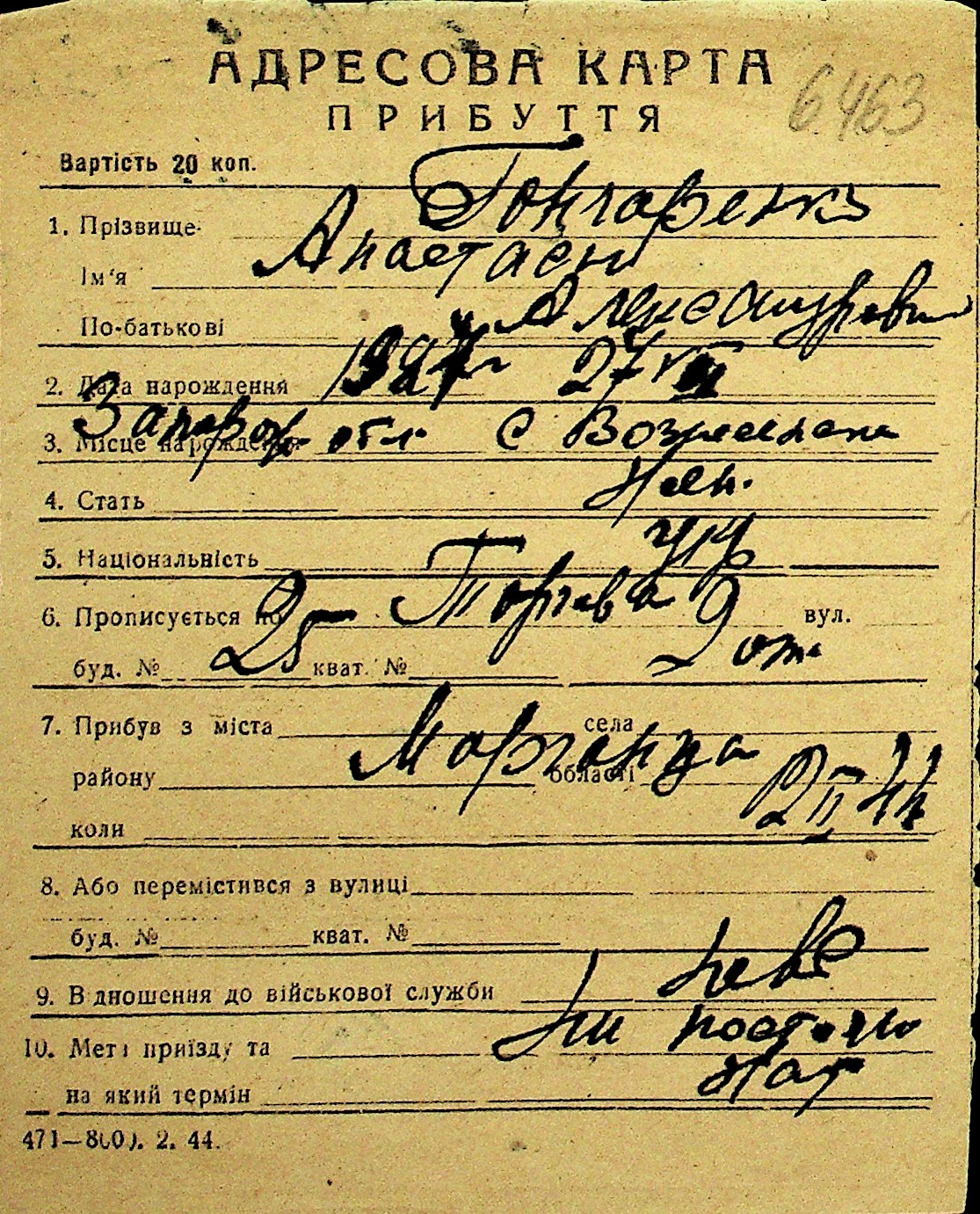 • • Перелік карток до фонду № Н-1016