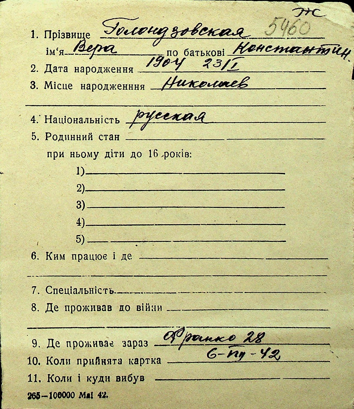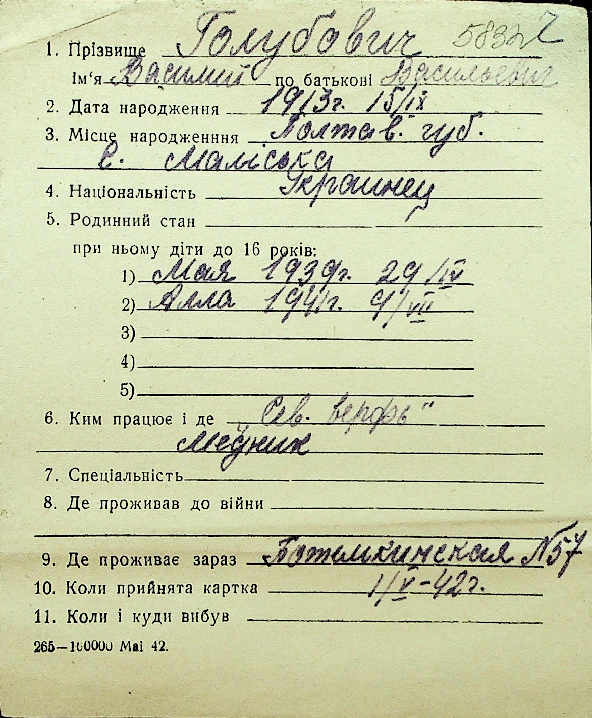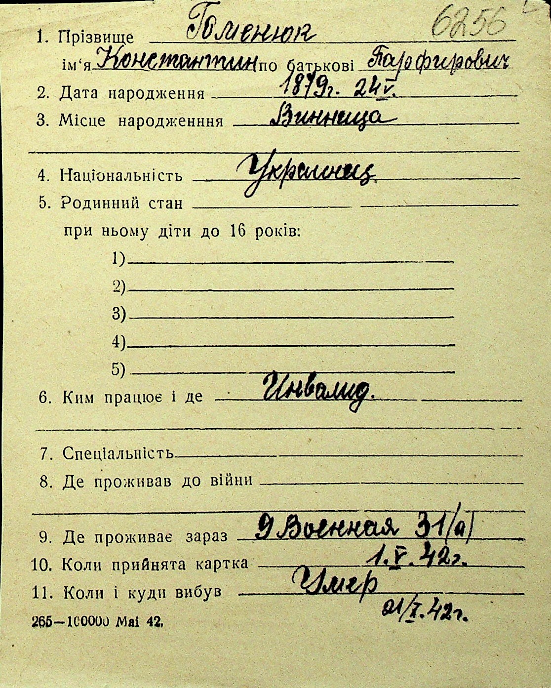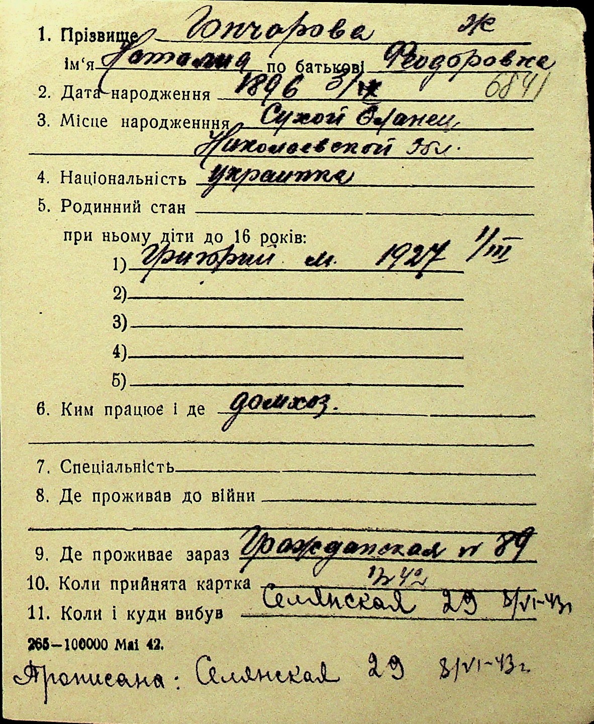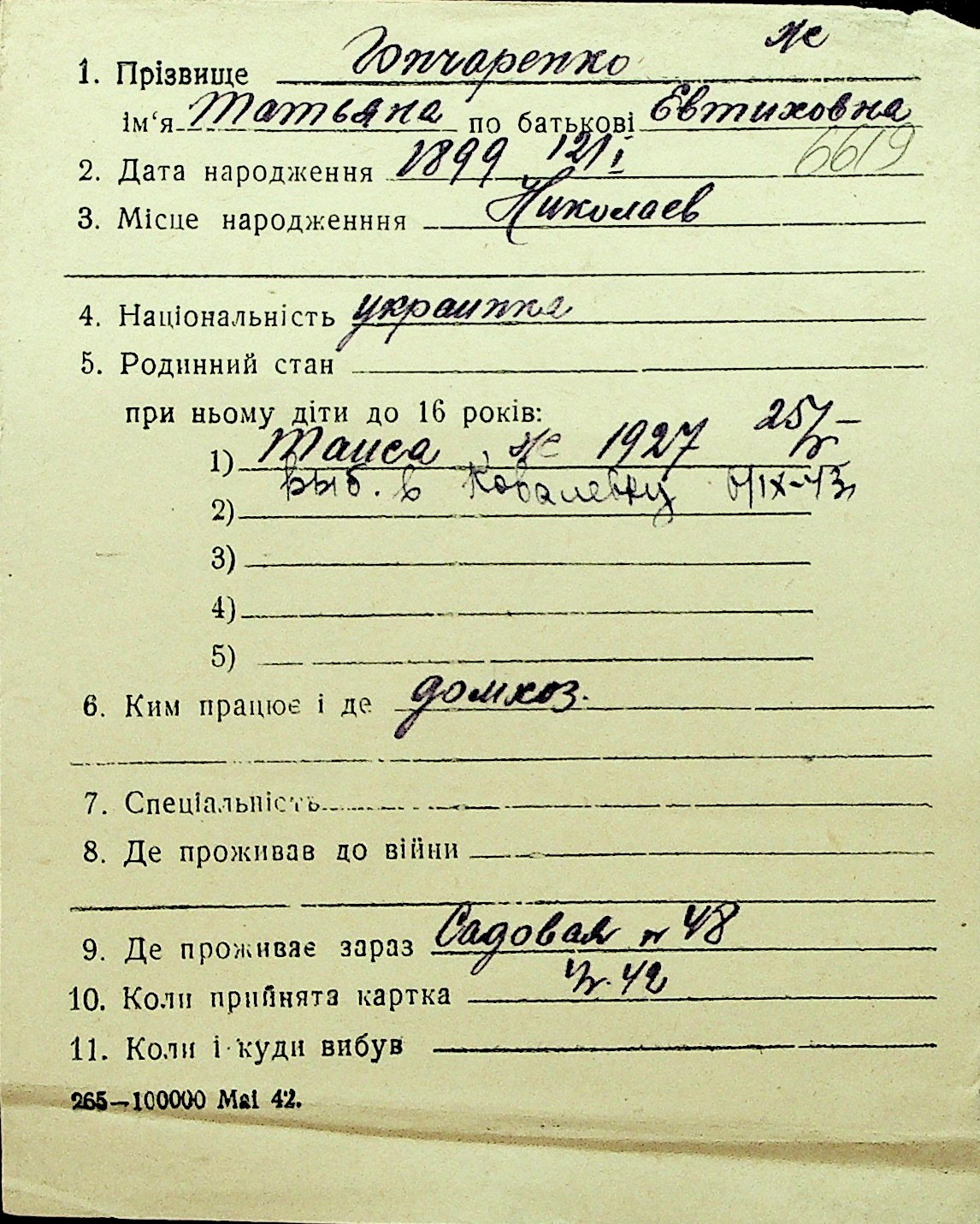 • • Перелік карток до фонду № Н-1016