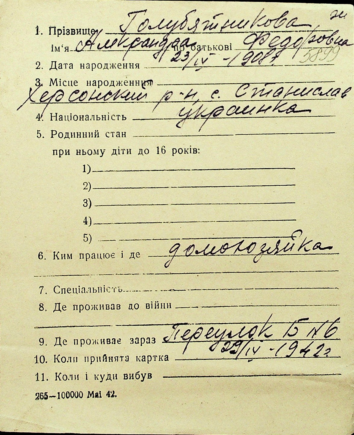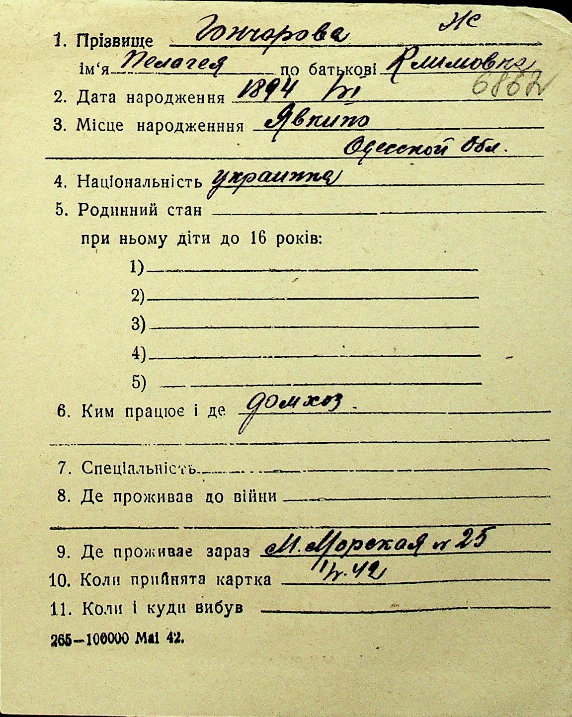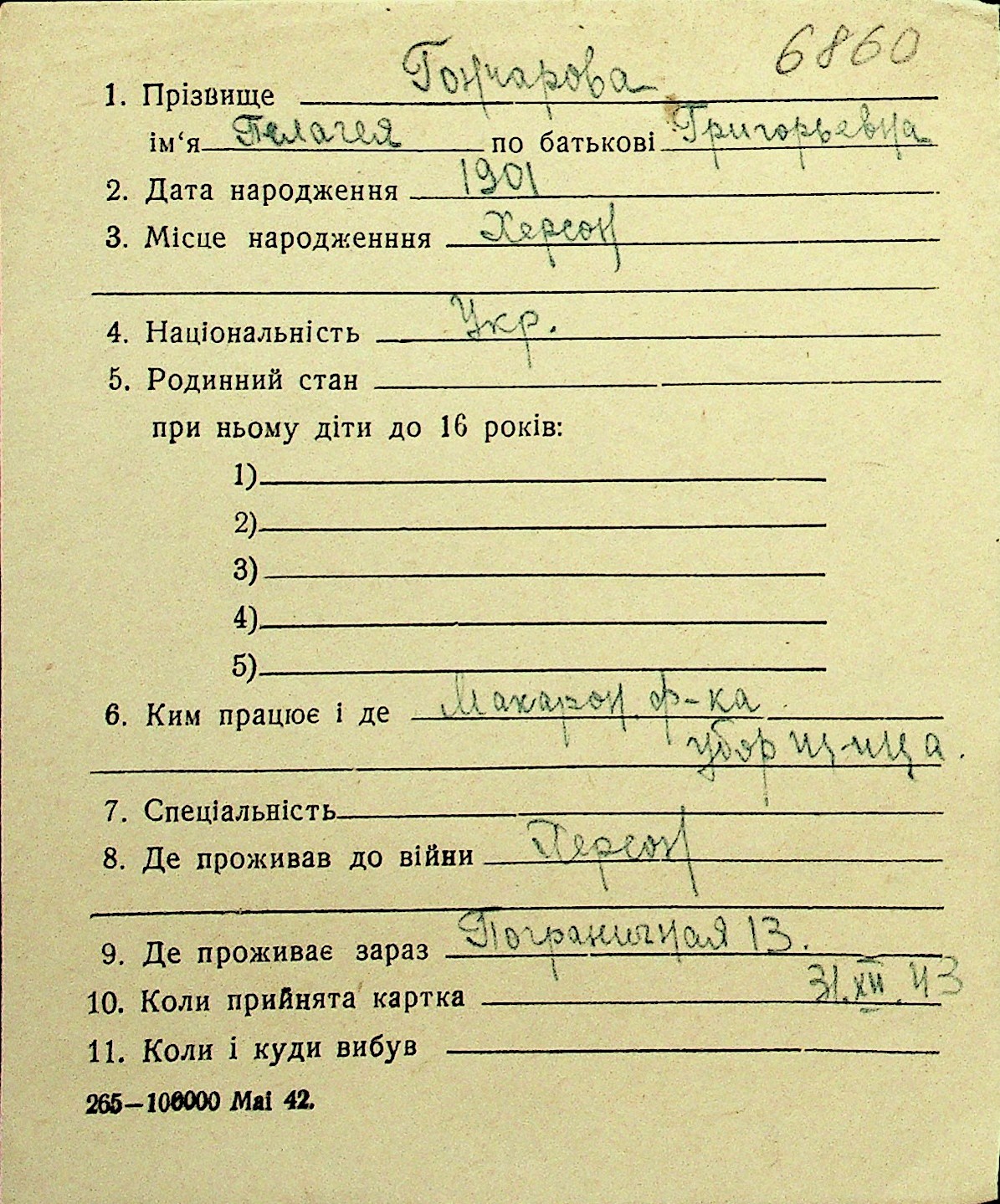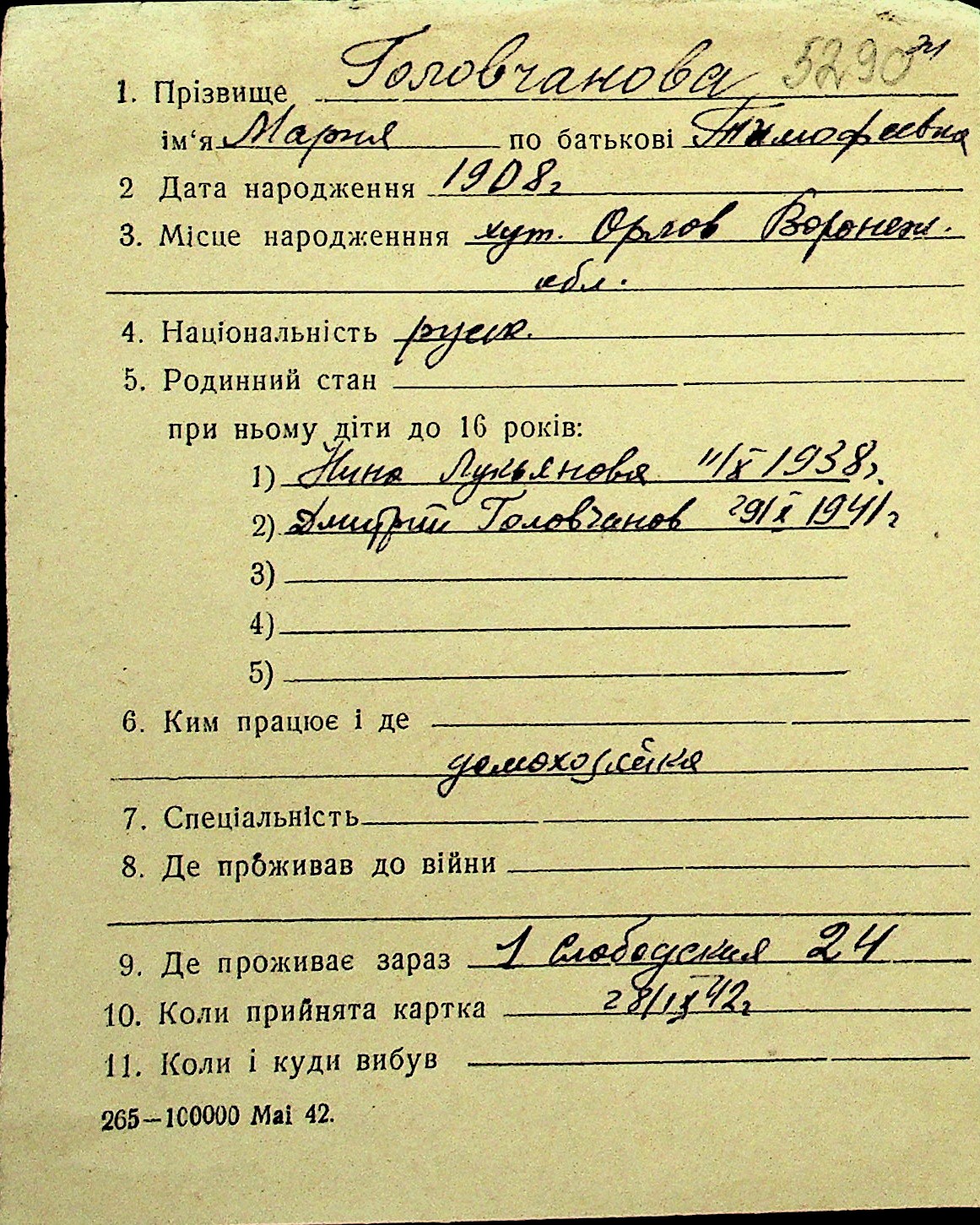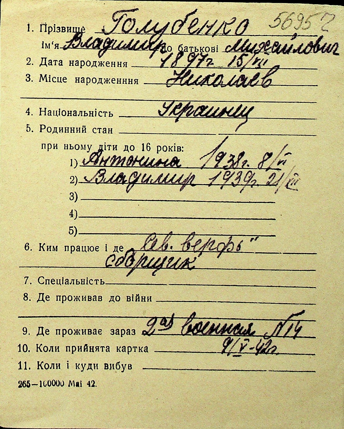 • • Перелік карток до фонду № Н-1016