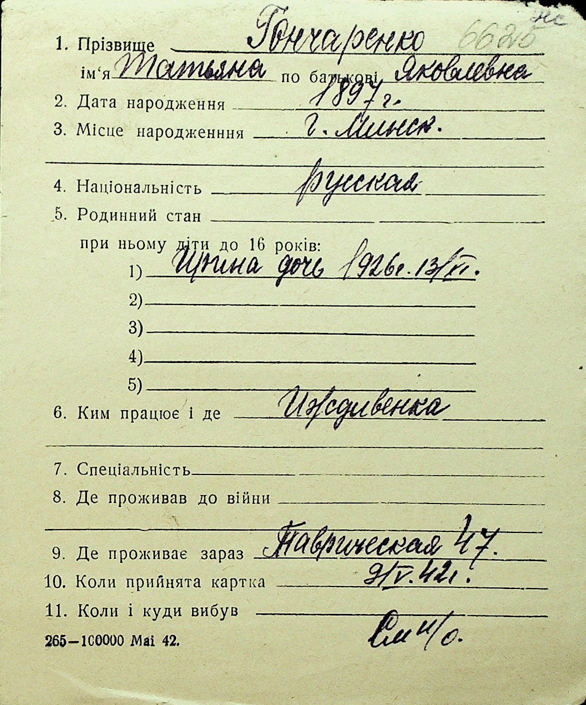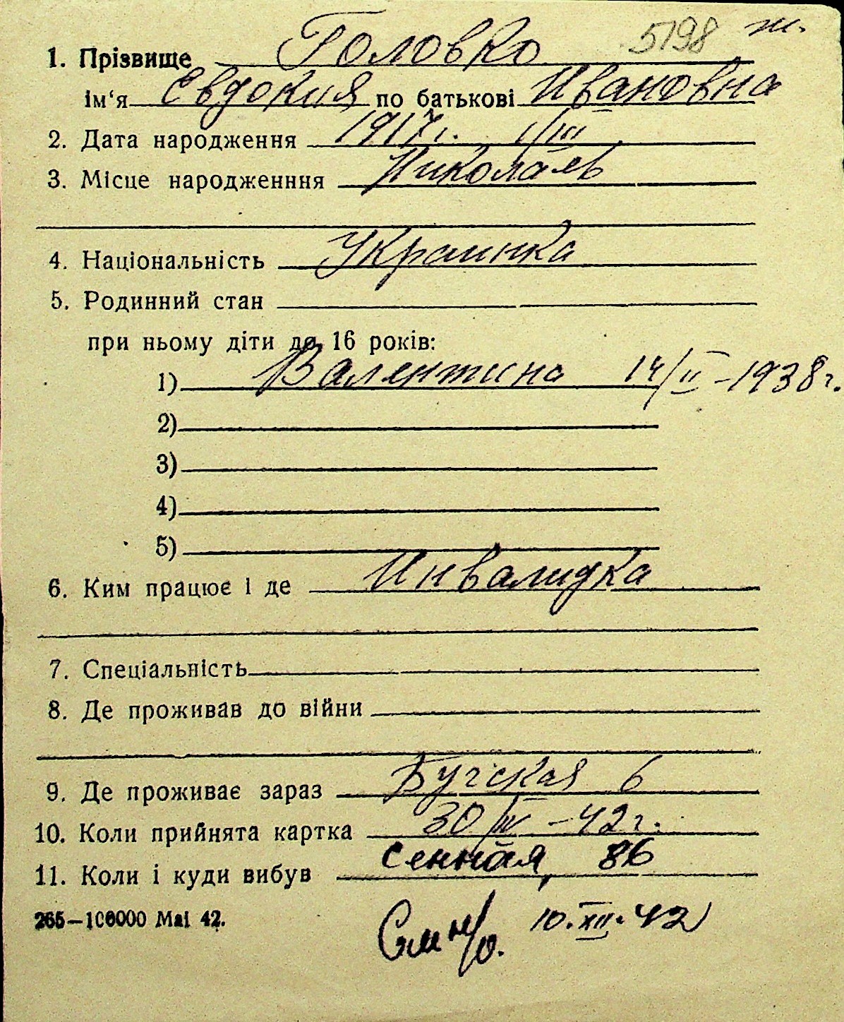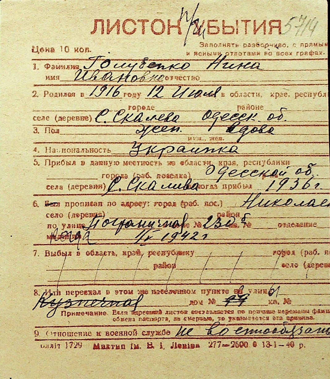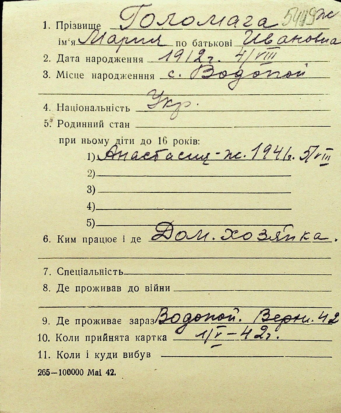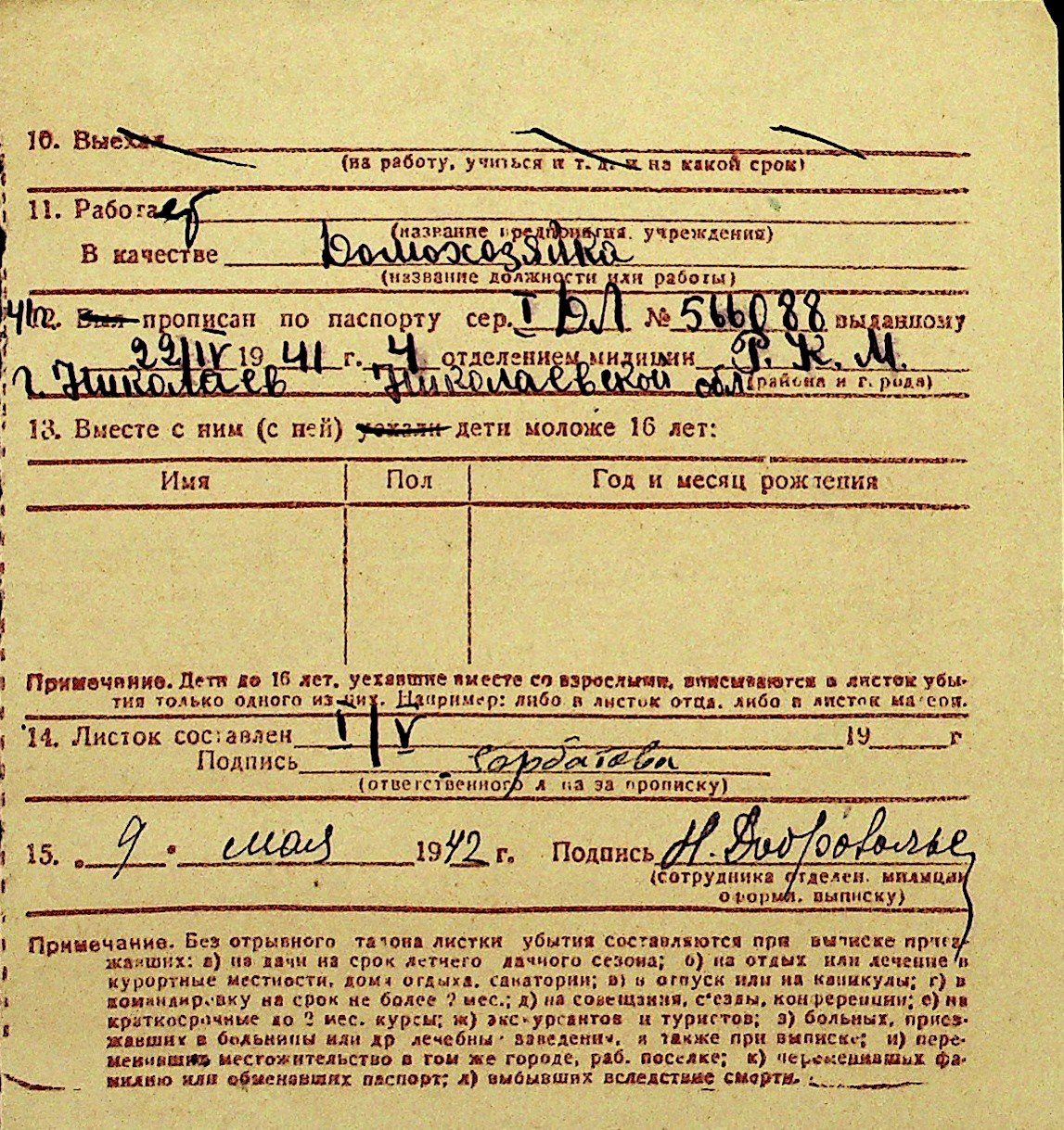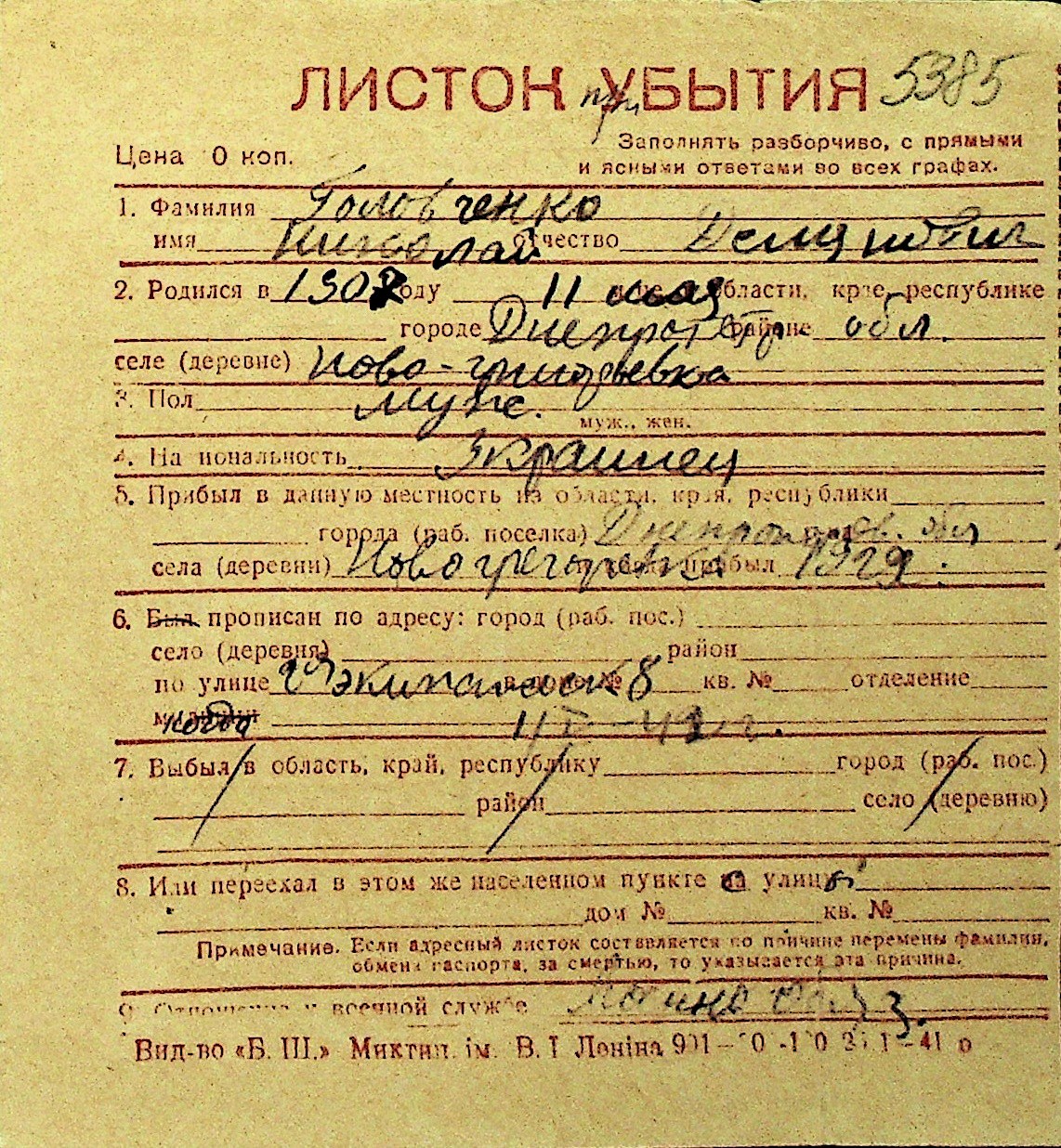 • • Перелік карток до фонду № Н-1016