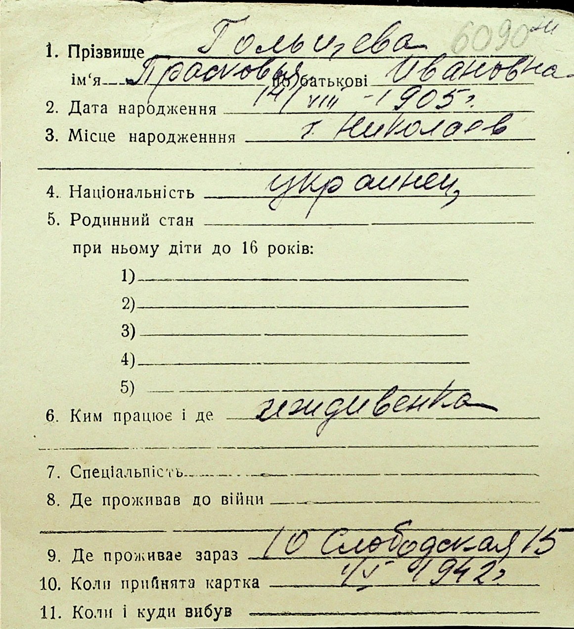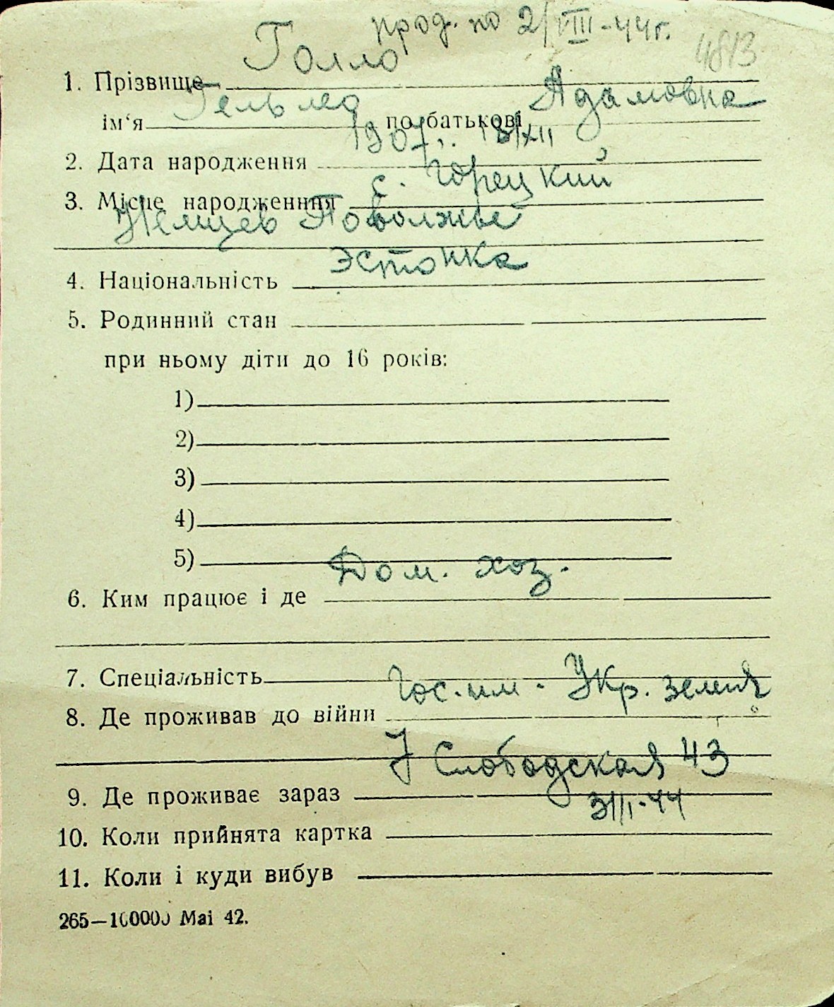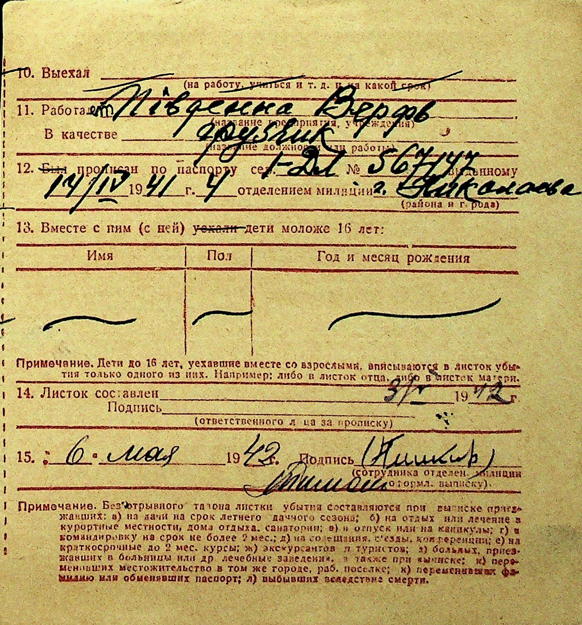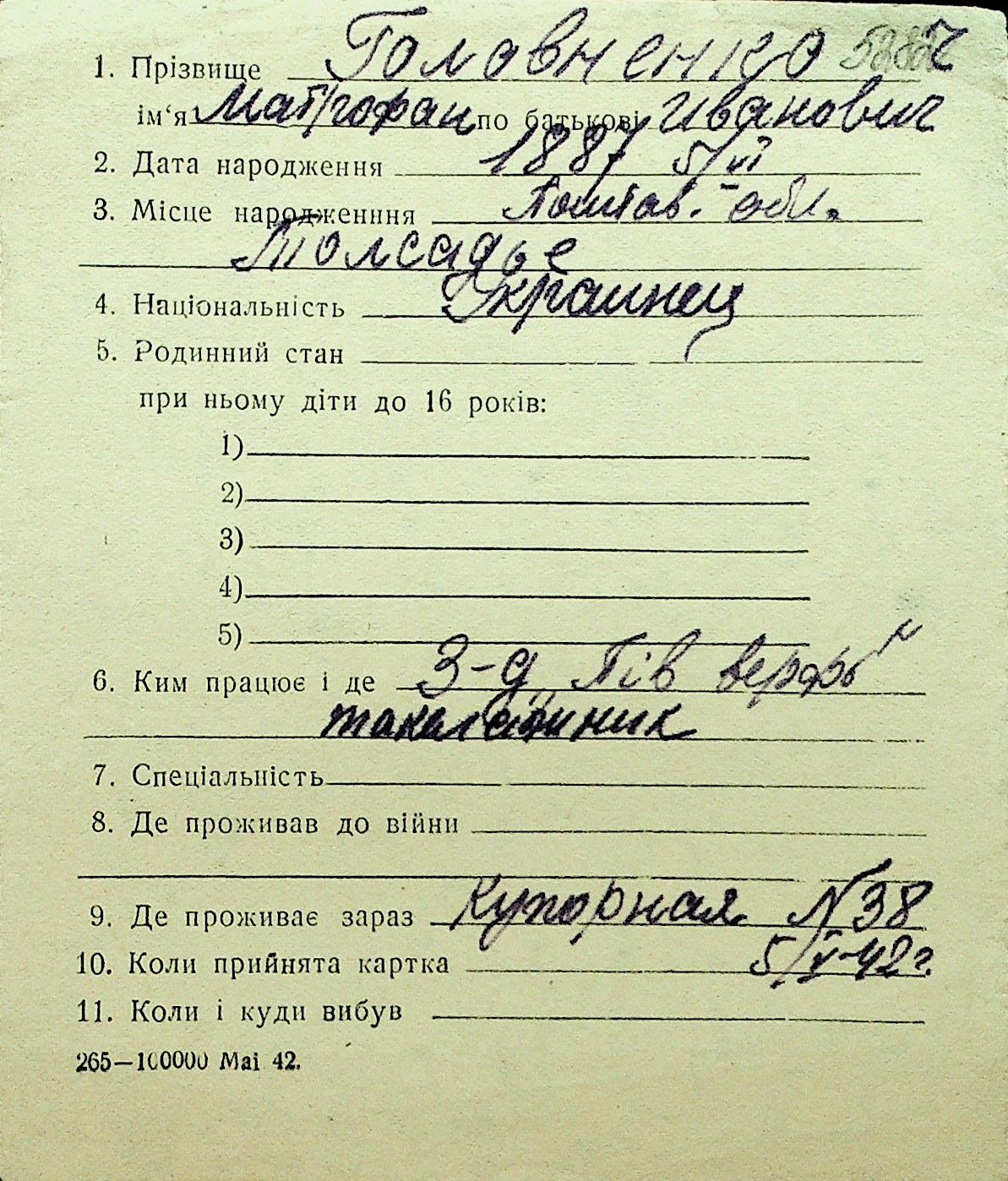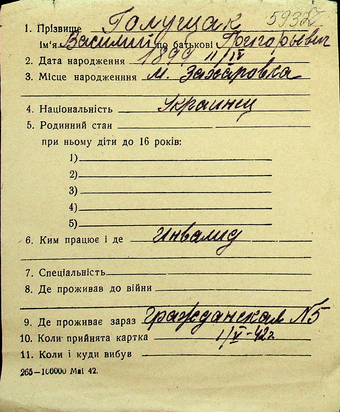 • • Перелік карток до фонду № Н-1016