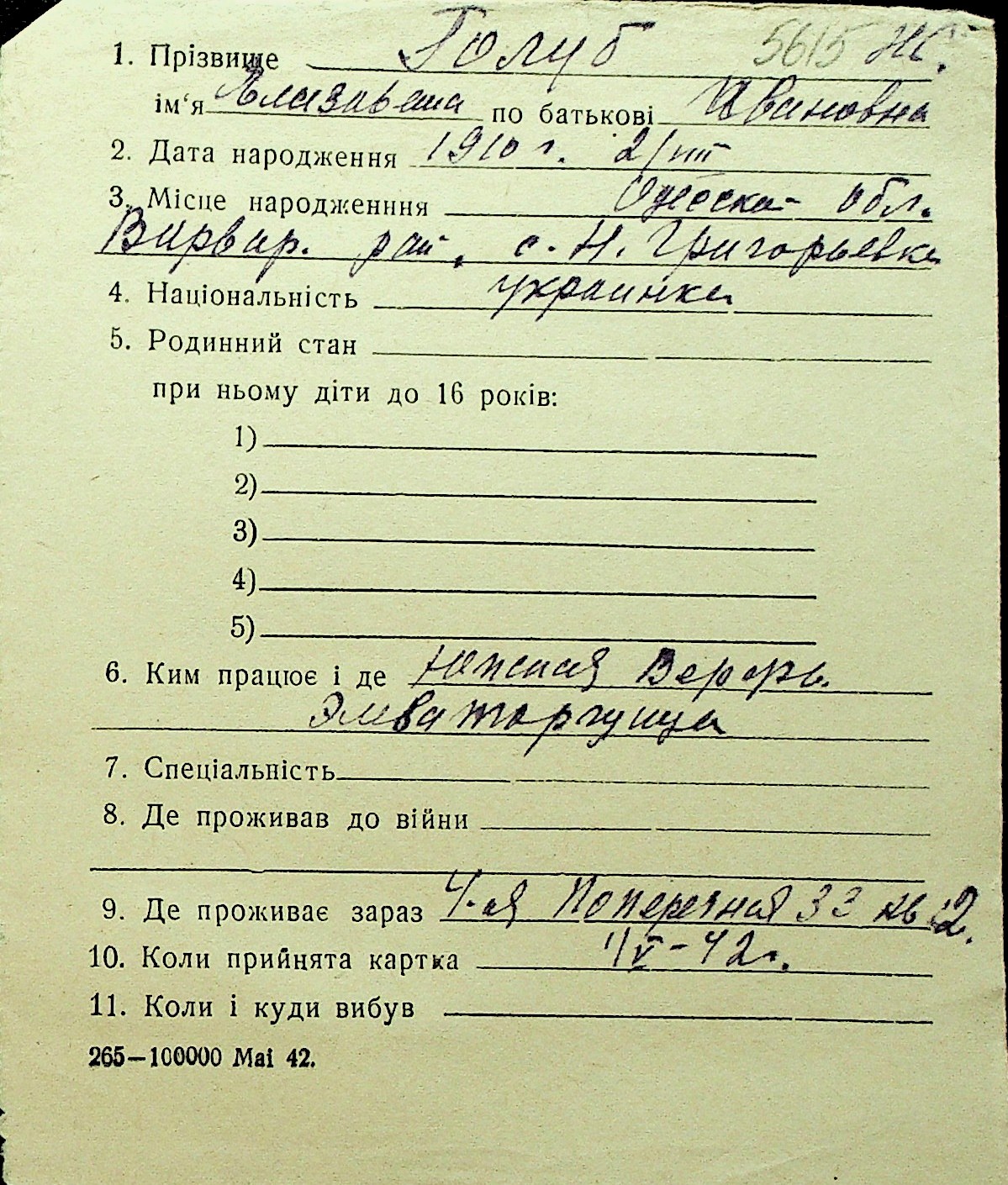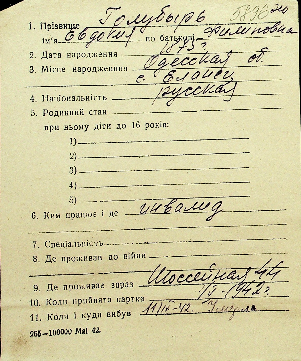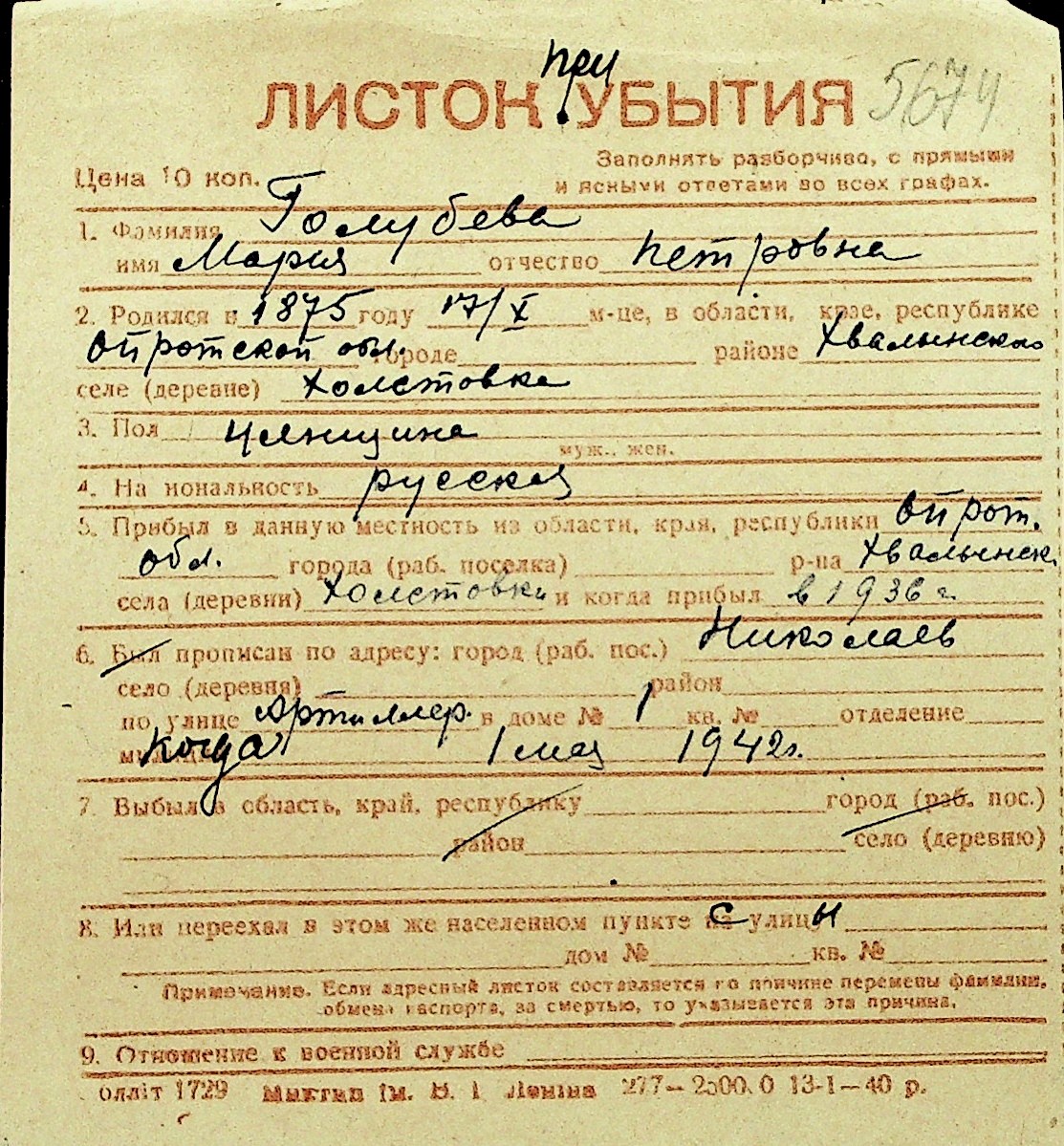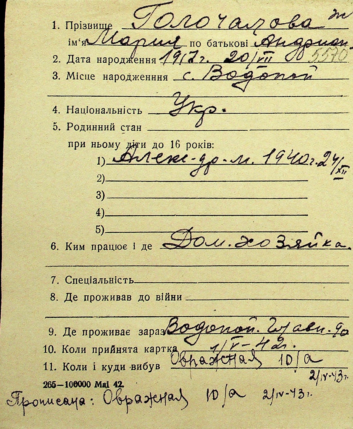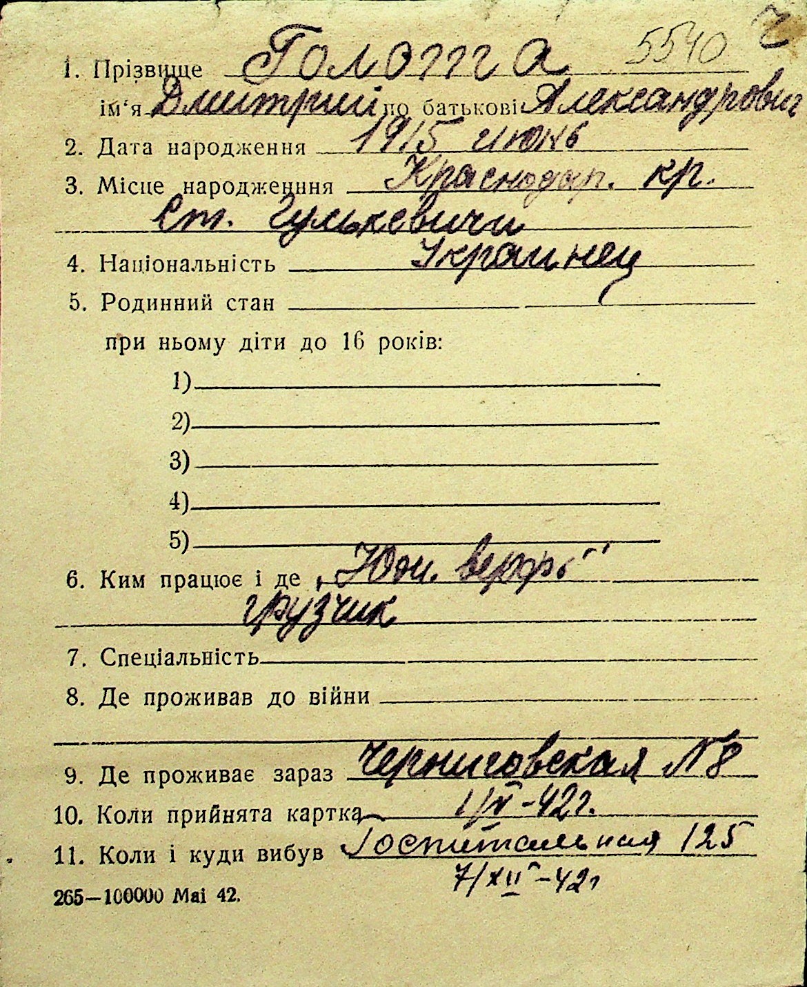• • Перелік карток до фонду № Н-1016