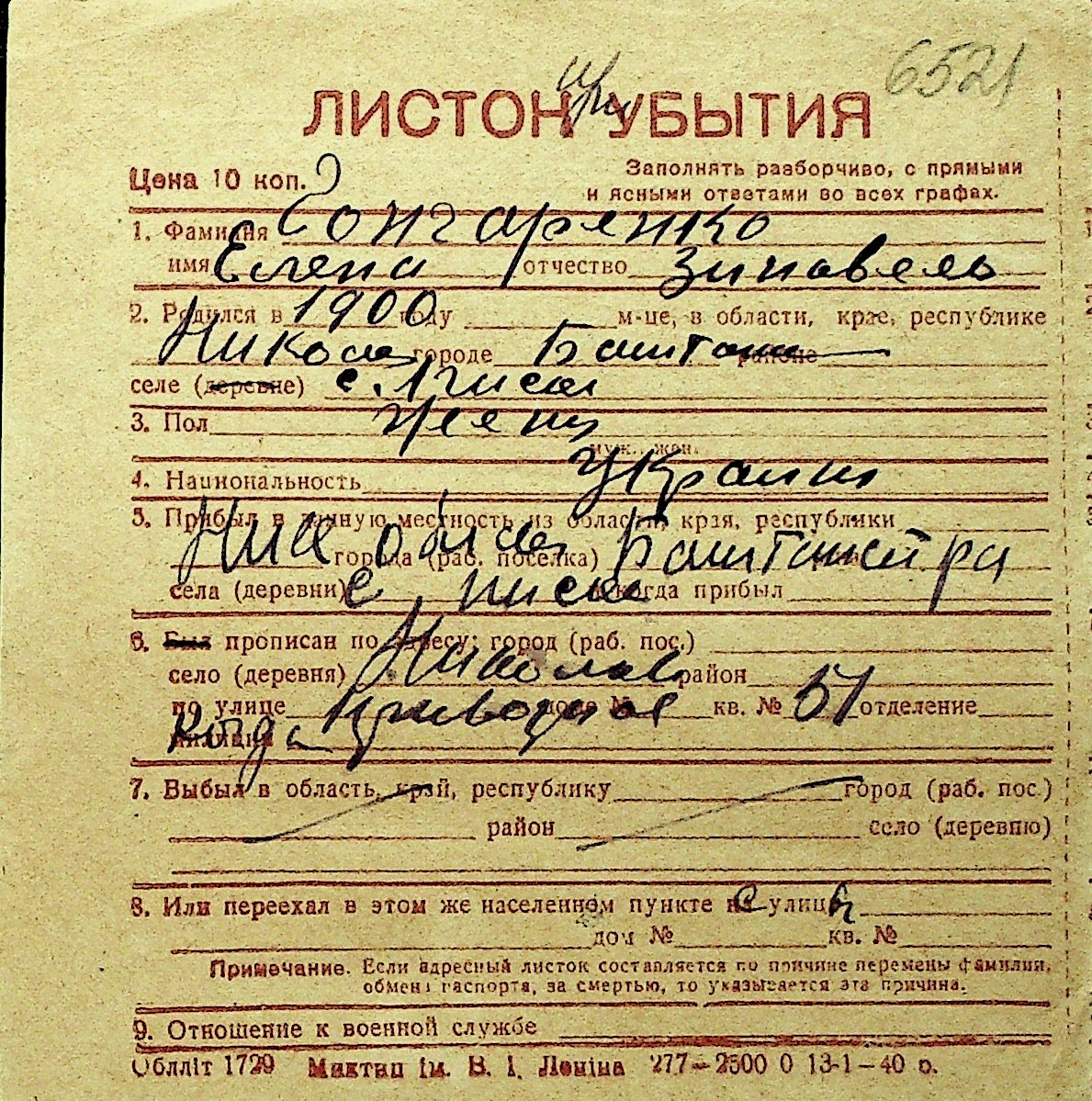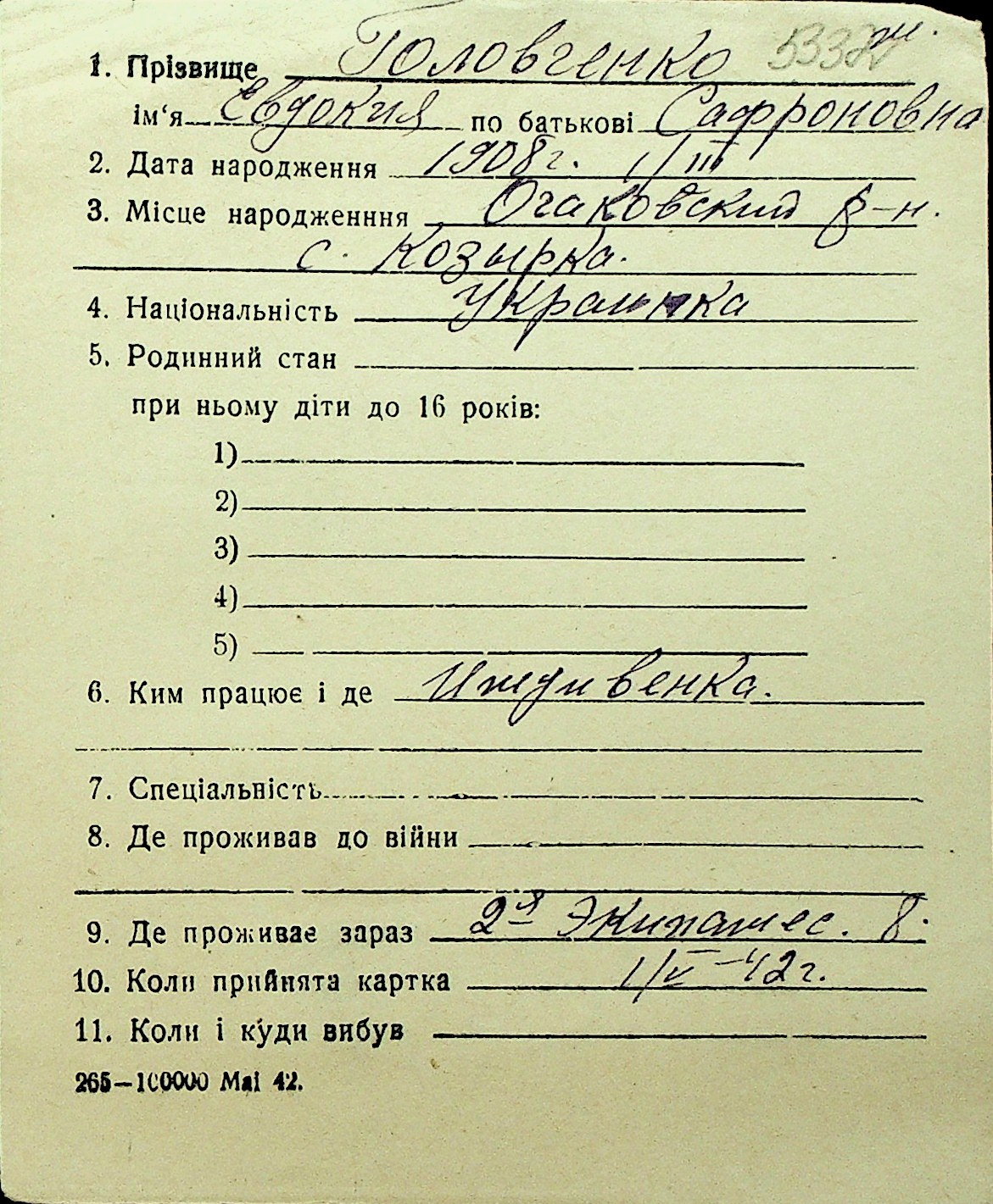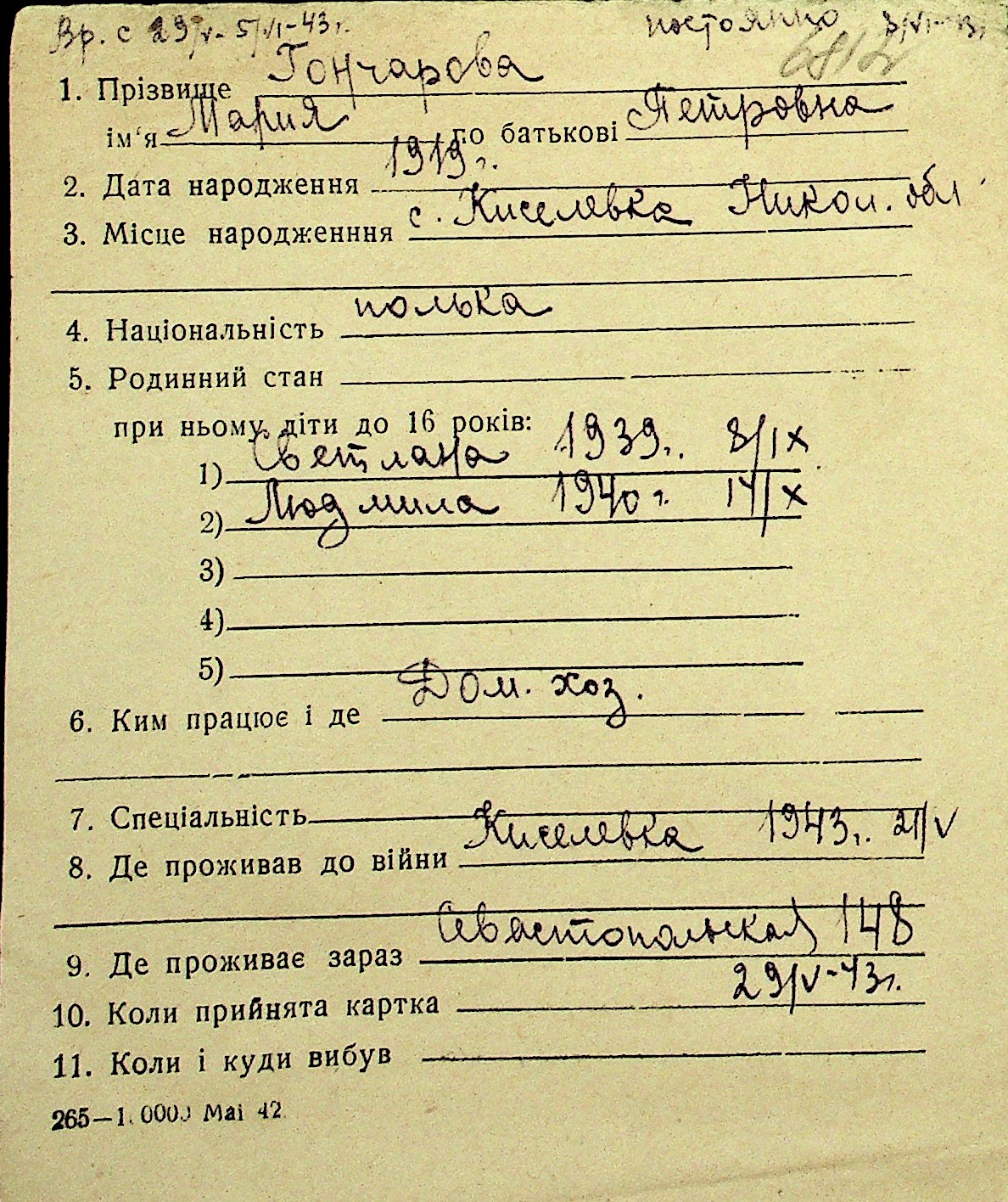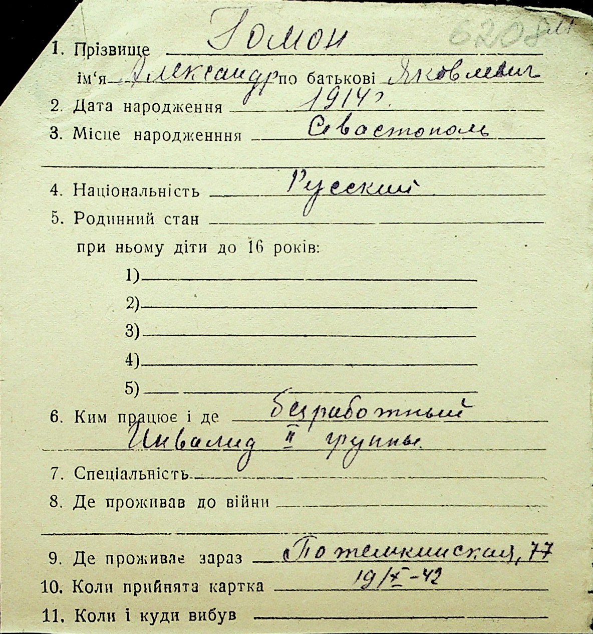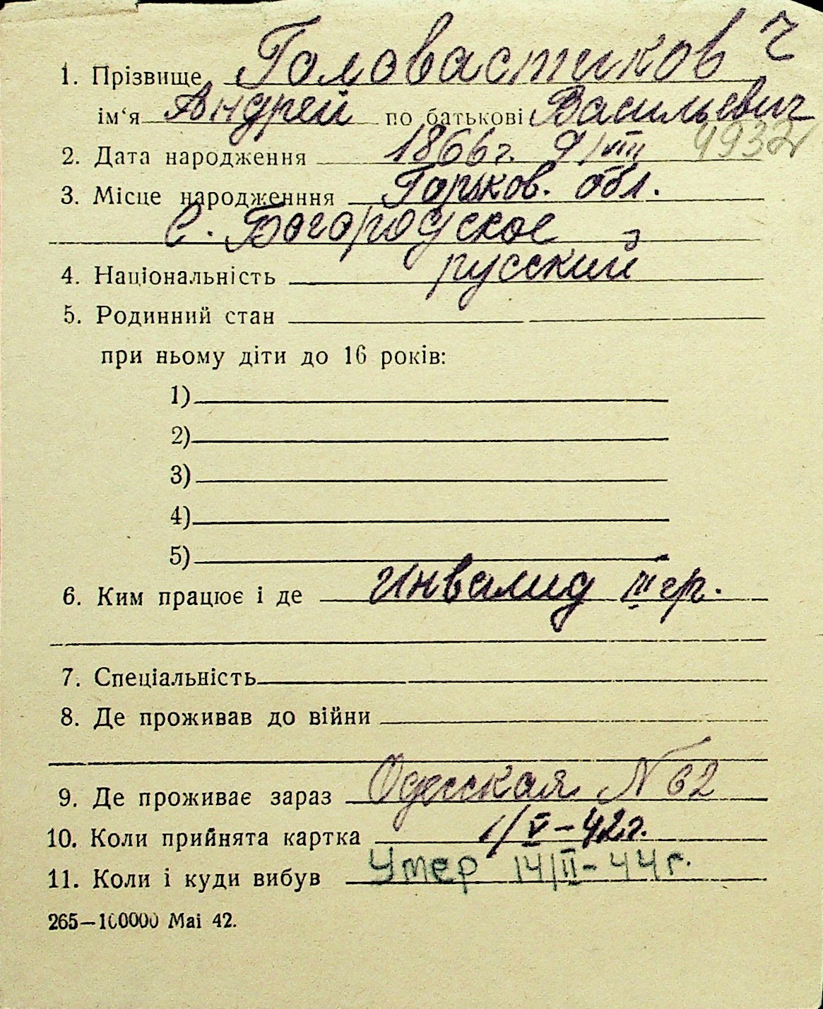 • • Перелік карток до фонду № Н-1016
