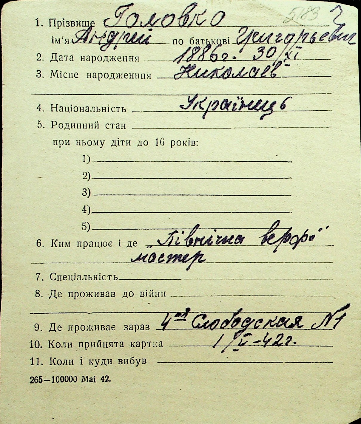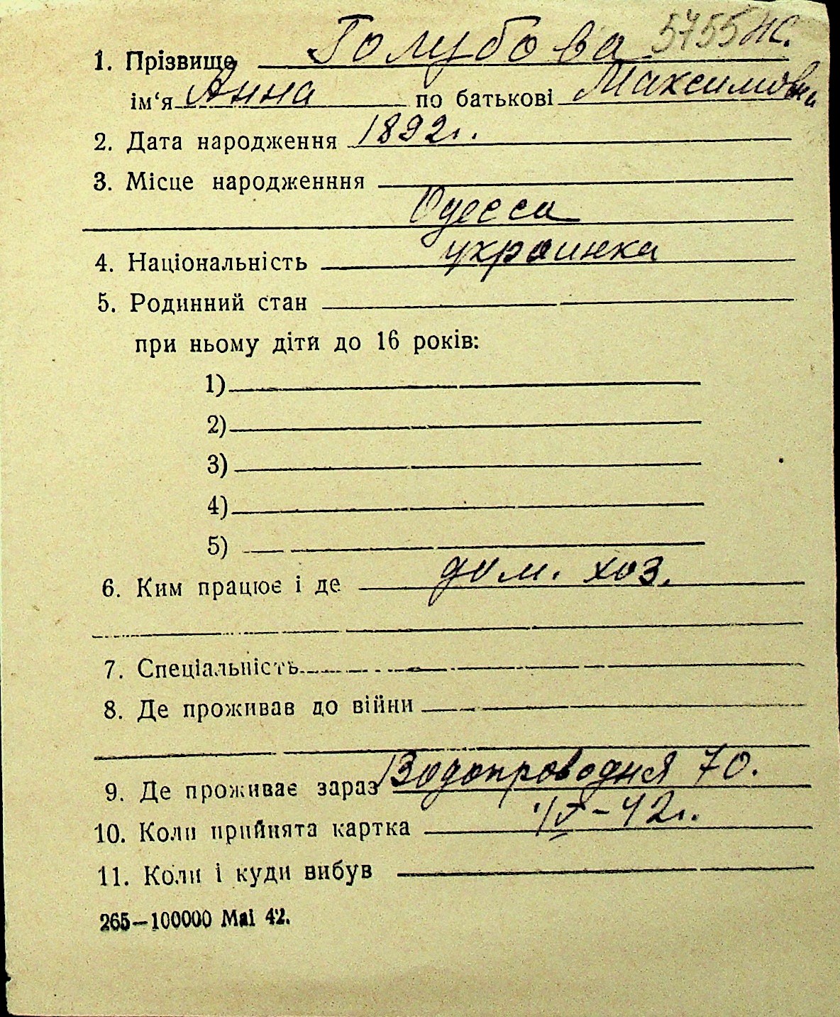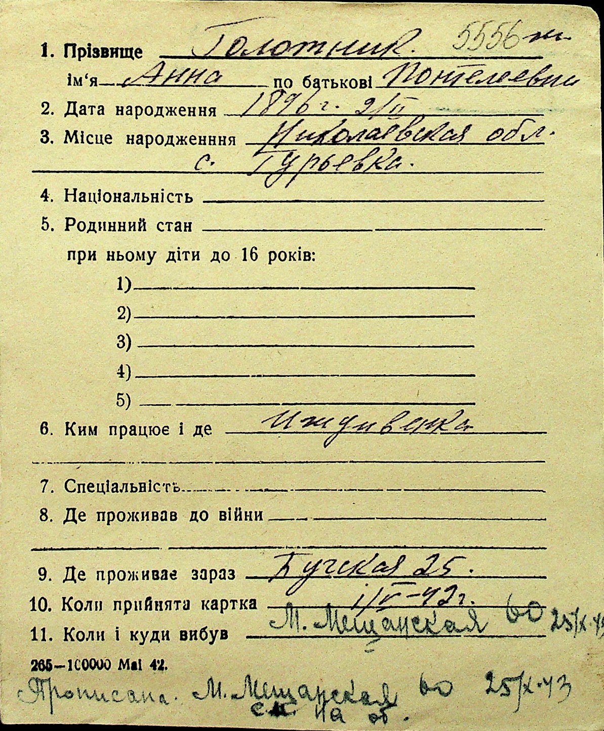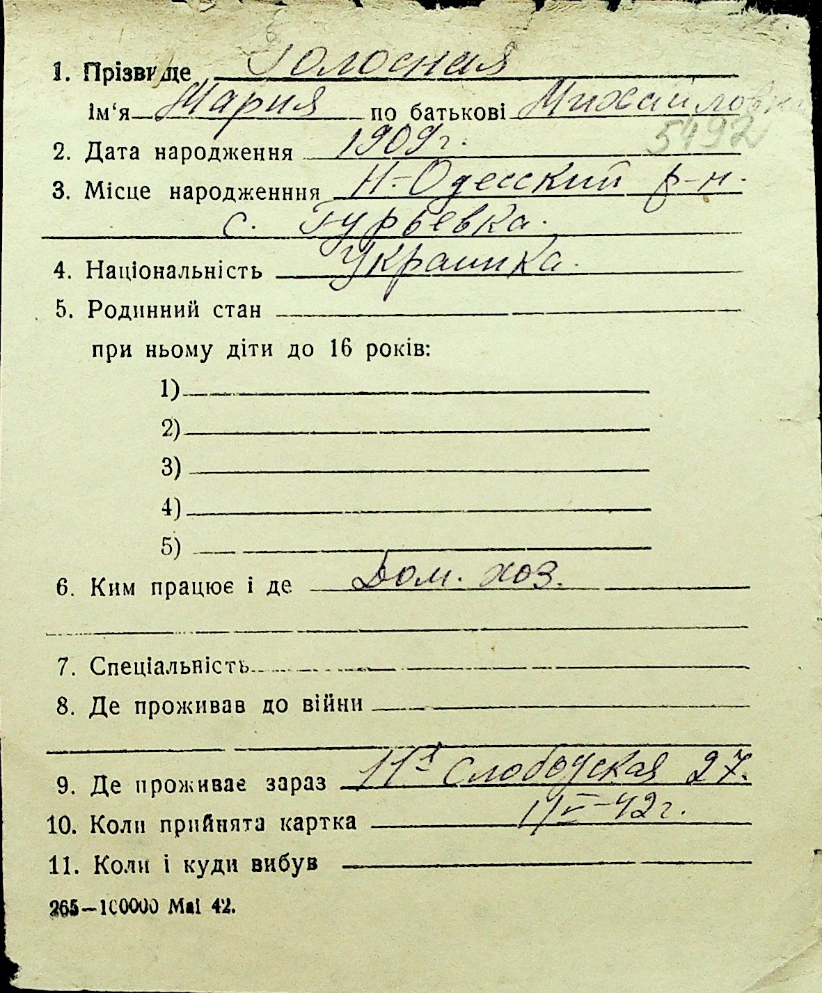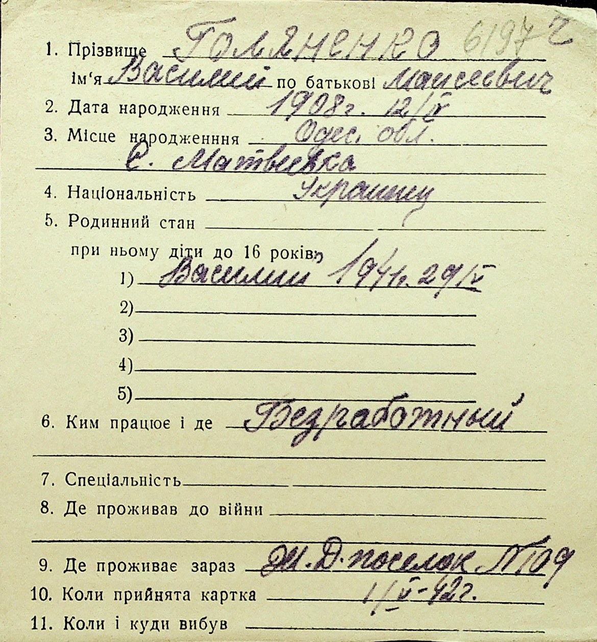 • • Перелік карток до фонду № Н-1016