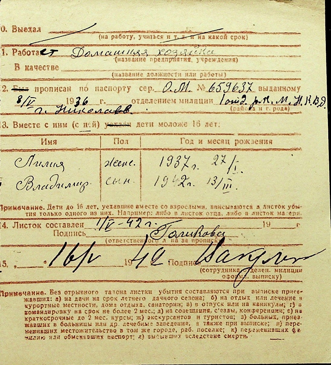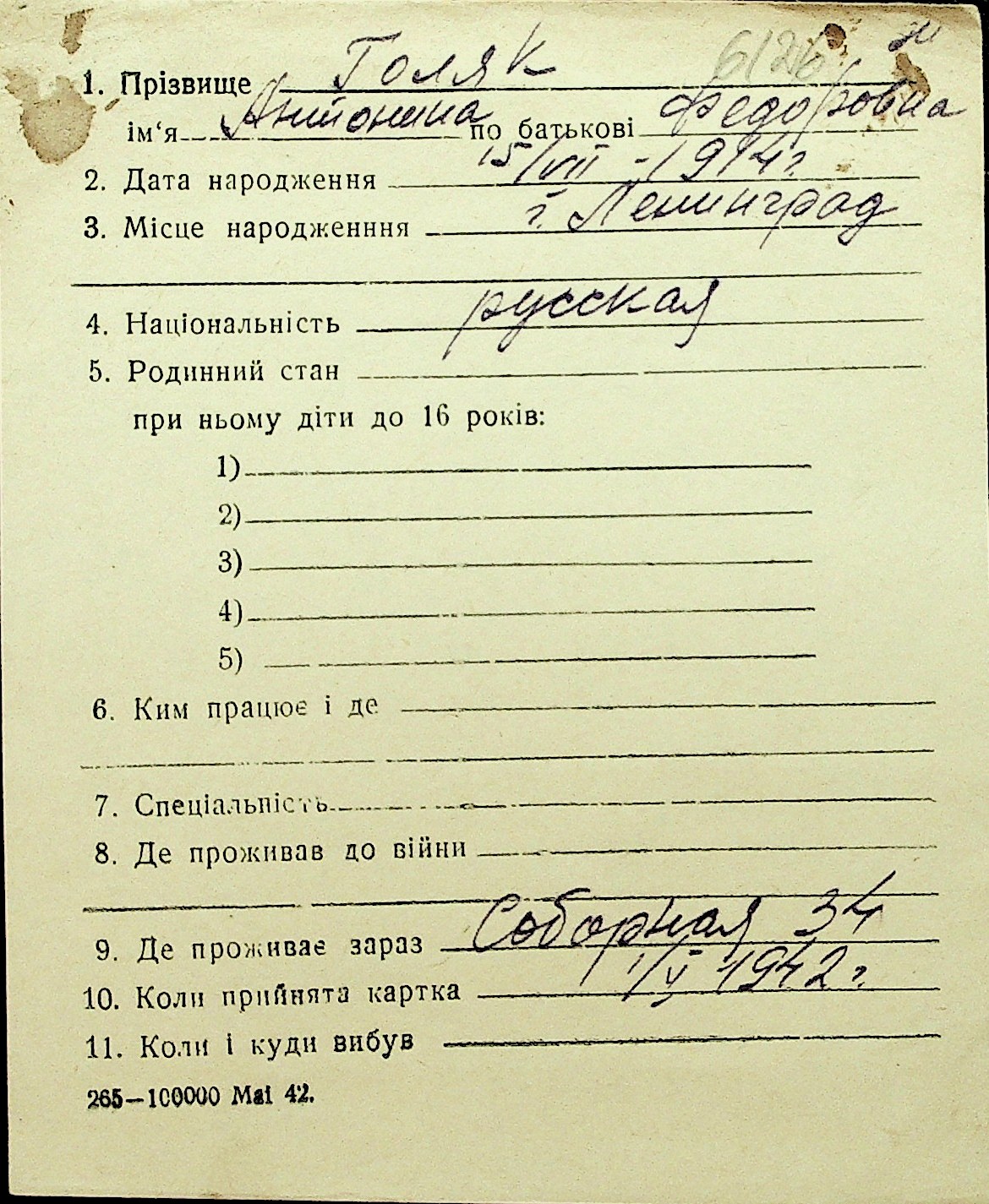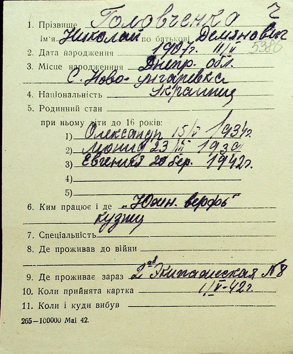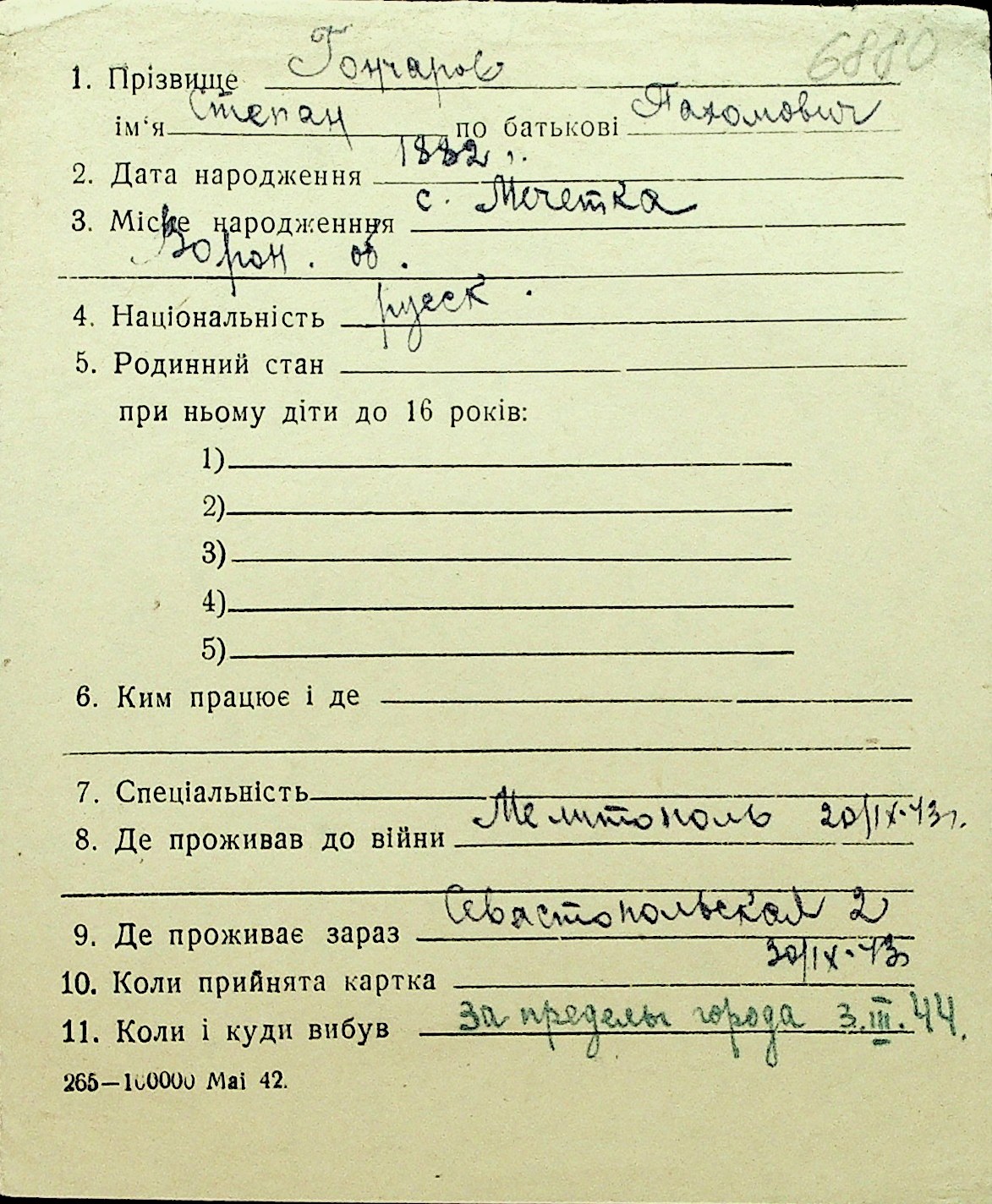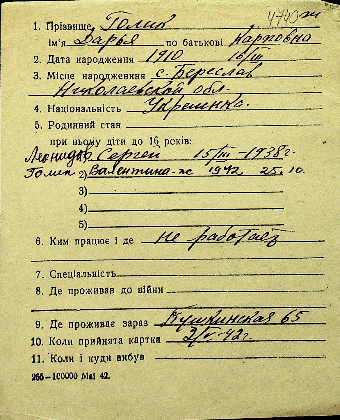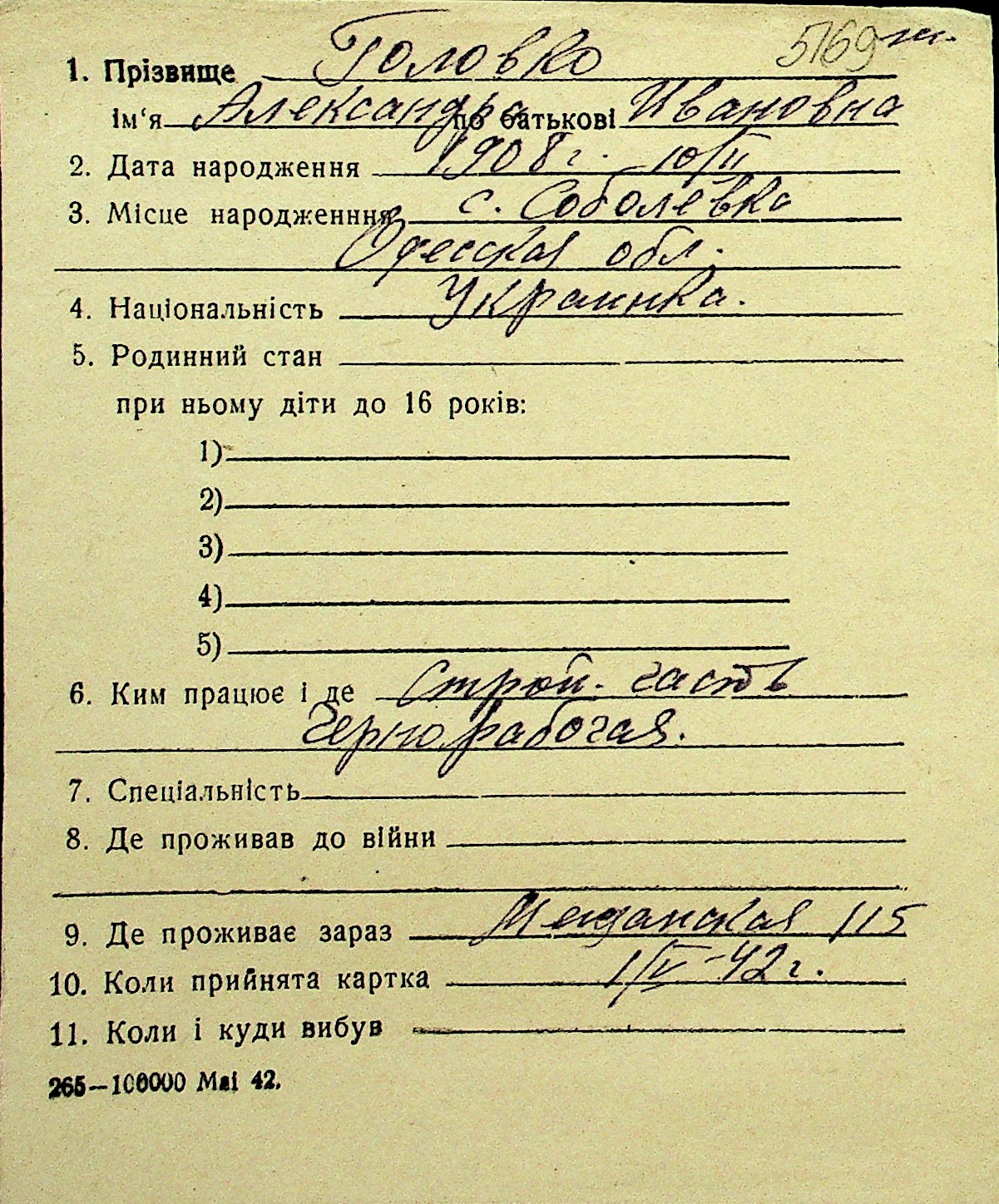 • • Перелік карток до фонду № Н-1016