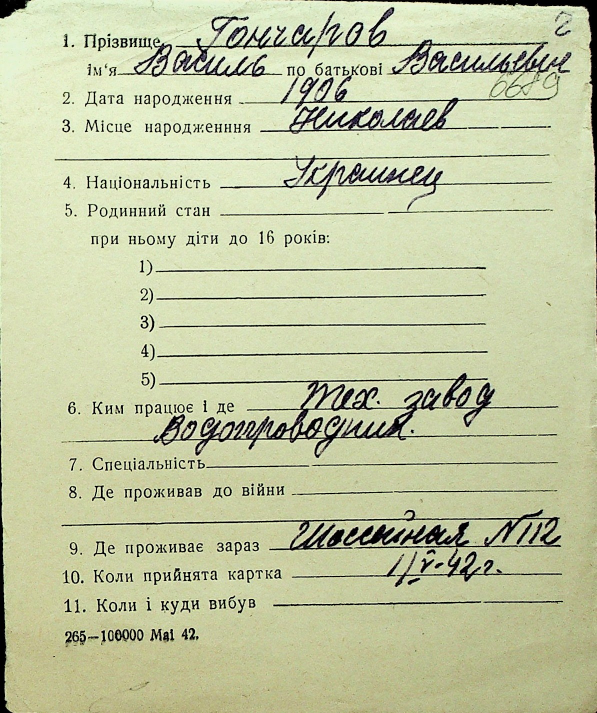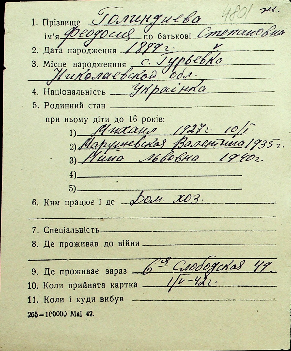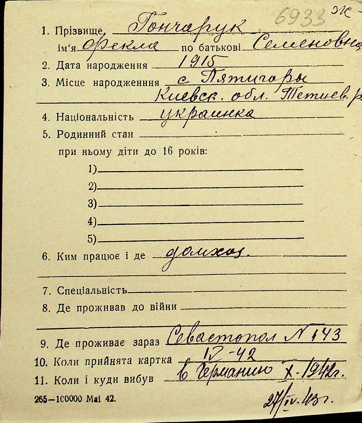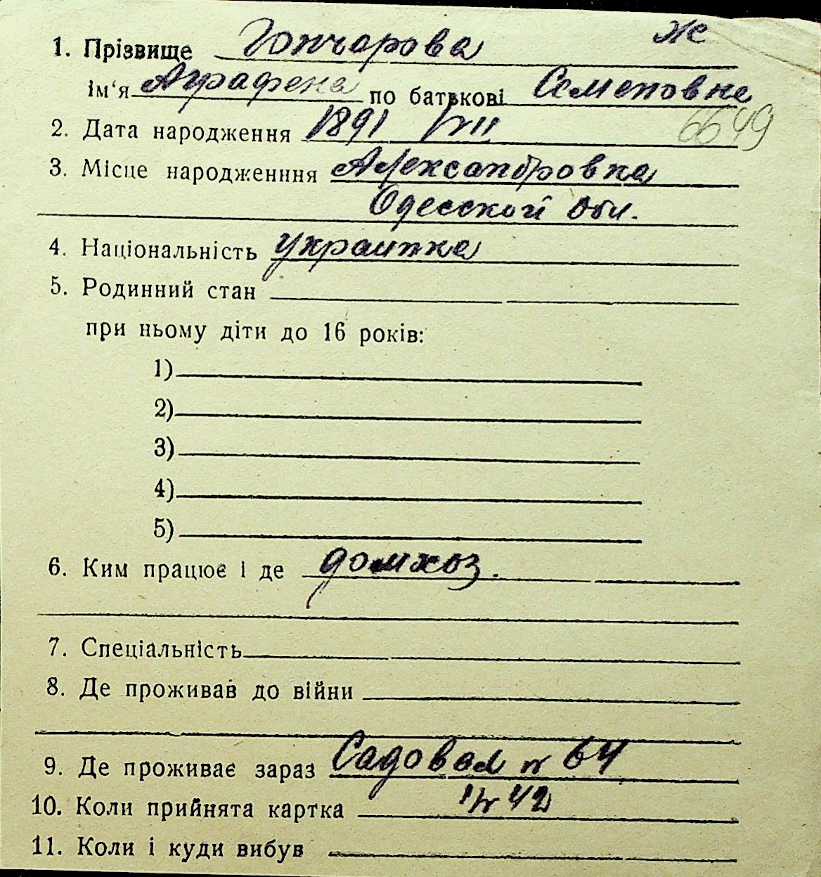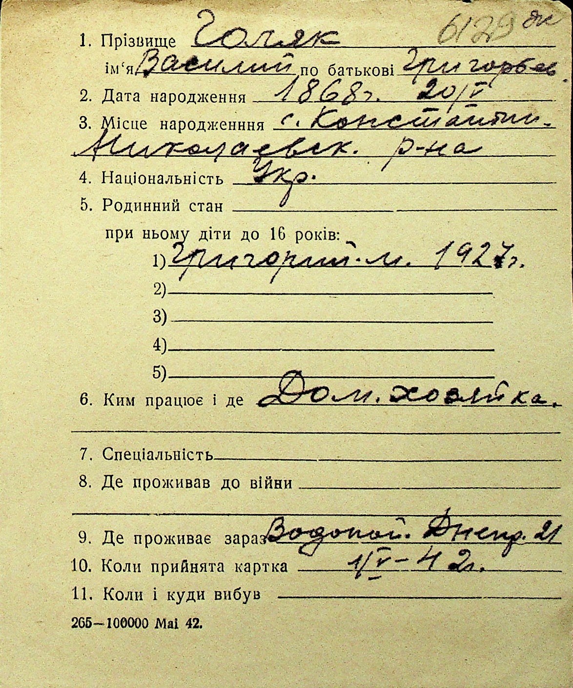 • • Перелік карток до фонду № Н-1016