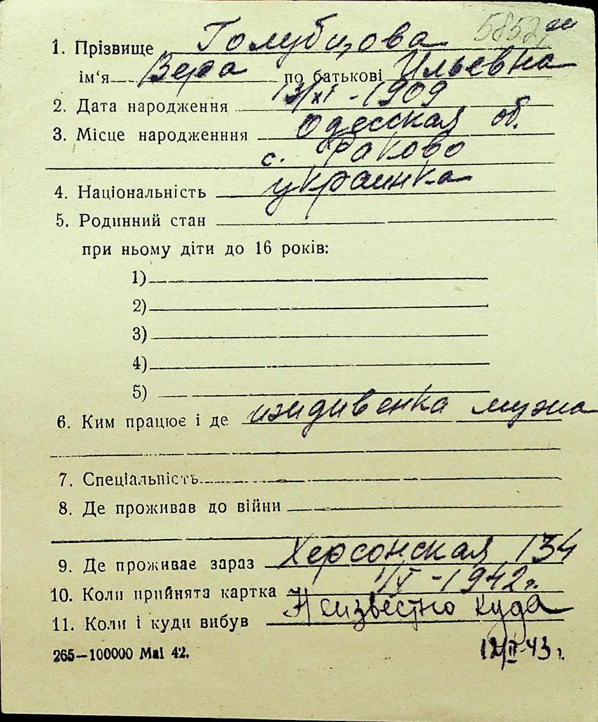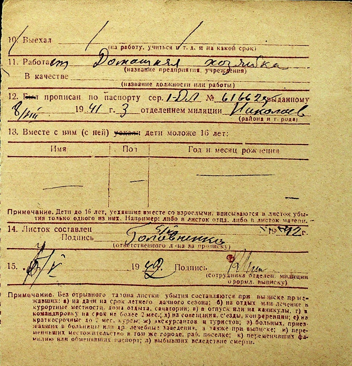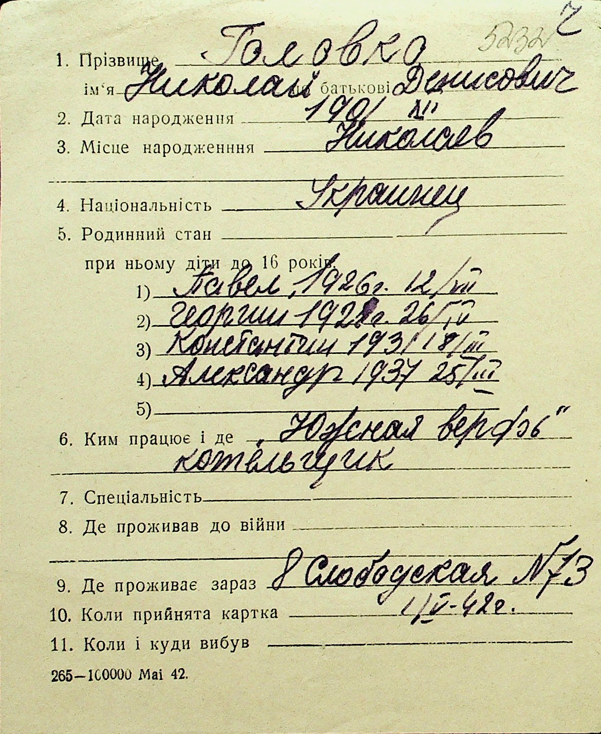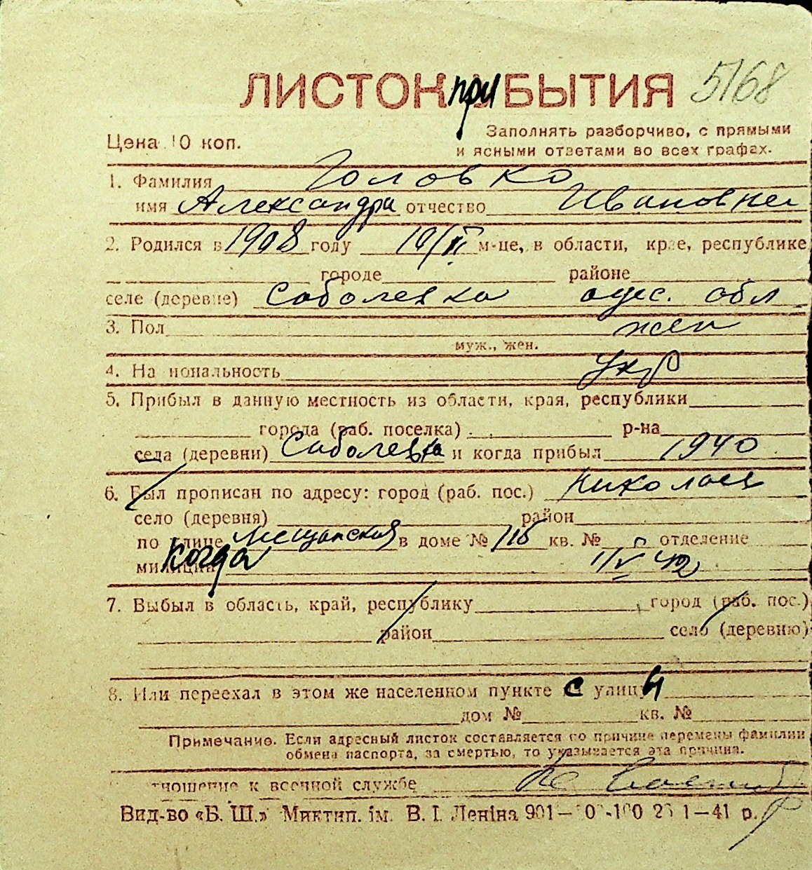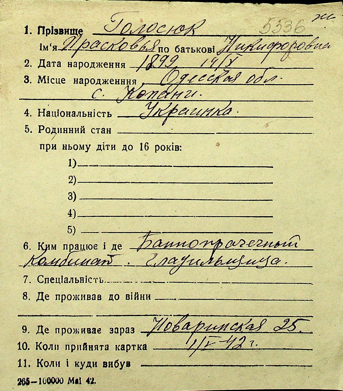 • • Перелік карток до фонду № Н-1016