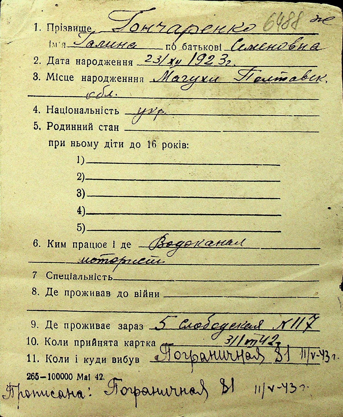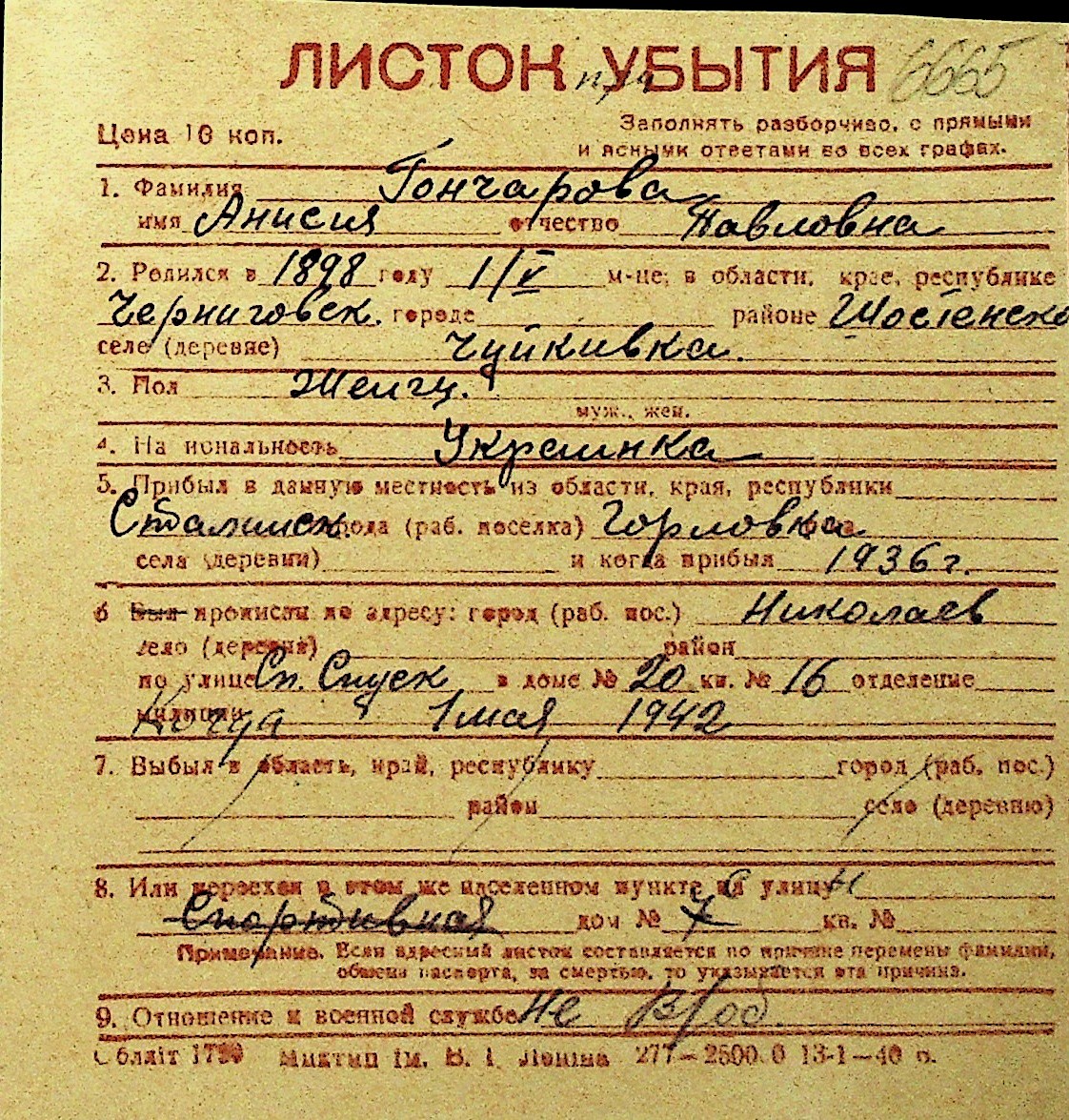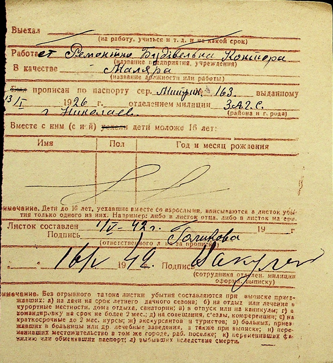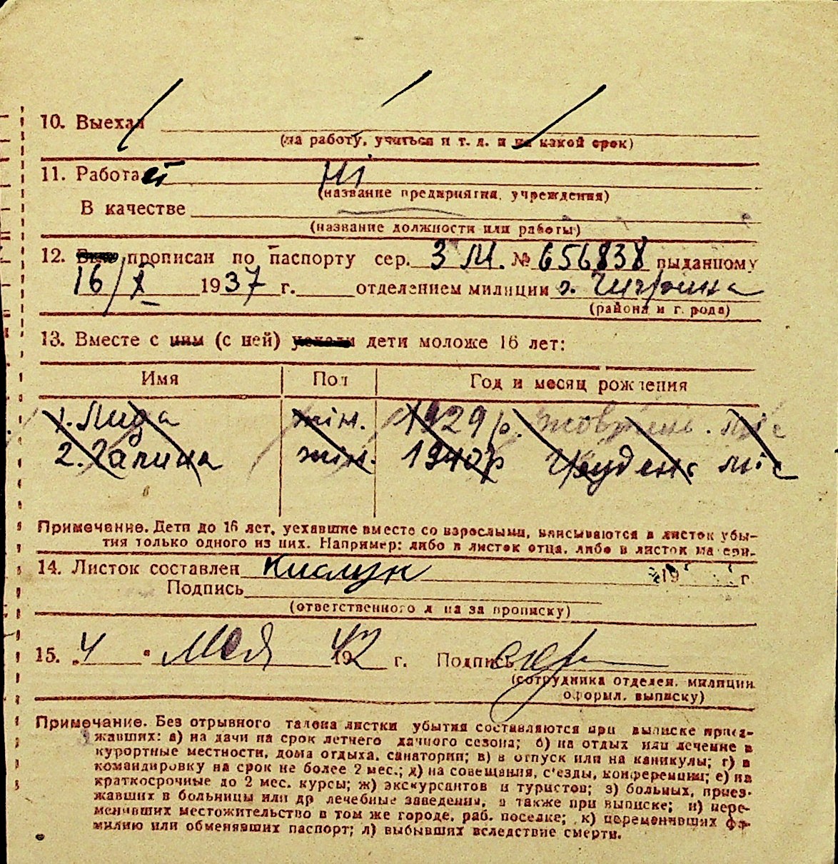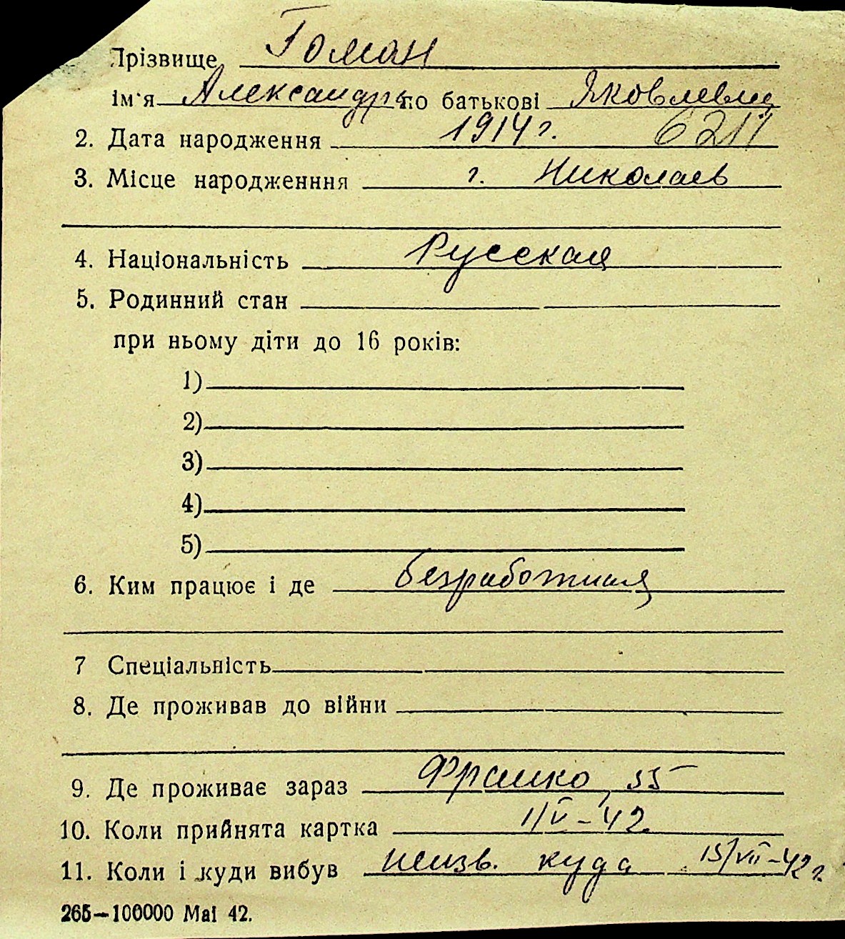 • • Перелік карток до фонду № Н-1016