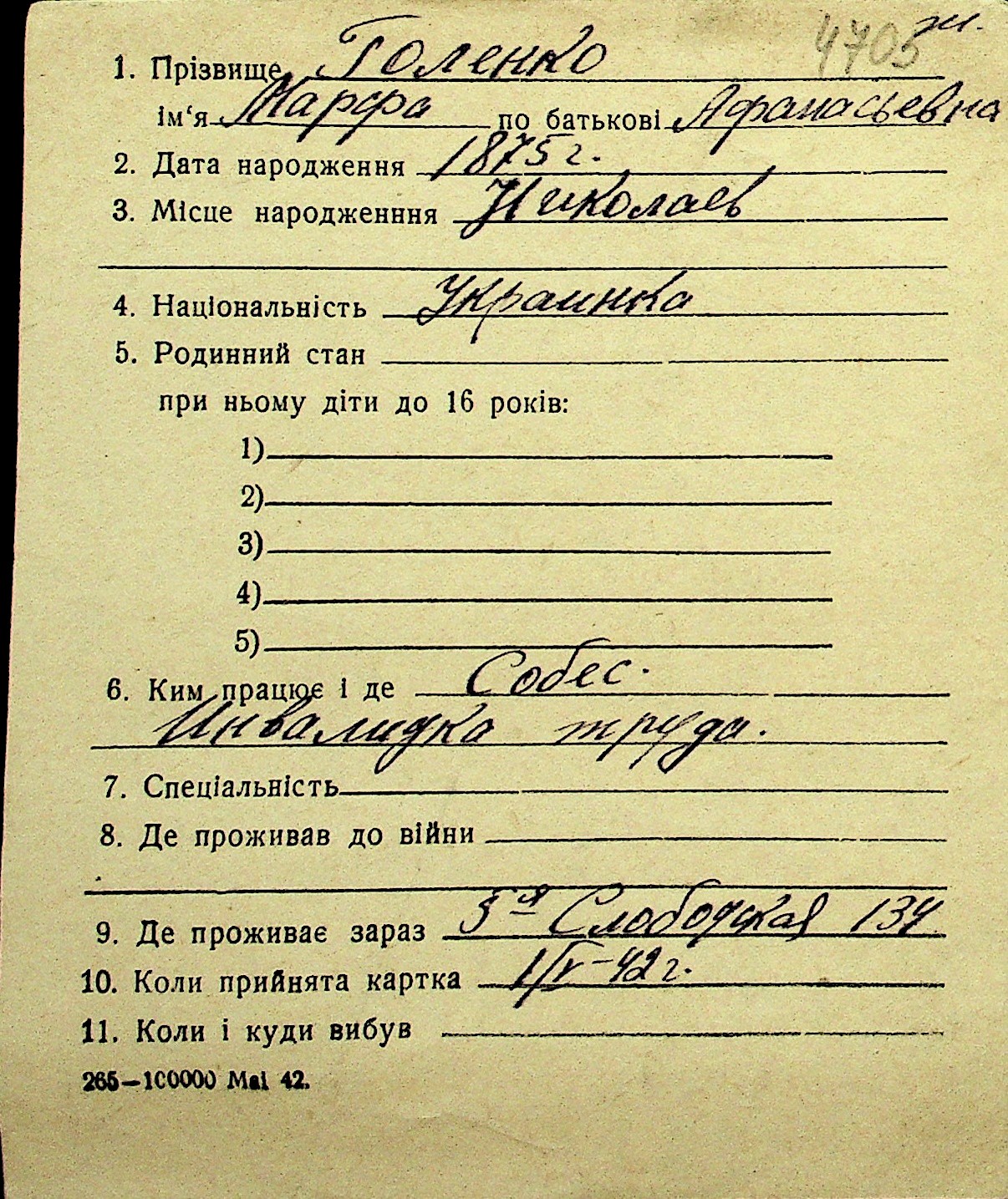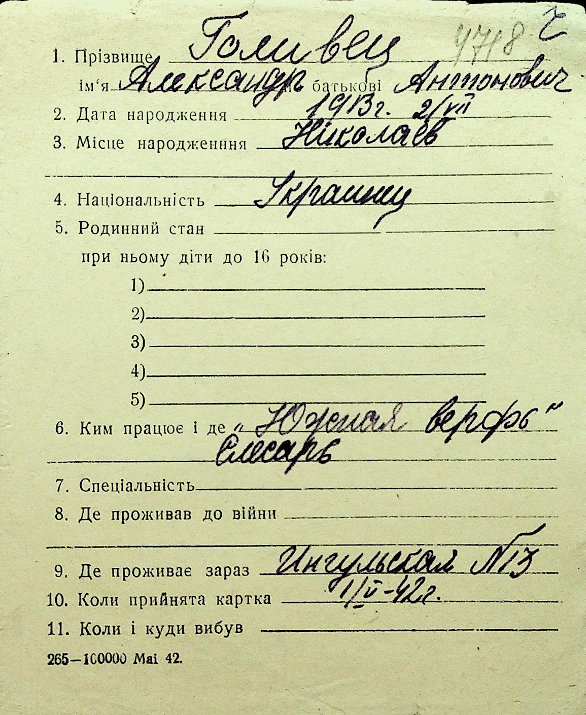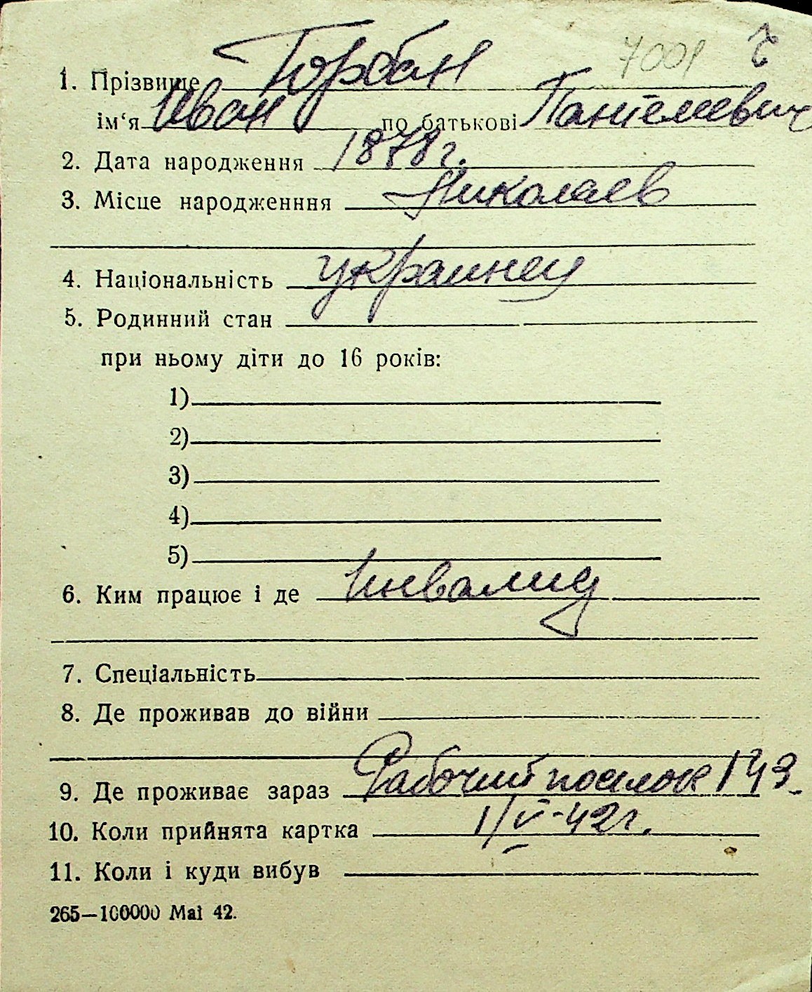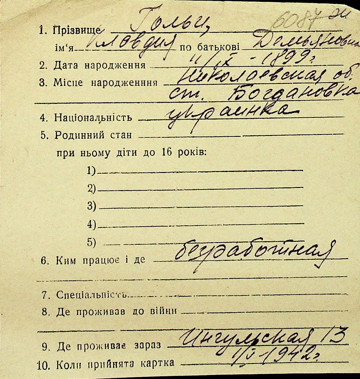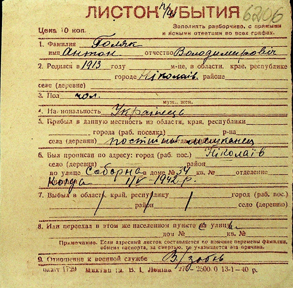 • • Перелік карток до фонду № Н-1016