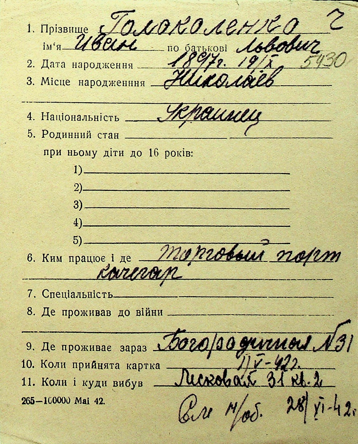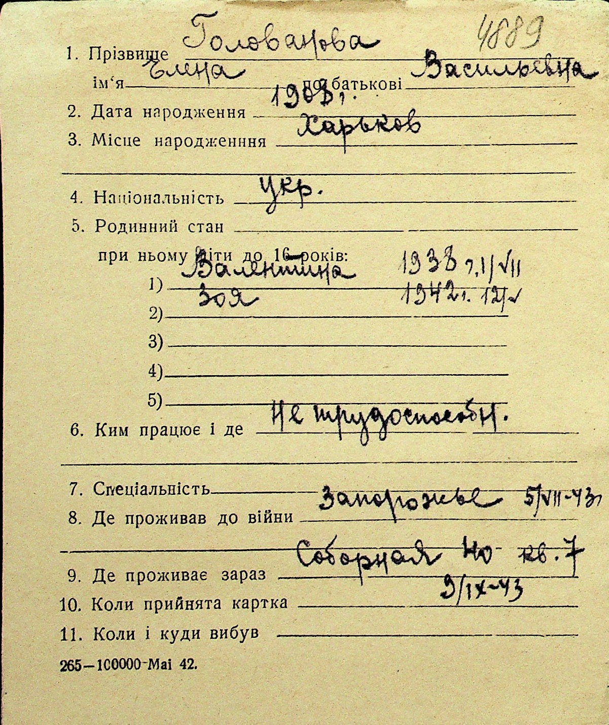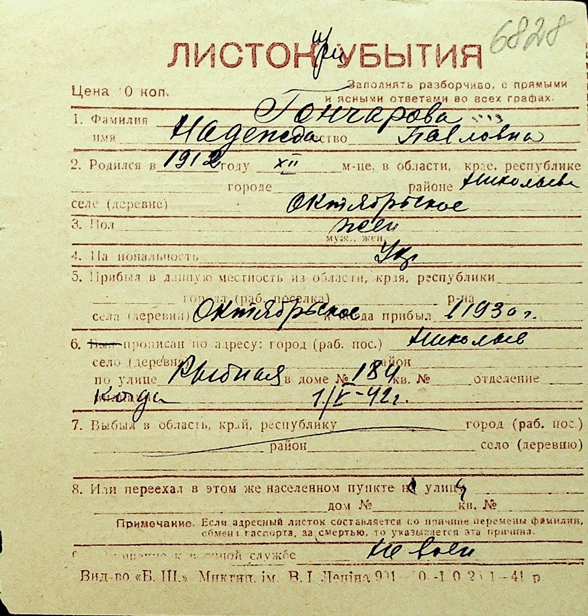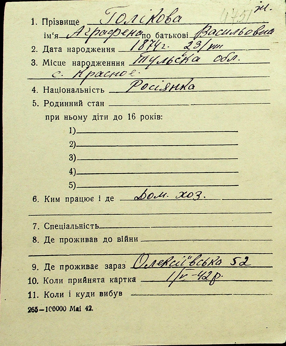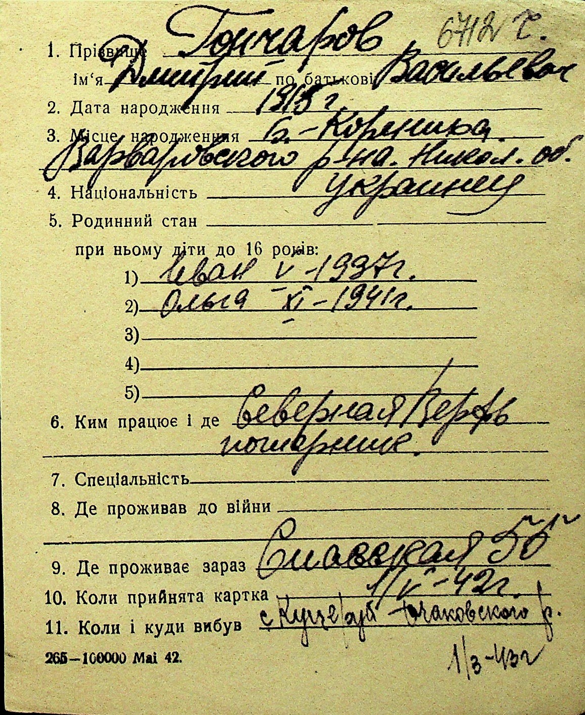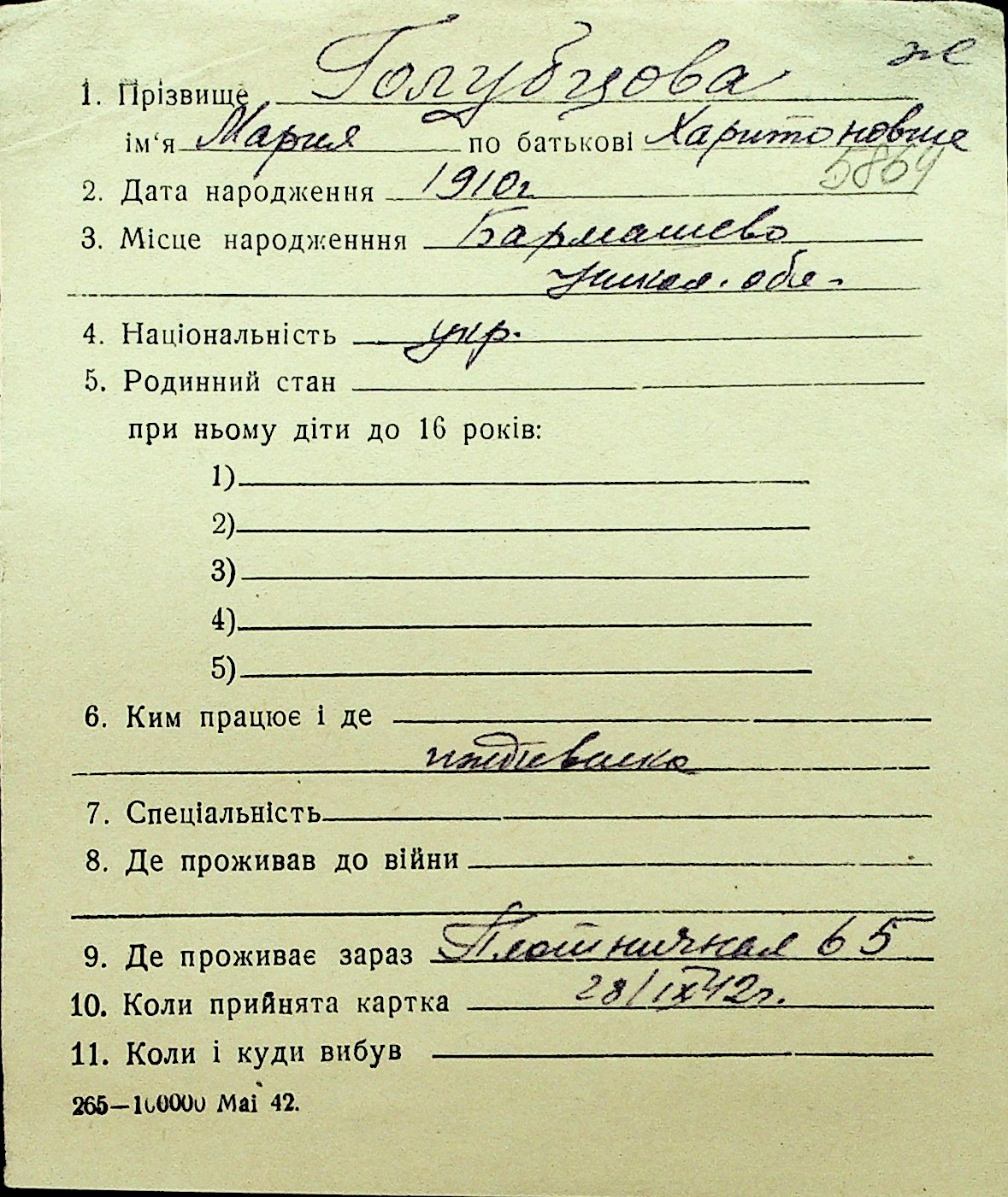 • • Перелік карток до фонду № Н-1016