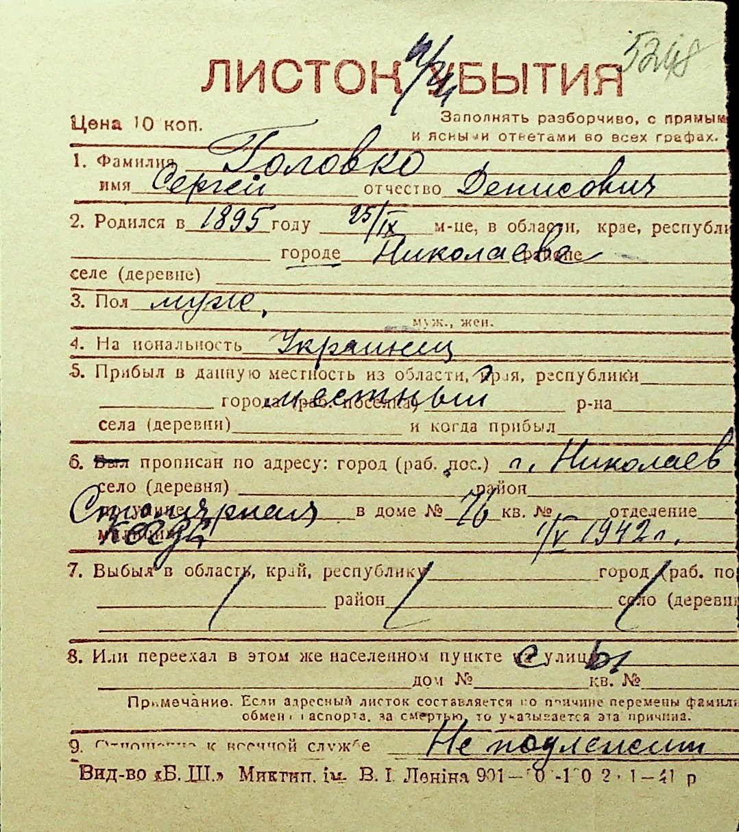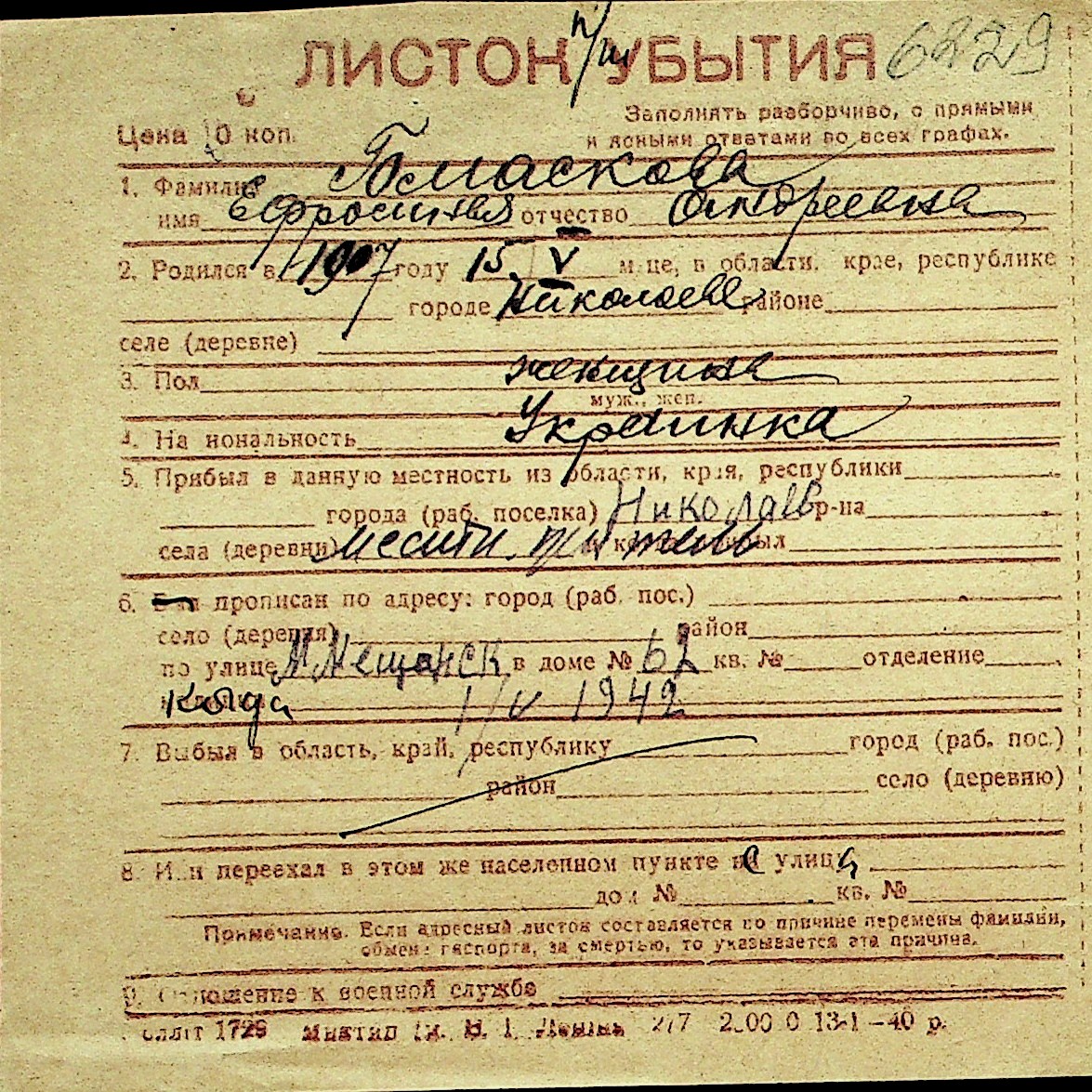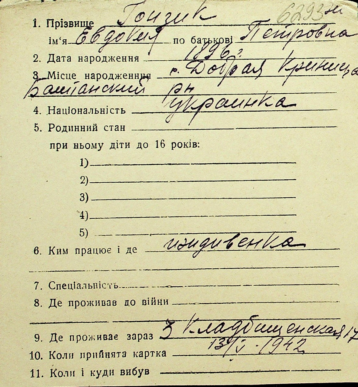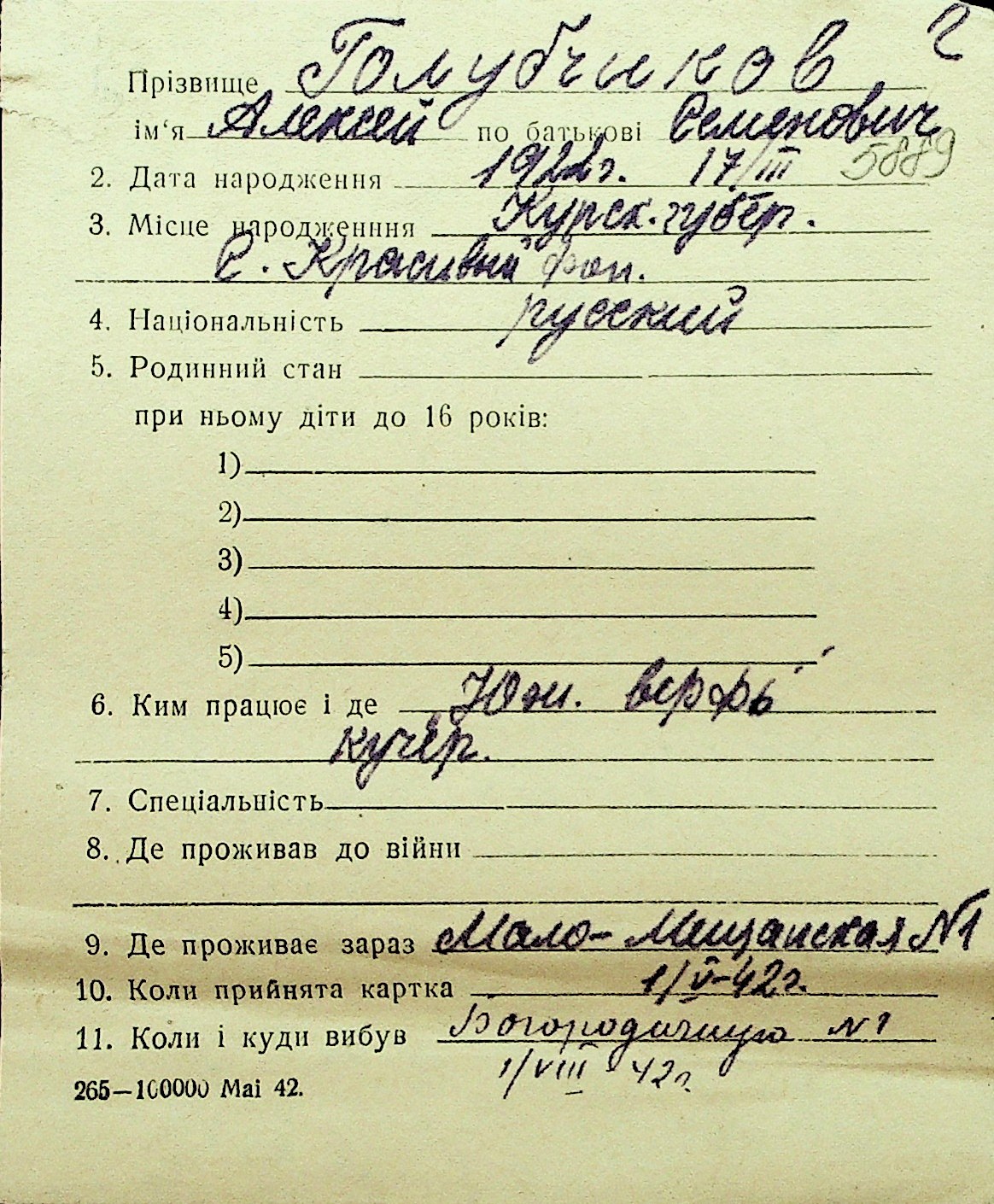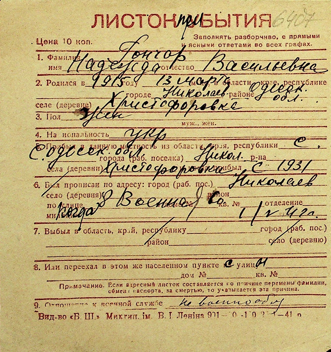 • • Перелік карток до фонду № Н-1016