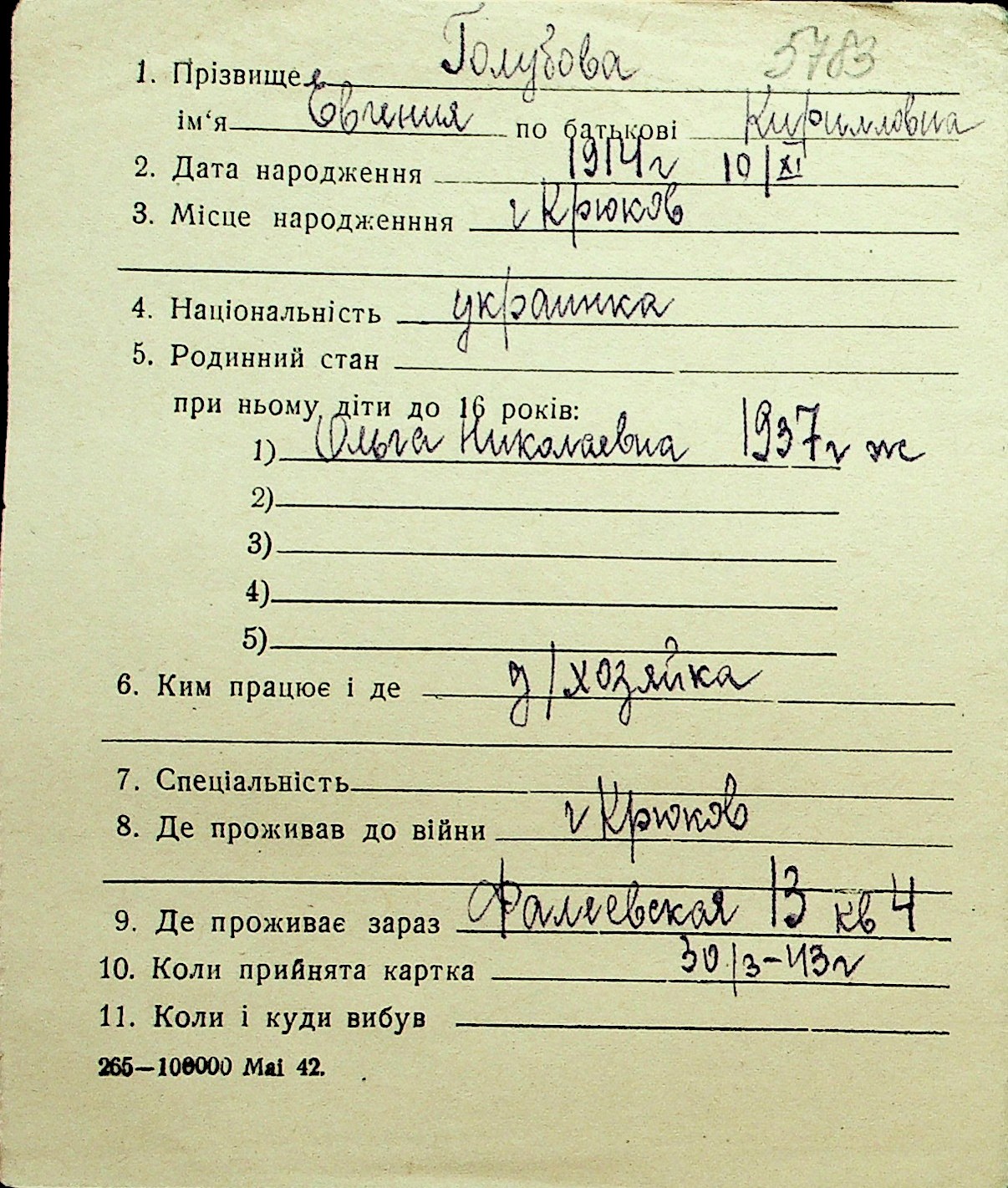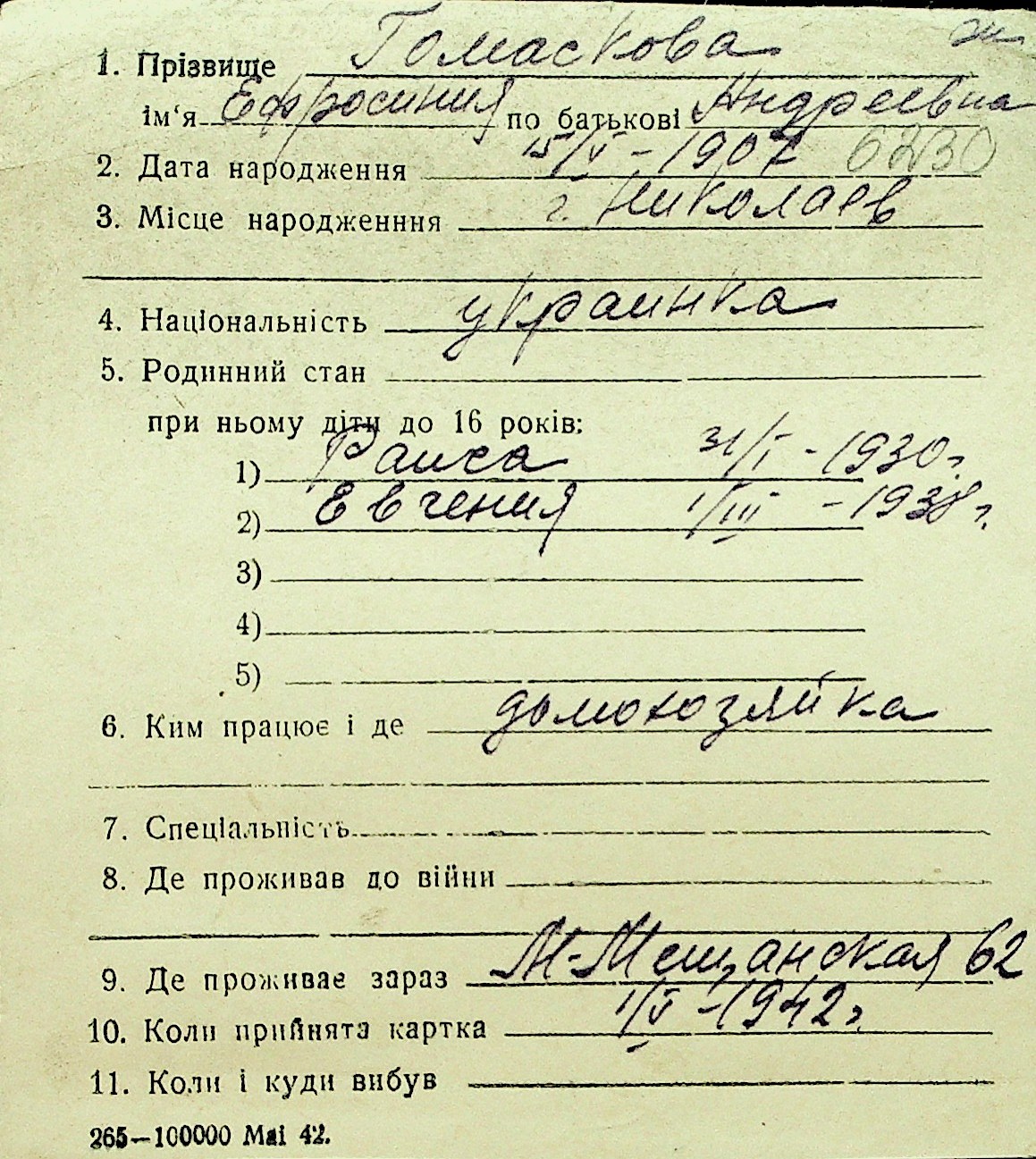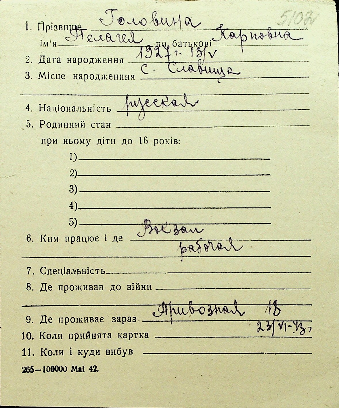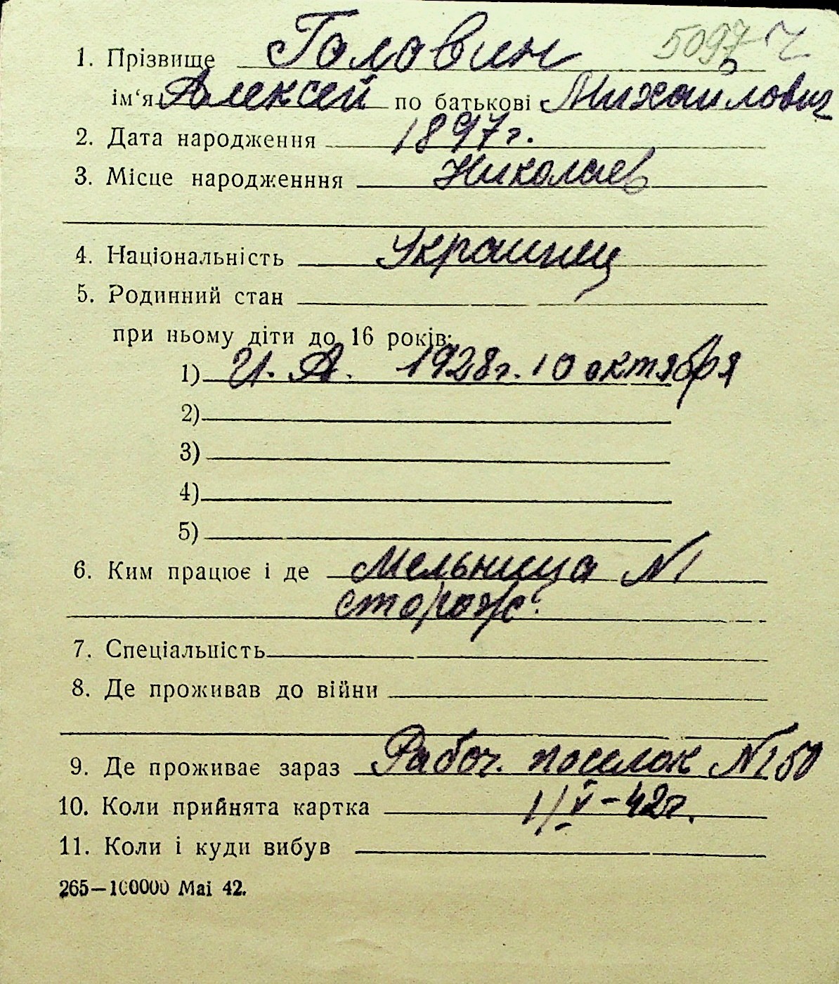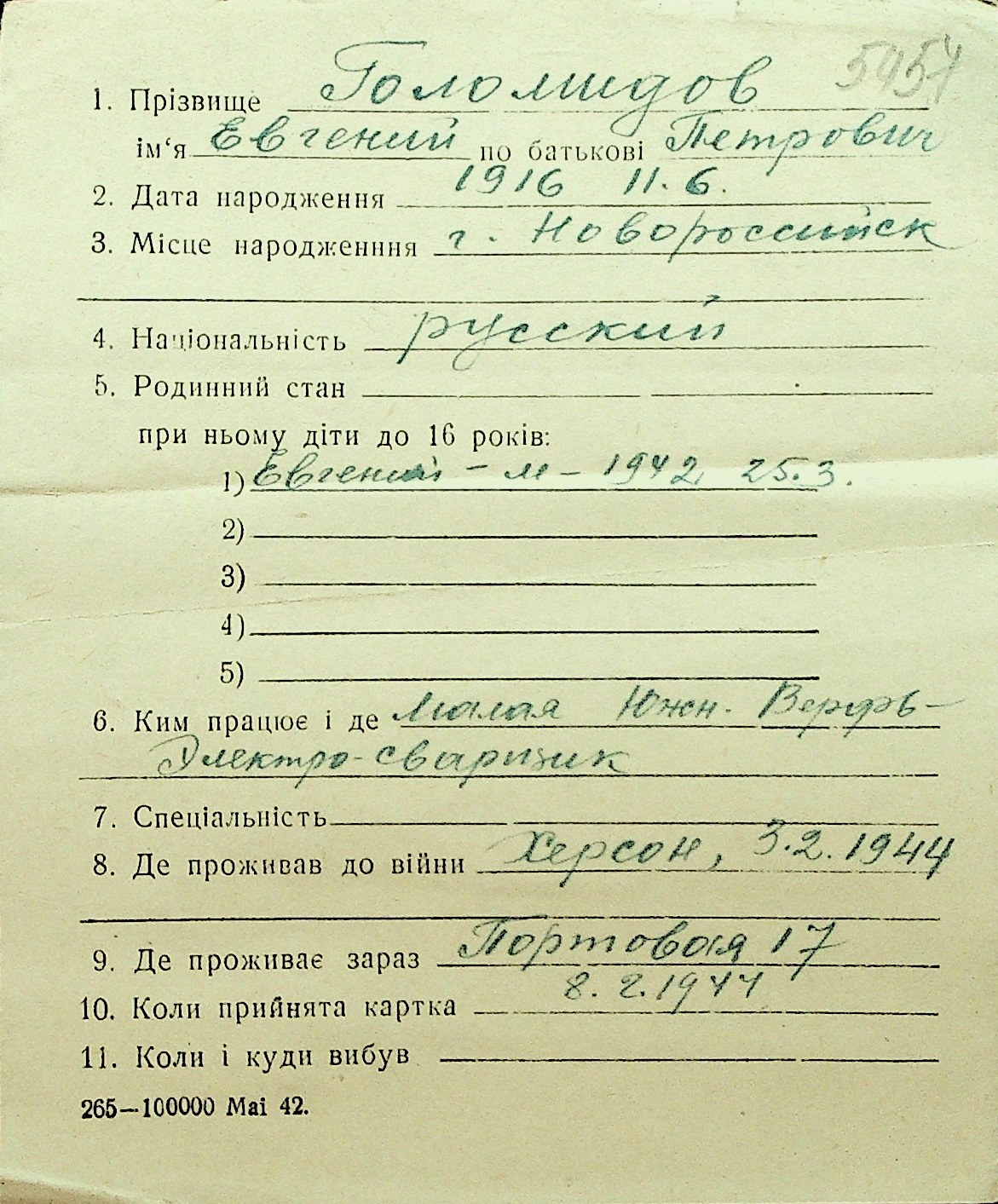 • • Перелік карток до фонду № Н-1016