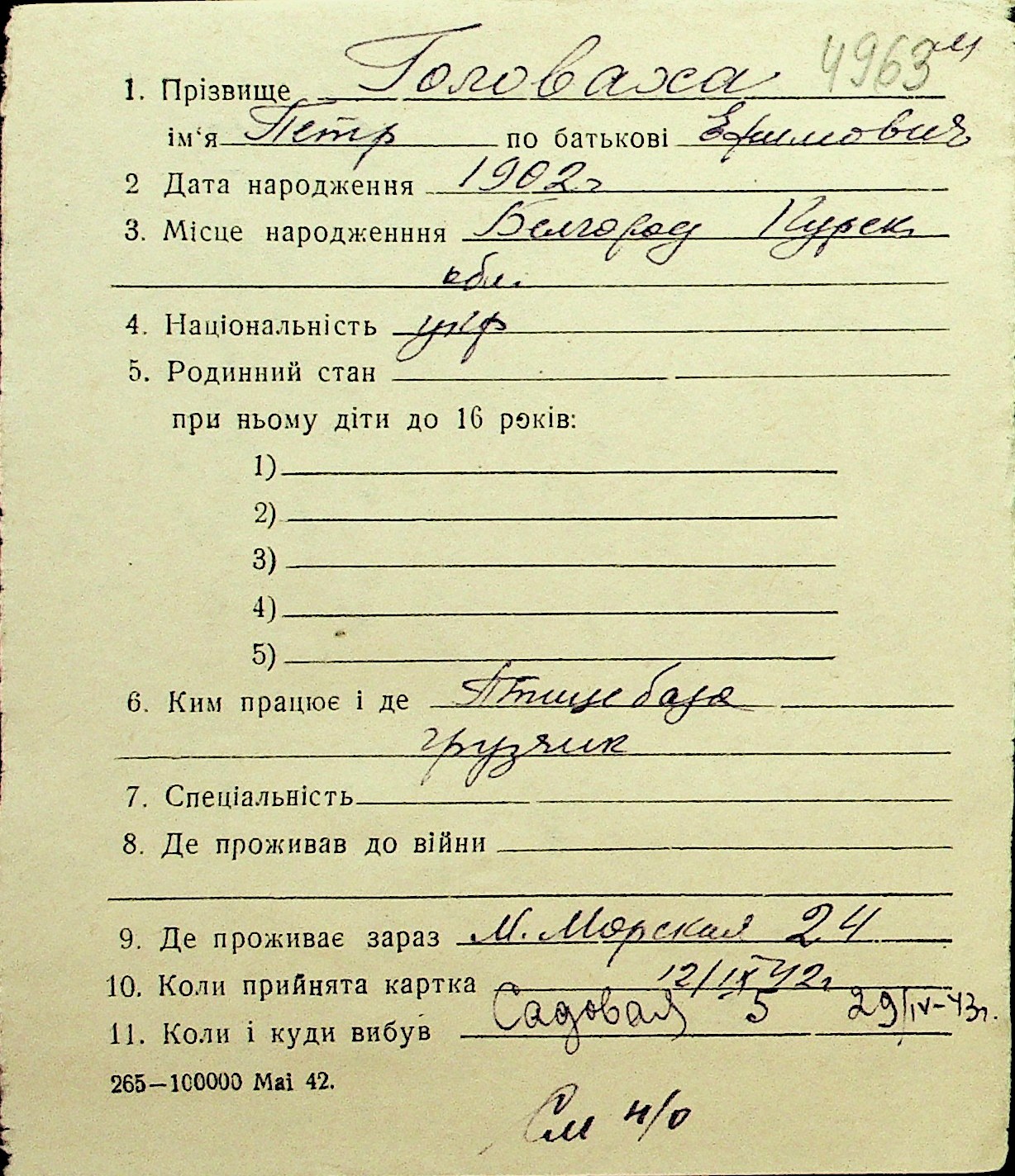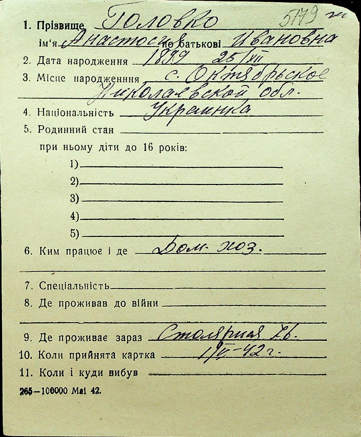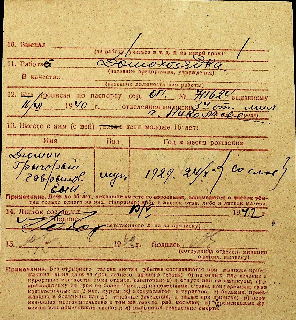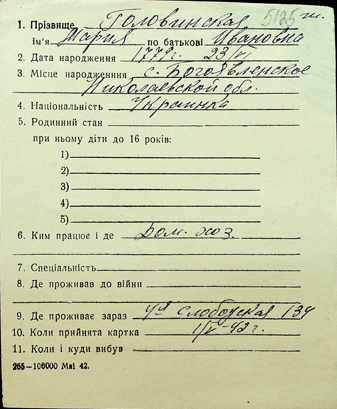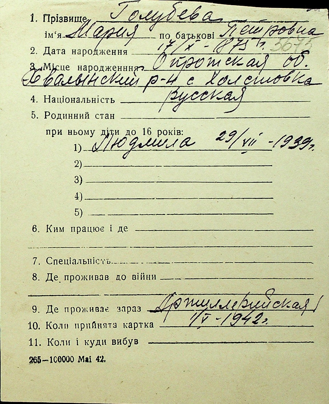 • • Перелік карток до фонду № Н-1016