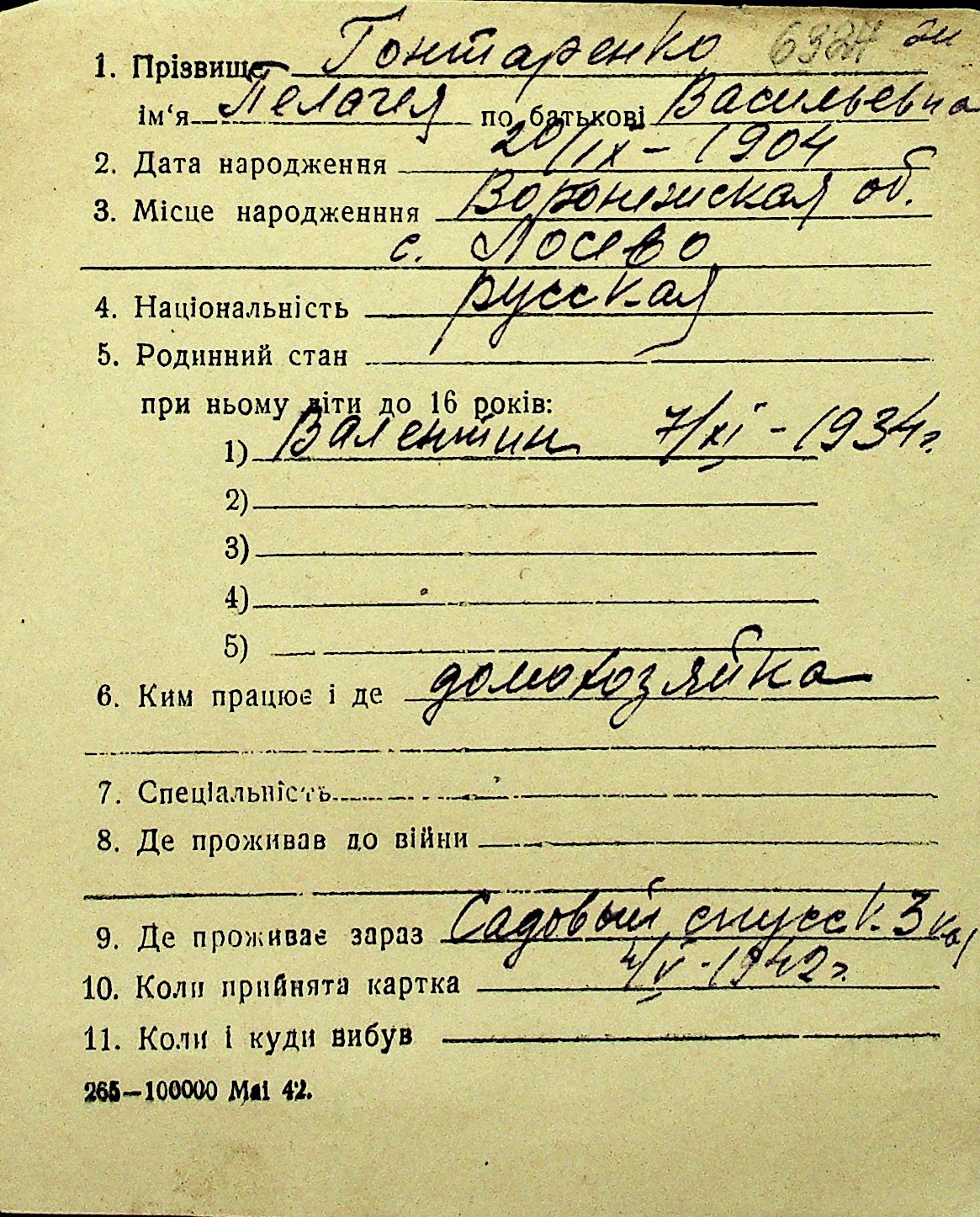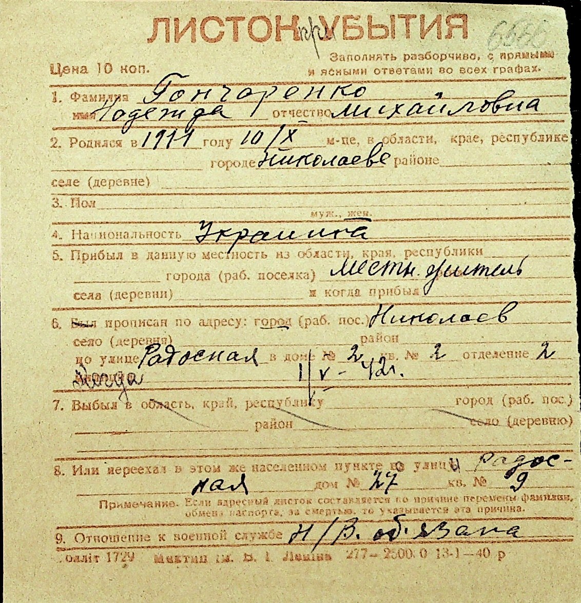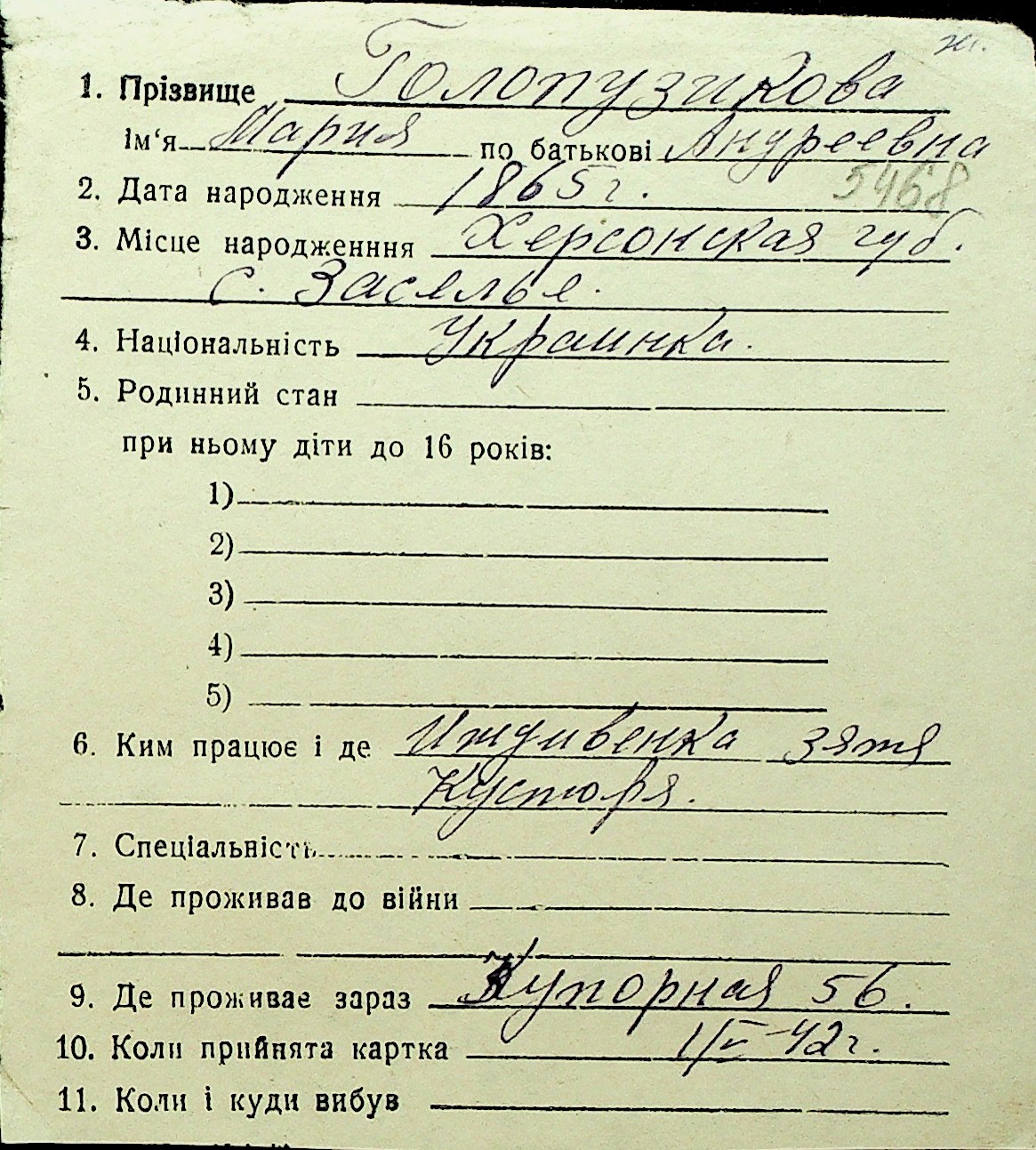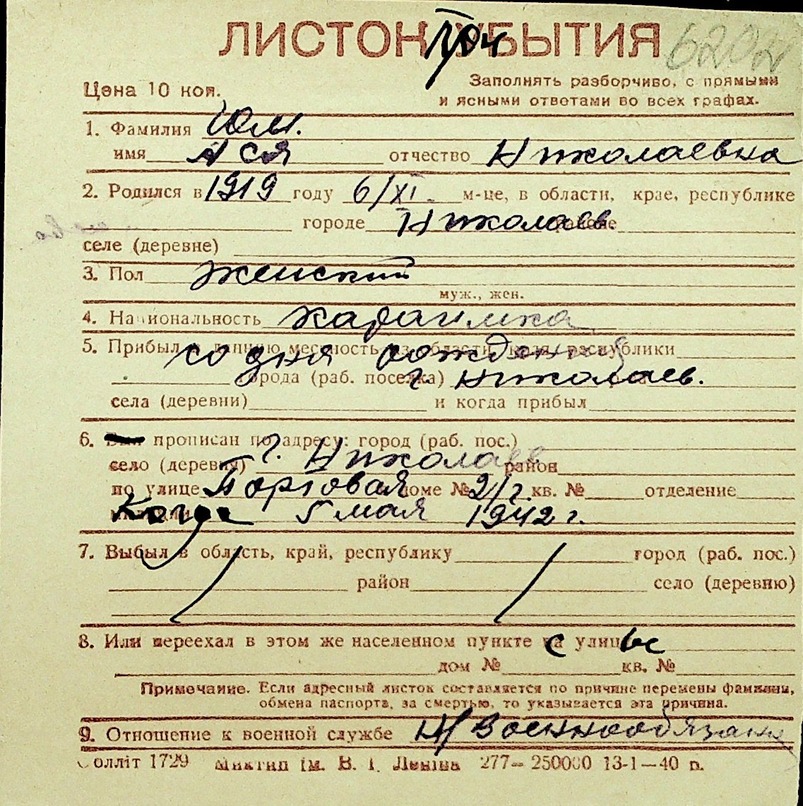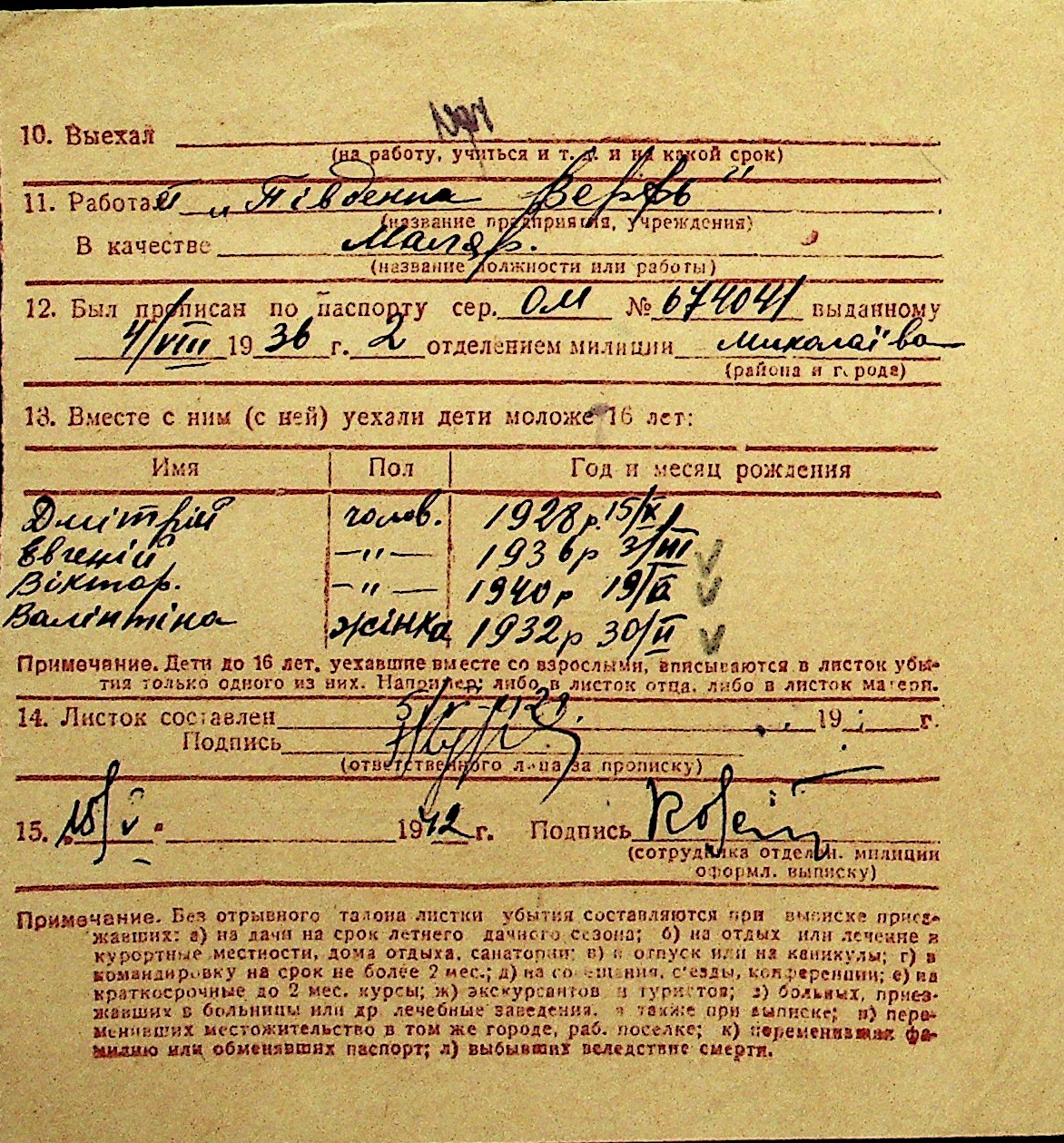 • • Перелік карток до фонду № Н-1016