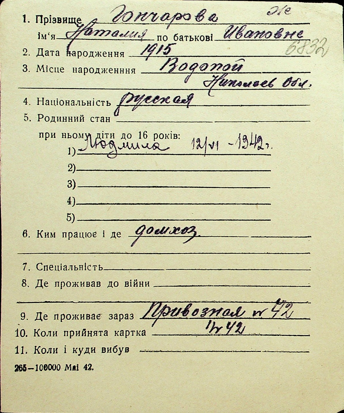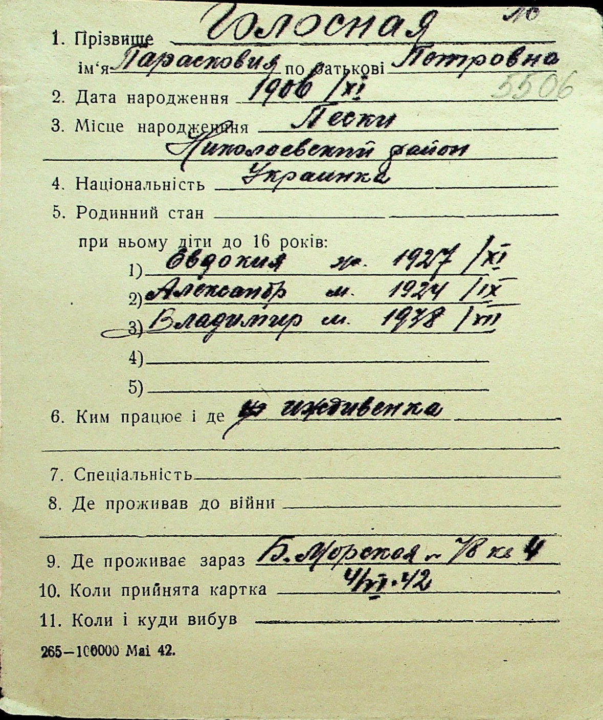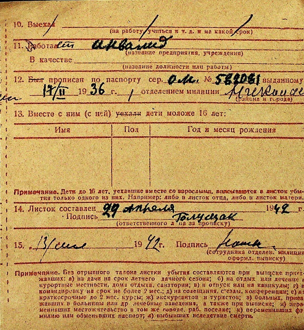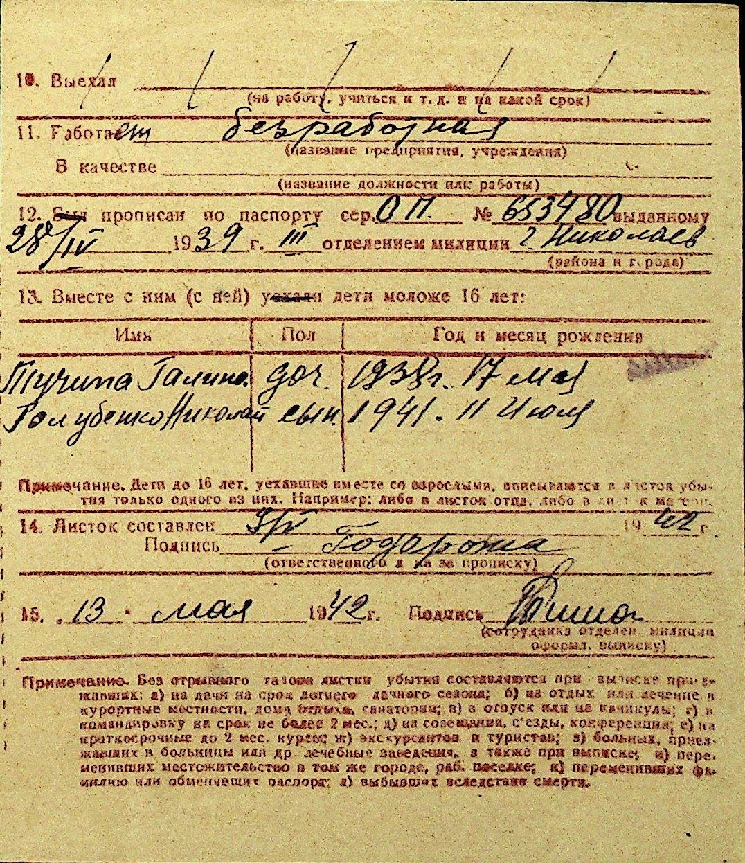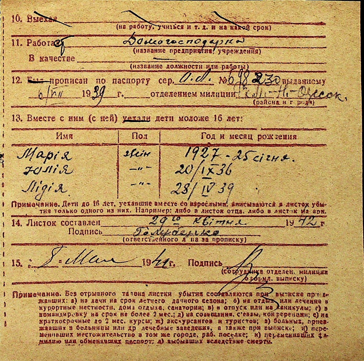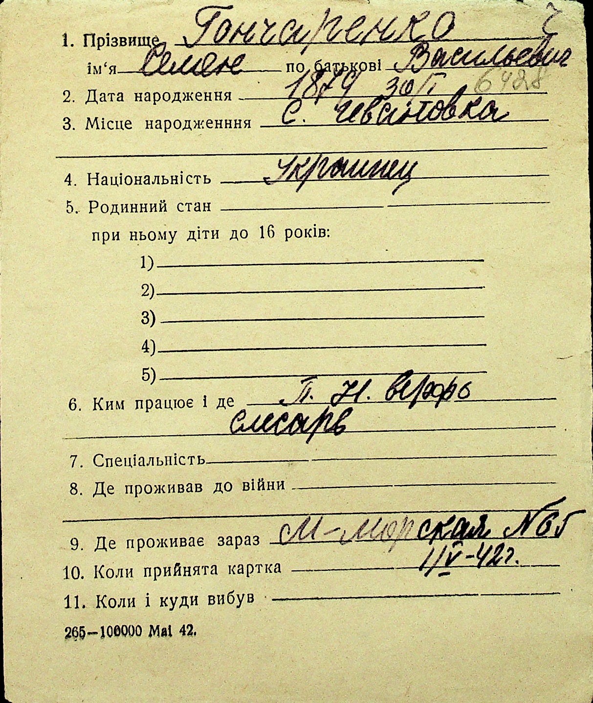 • • Перелік карток до фонду № Н-1016