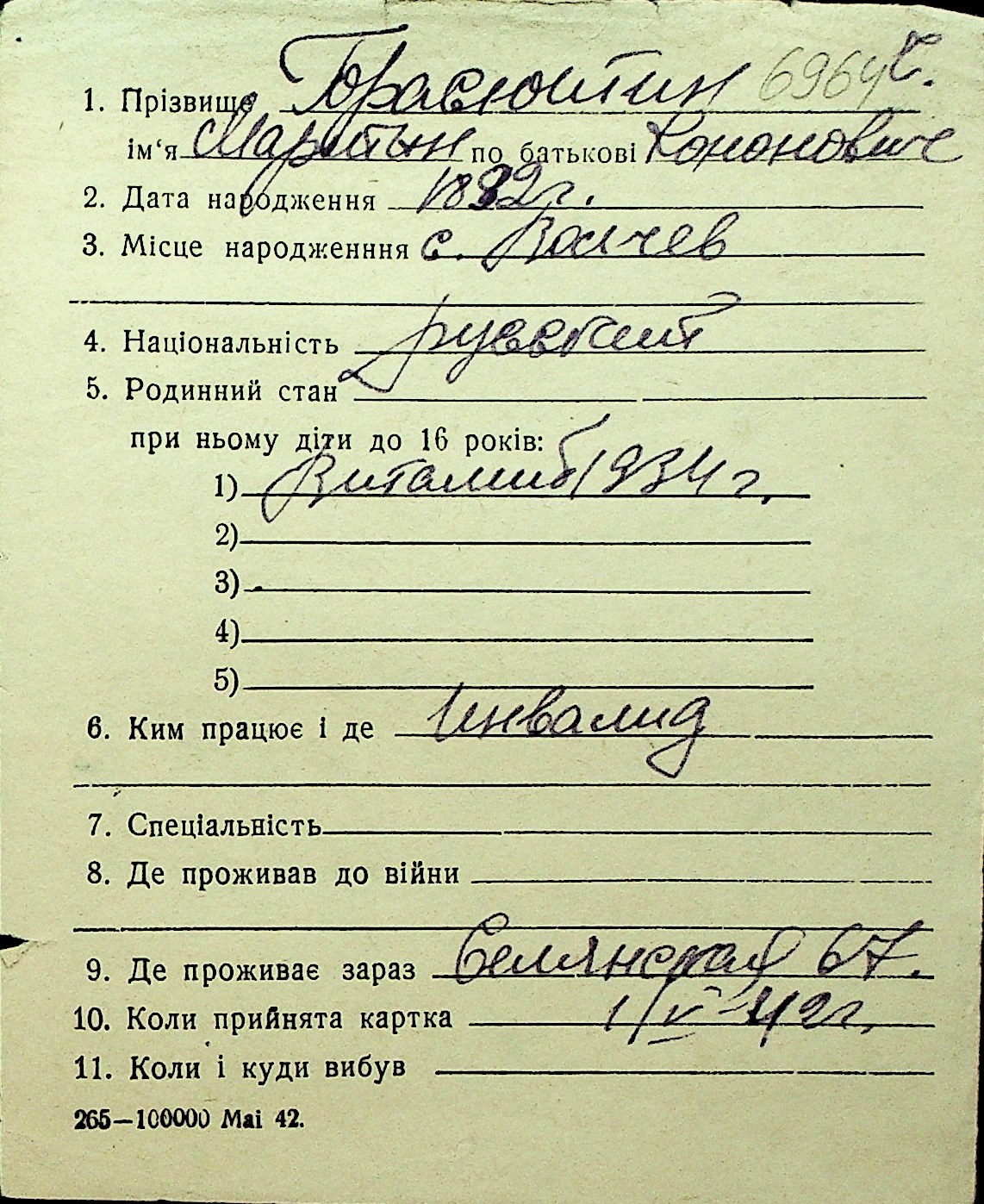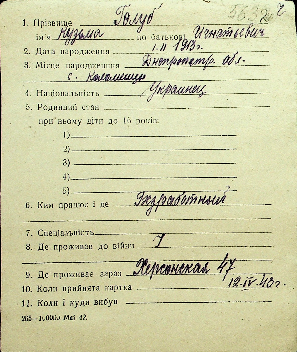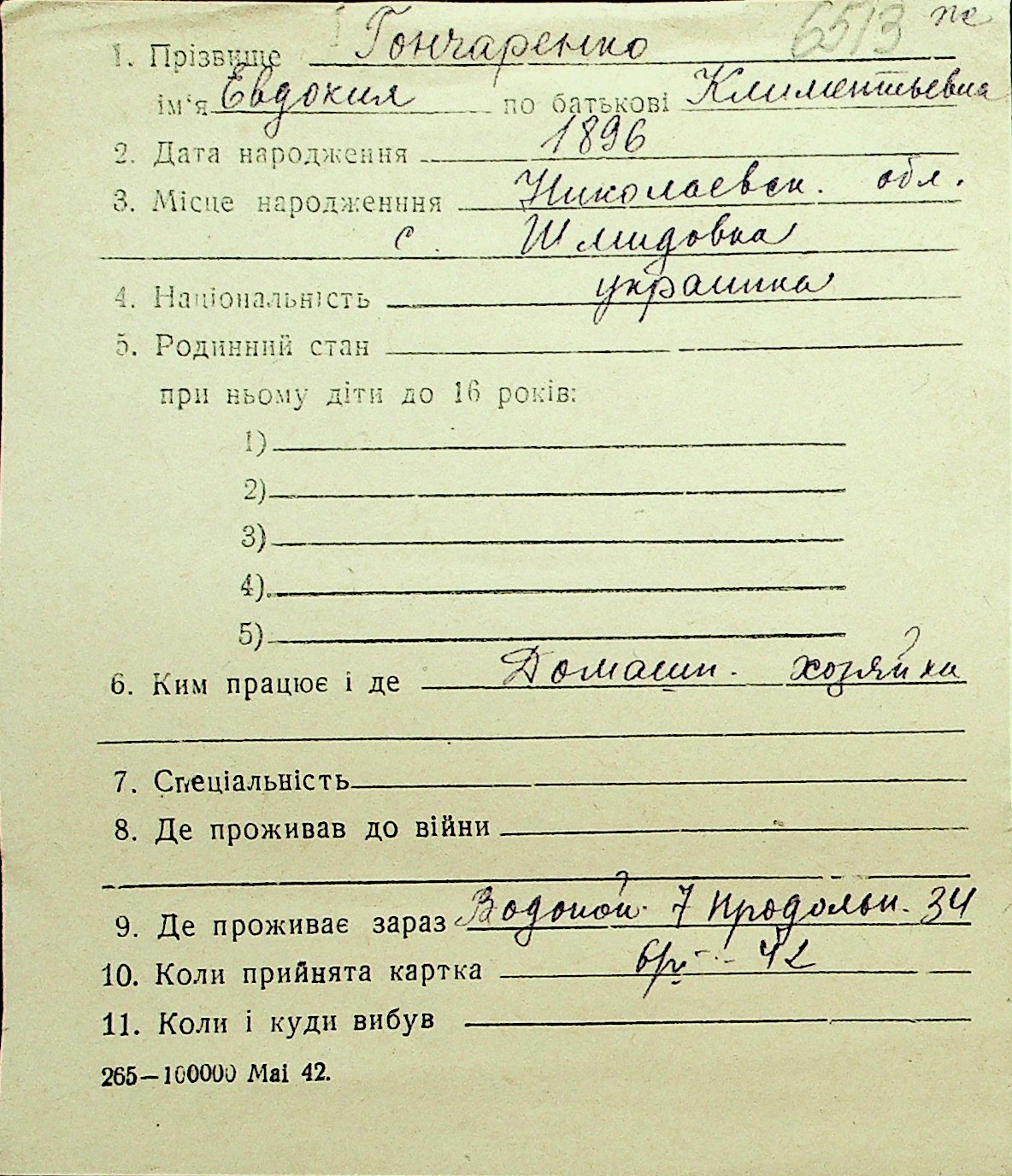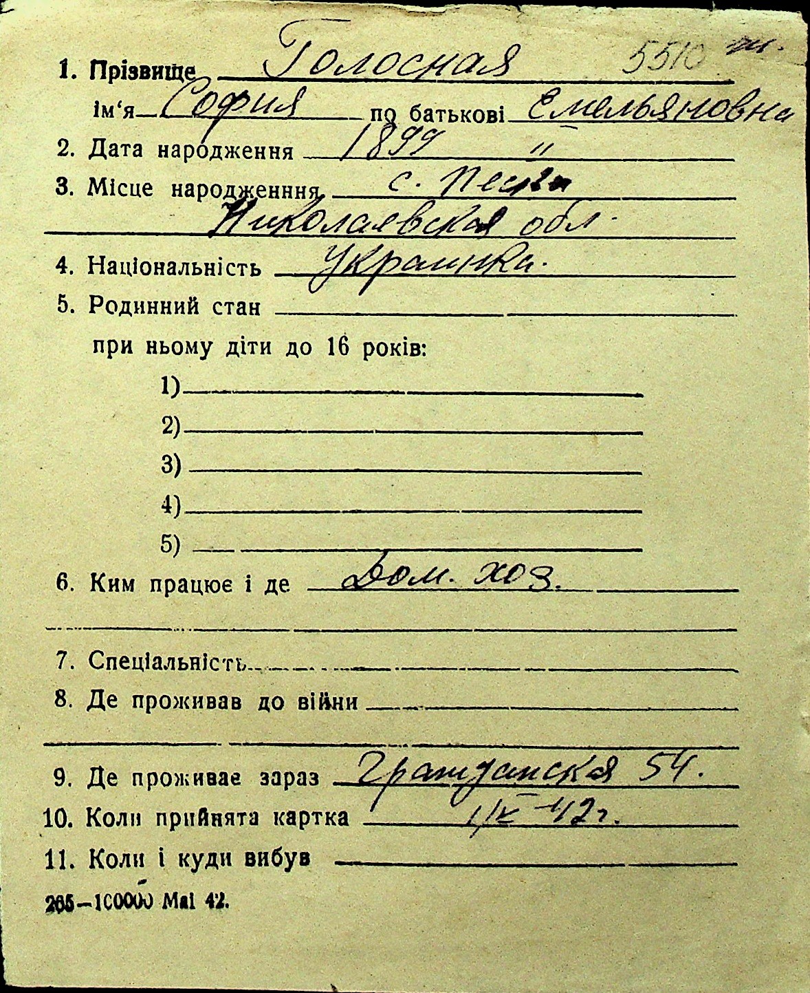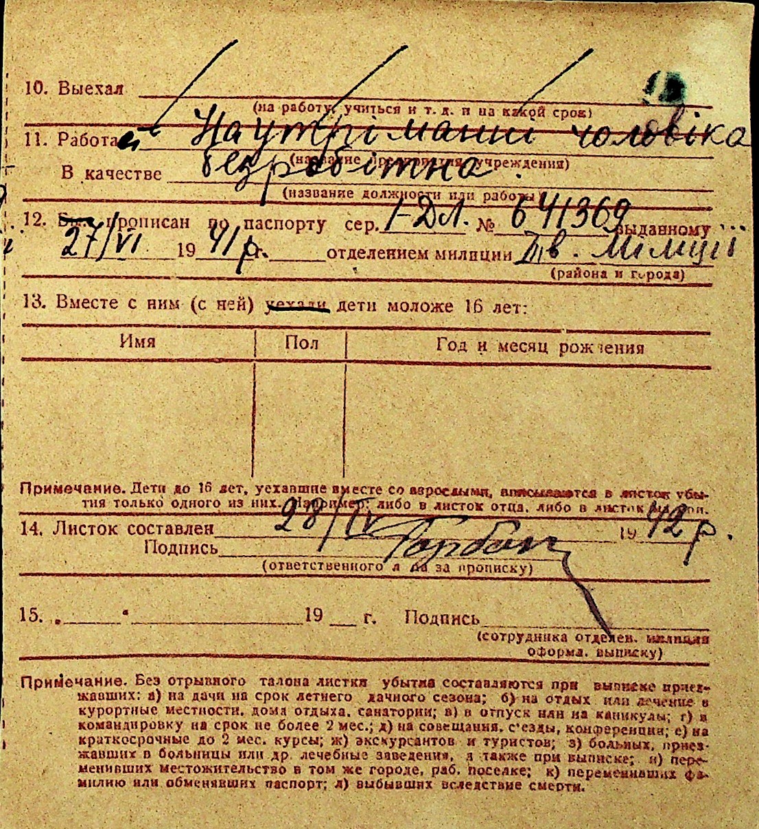 • • Перелік карток до фонду № Н-1016