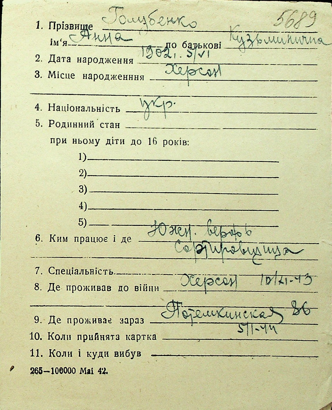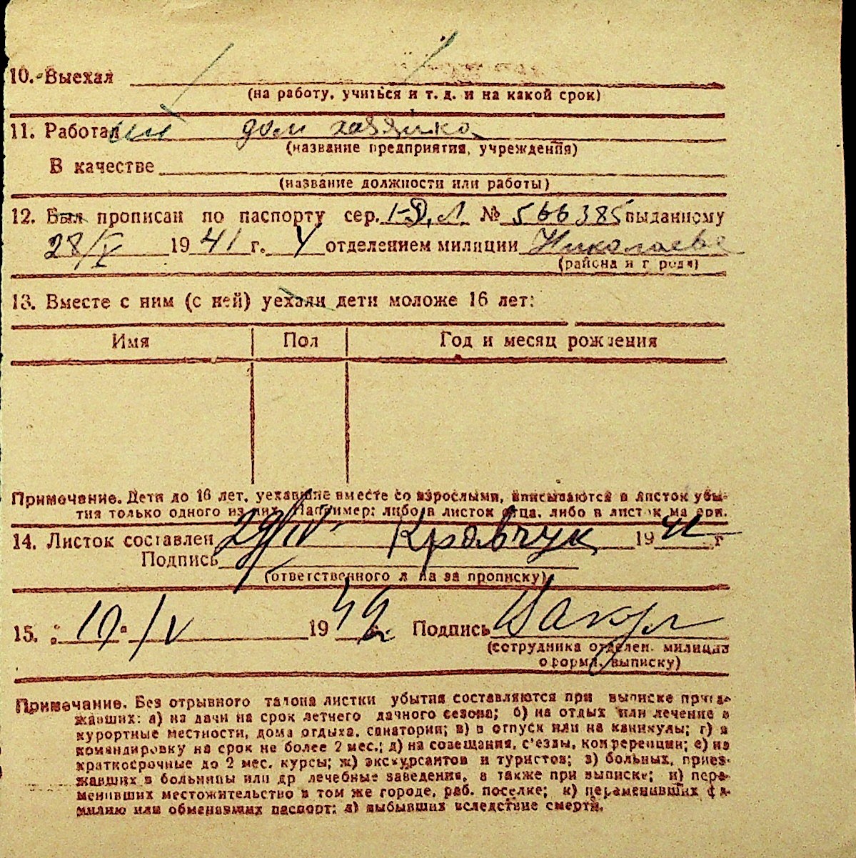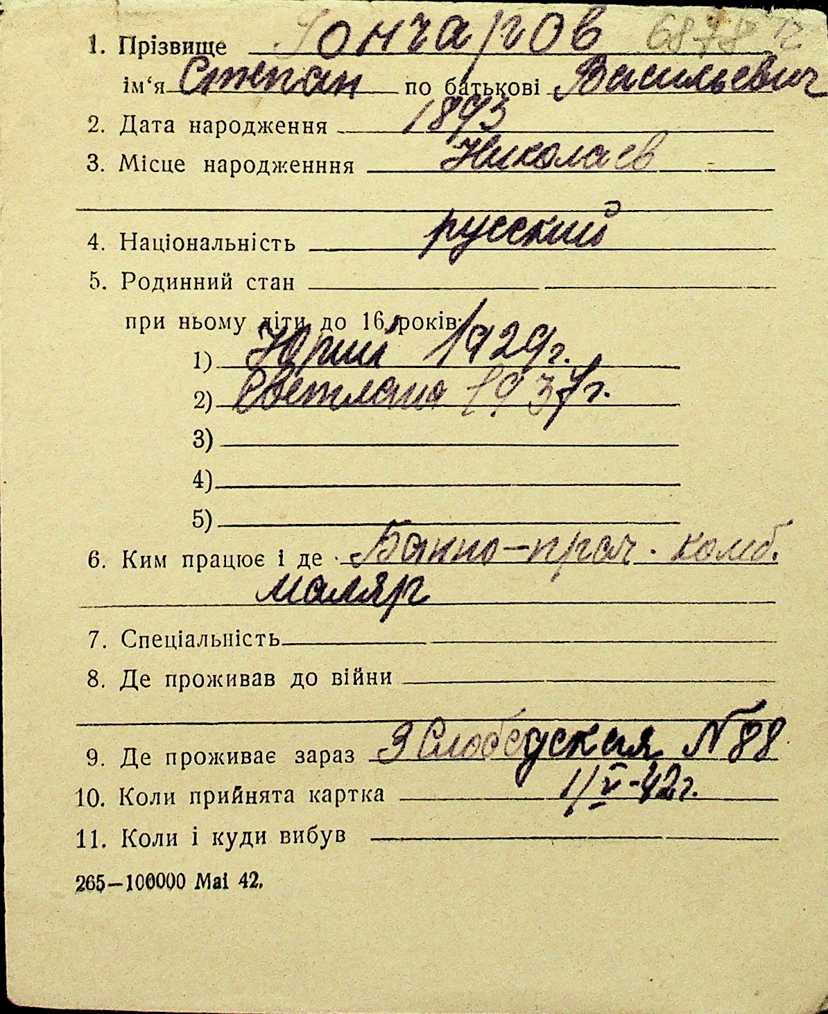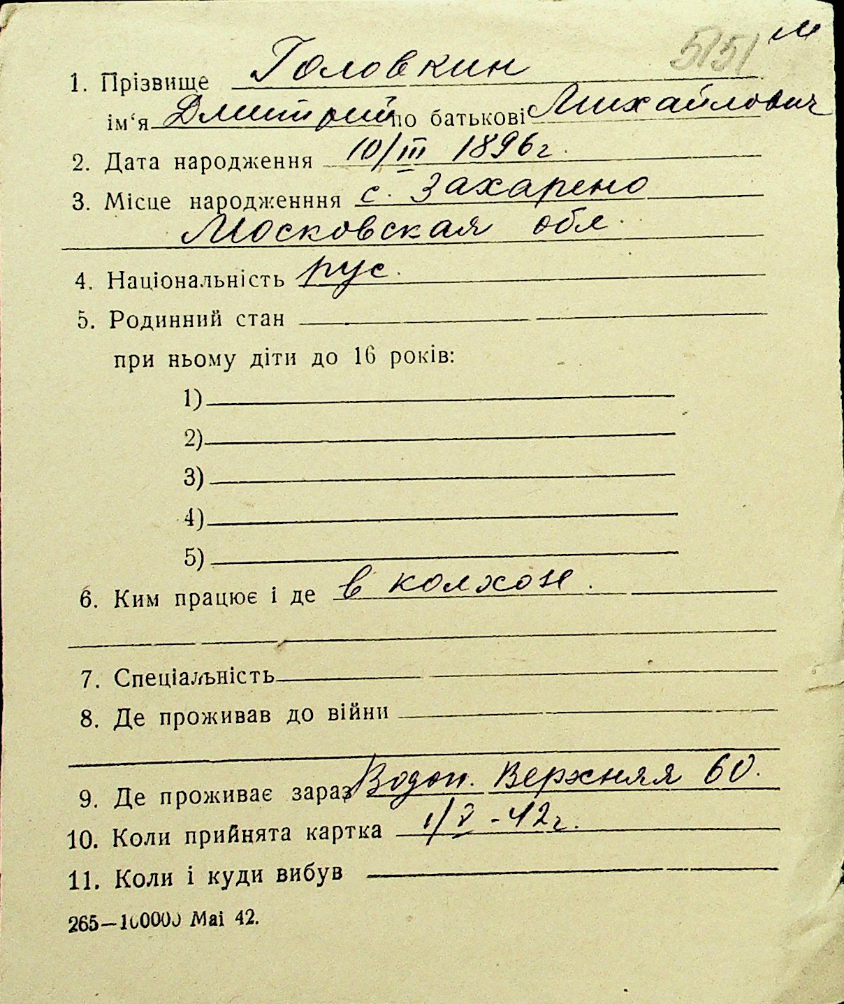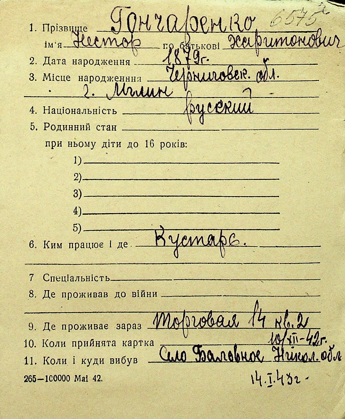 • • Перелік карток до фонду № Н-1016