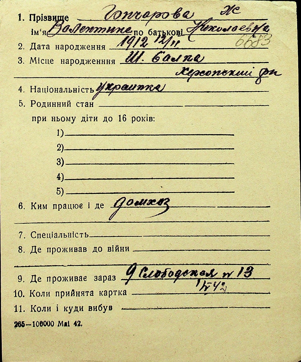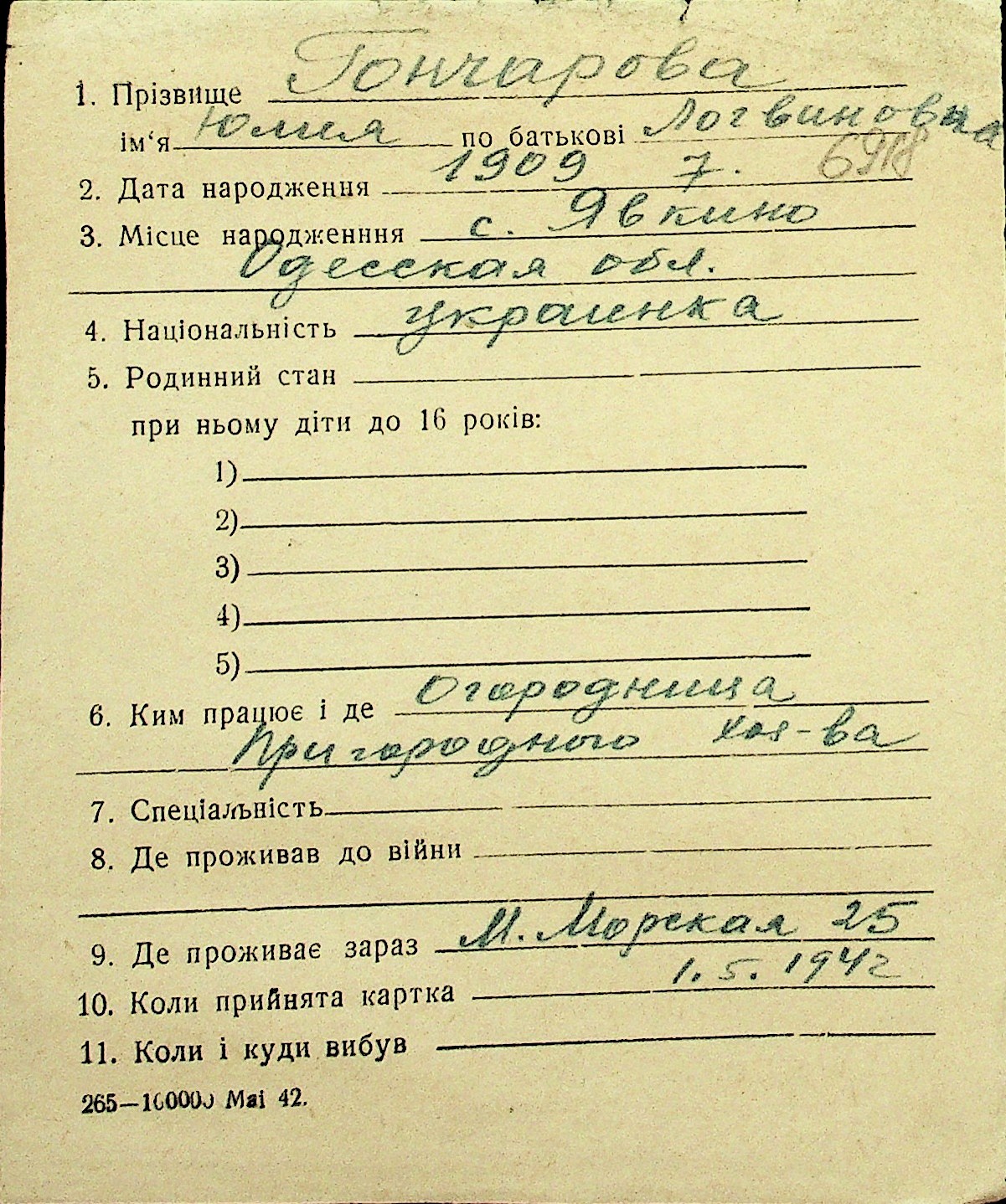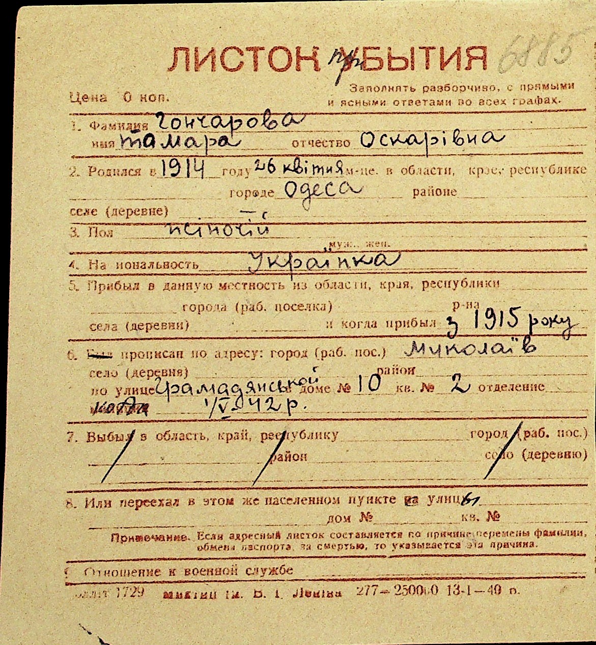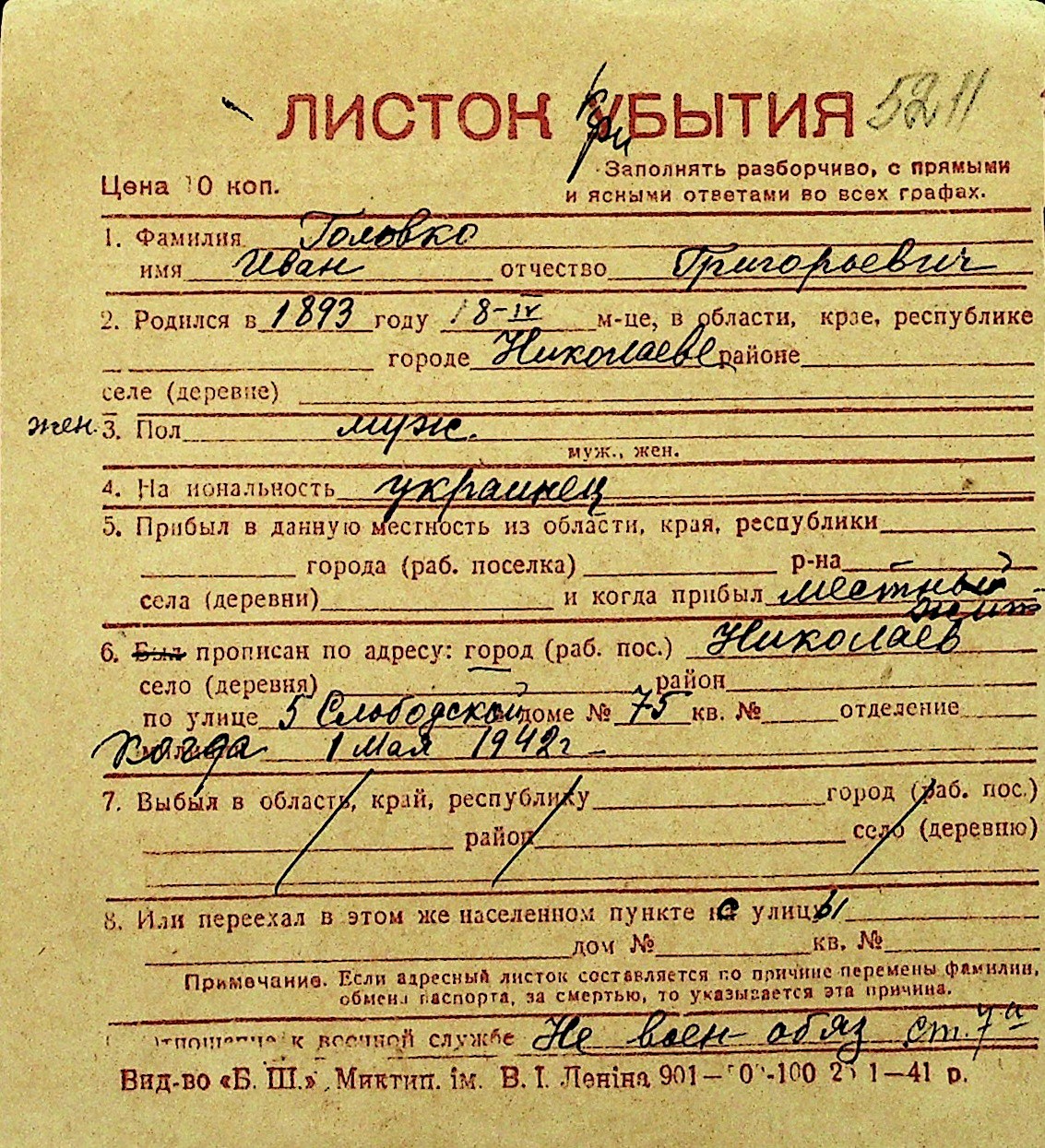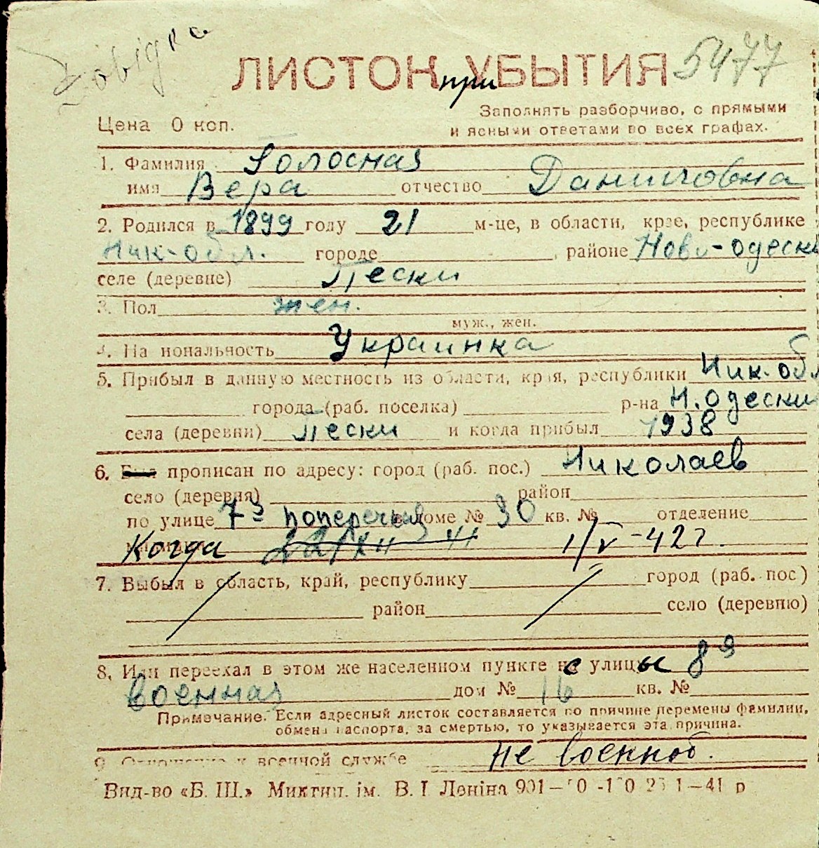 • • Перелік карток до фонду № Н-1016