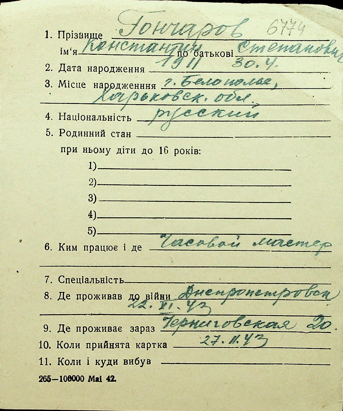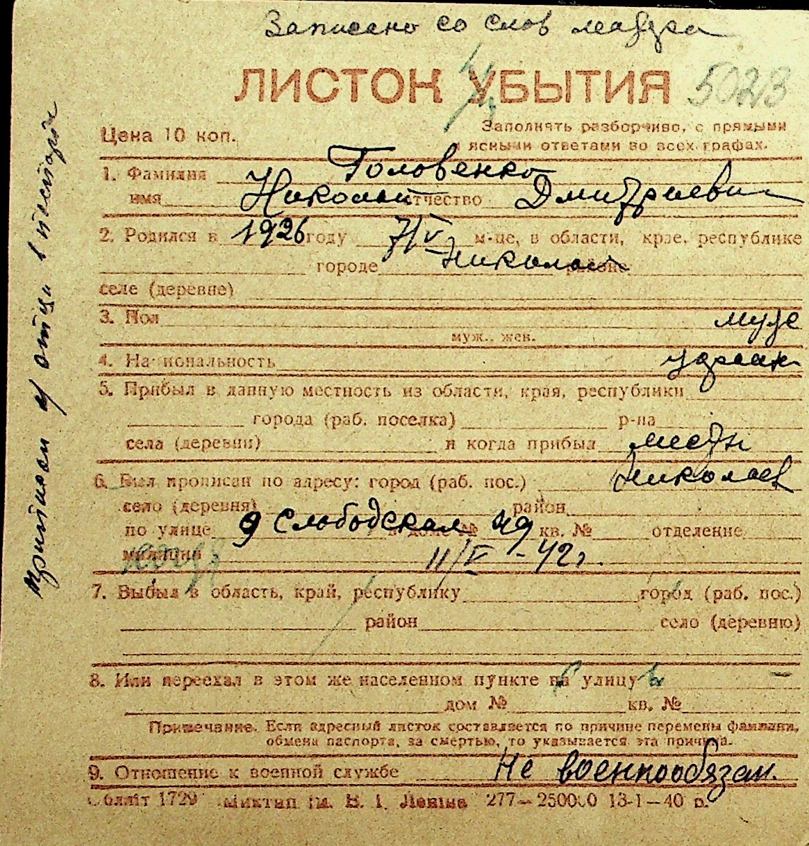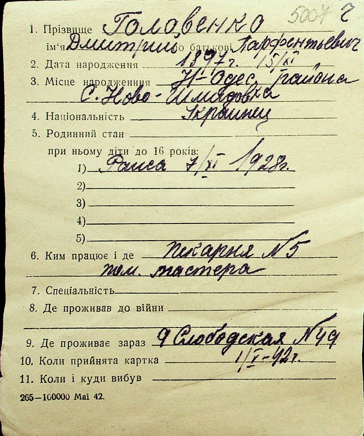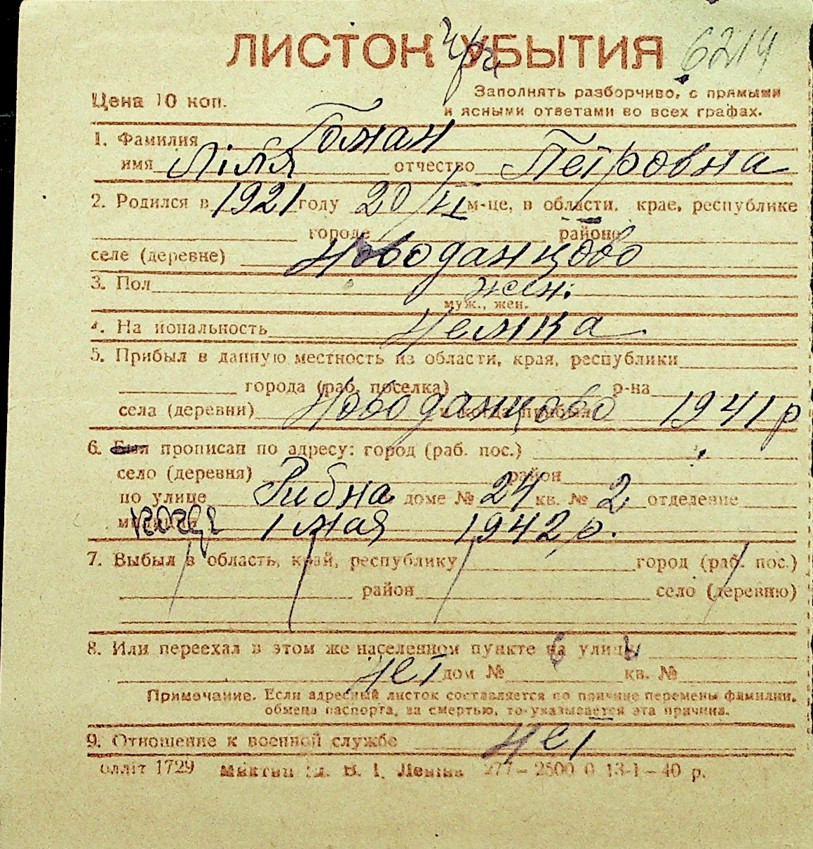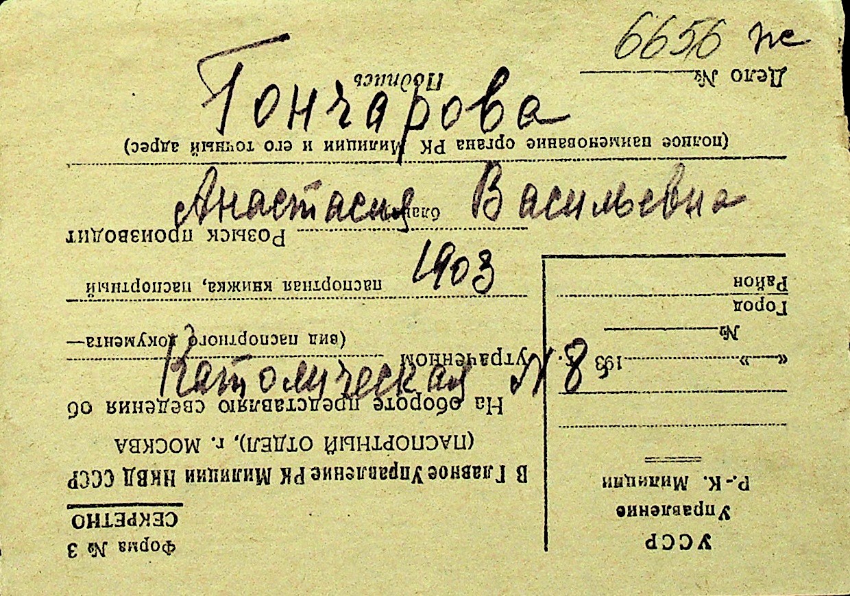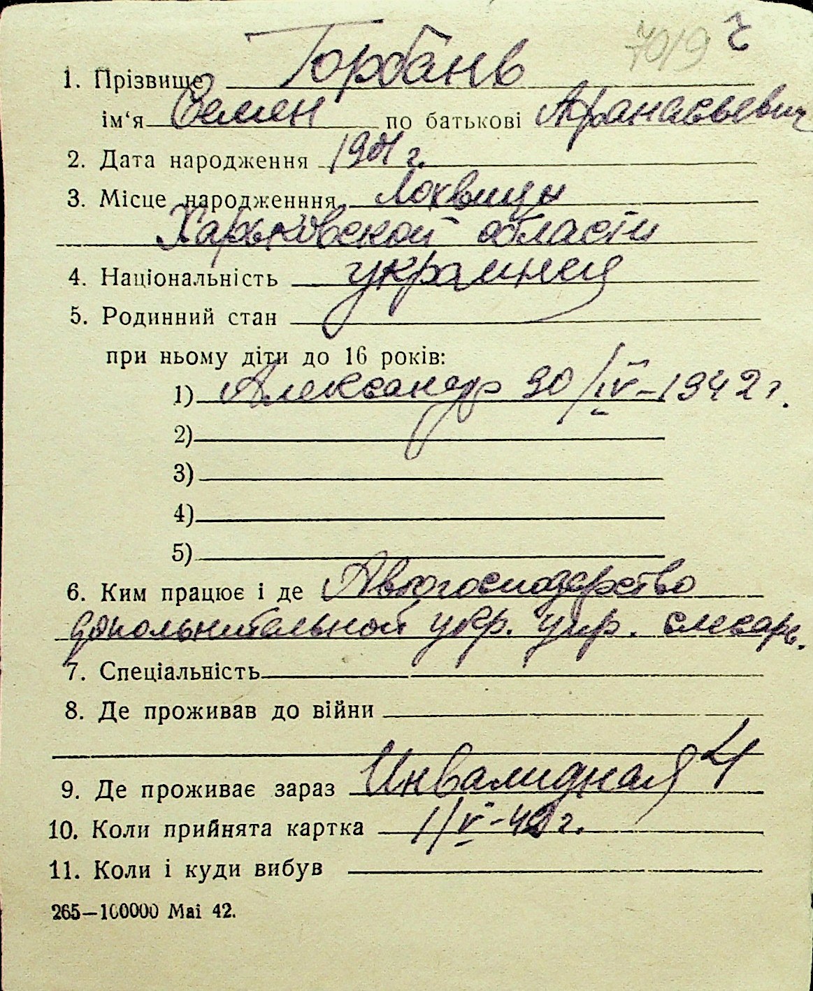 • • Перелік карток до фонду № Н-1016
