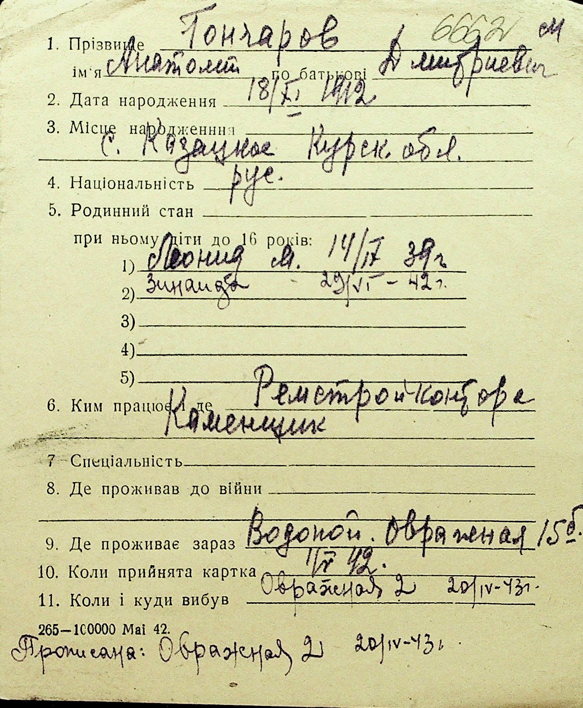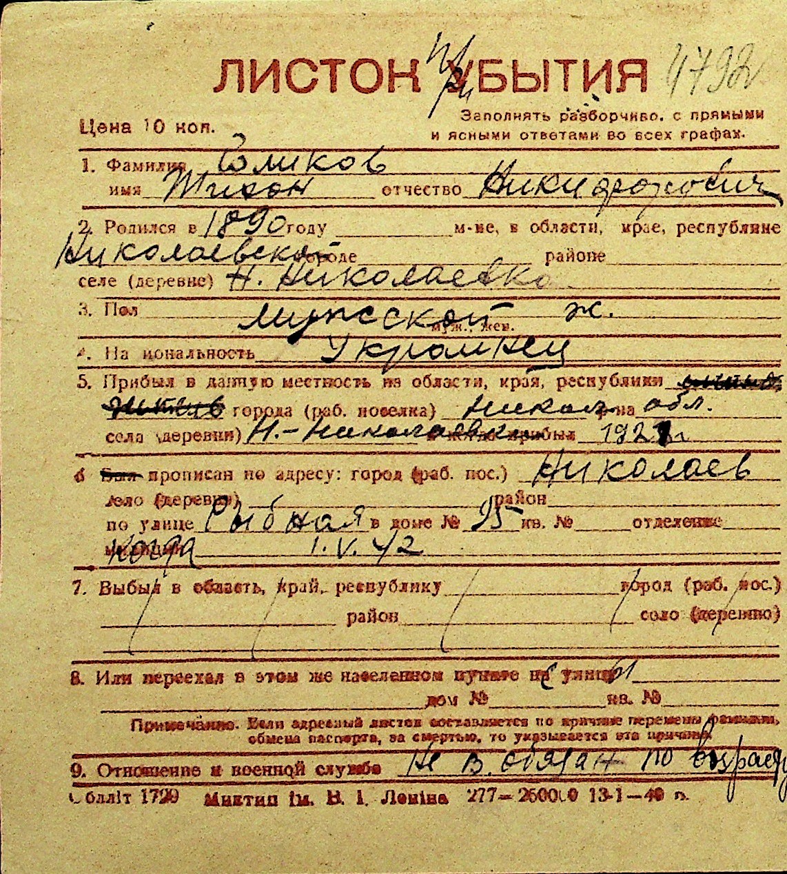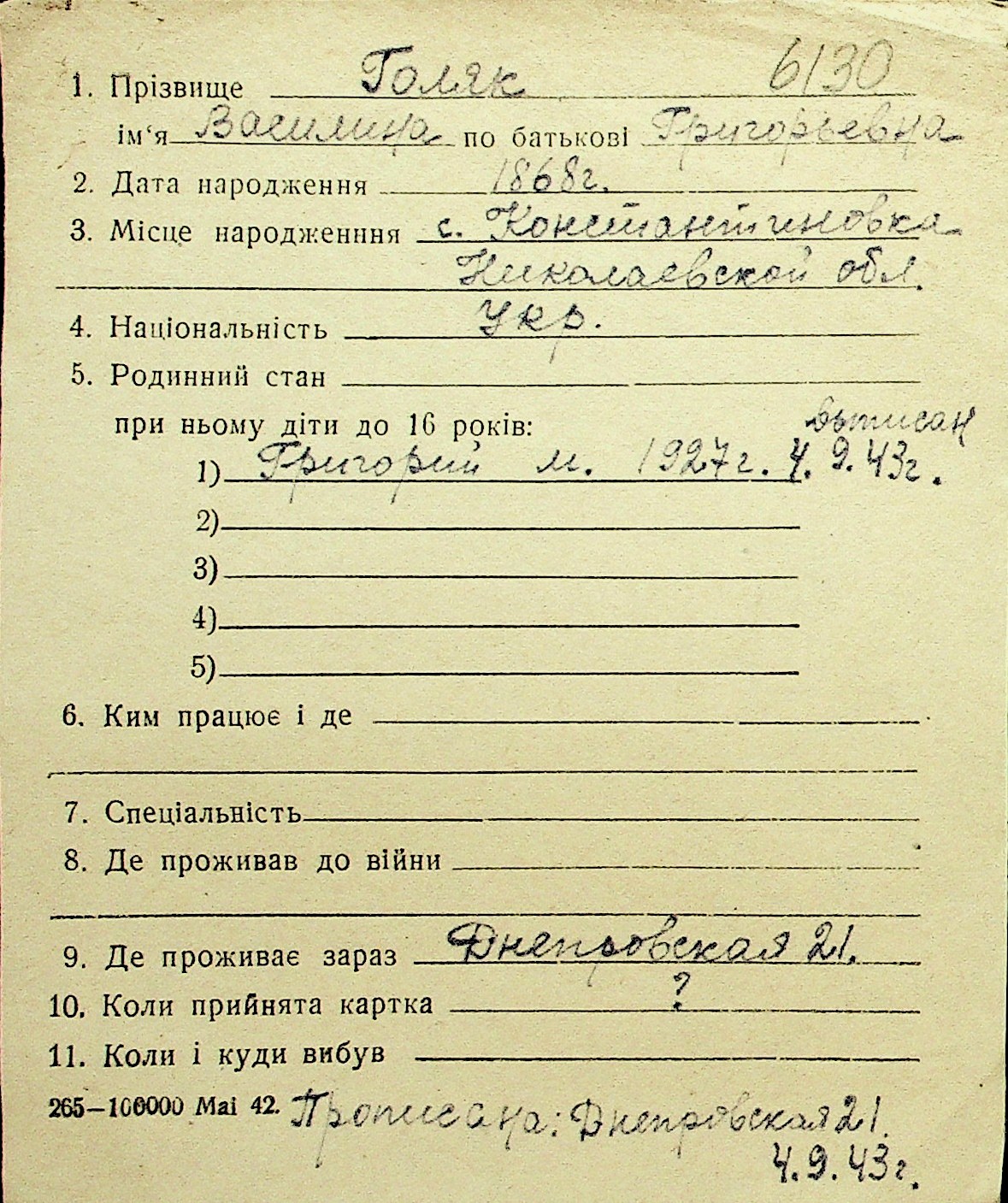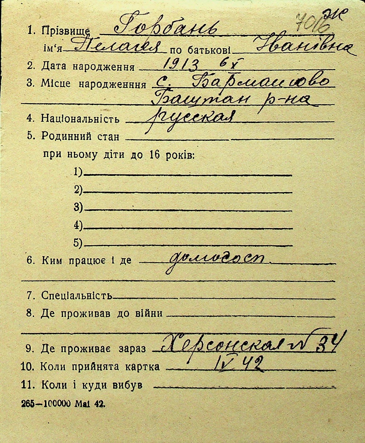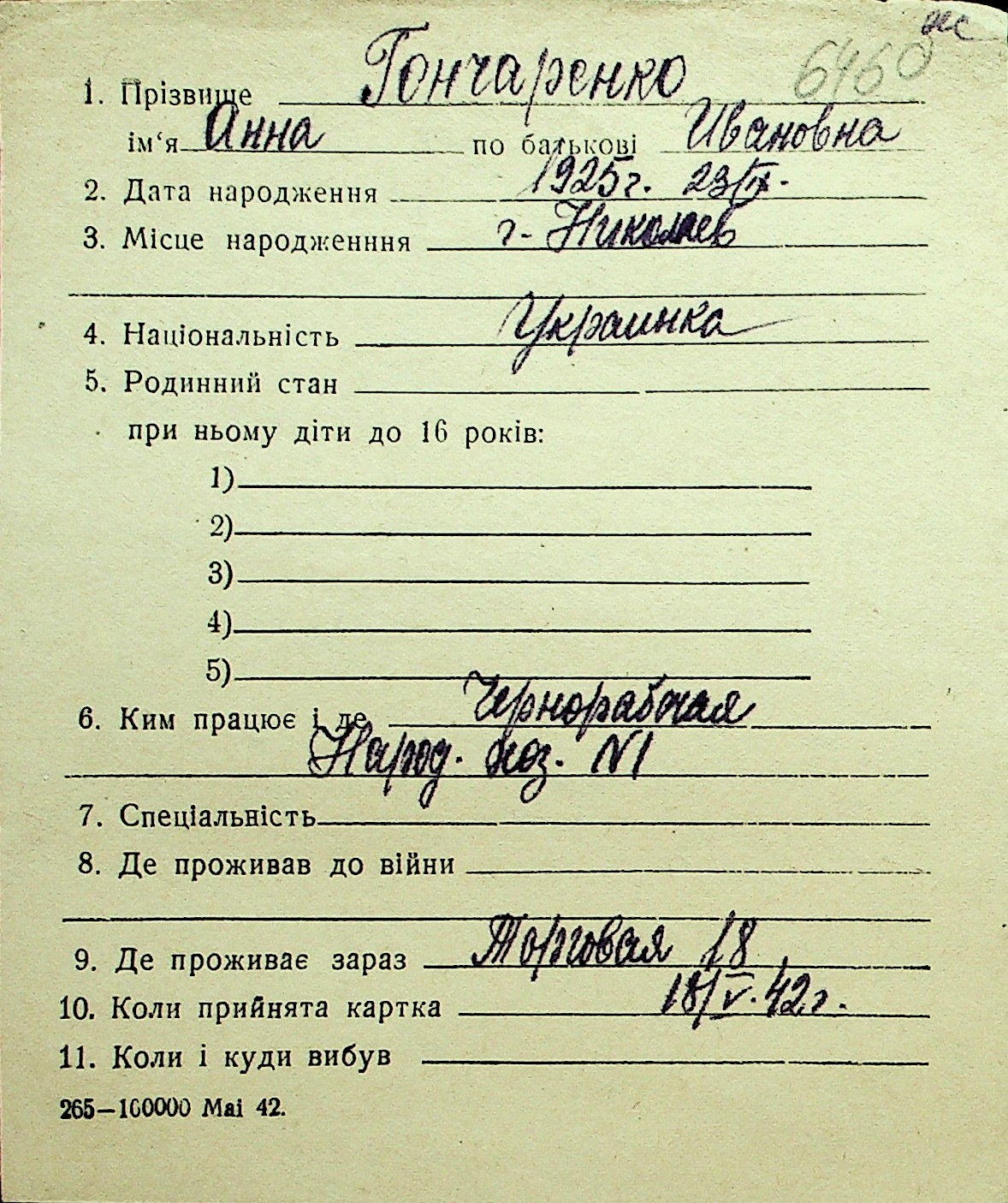 • • Перелік карток до фонду № Н-1016