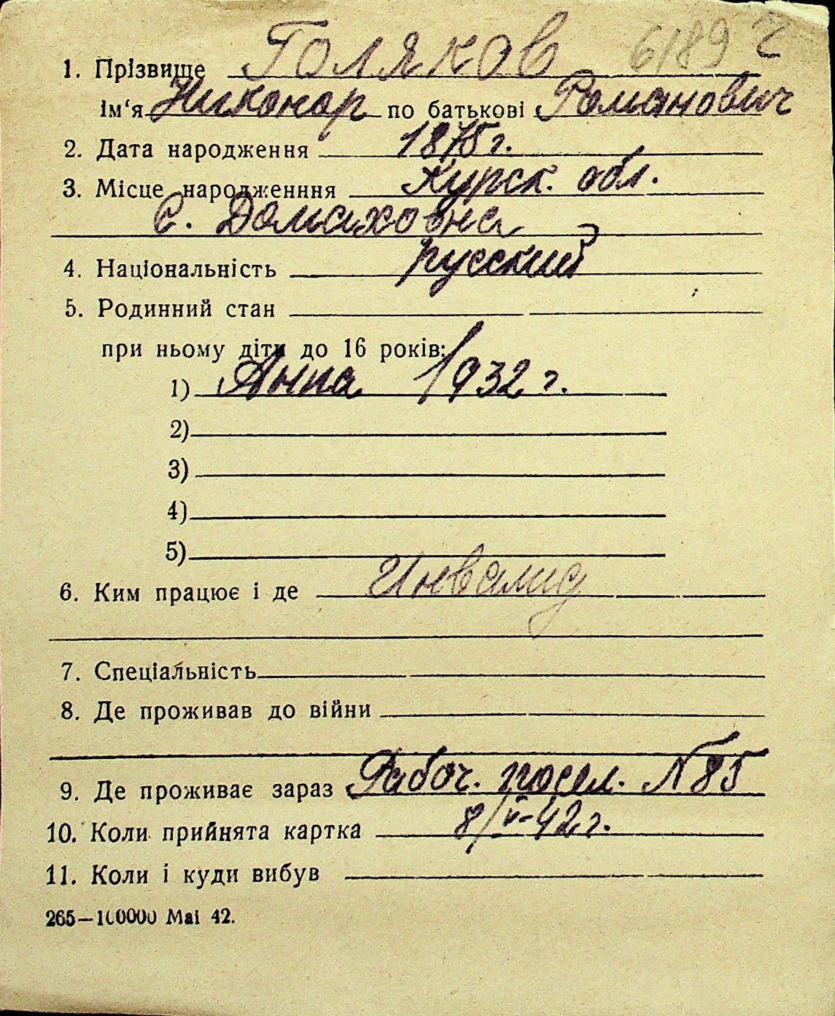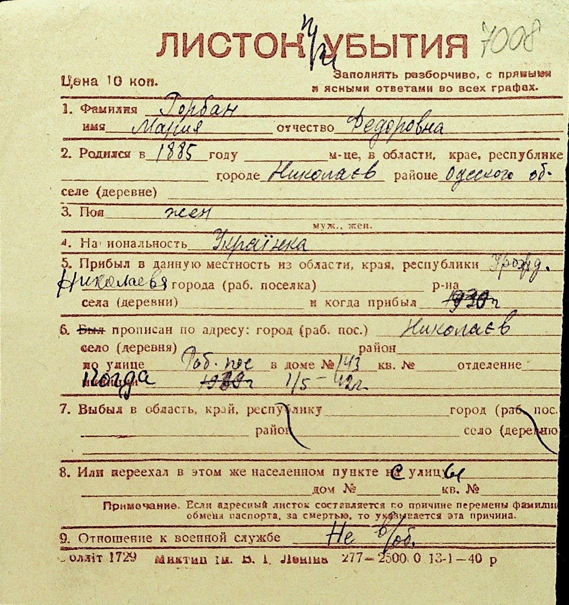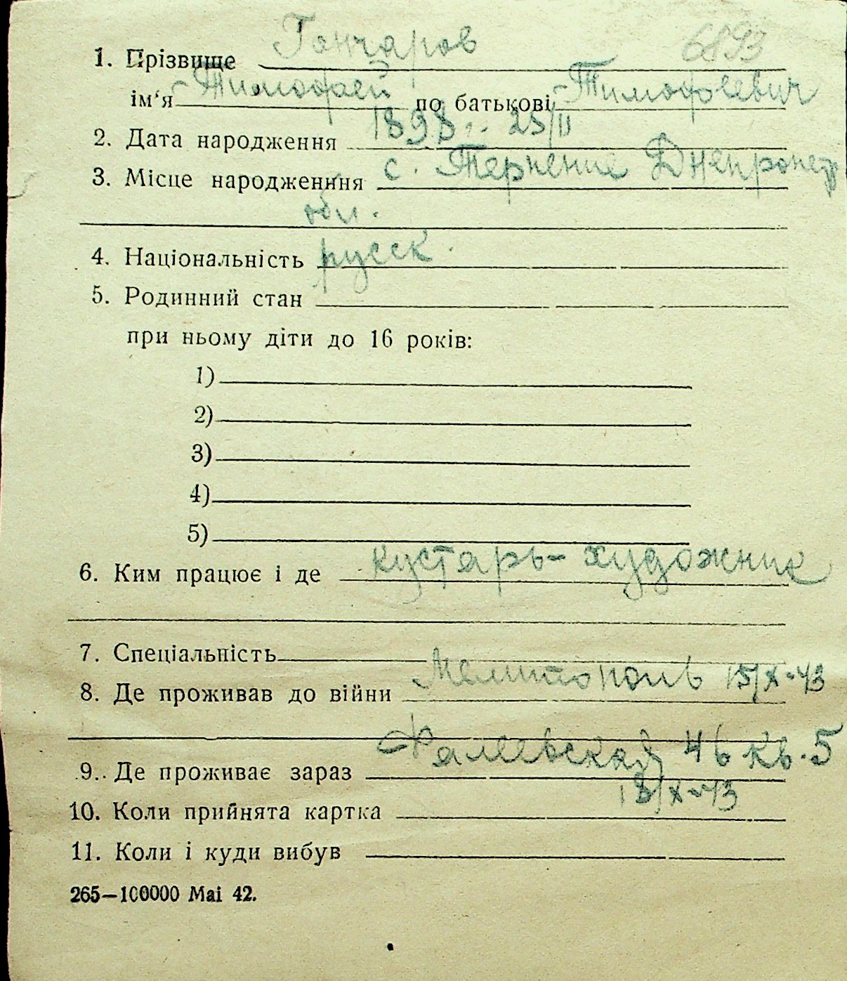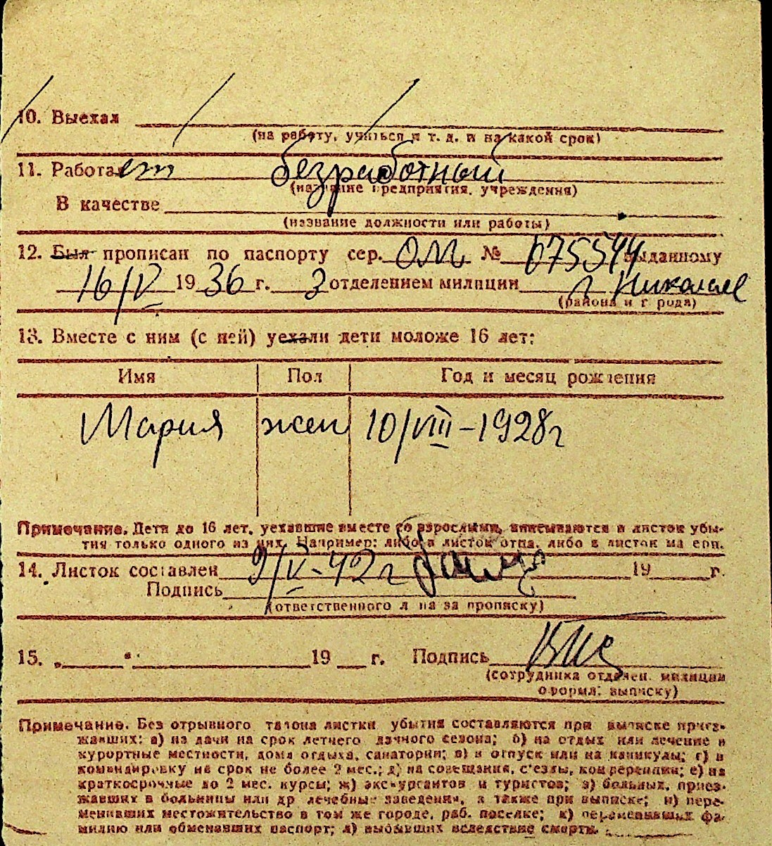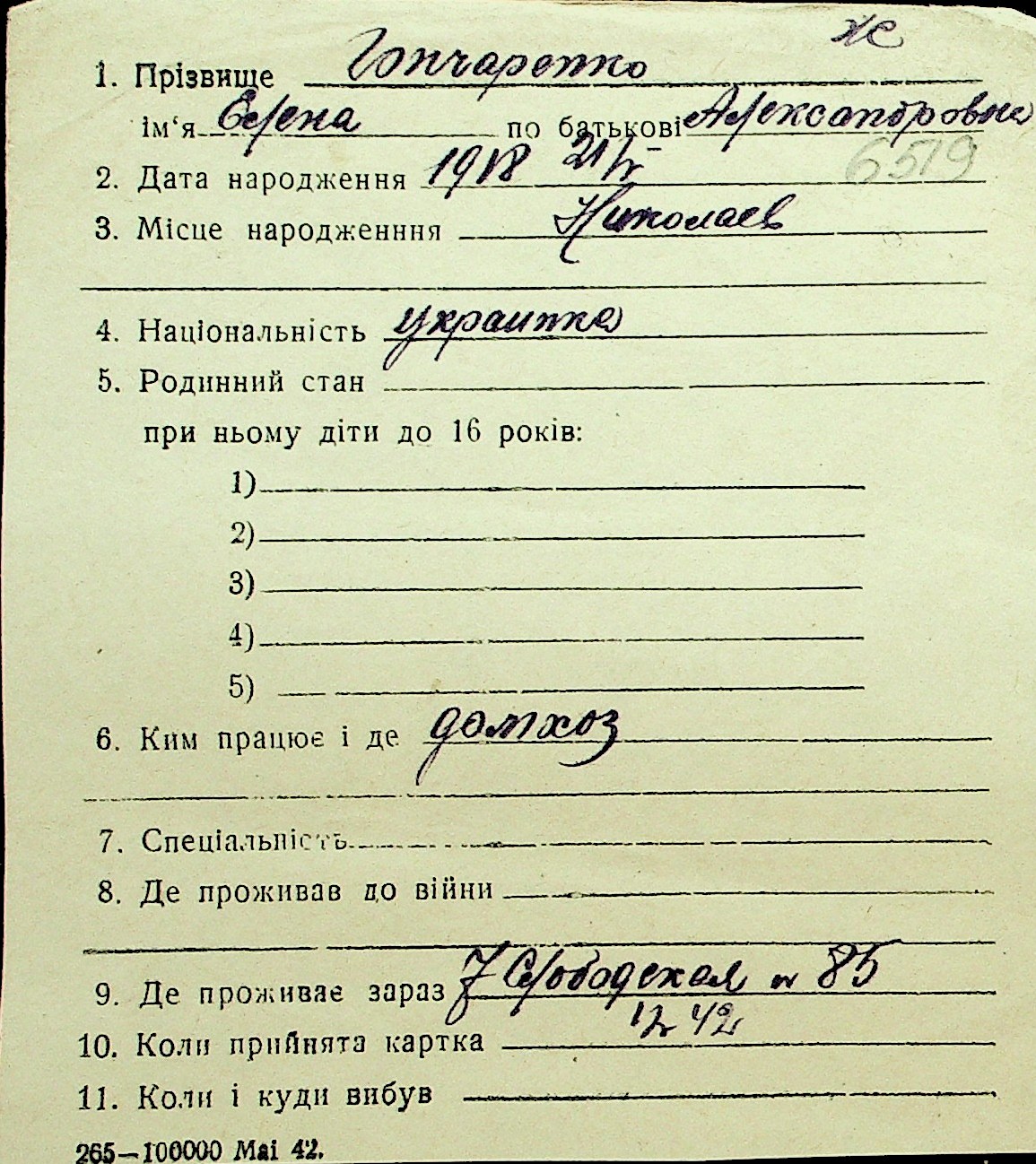 • • Перелік карток до фонду № Н-1016