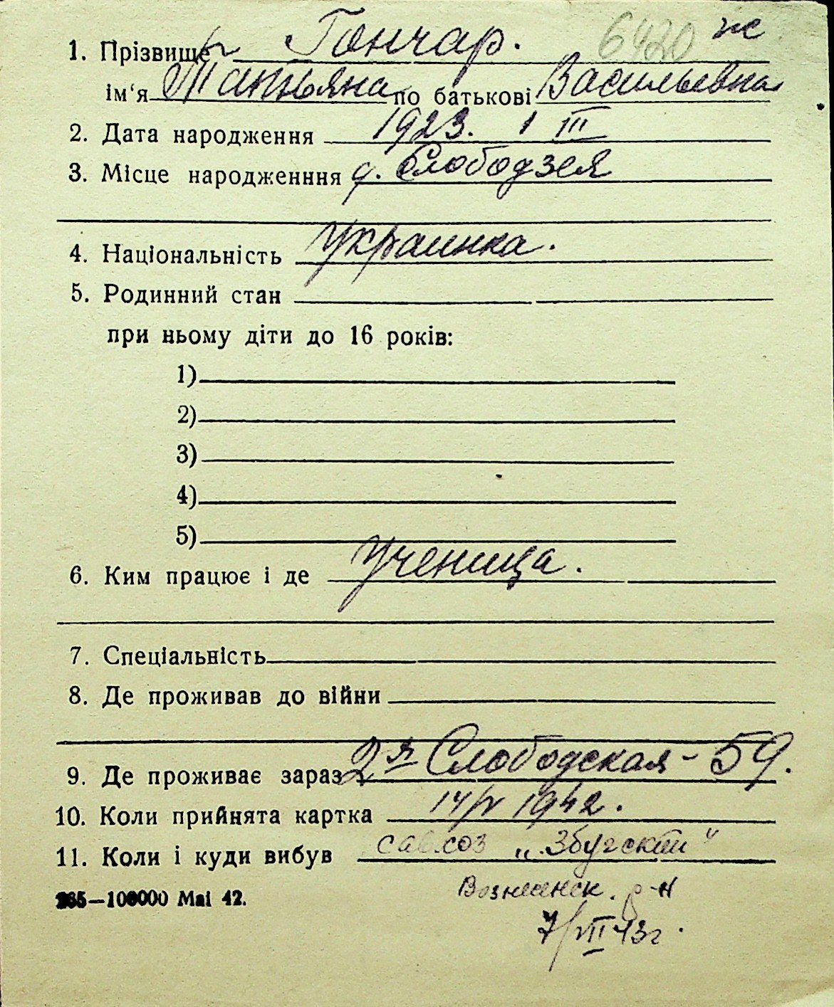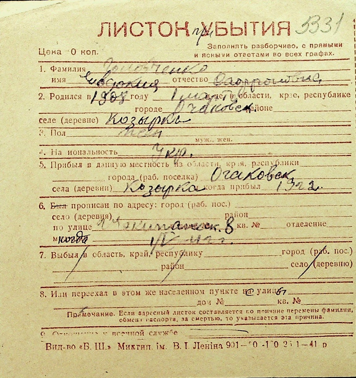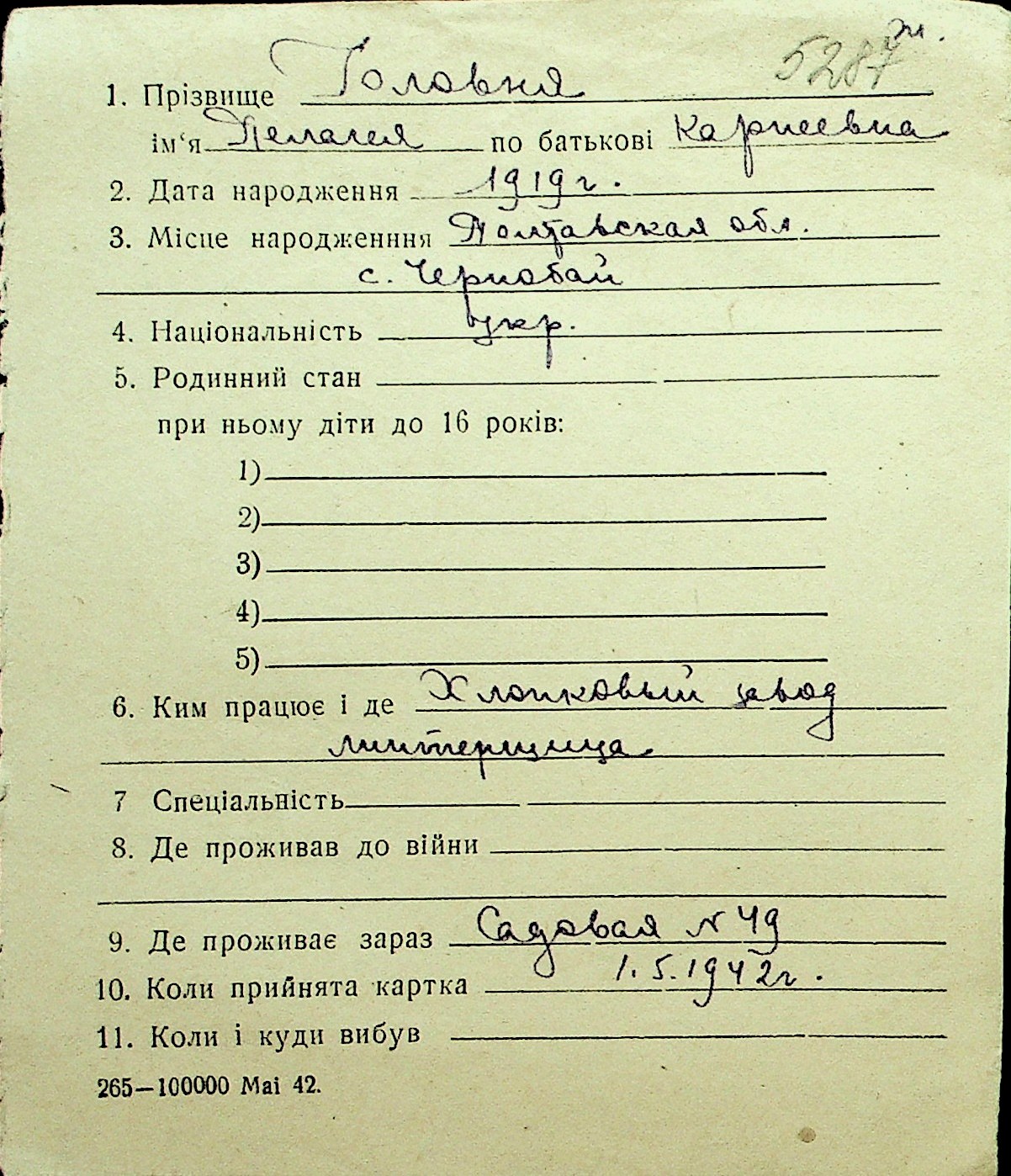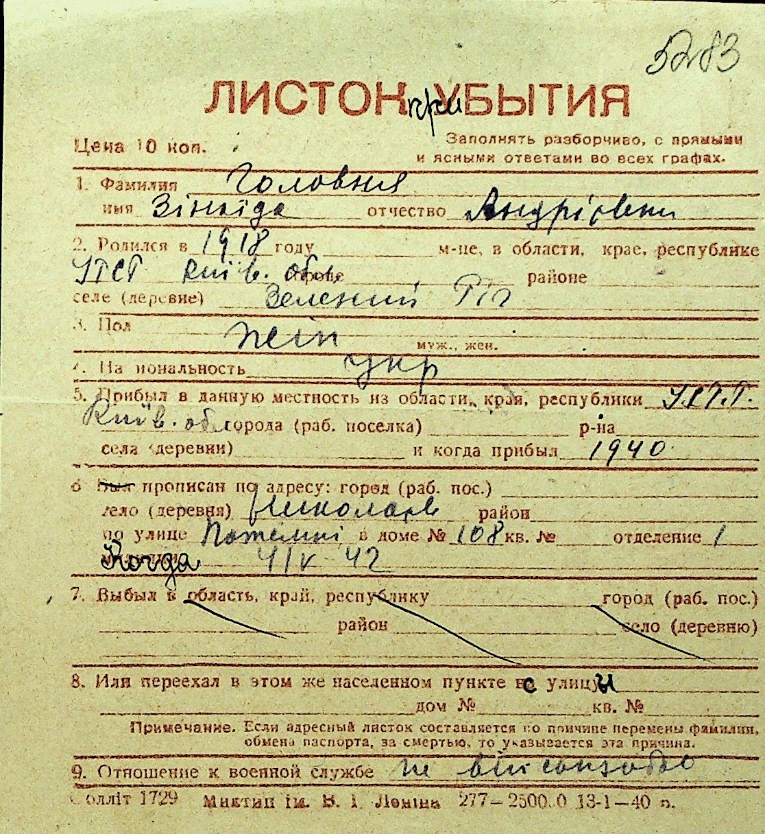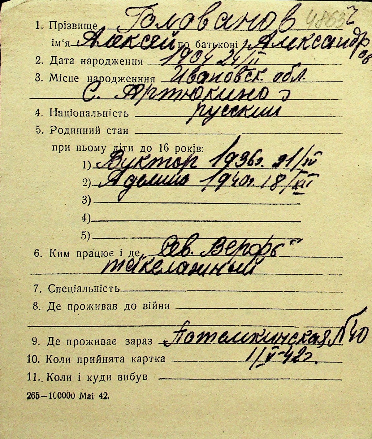 • • Перелік карток до фонду № Н-1016