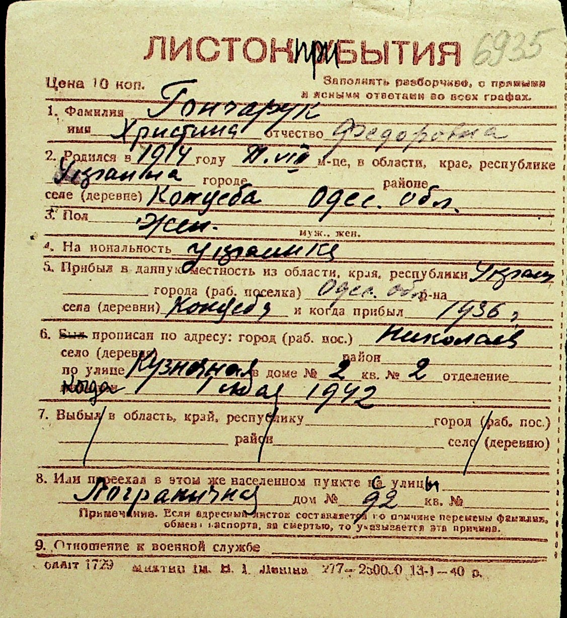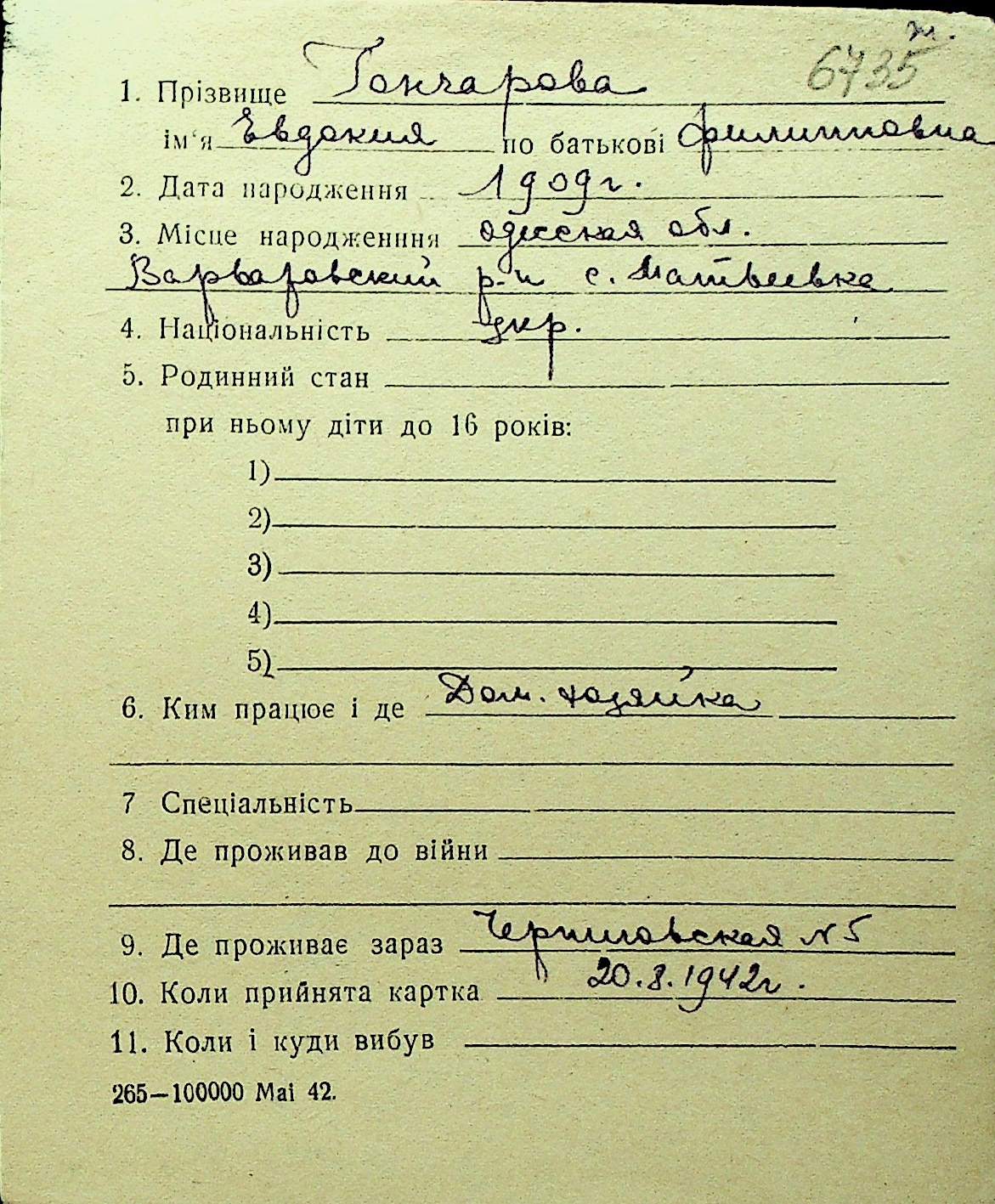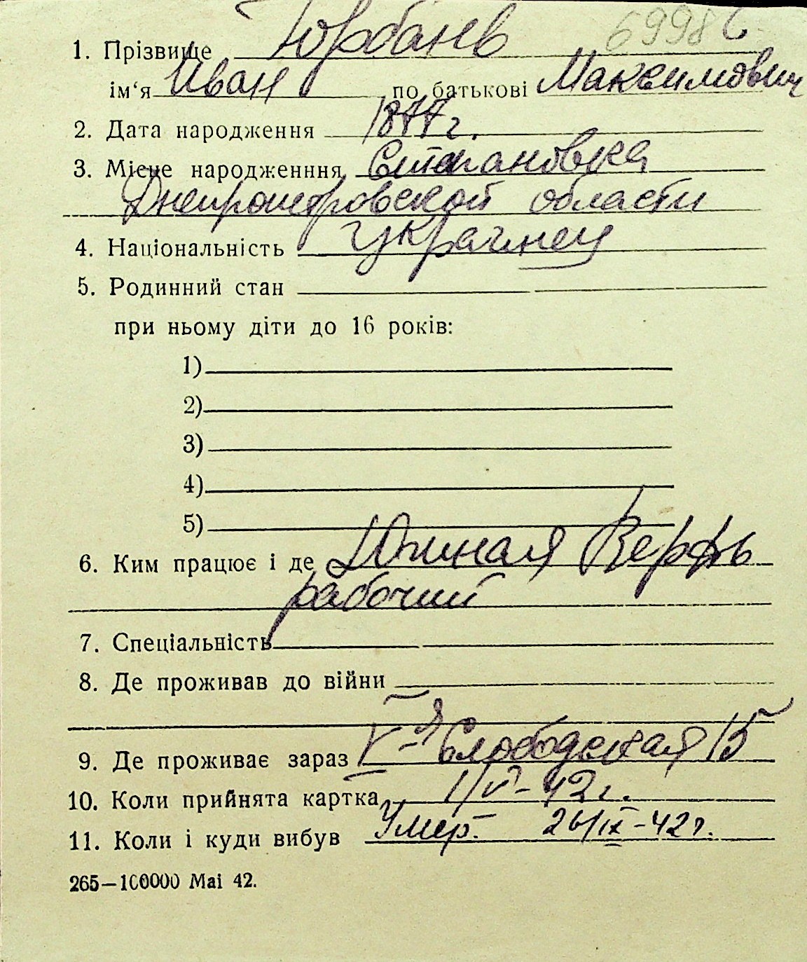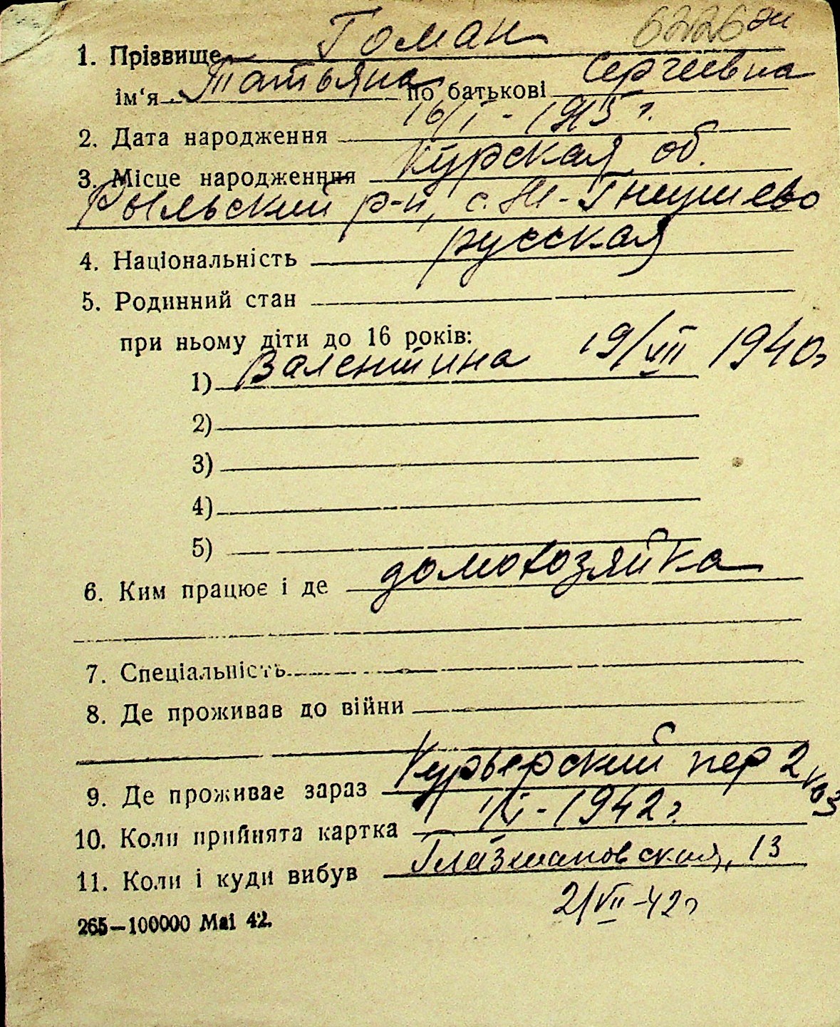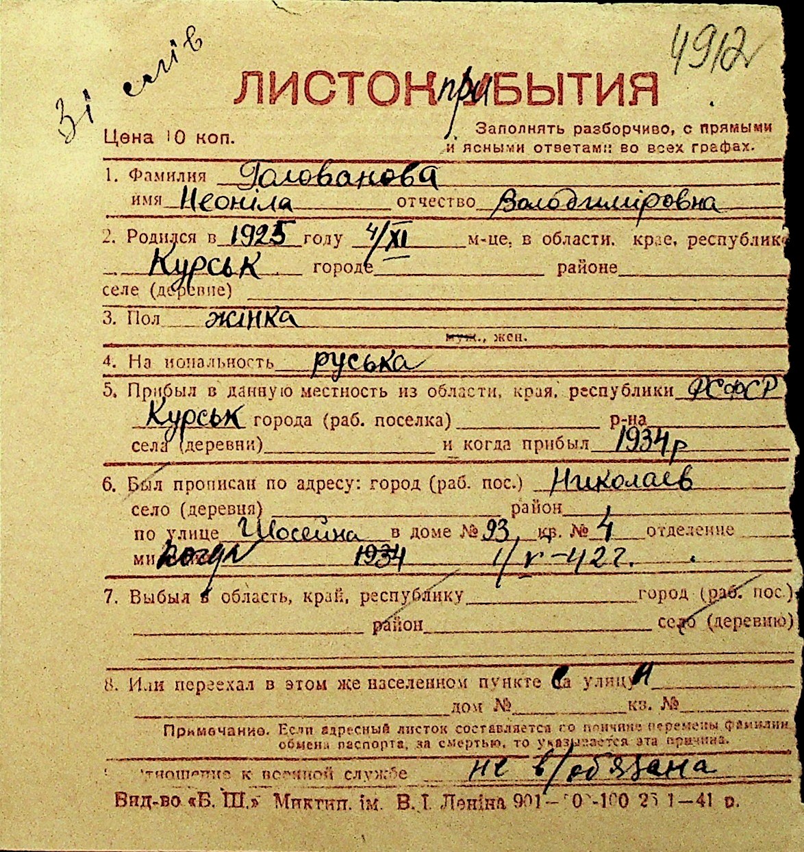 • • Перелік карток до фонду № Н-1016