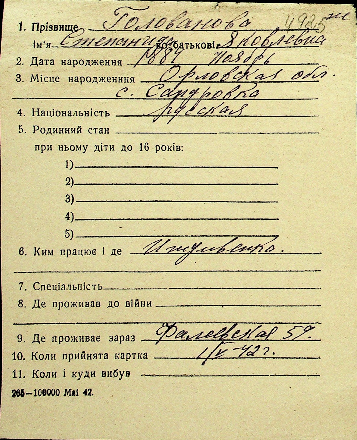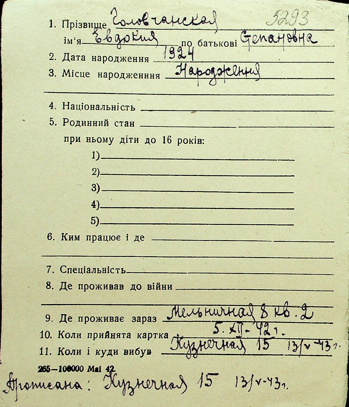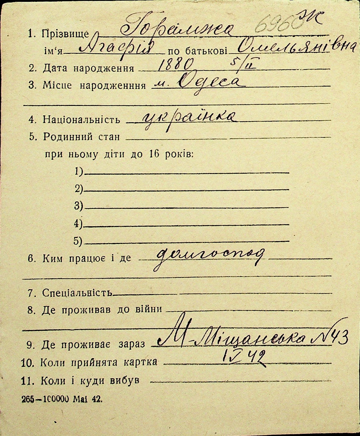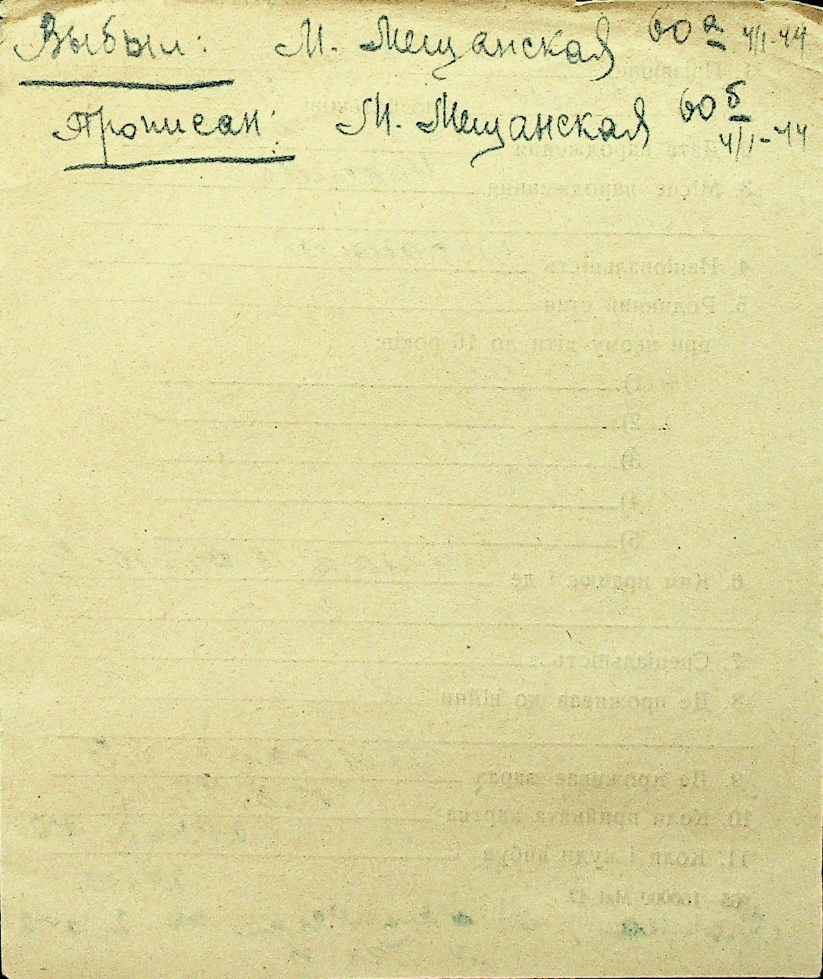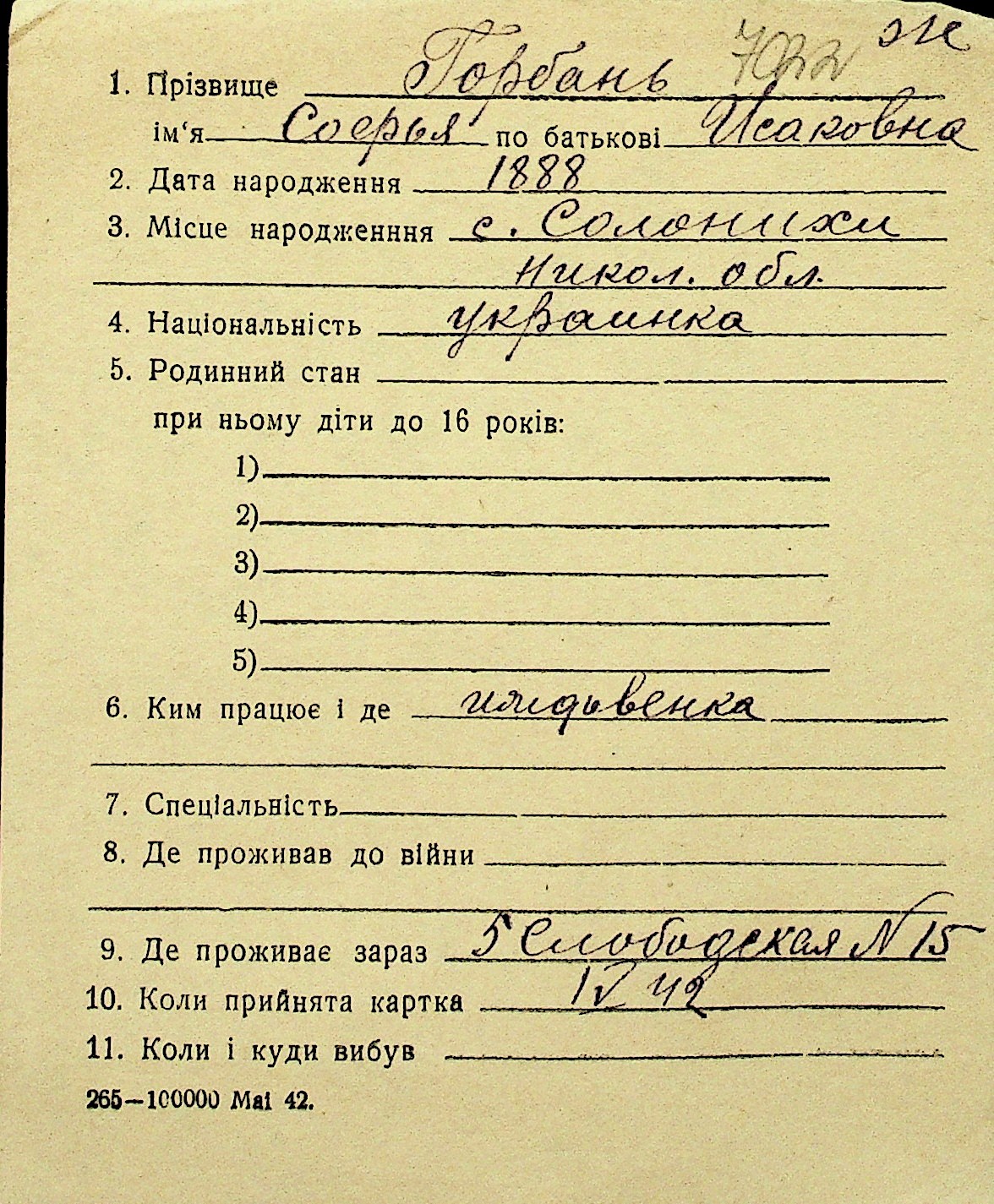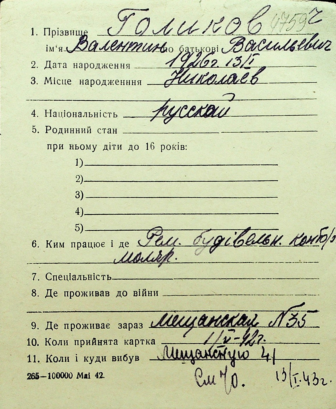 • • Перелік карток до фонду № Н-1016