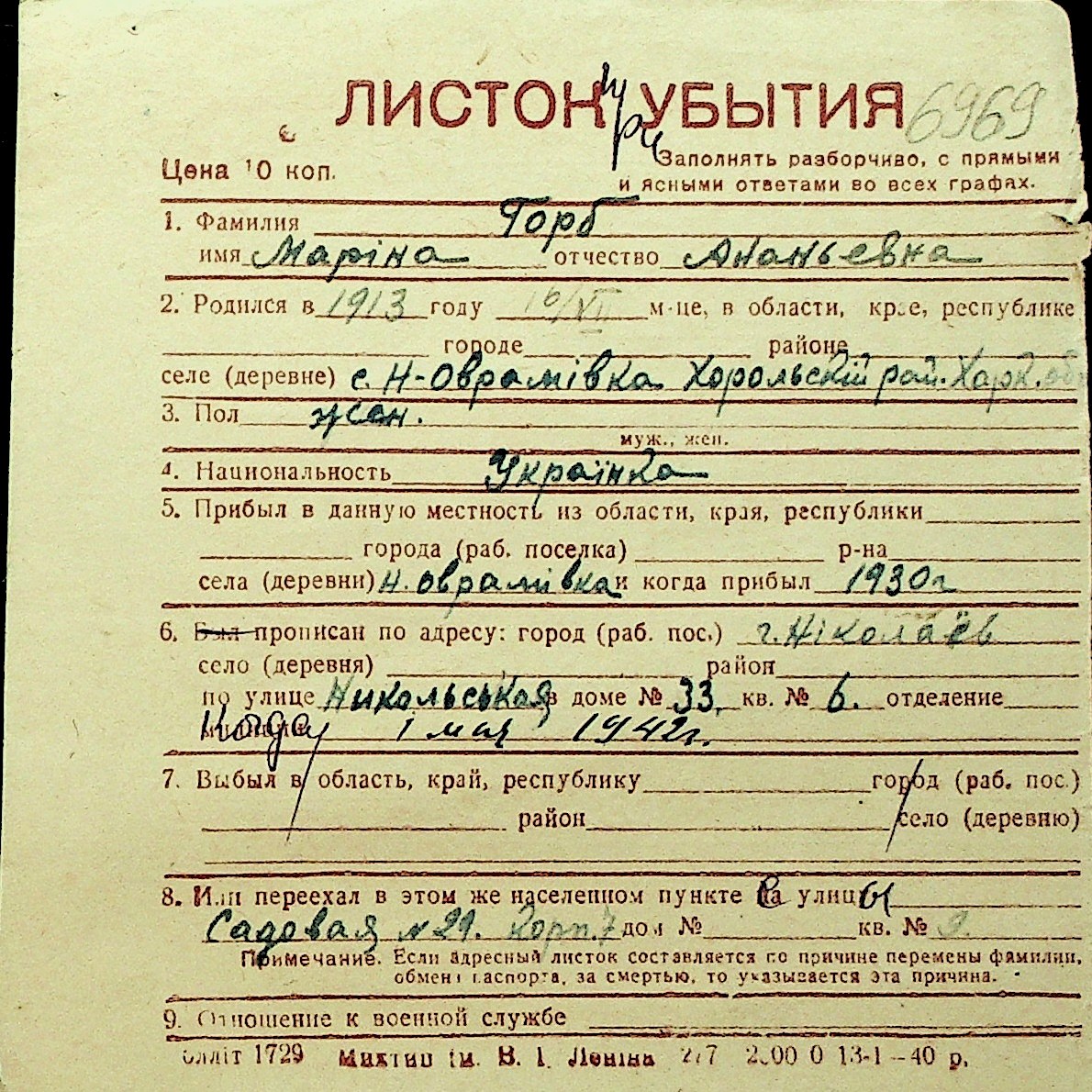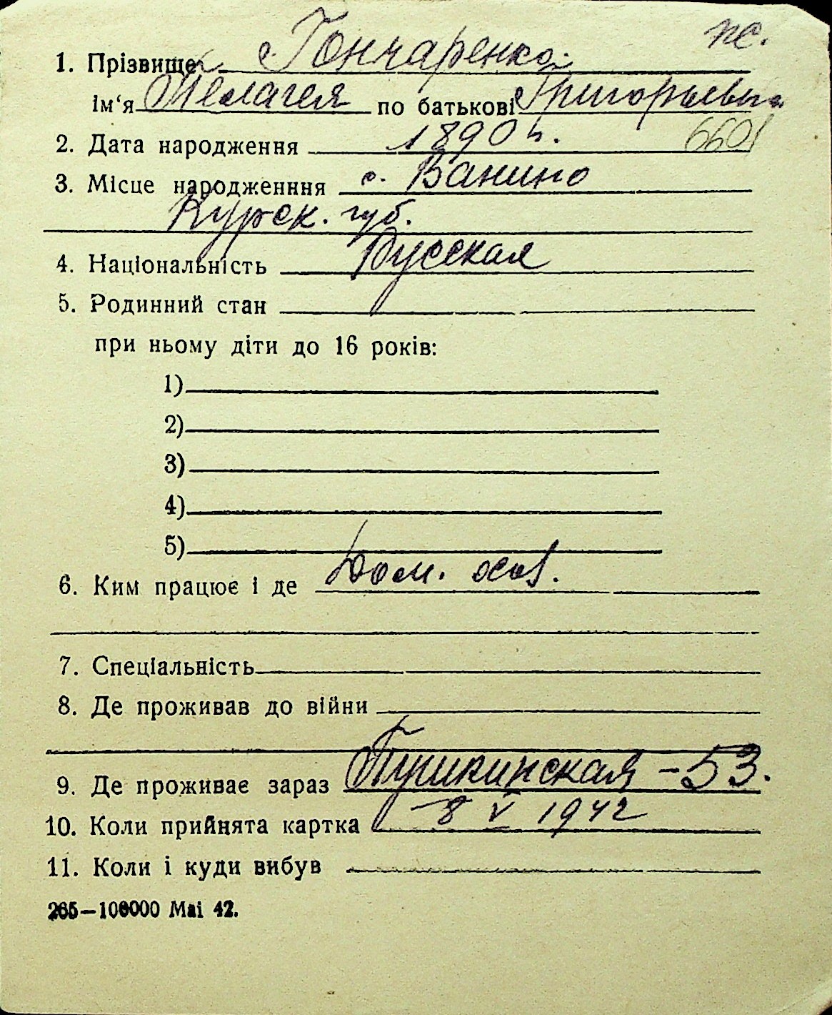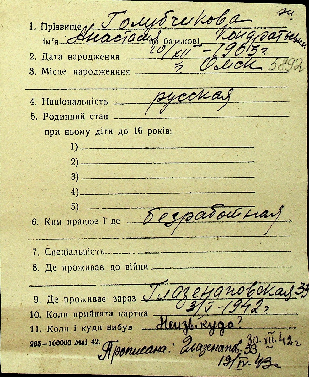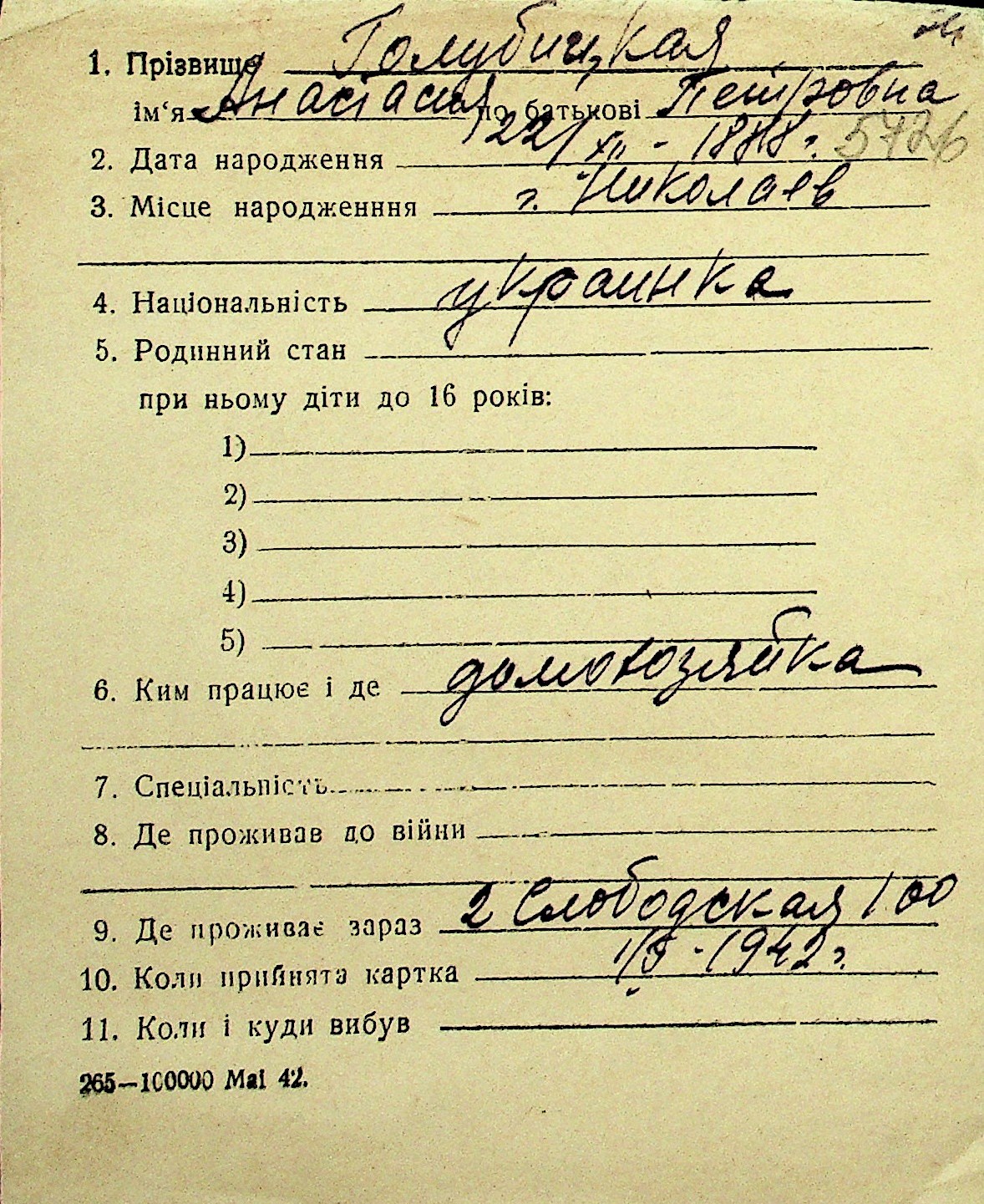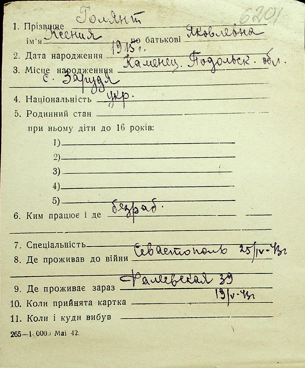 • • Перелік карток до фонду № Н-1016