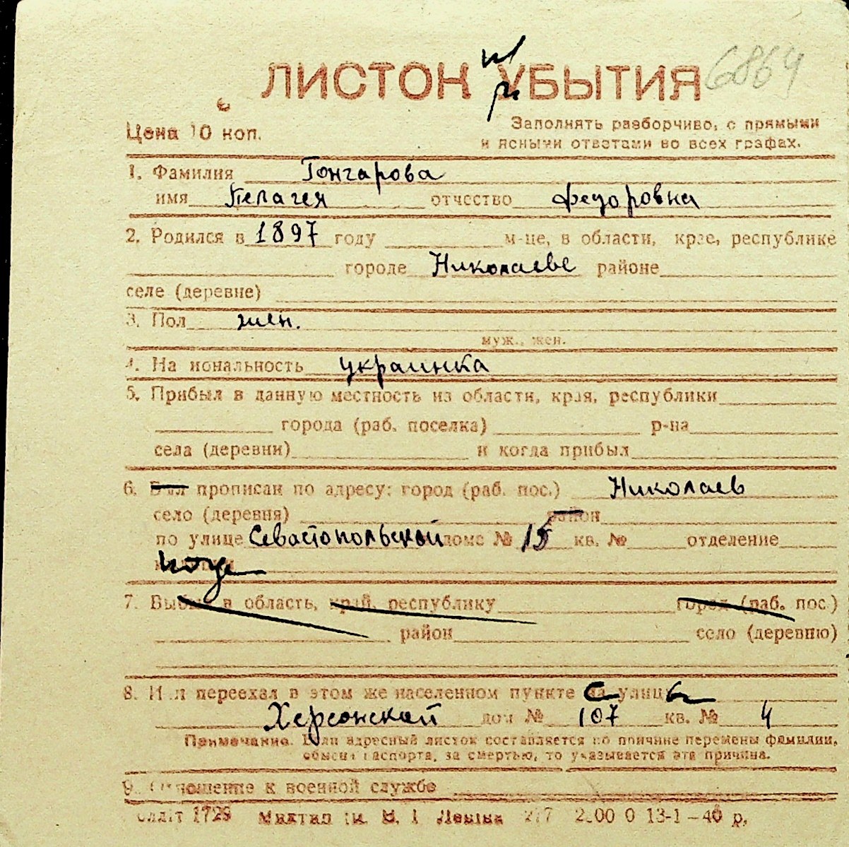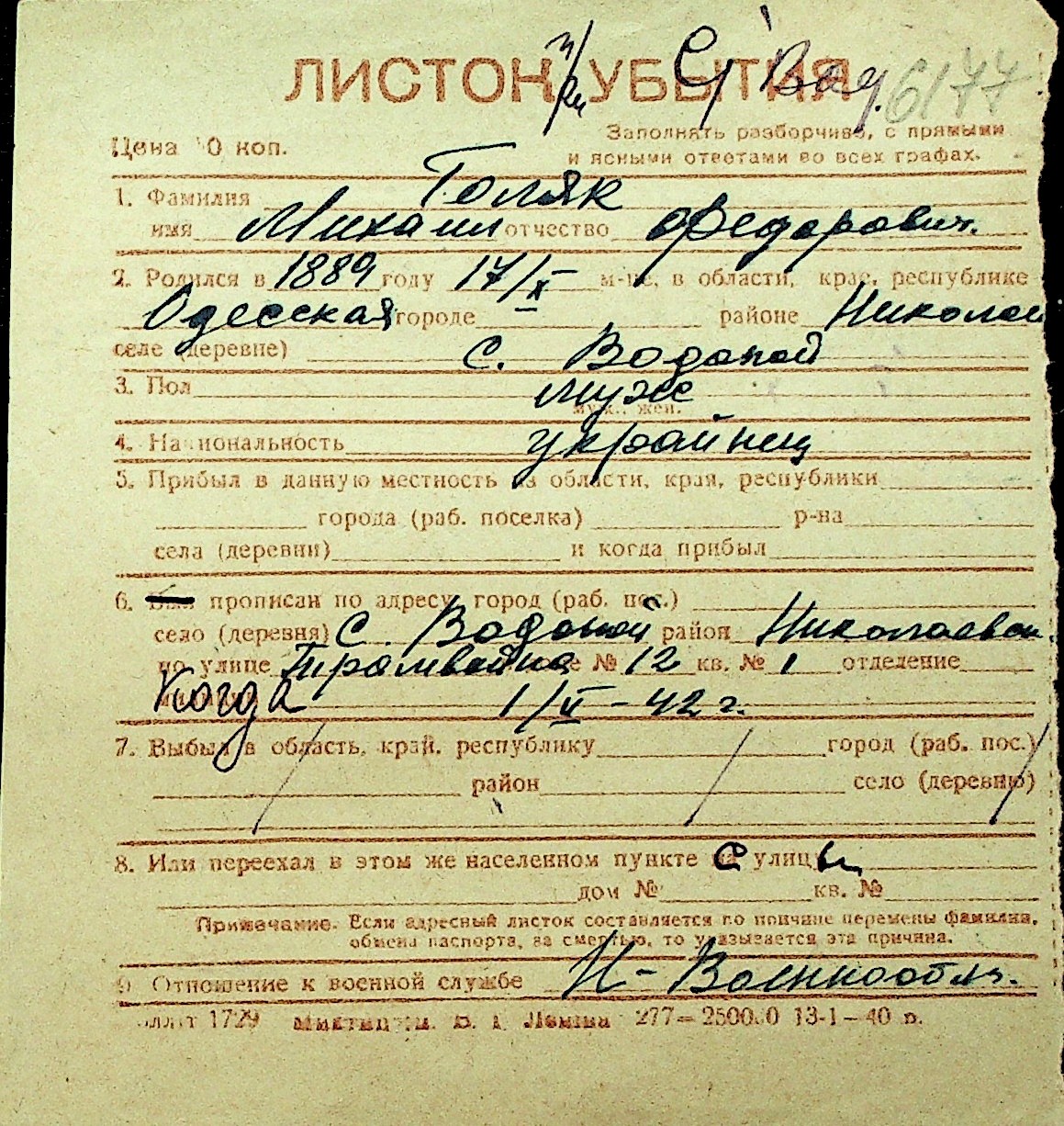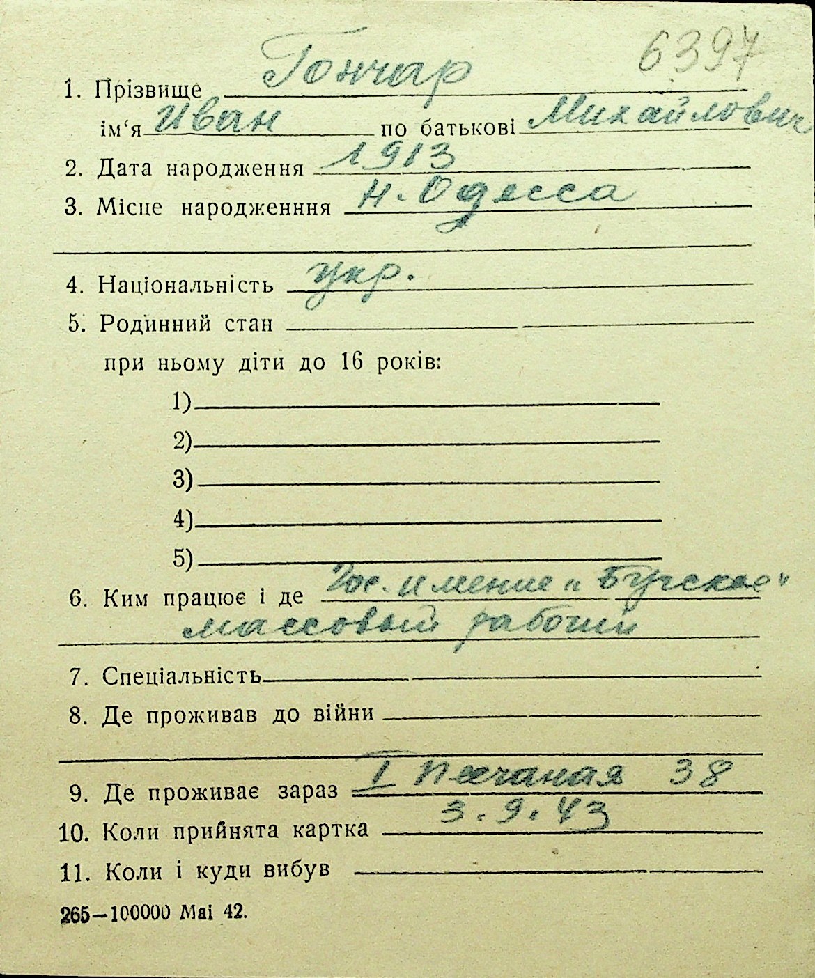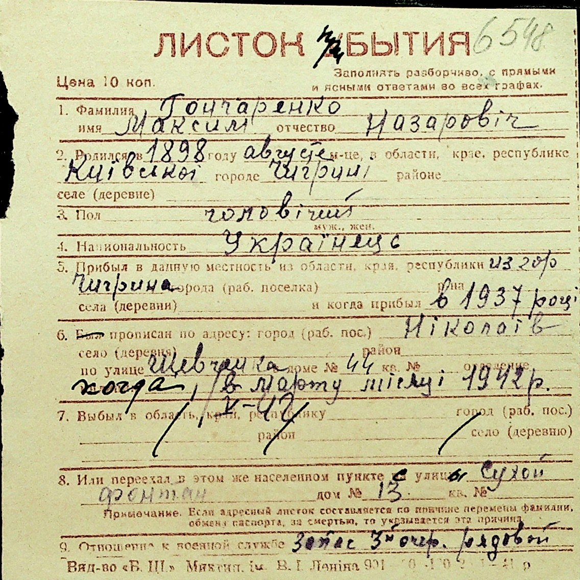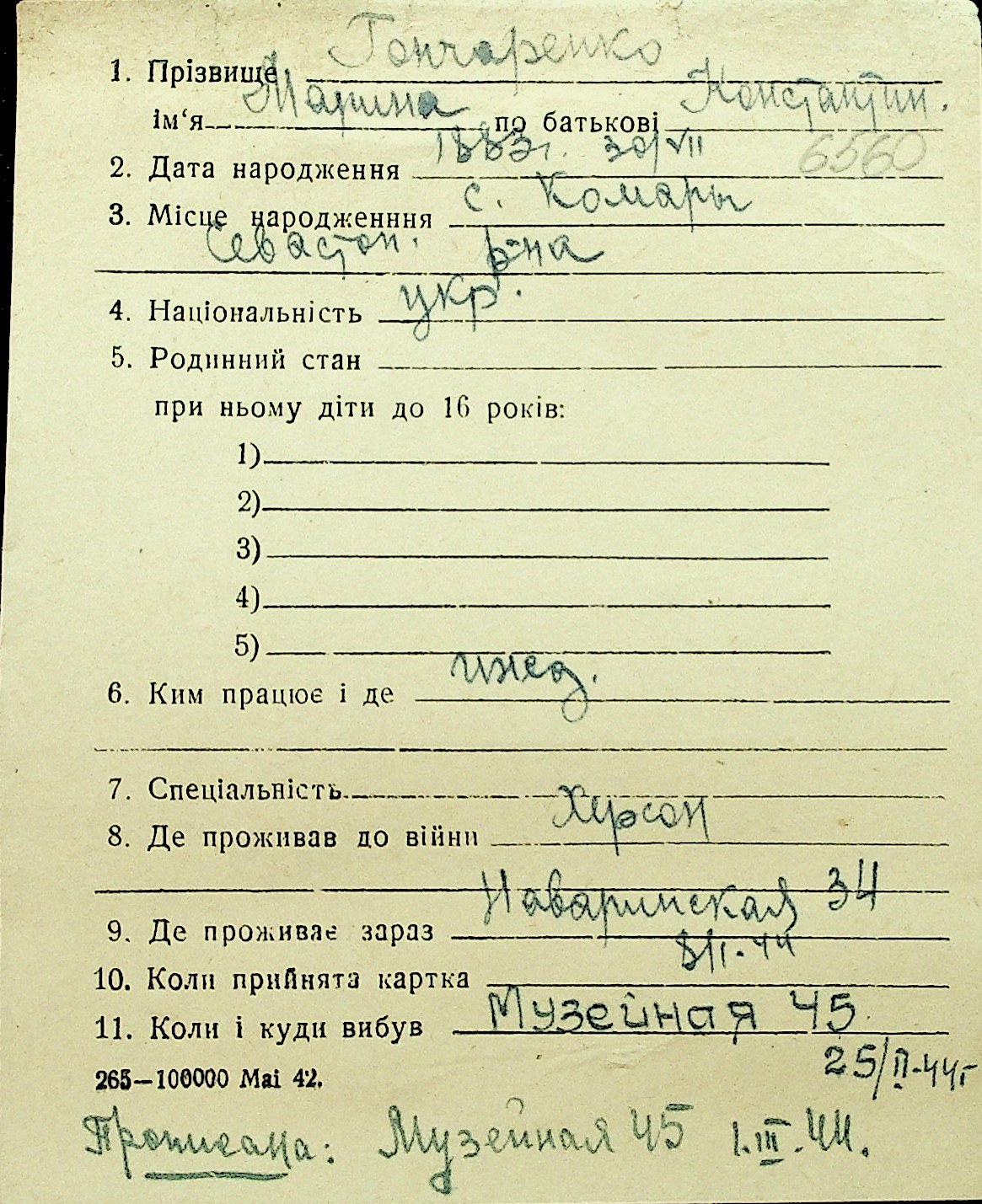 • • Перелік карток до фонду № Н-1016