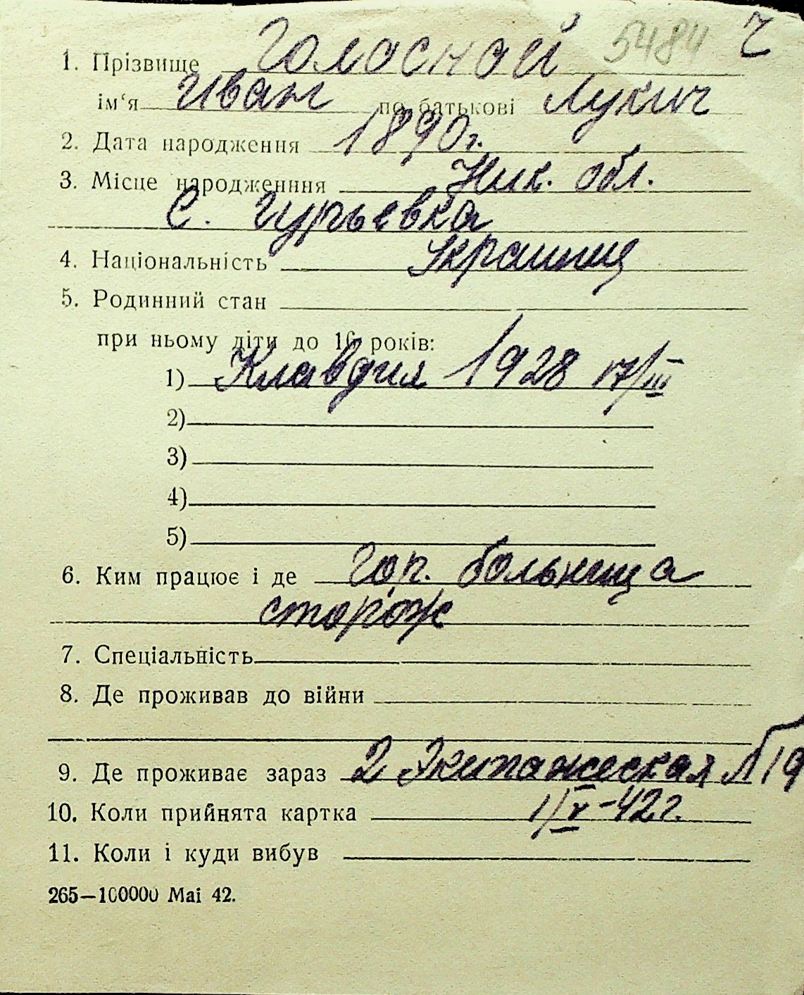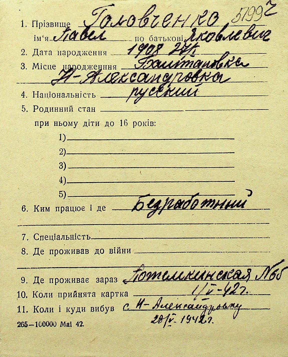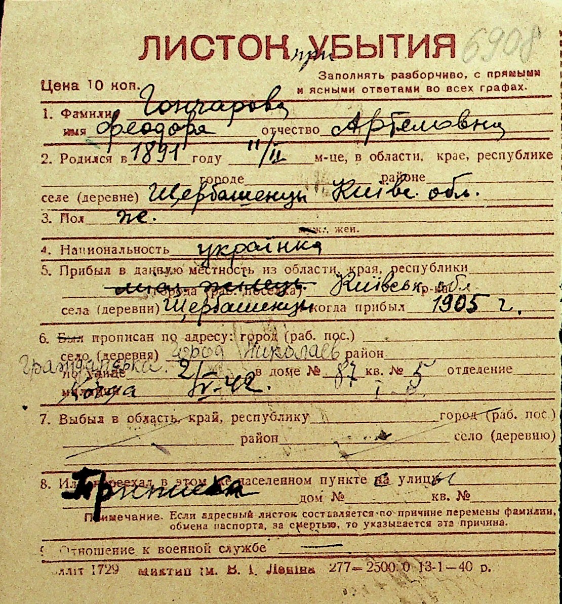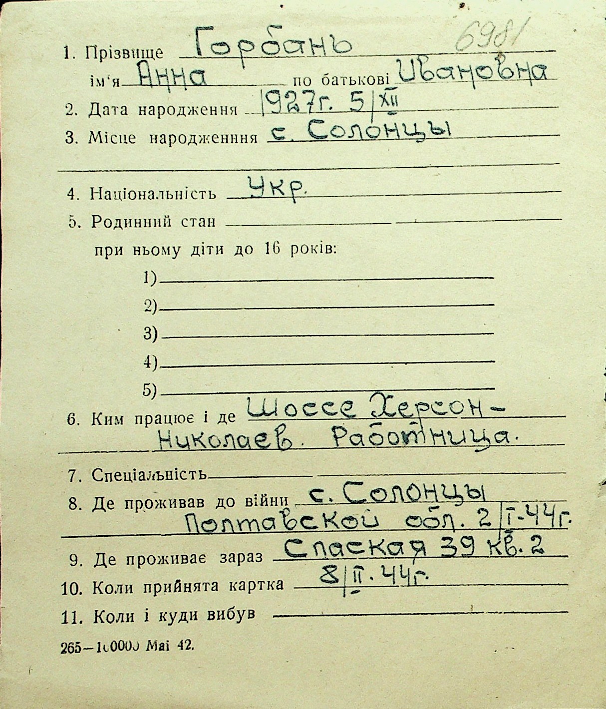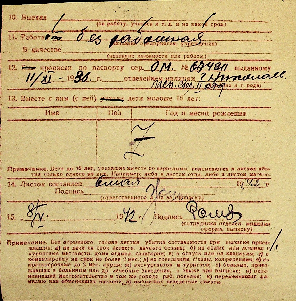 • • Перелік карток до фонду № Н-1016