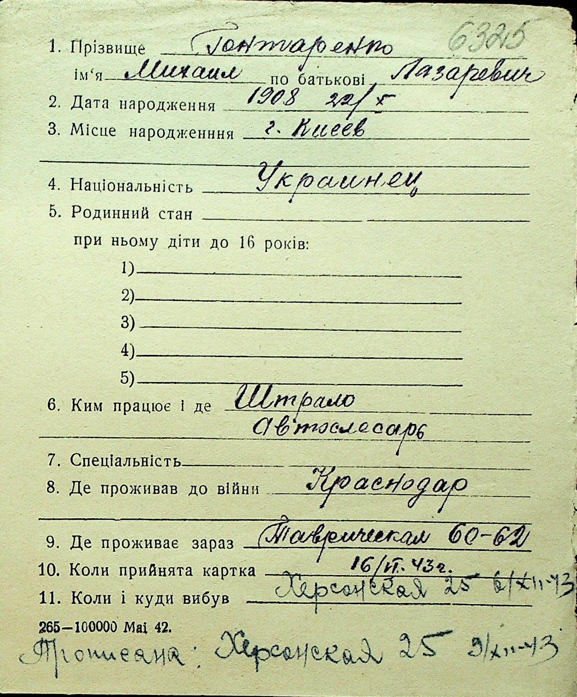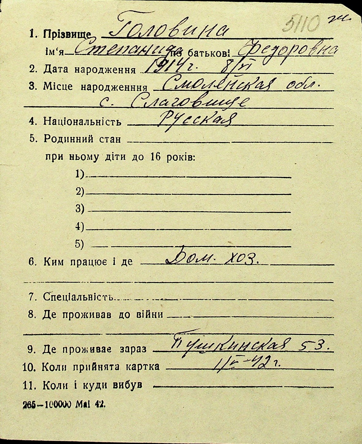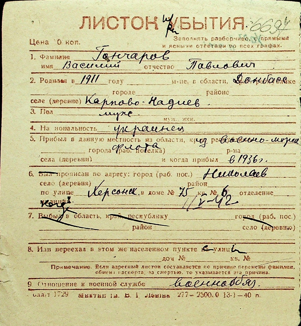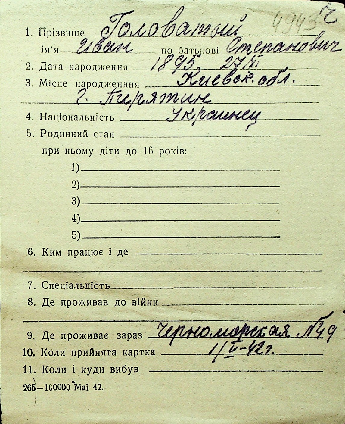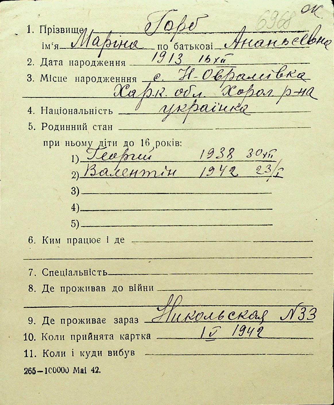 • • Перелік карток до фонду № Н-1016