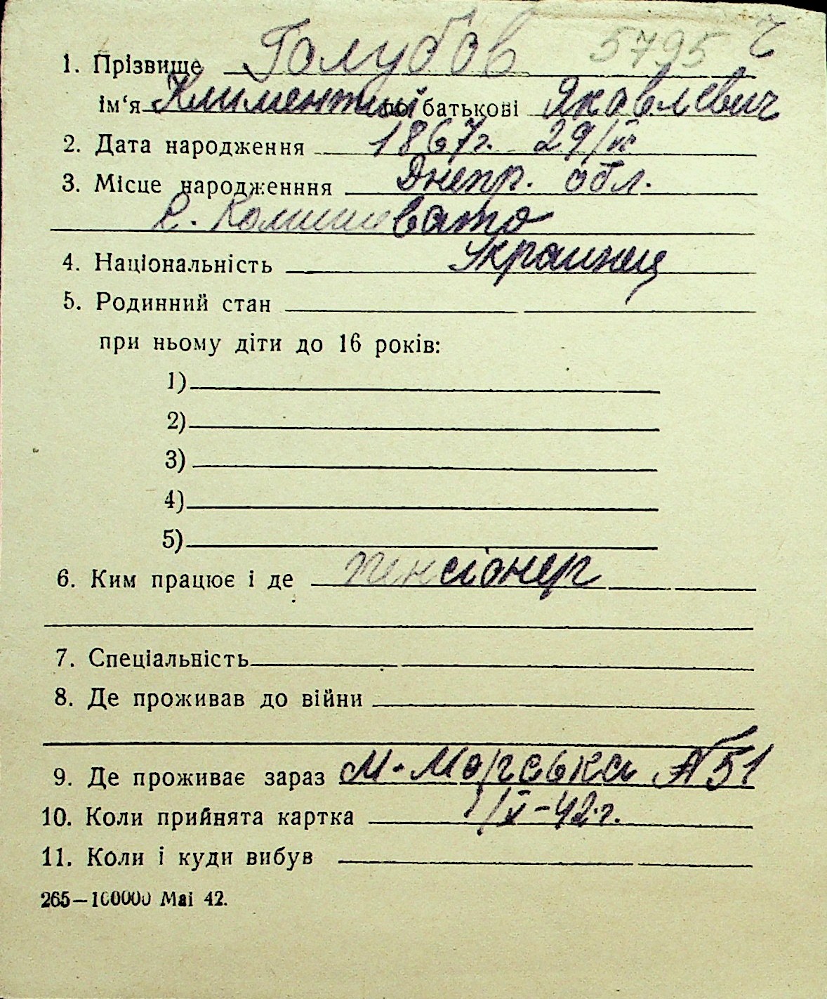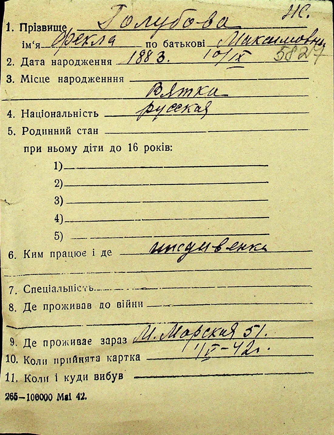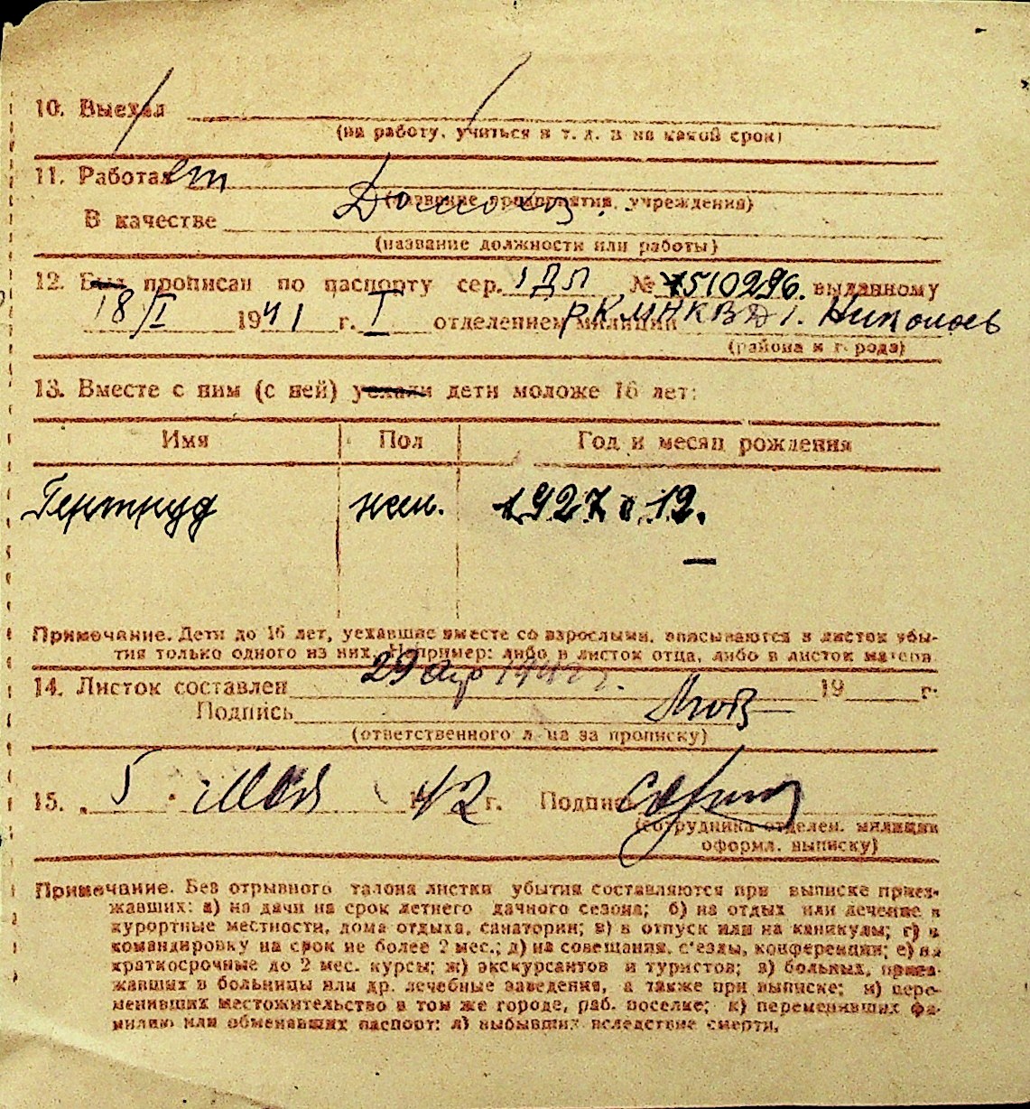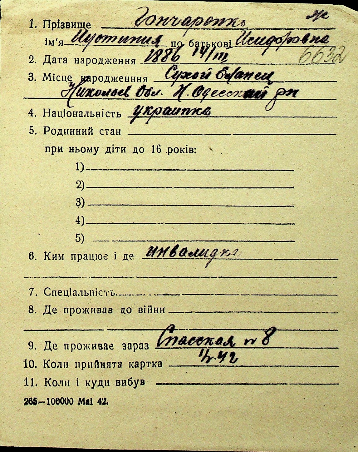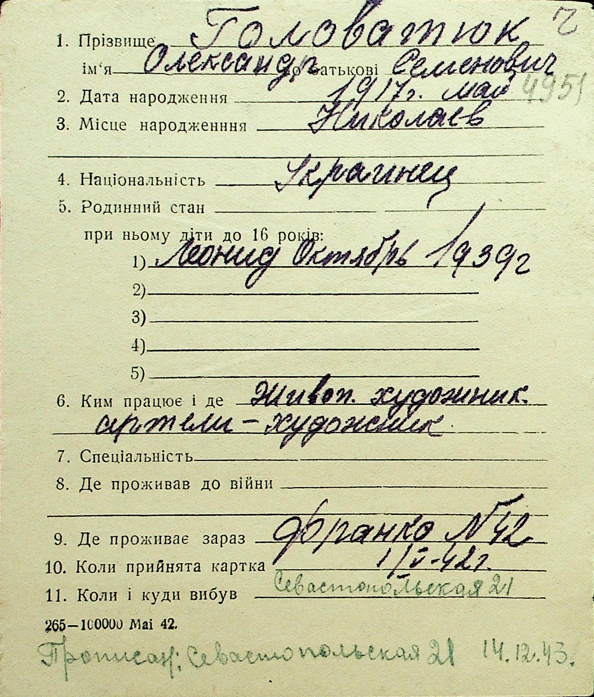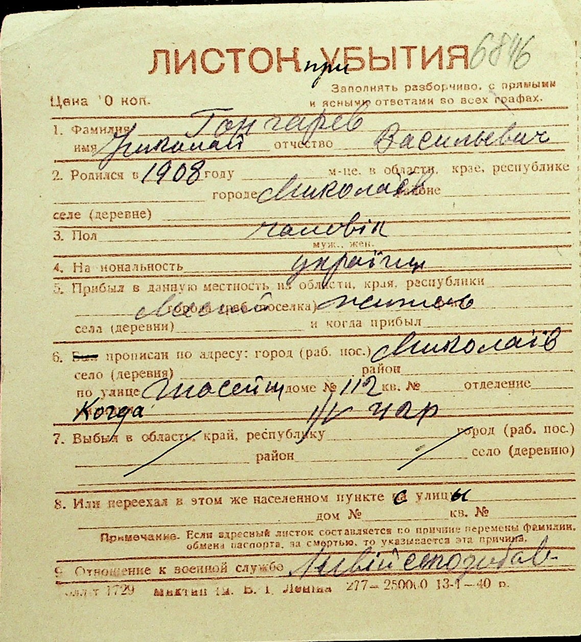 • • Перелік карток до фонду № Н-1016