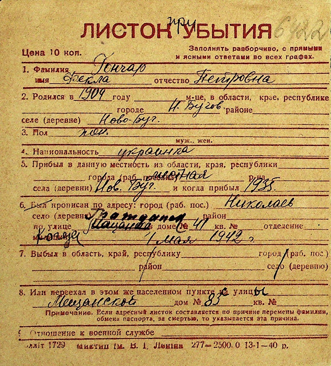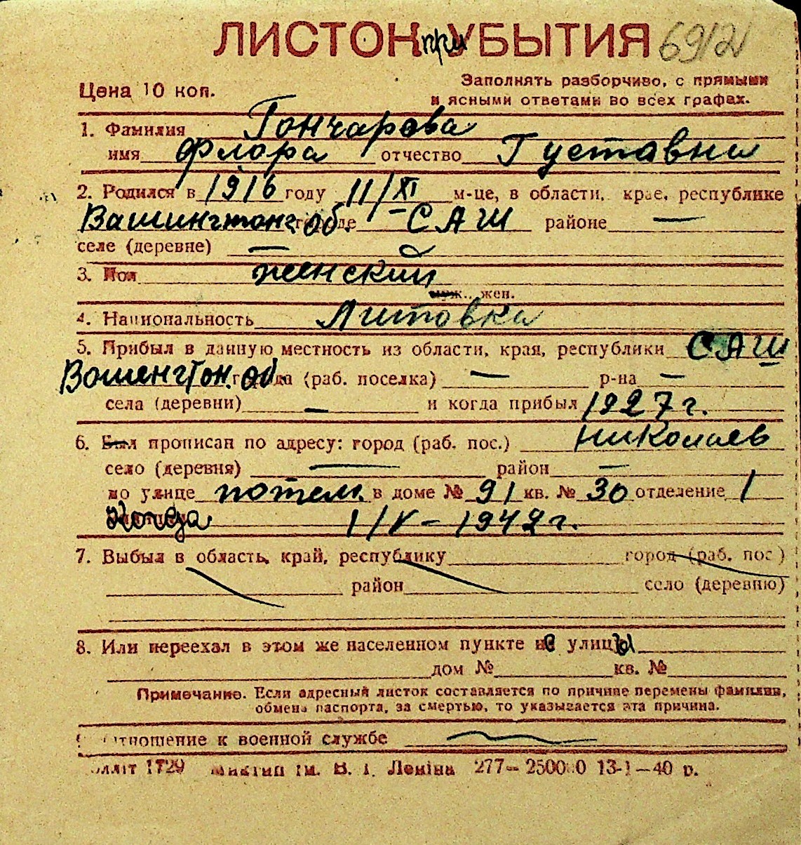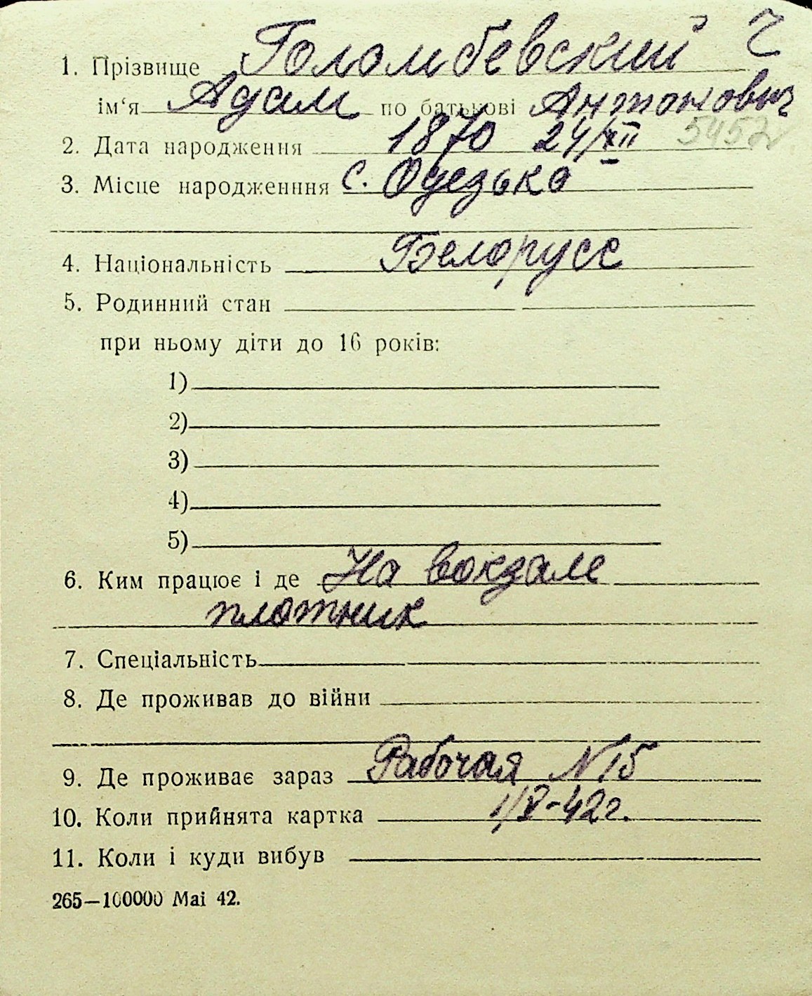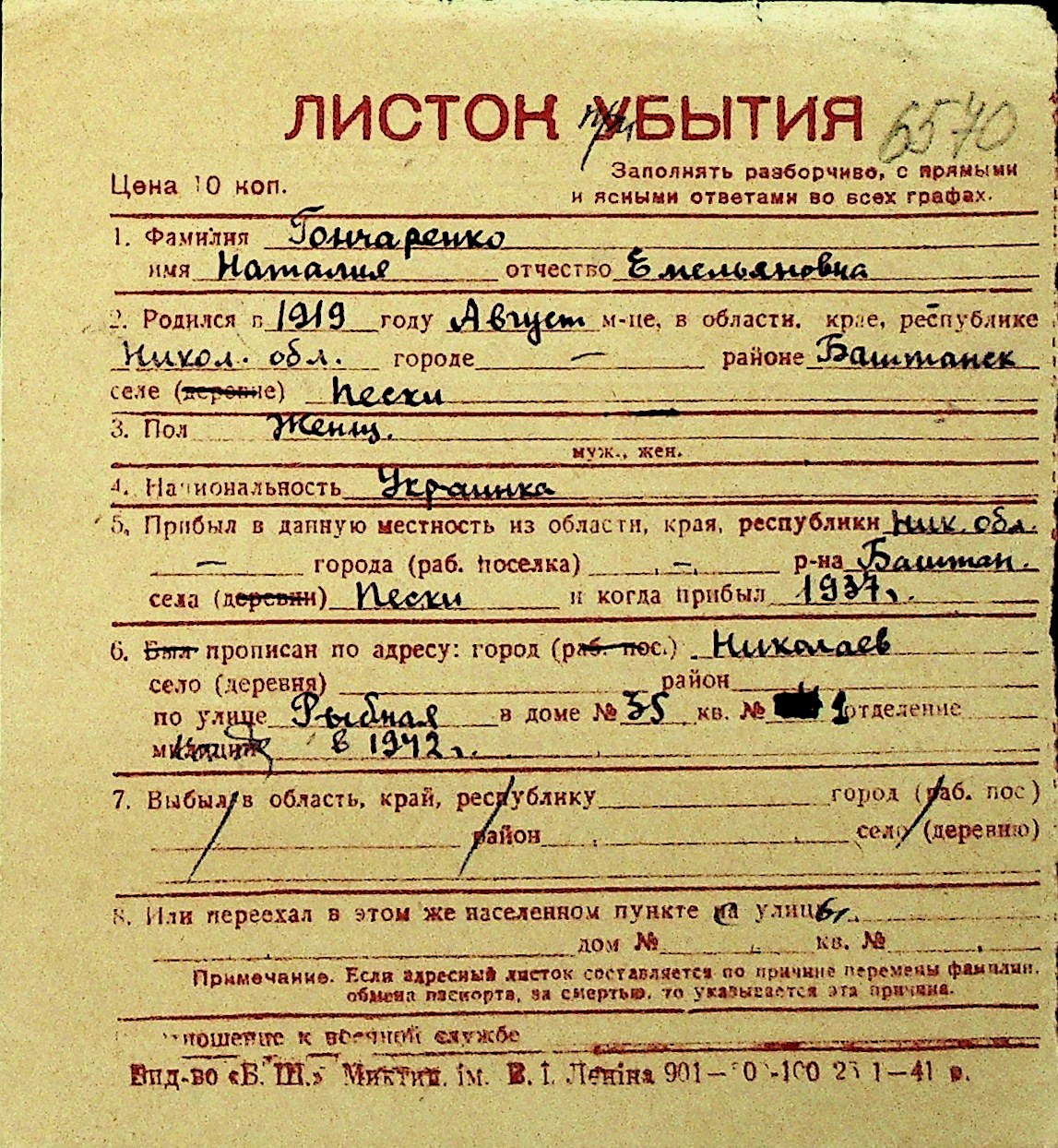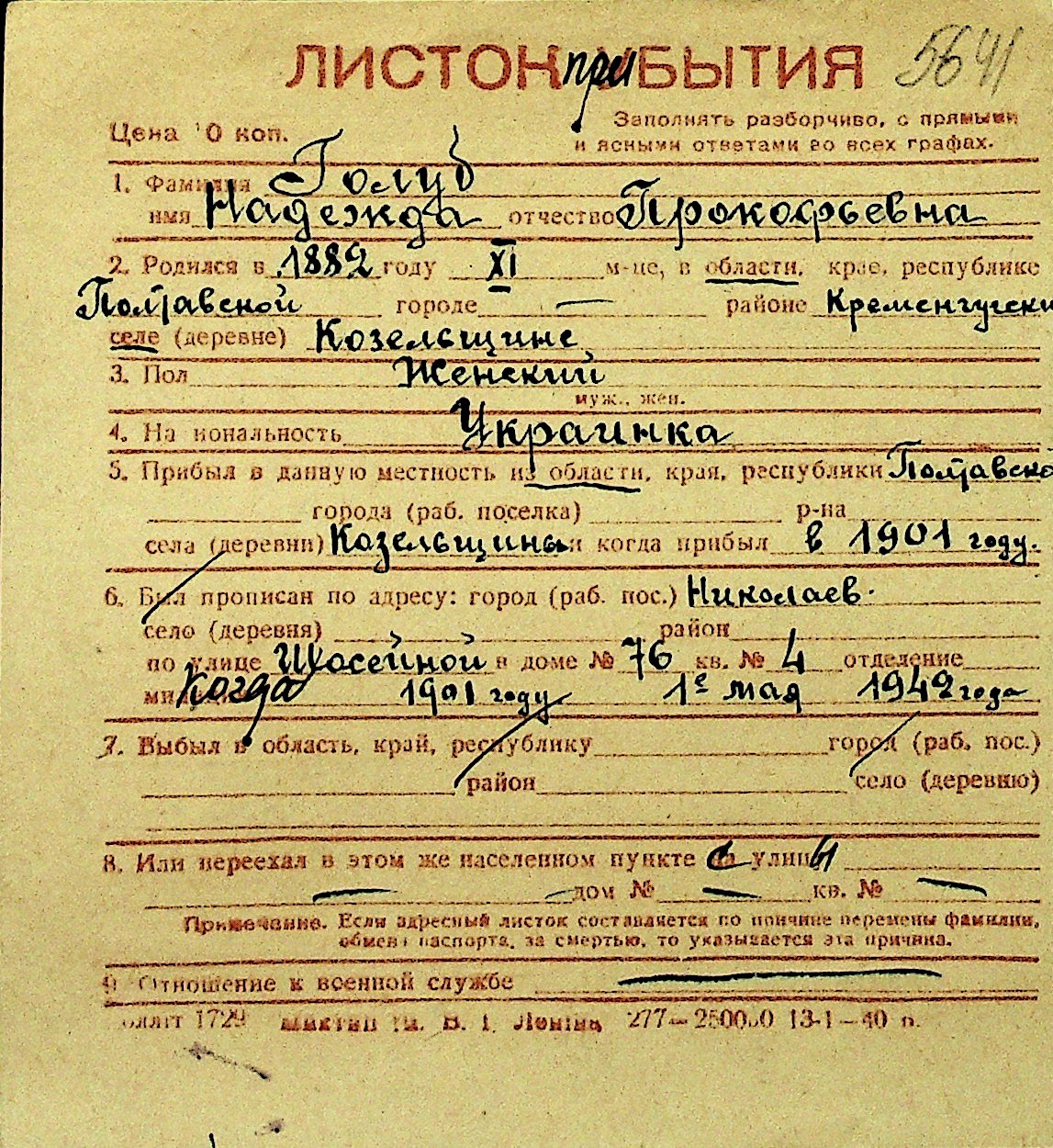 • • Перелік карток до фонду № Н-1016