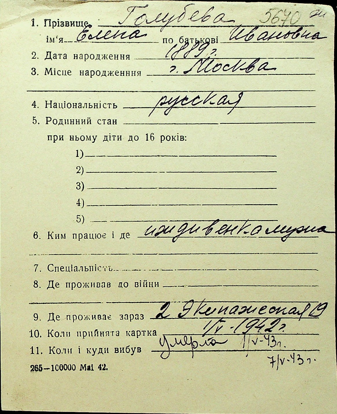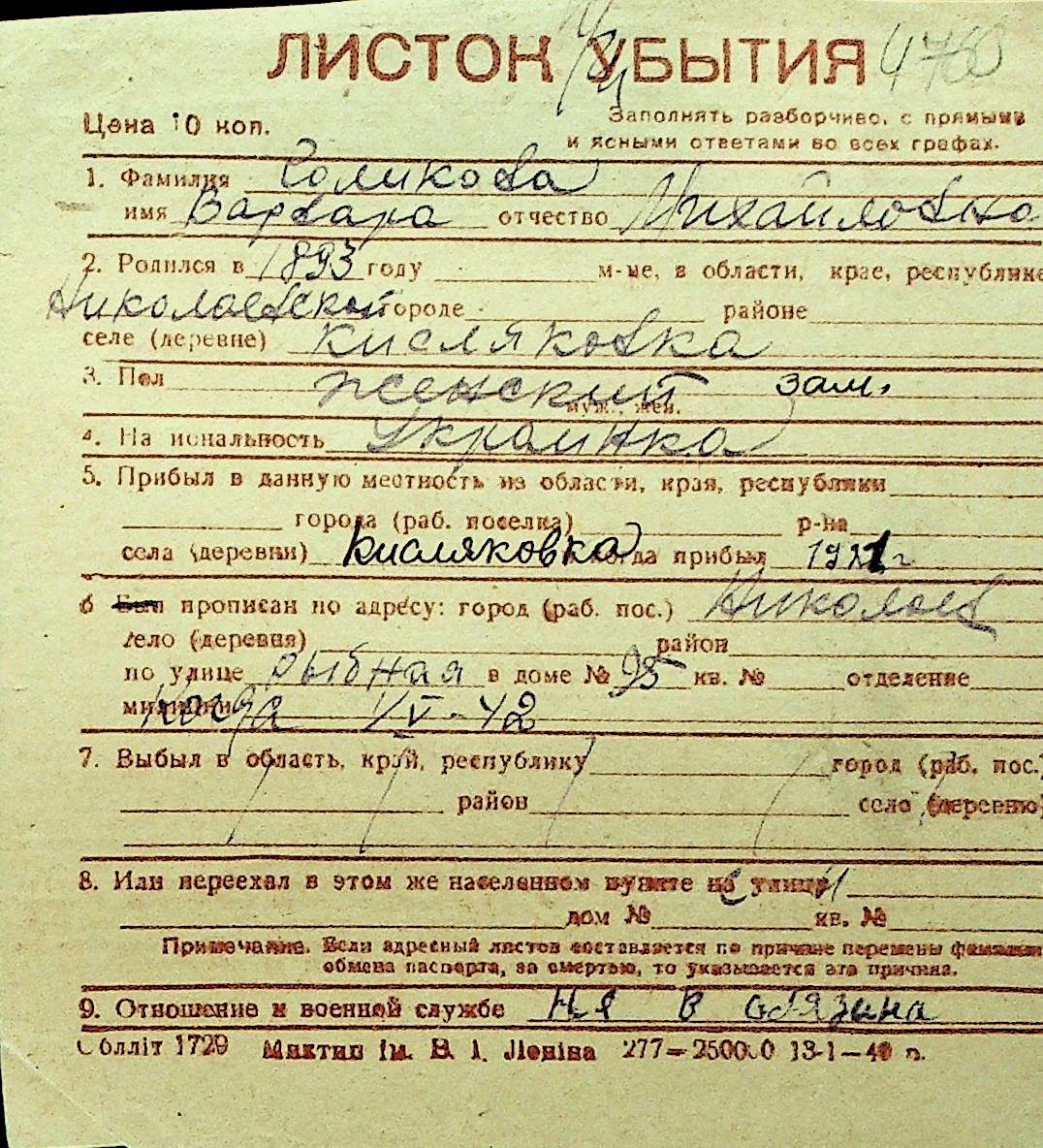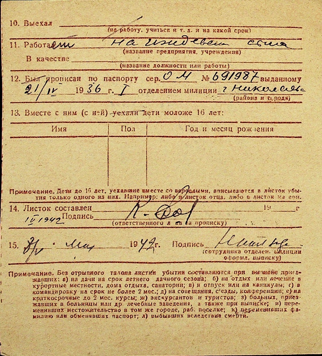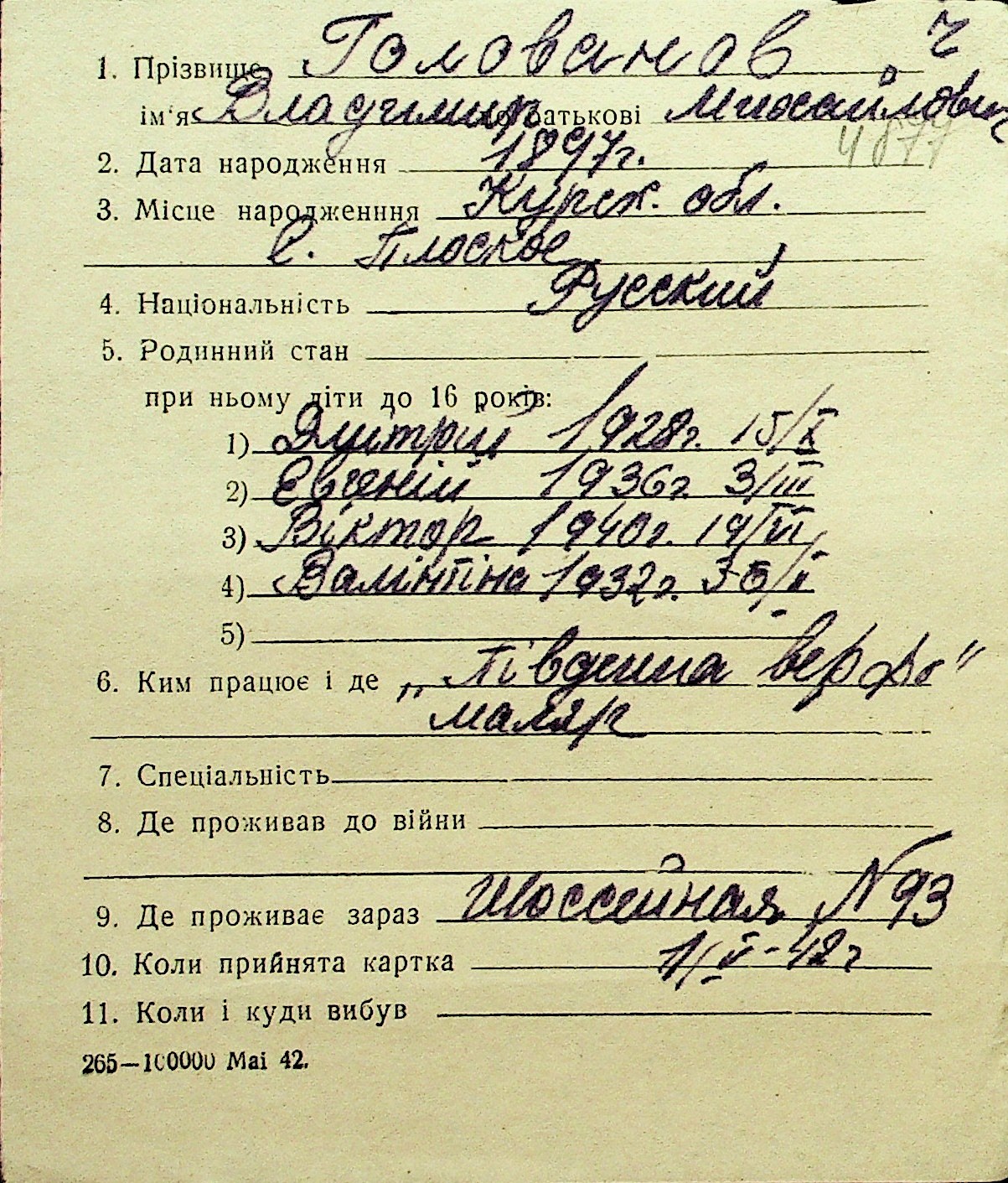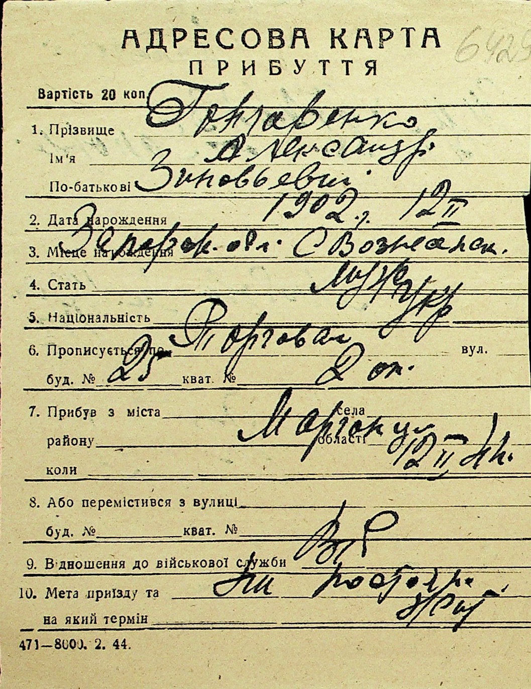 • • Перелік карток до фонду № Н-1016