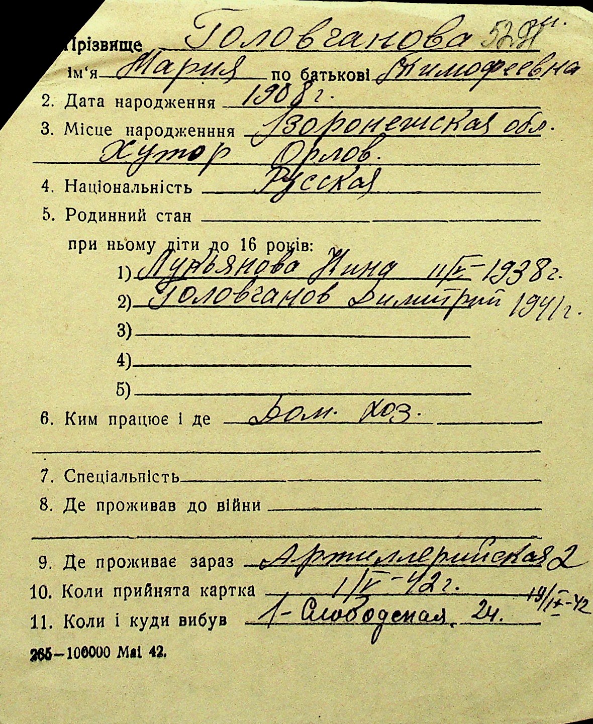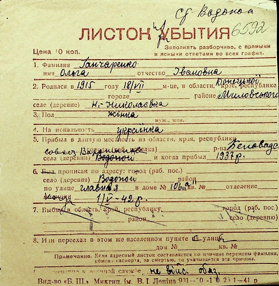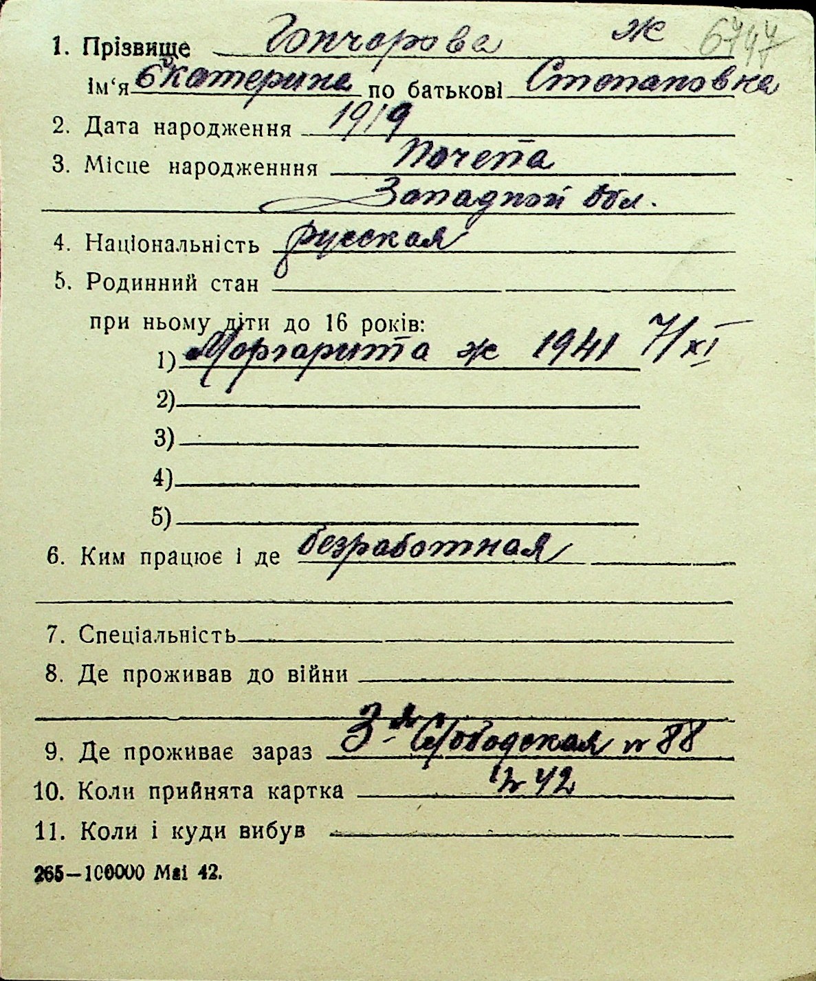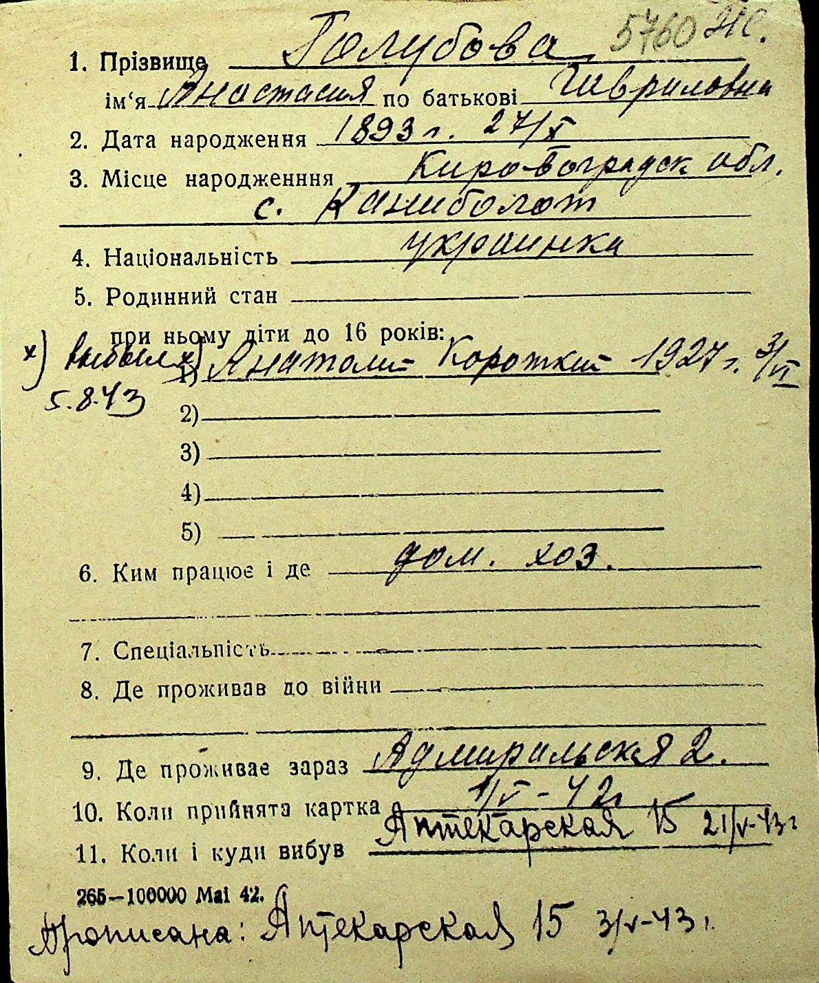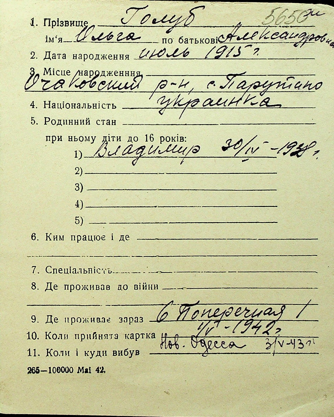 • • Перелік карток до фонду № Н-1016