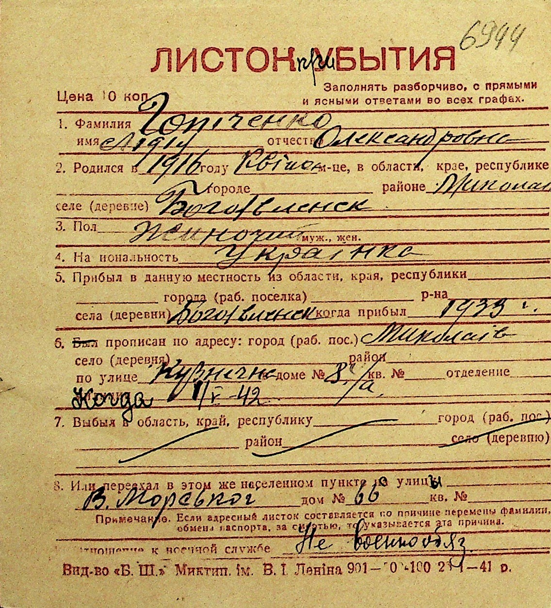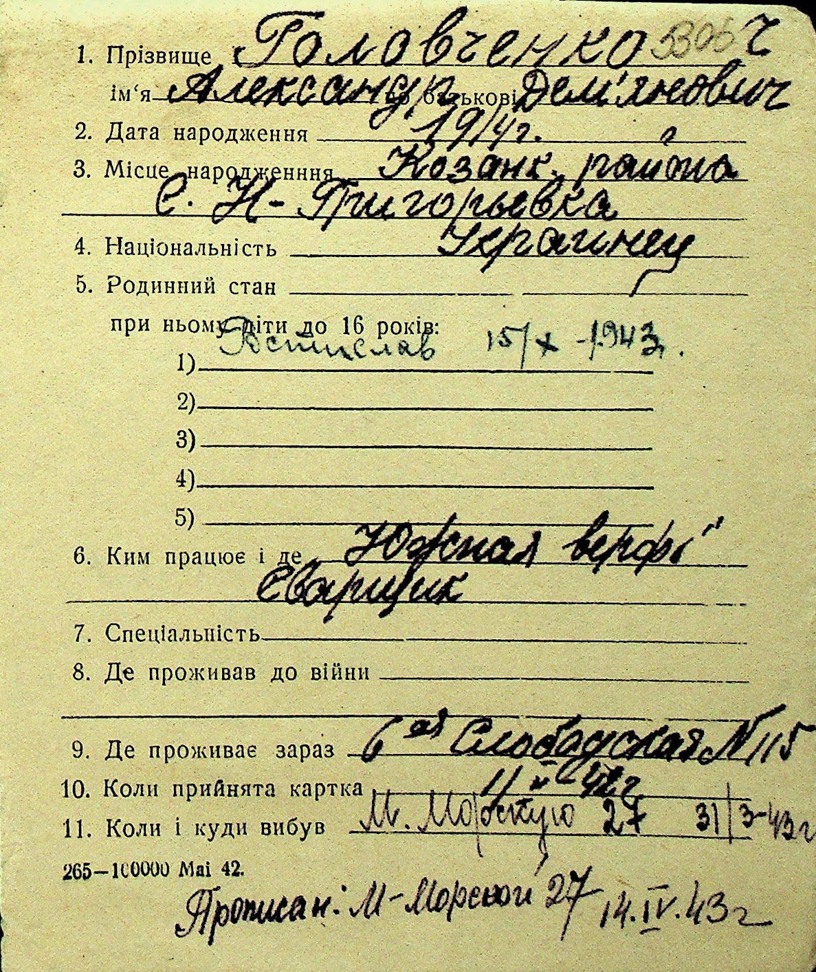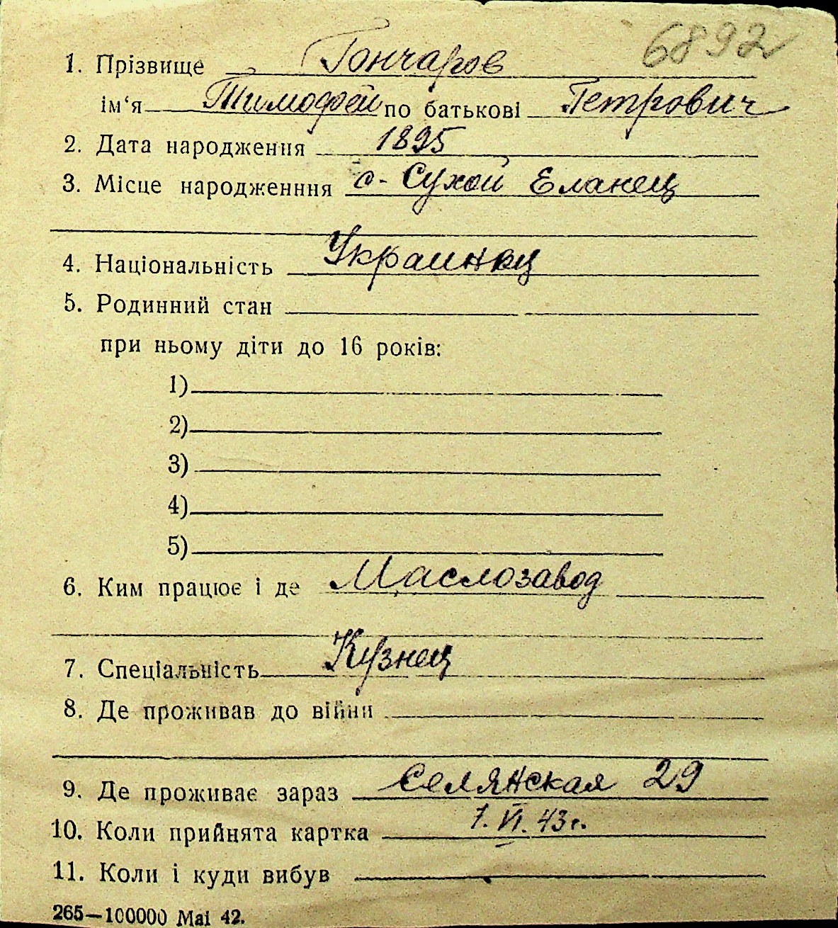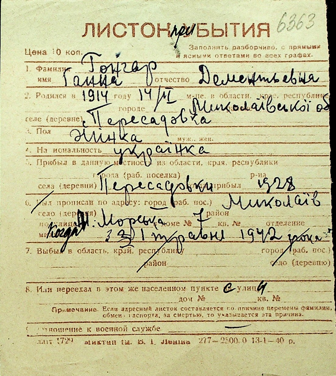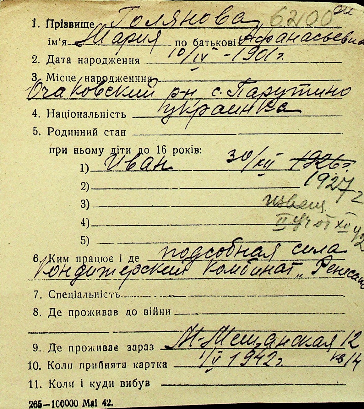 • • Перелік карток до фонду № Н-1016