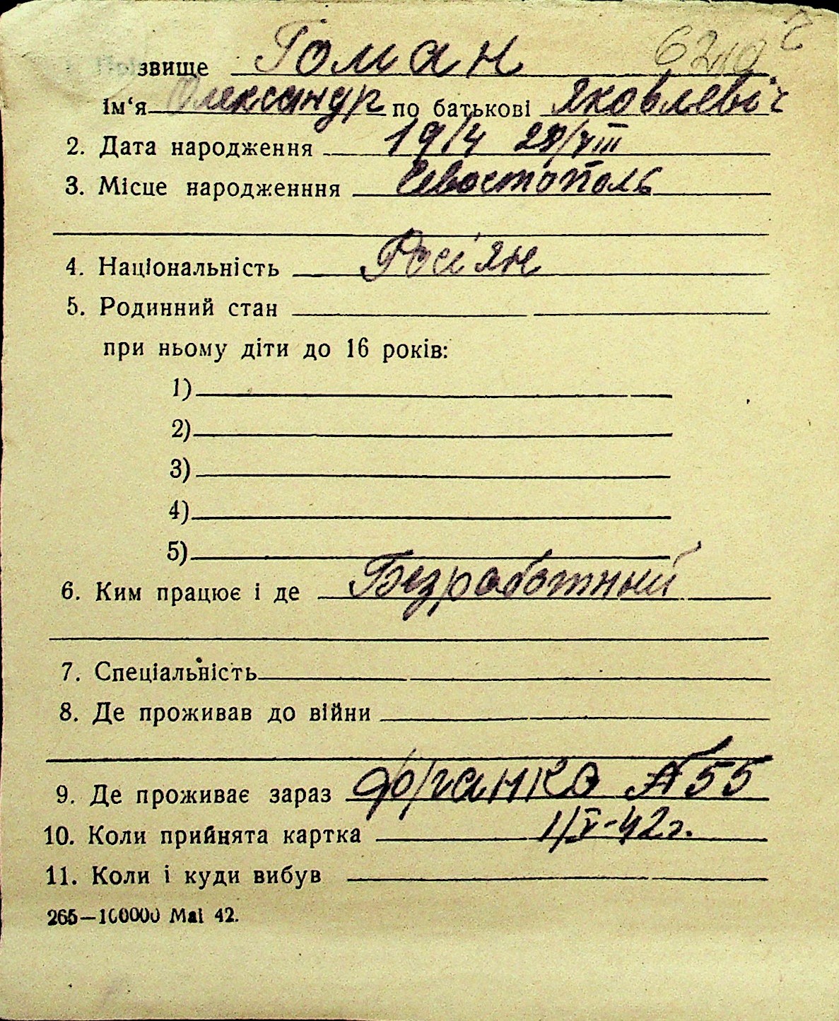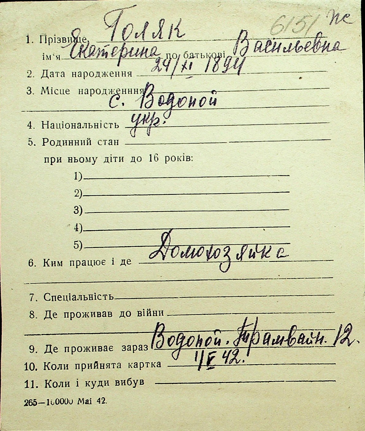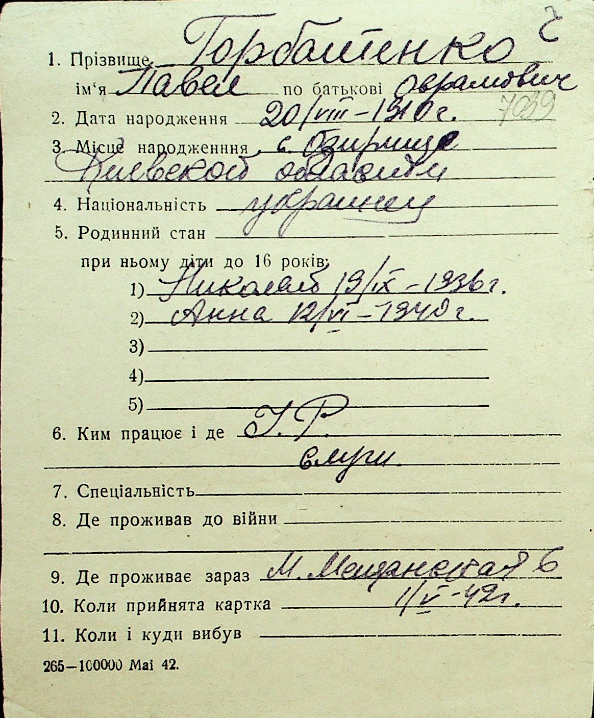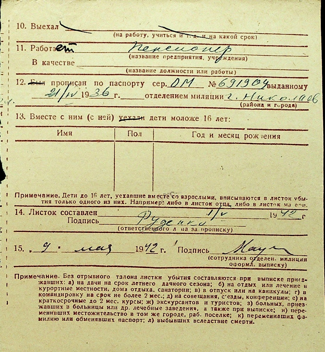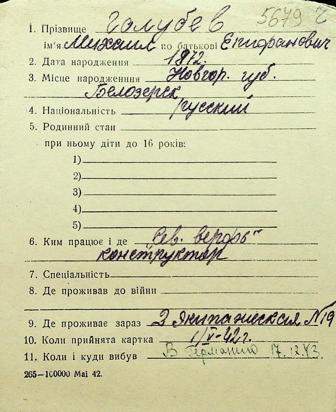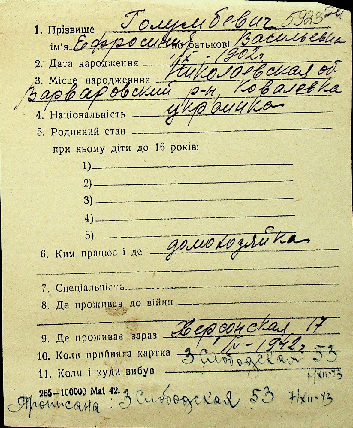 • • Перелік карток до фонду № Н-1016