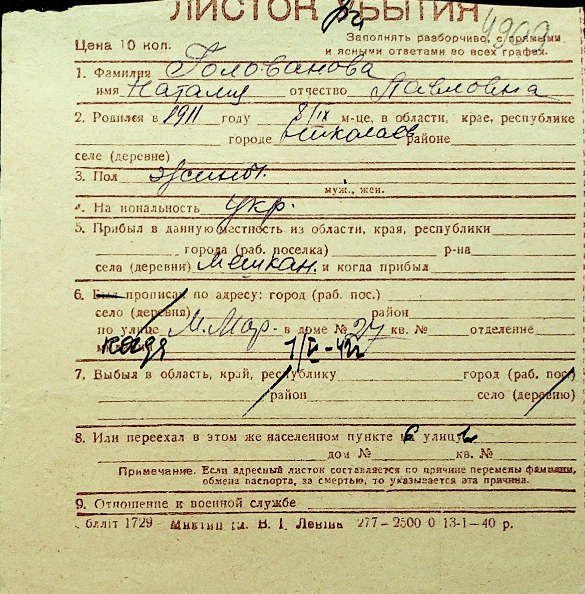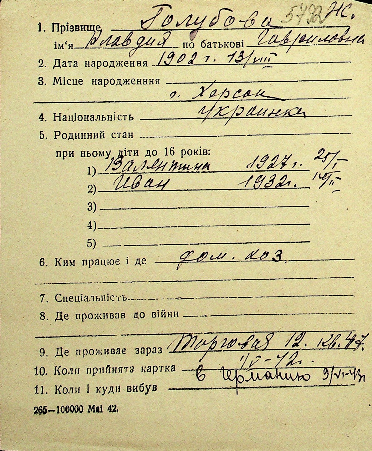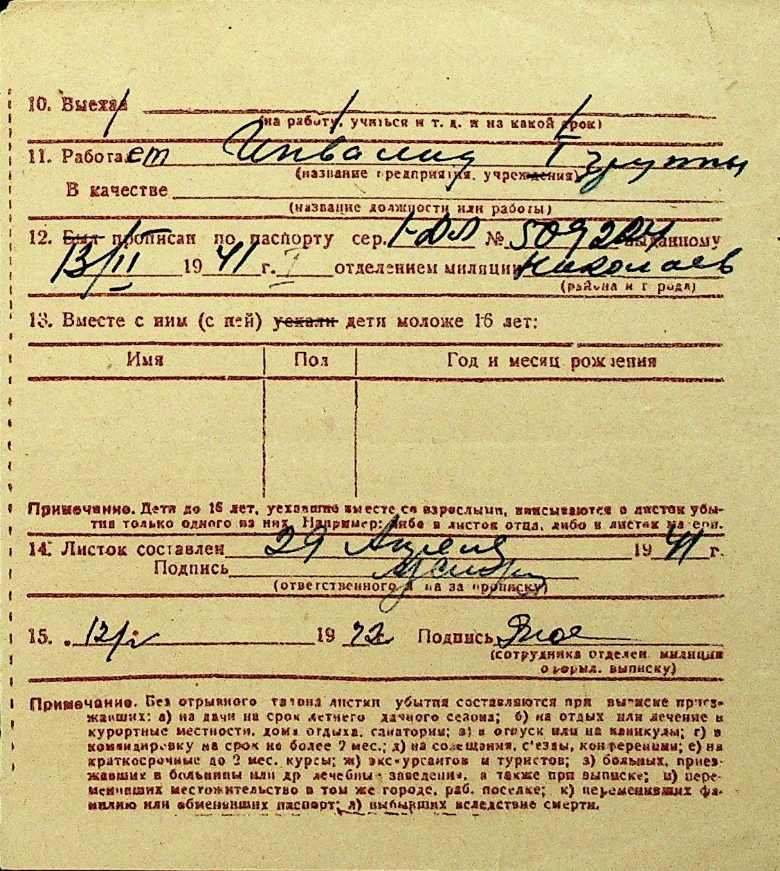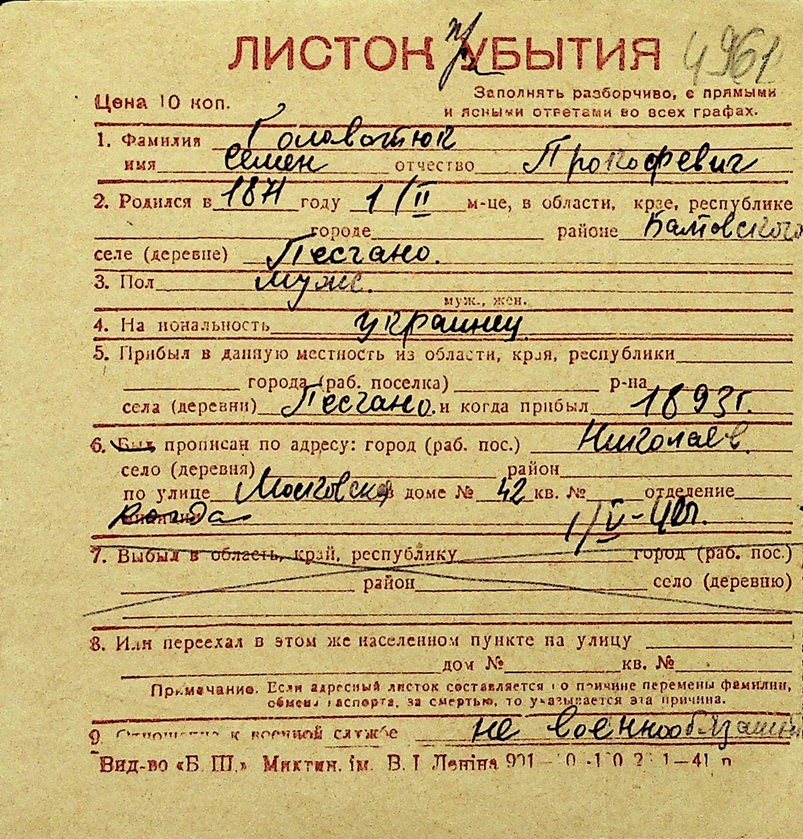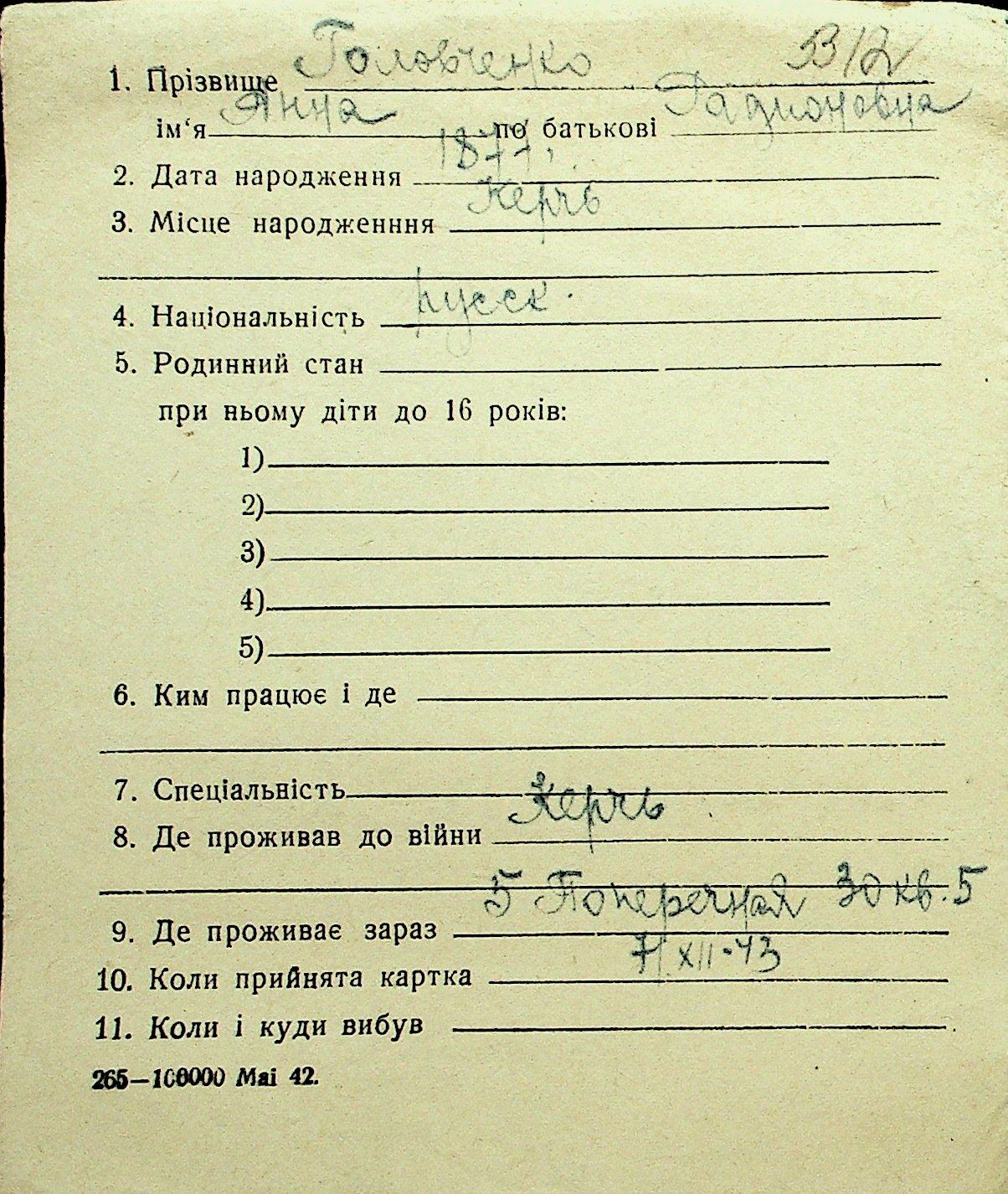• • Перелік карток до фонду № Н-1016