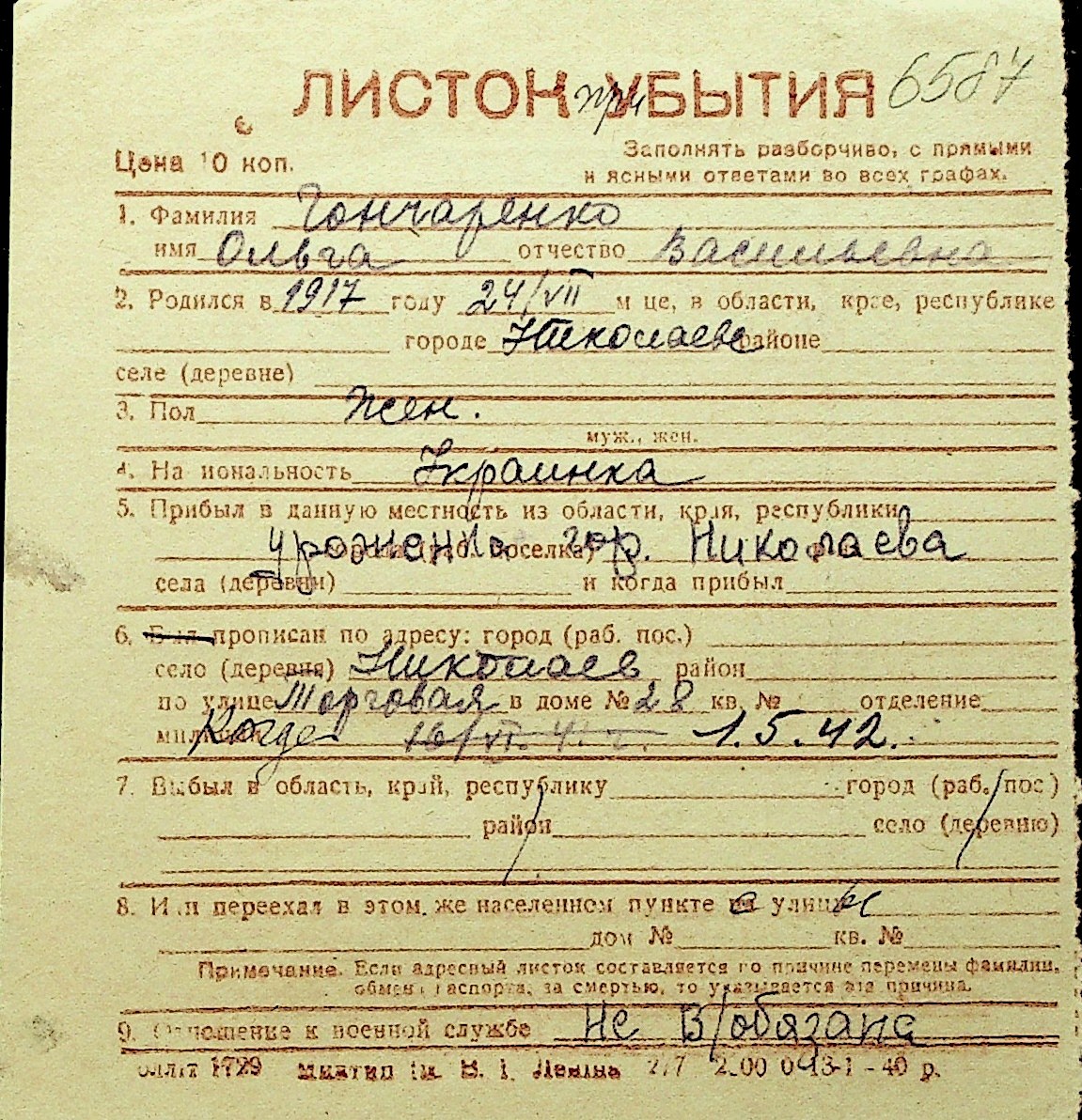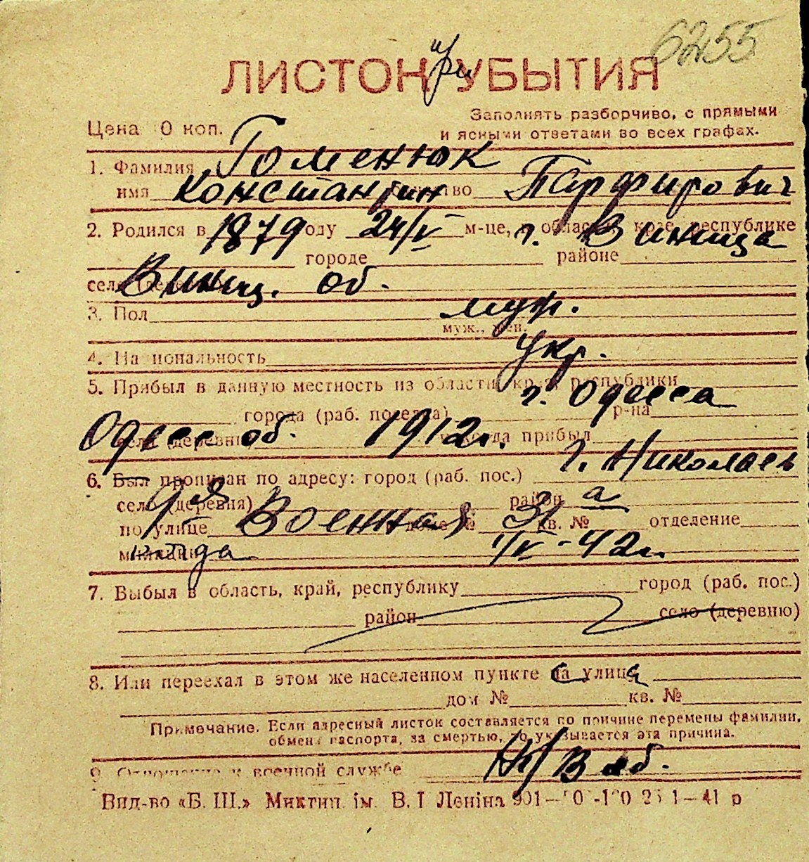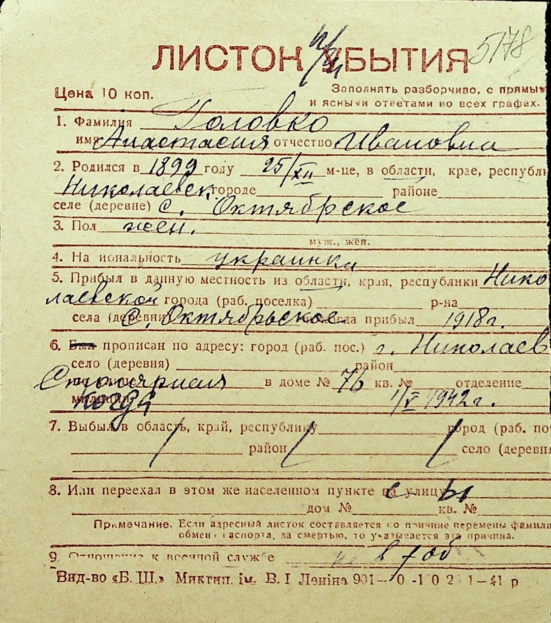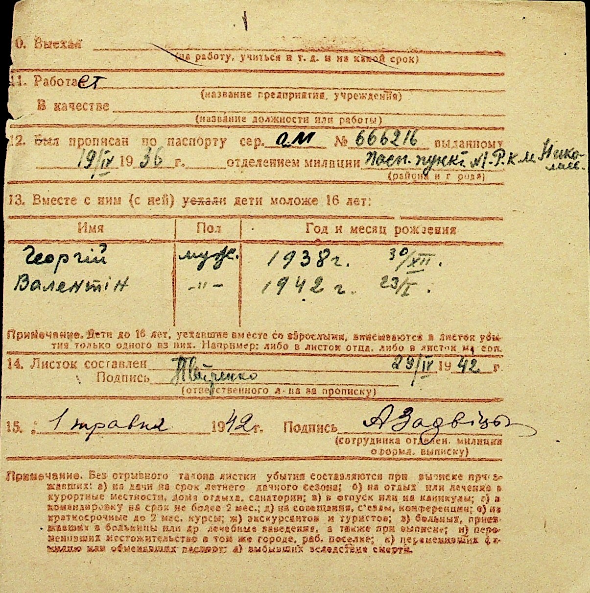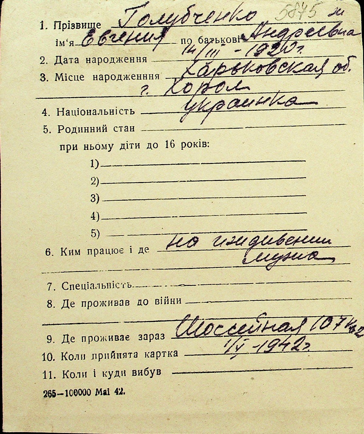 • • Перелік карток до фонду № Н-1016