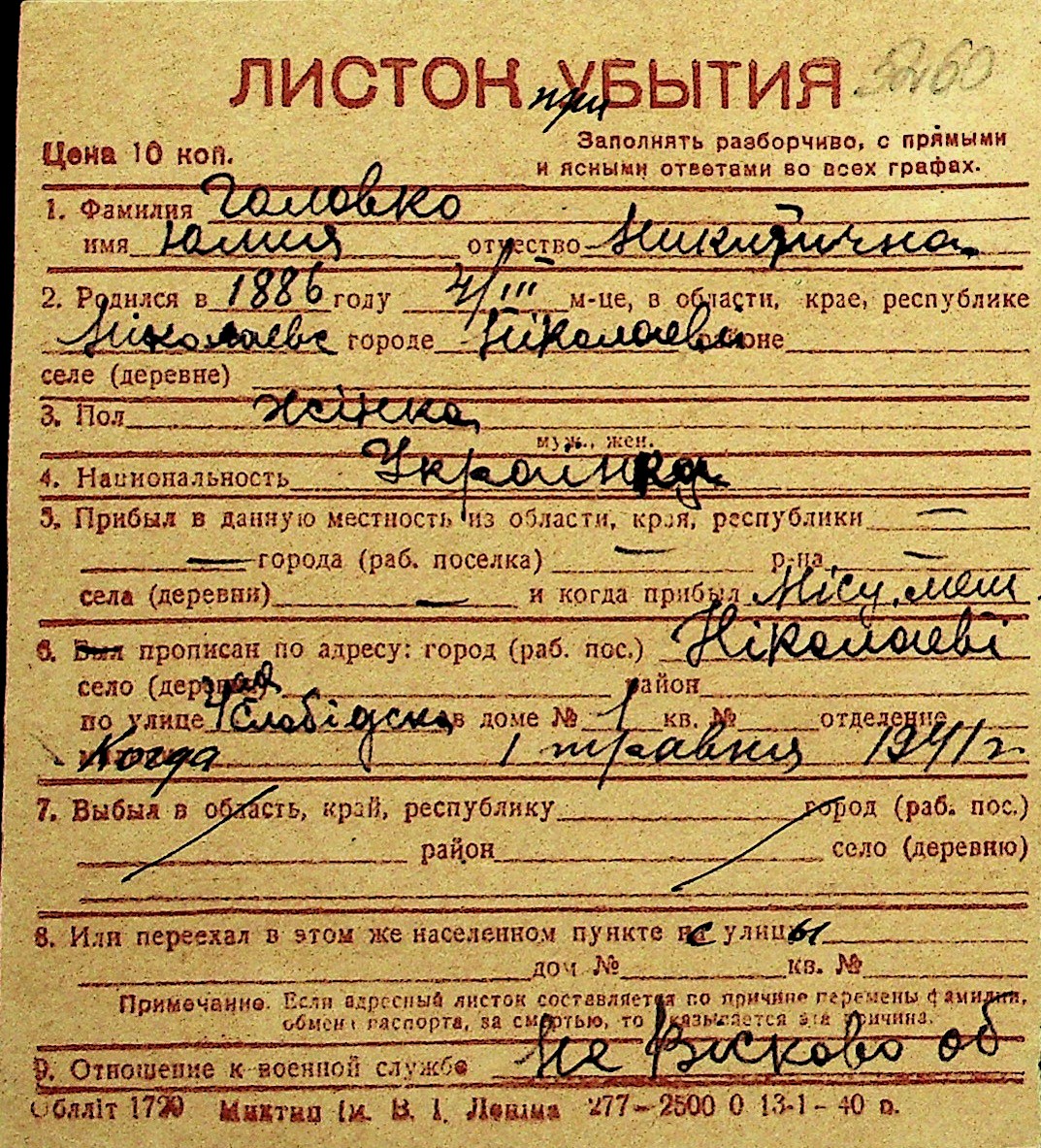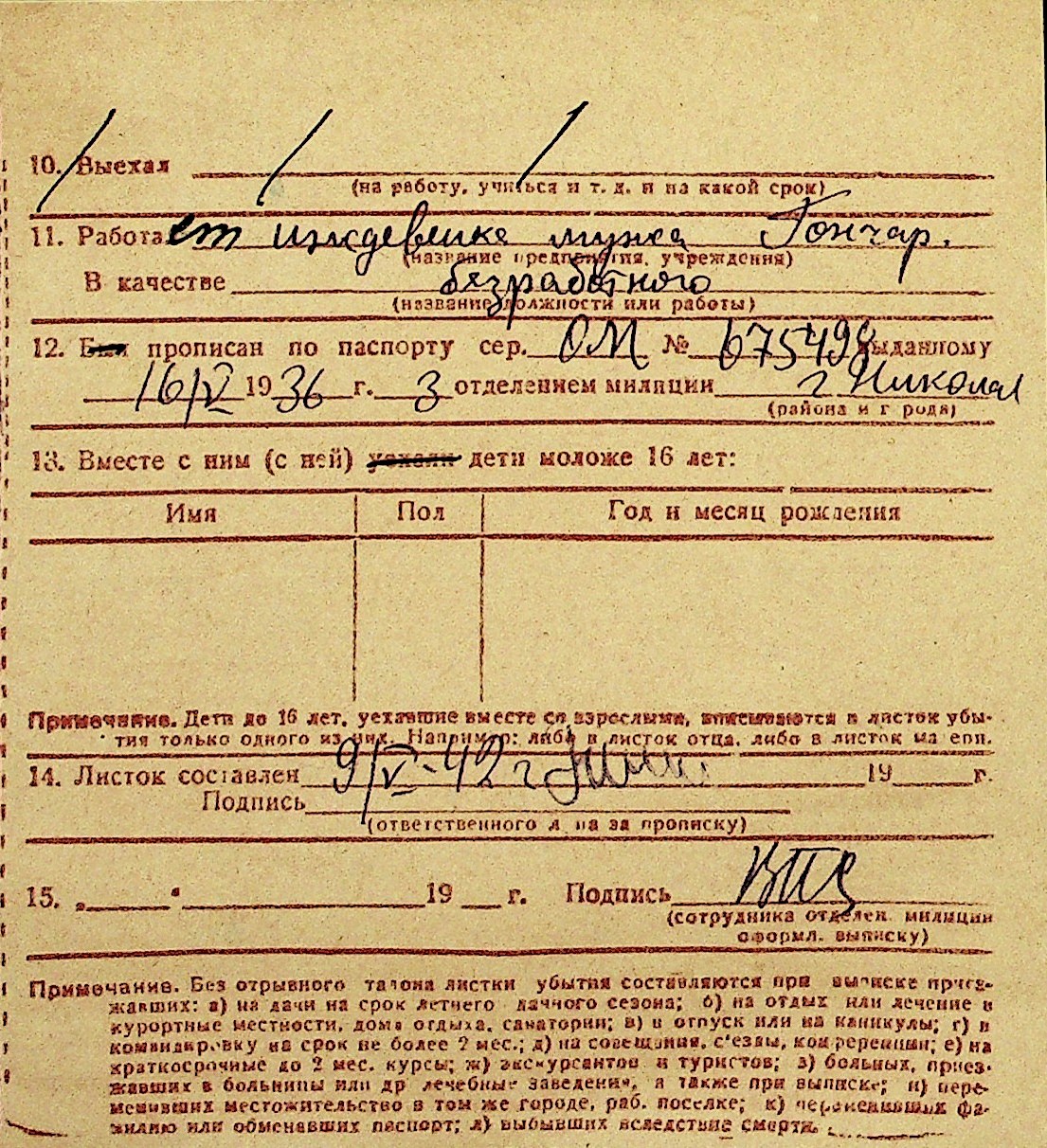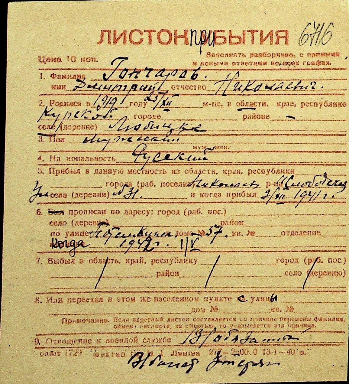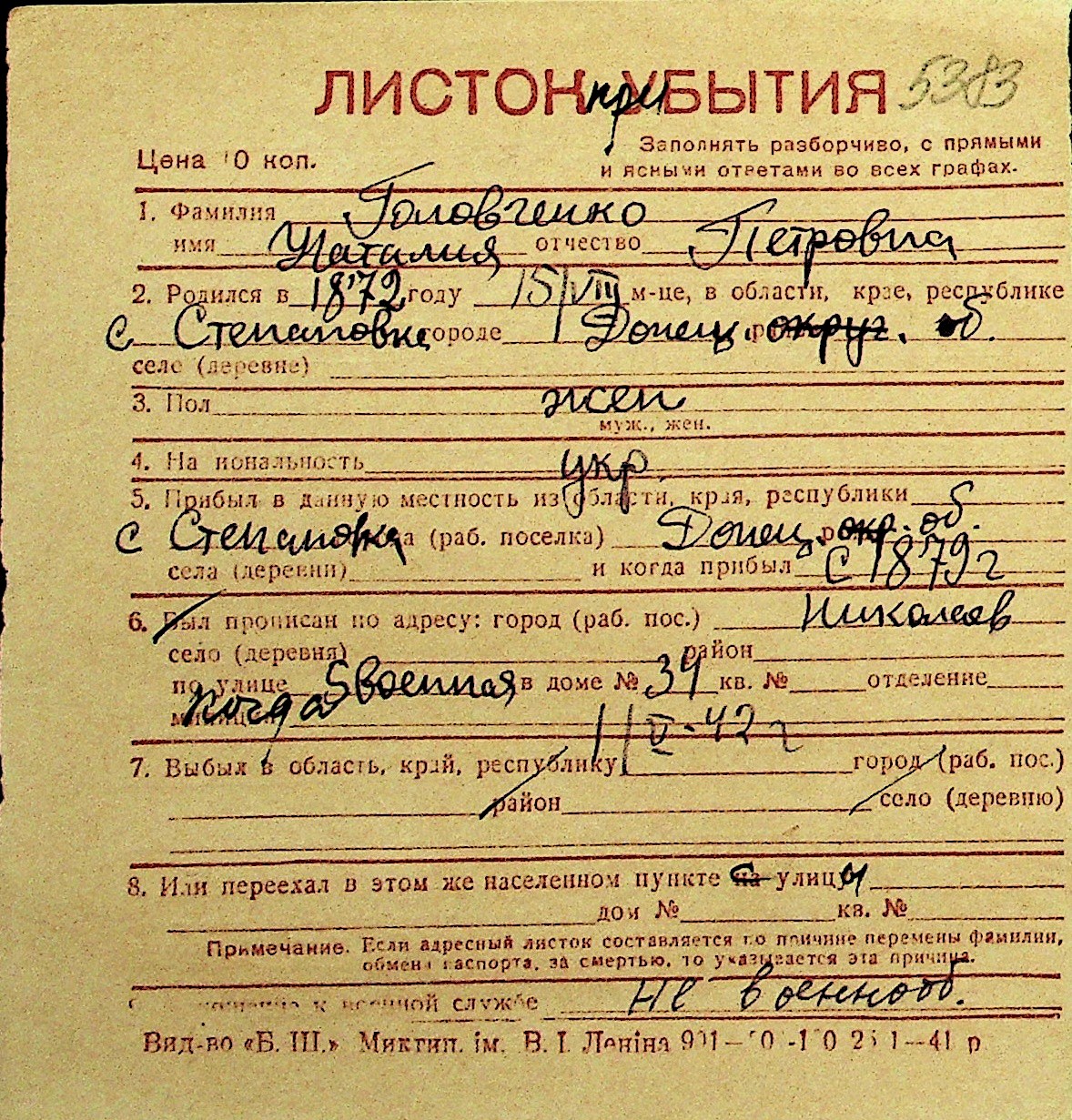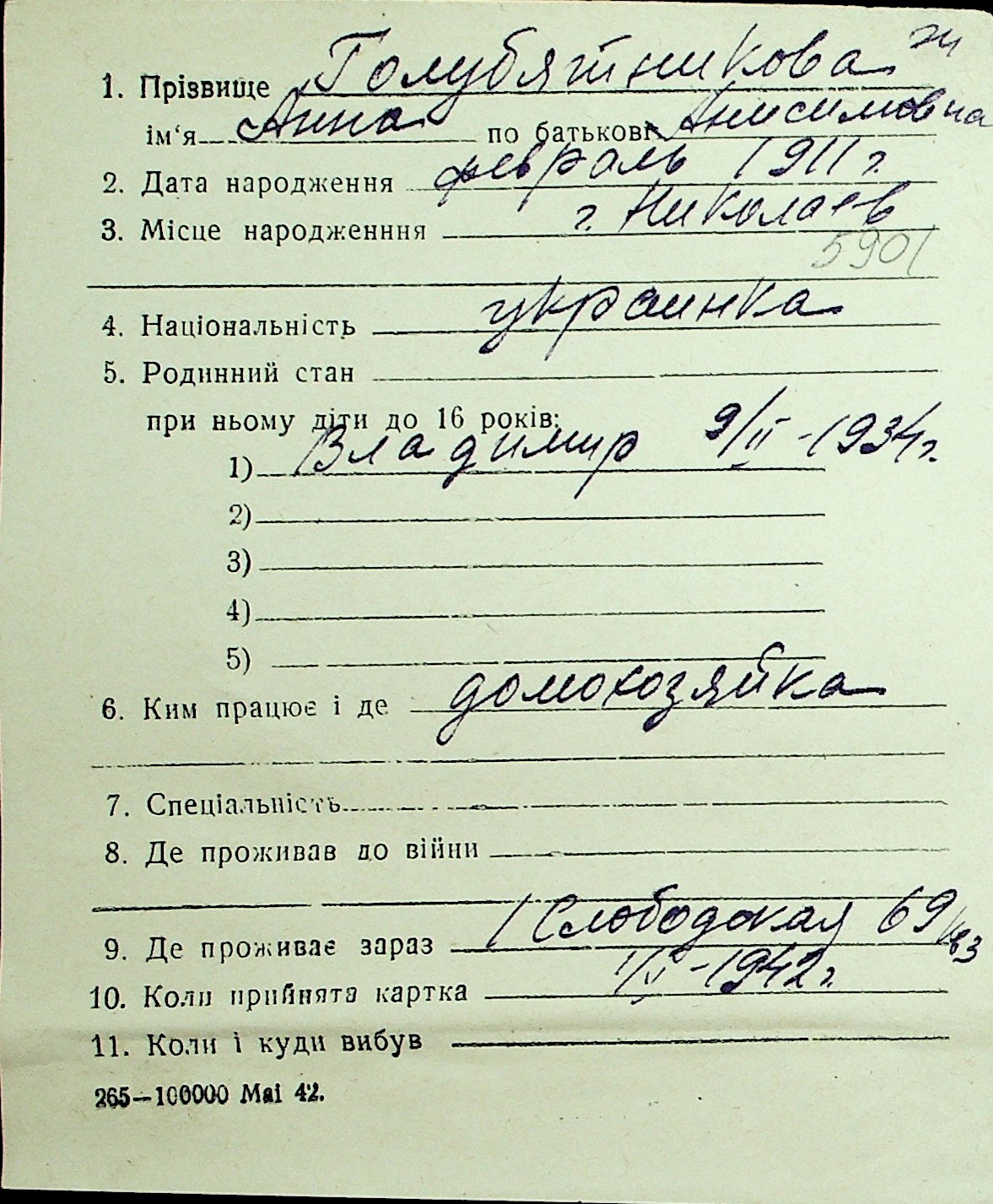 • • Перелік карток до фонду № Н-1016