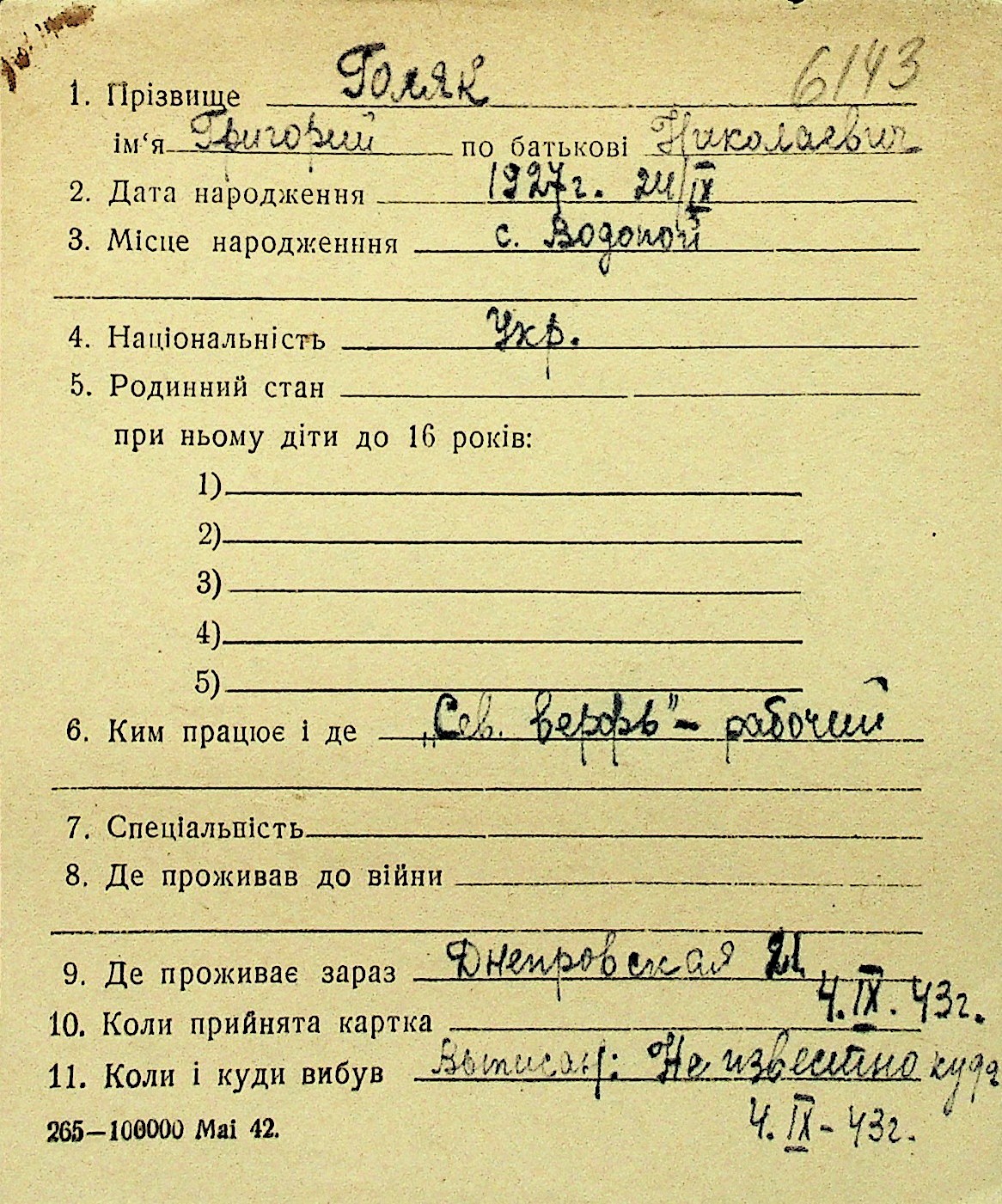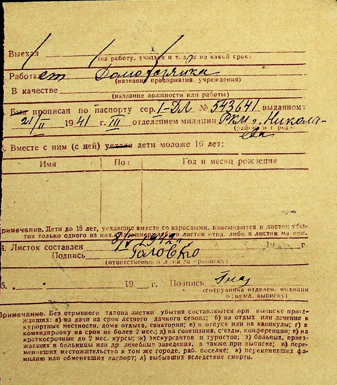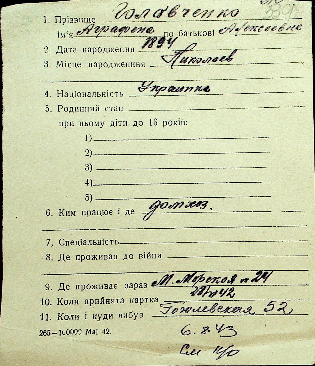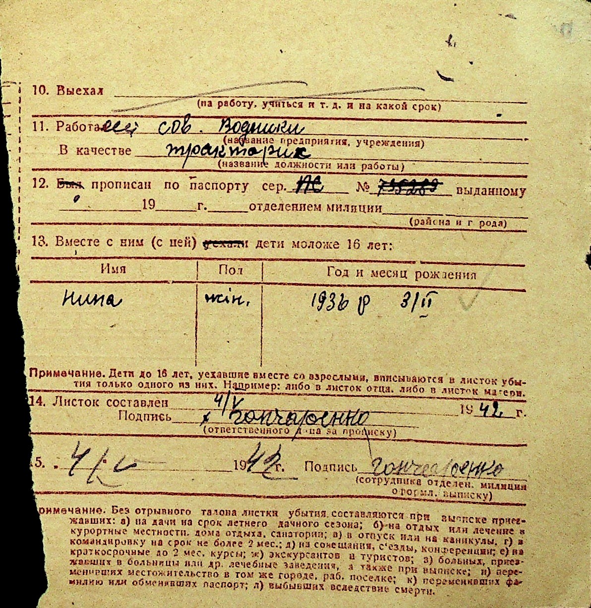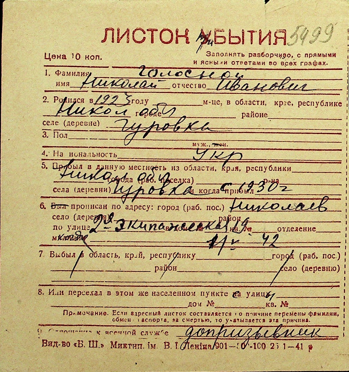 • • Перелік карток до фонду № Н-1016