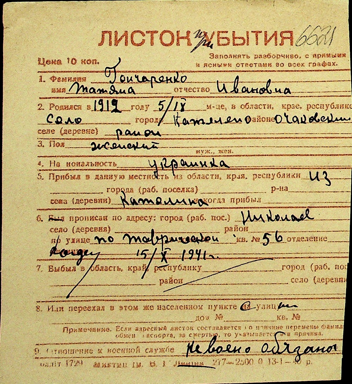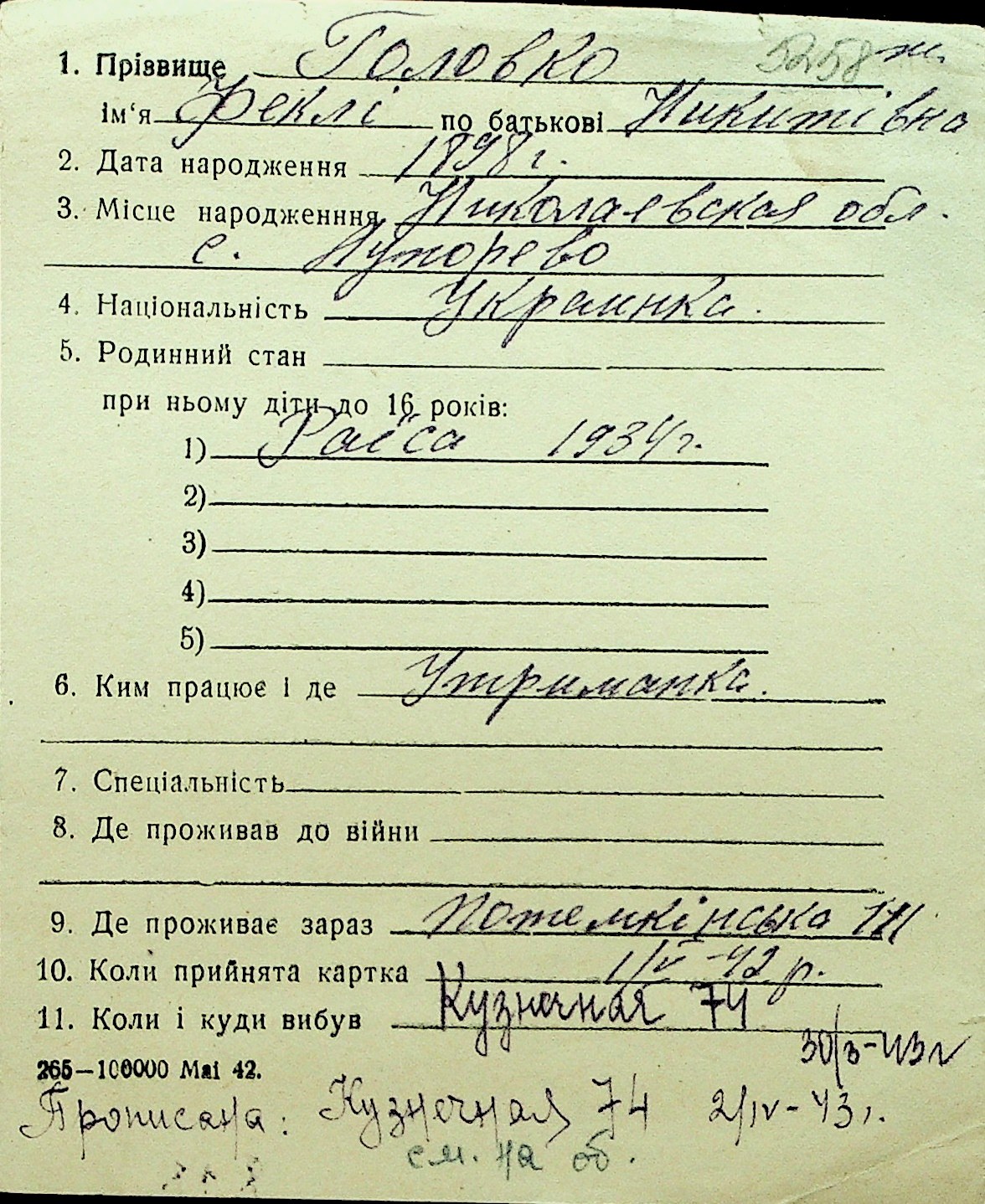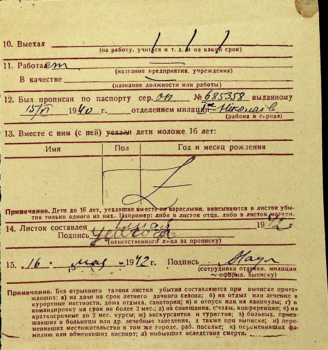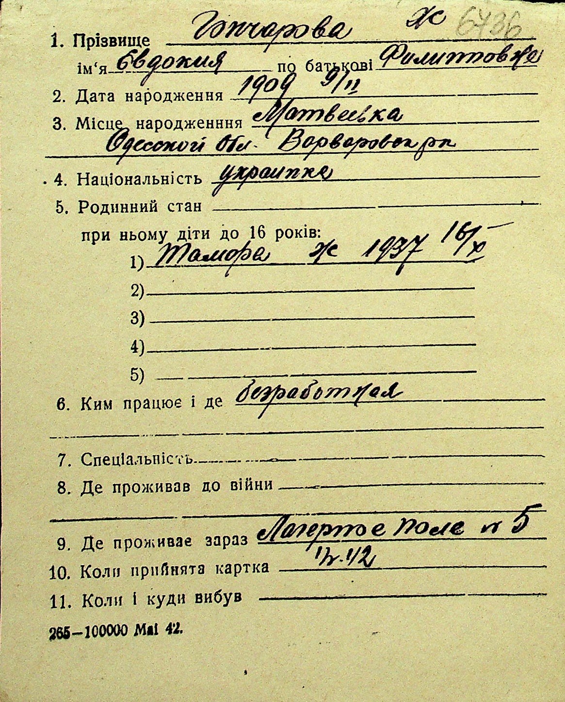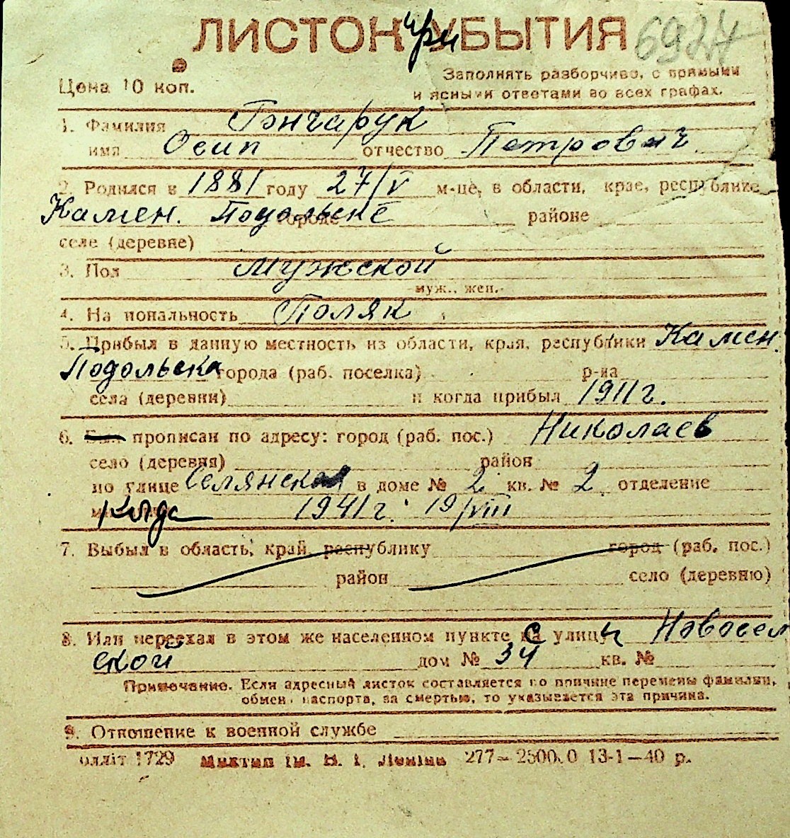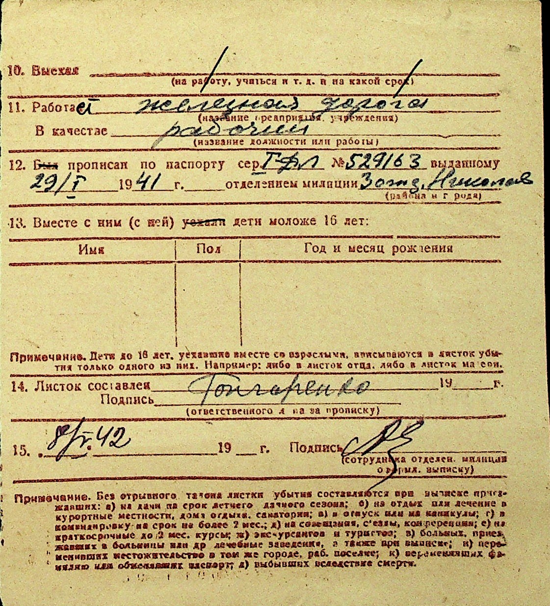 • • Перелік карток до фонду № Н-1016