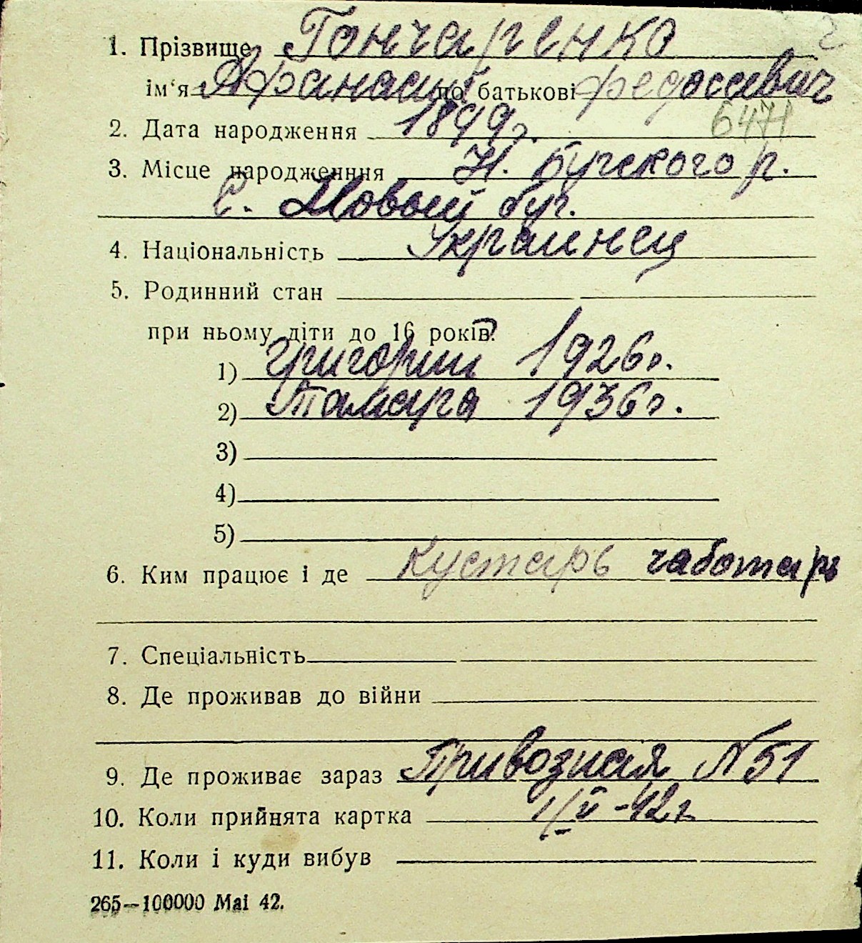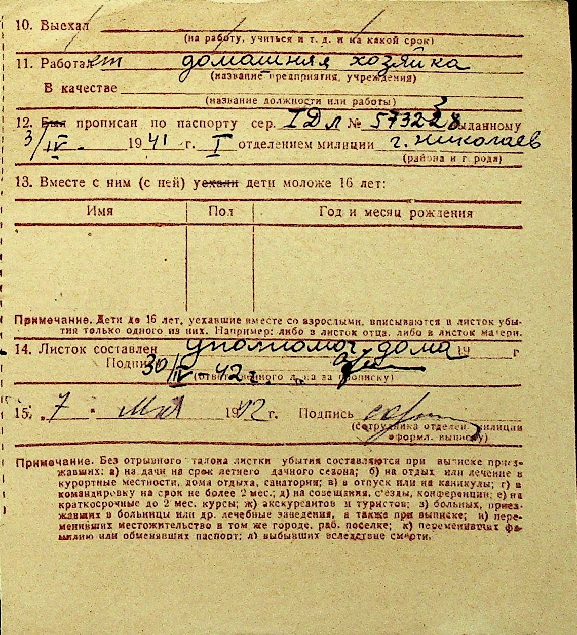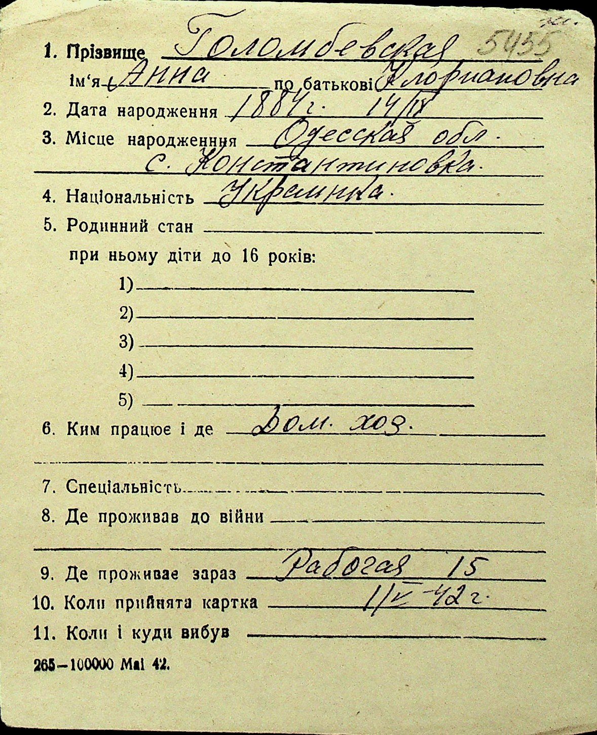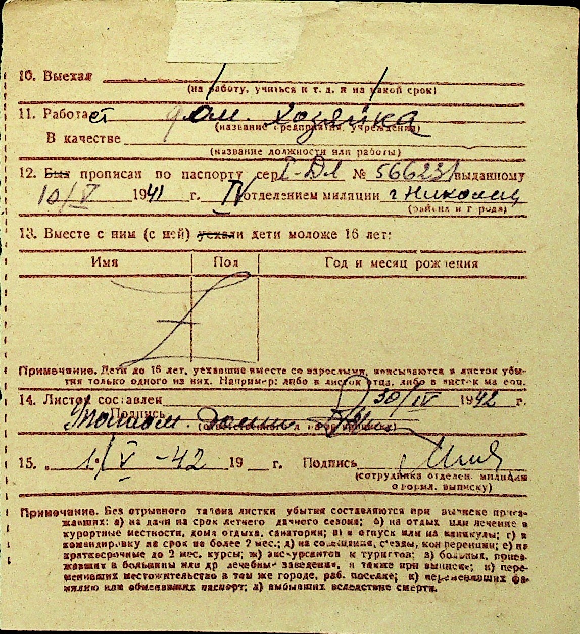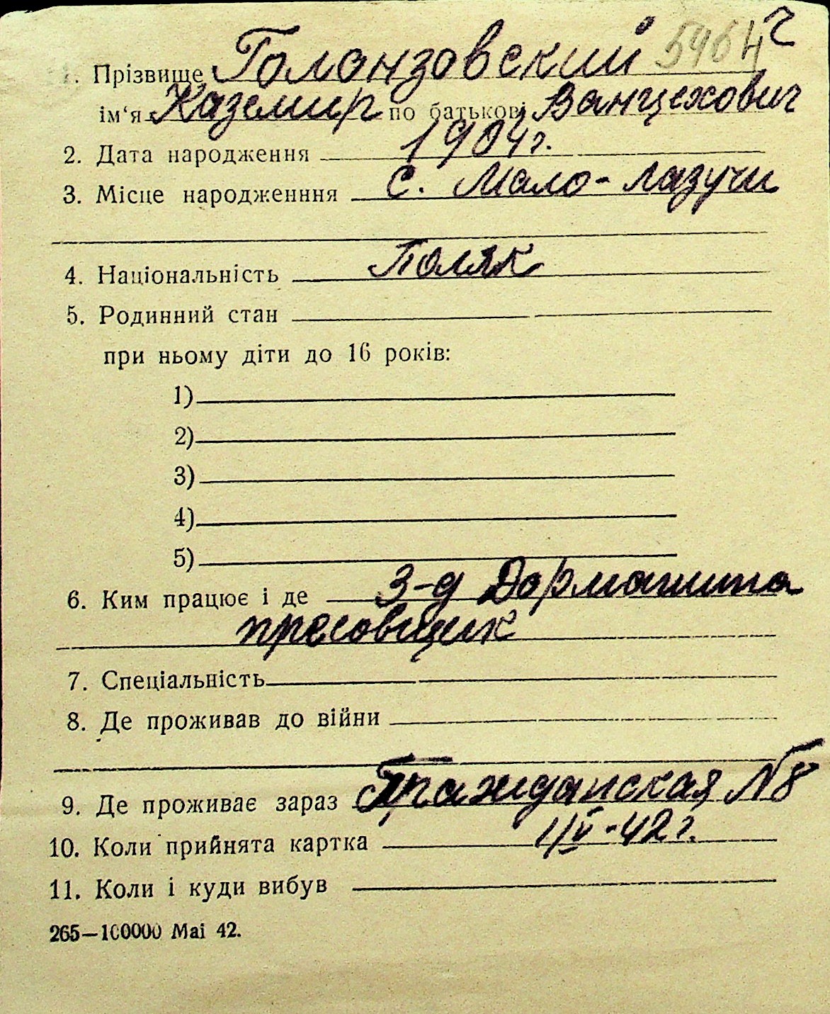 • • Перелік карток до фонду № Н-1016