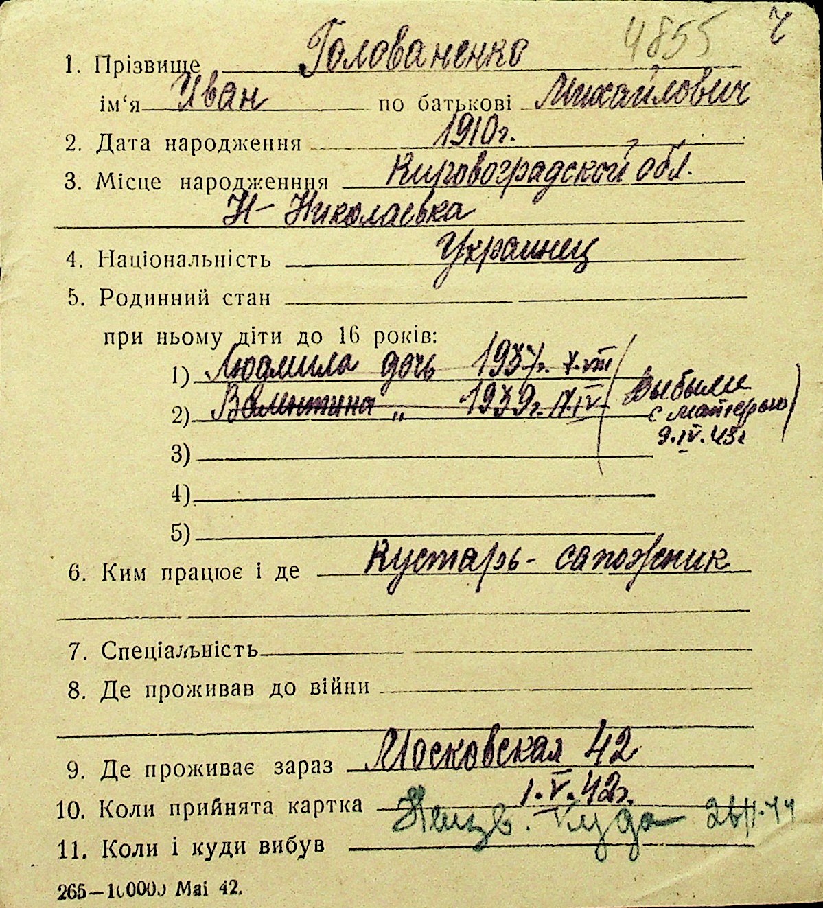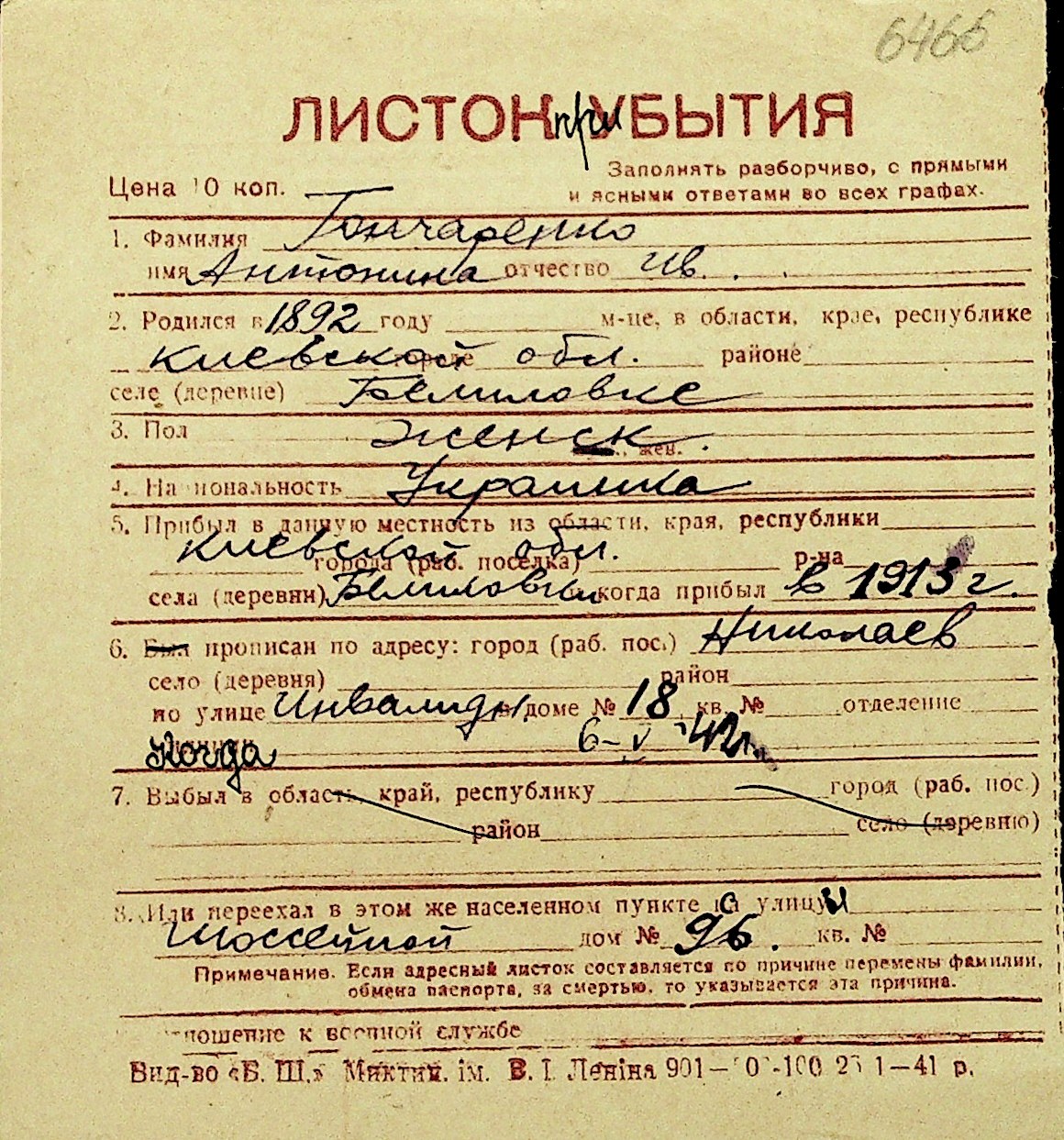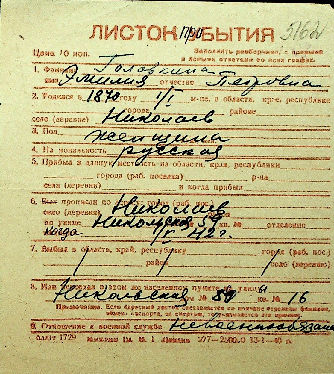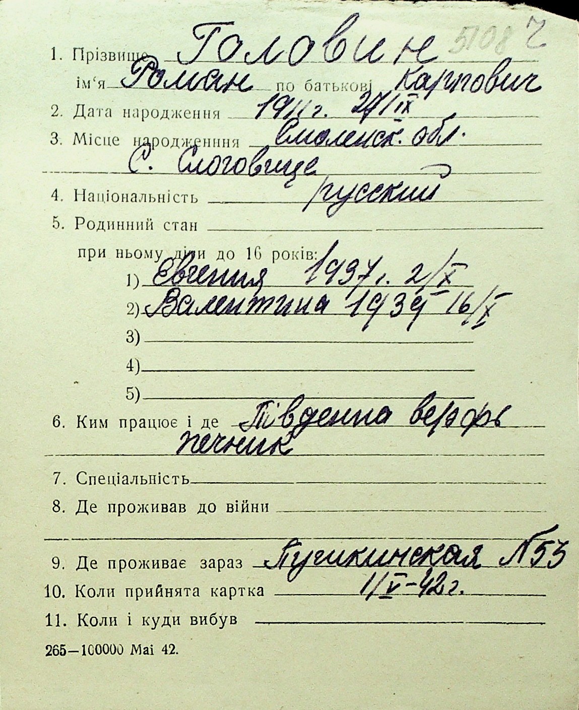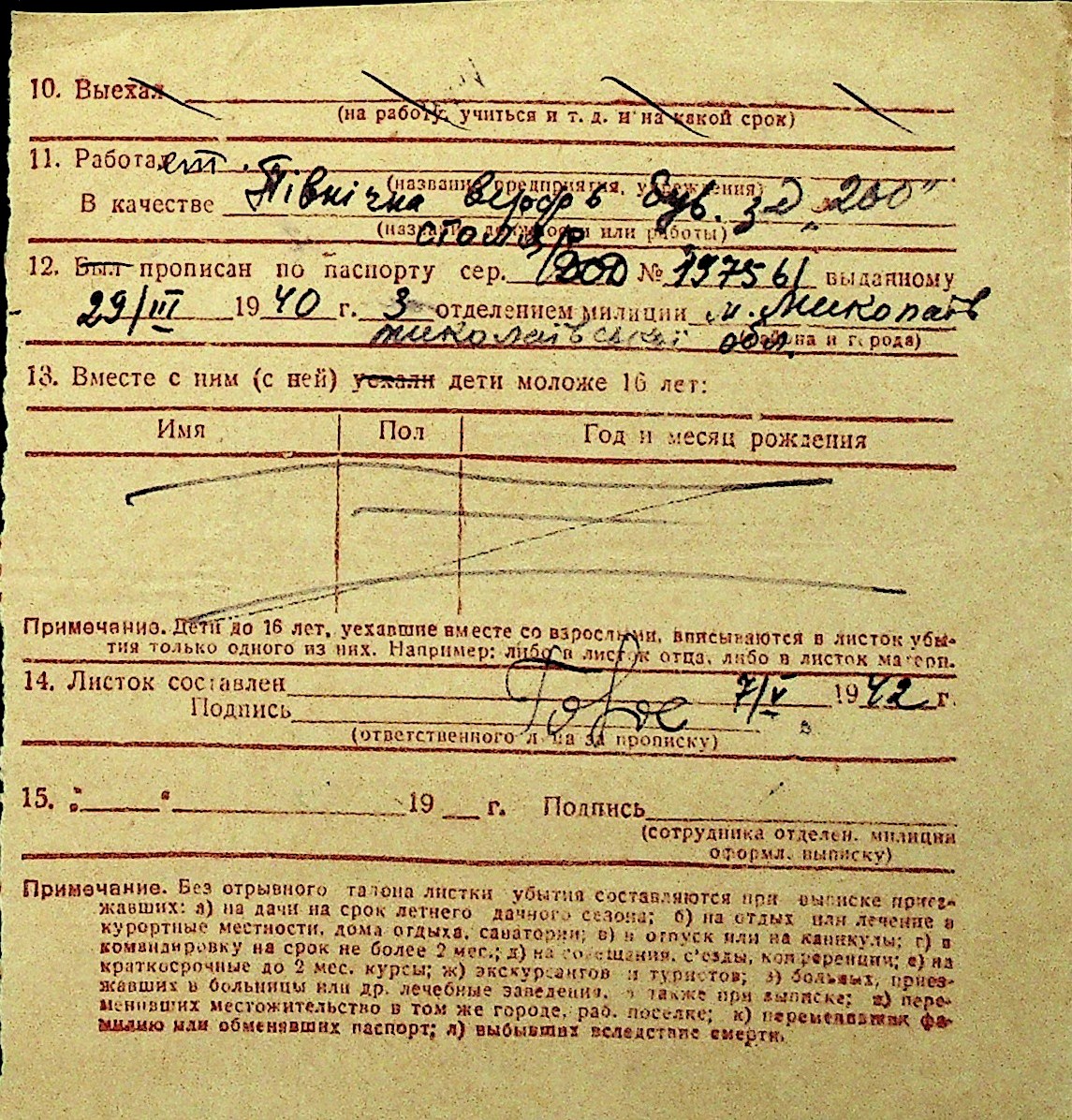 • • Перелік карток до фонду № Н-1016