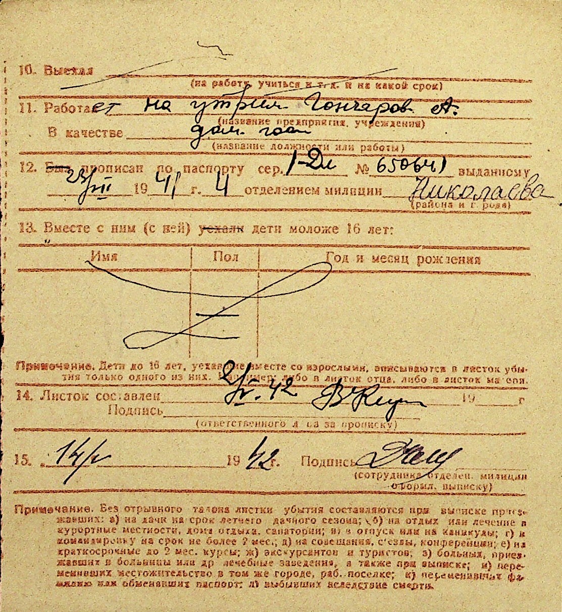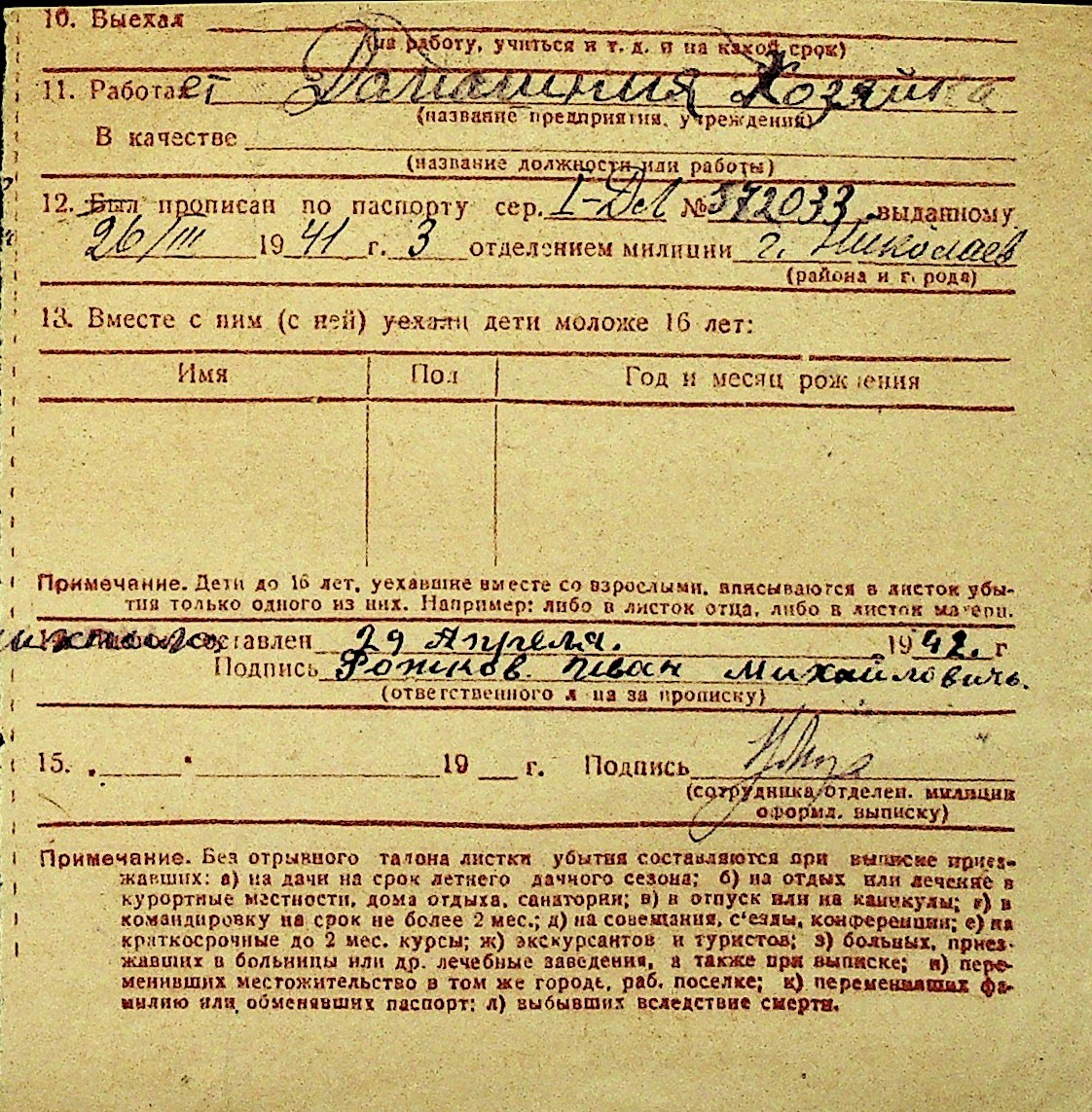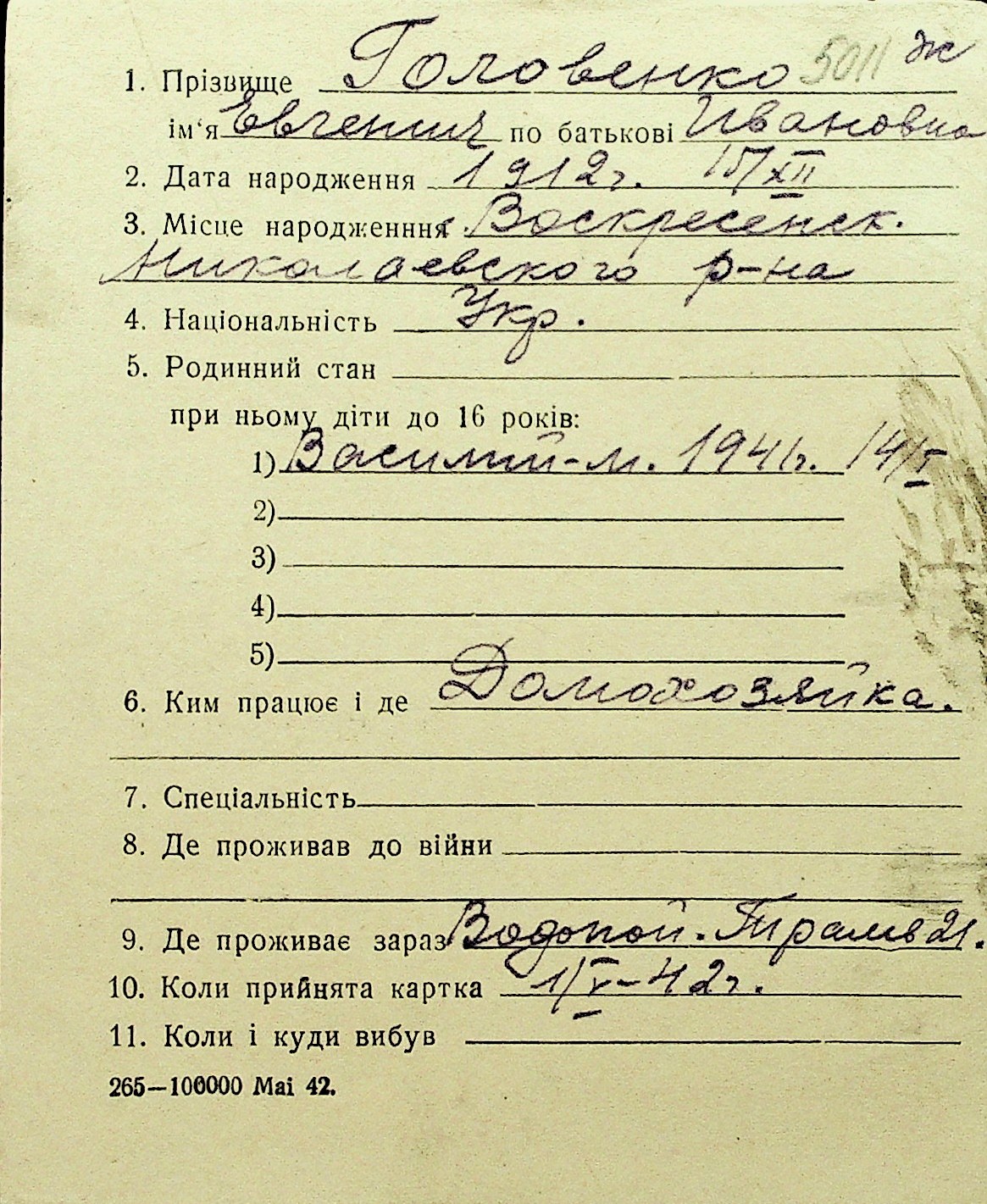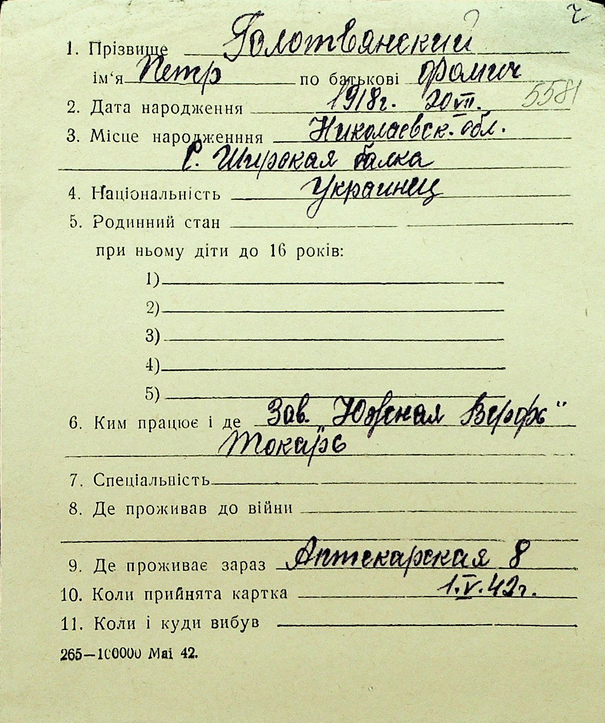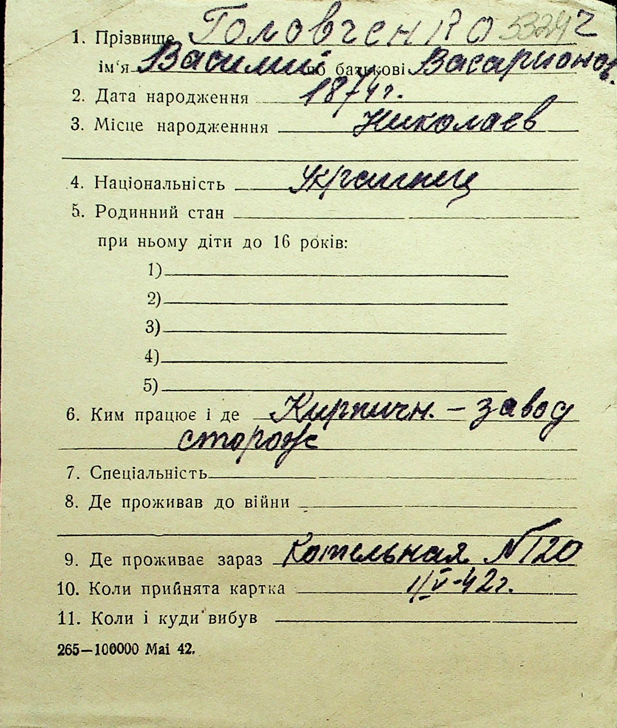 • • Перелік карток до фонду № Н-1016