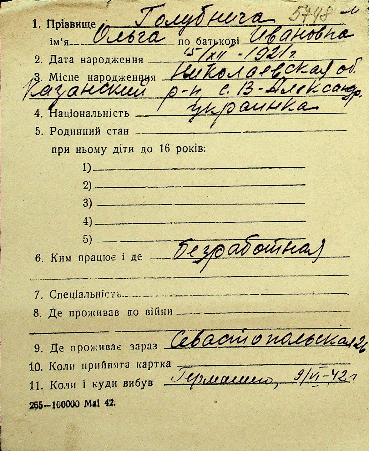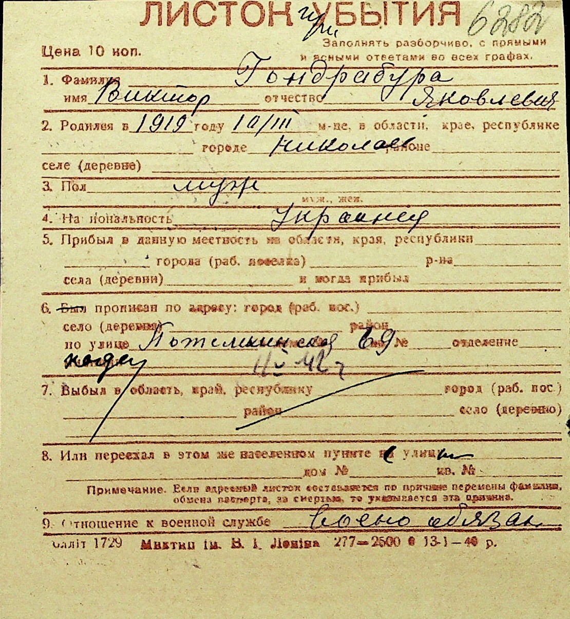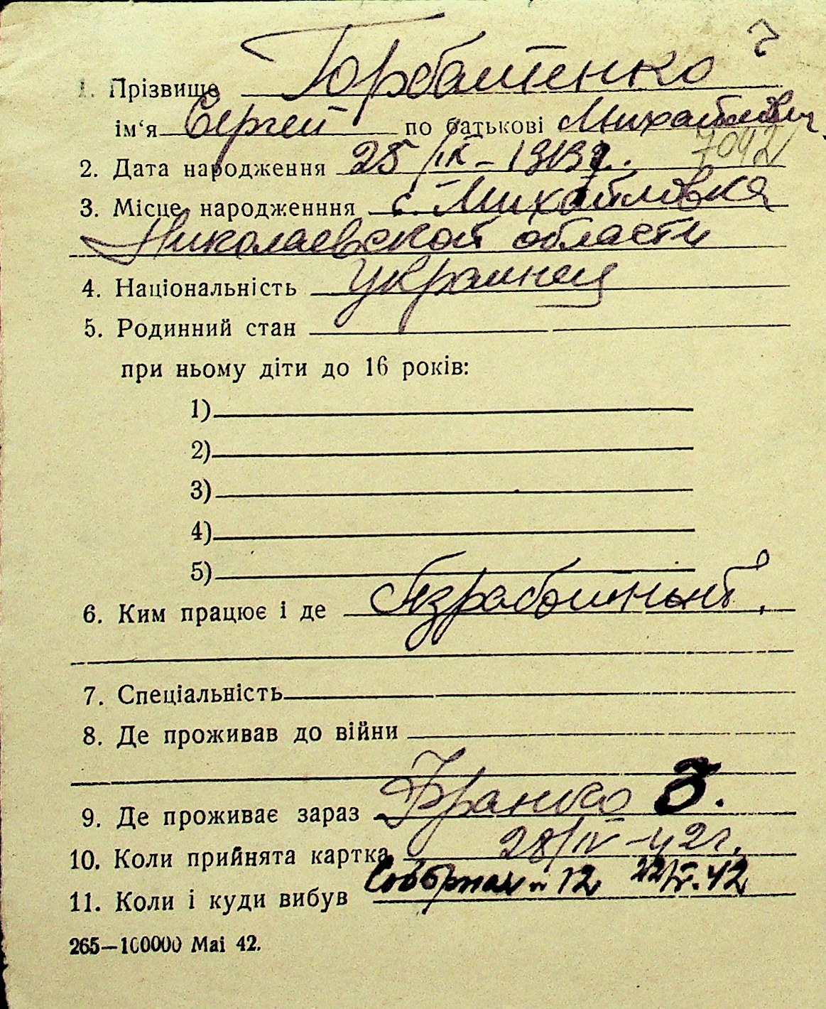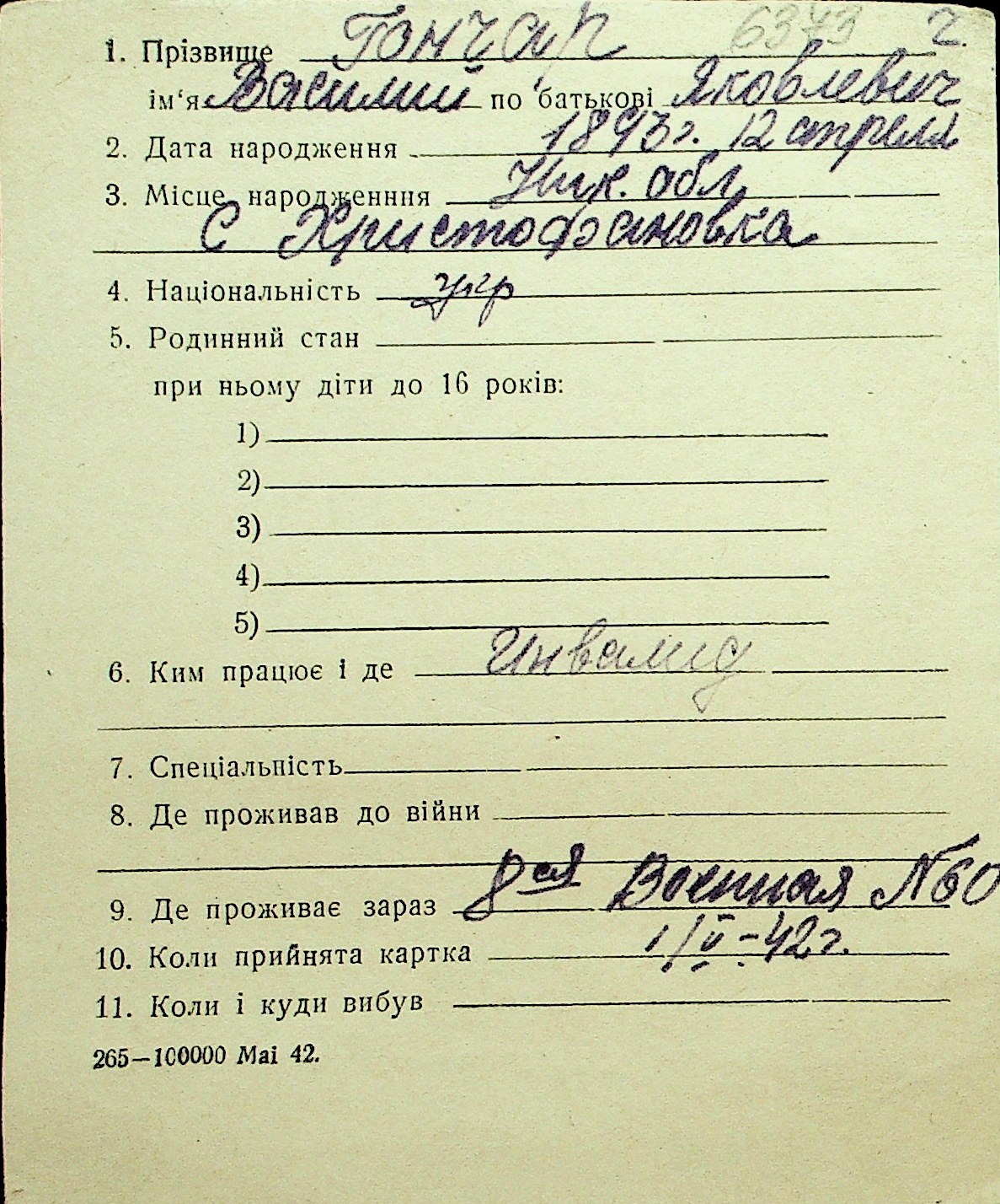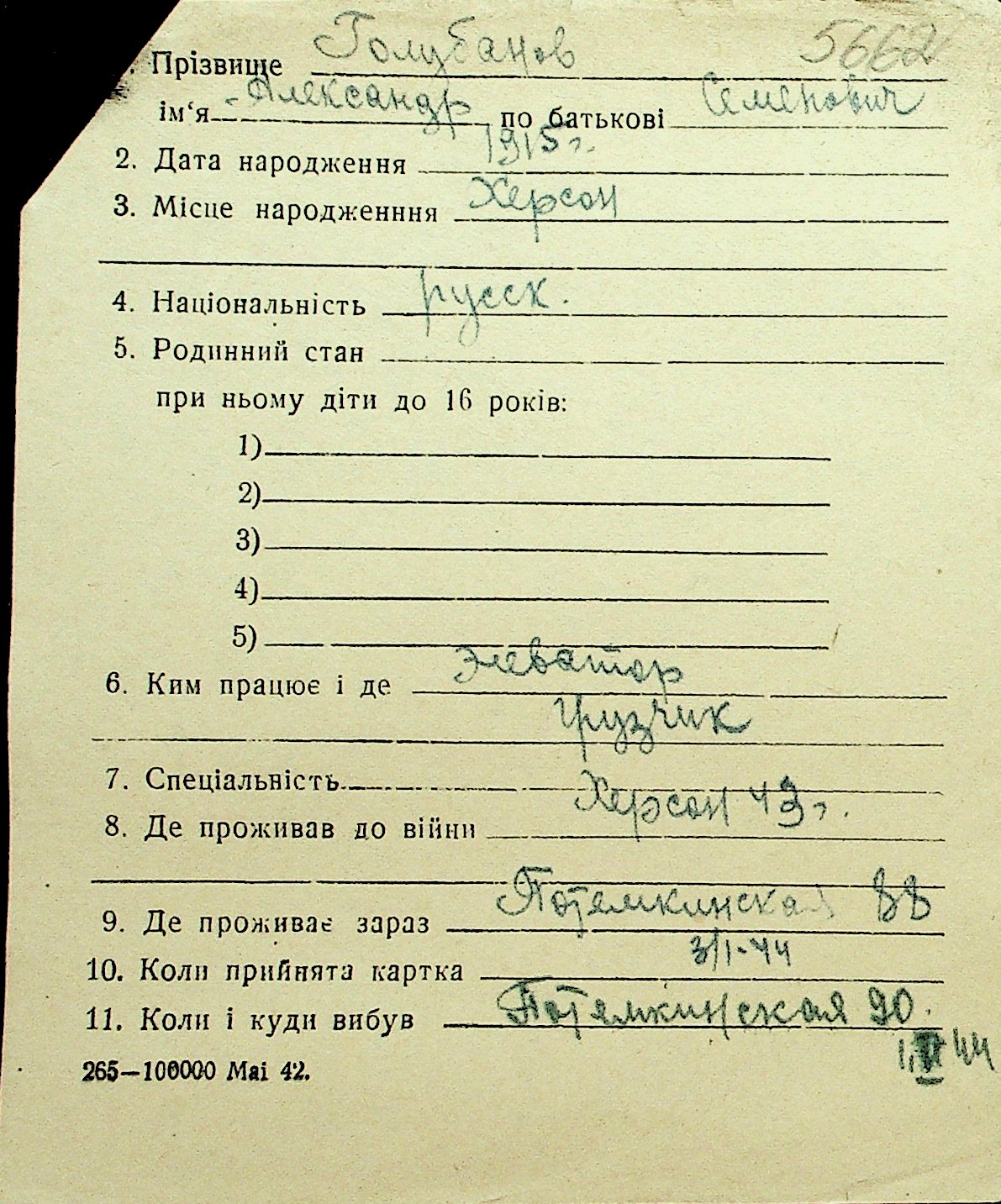 • • Перелік карток до фонду № Н-1016