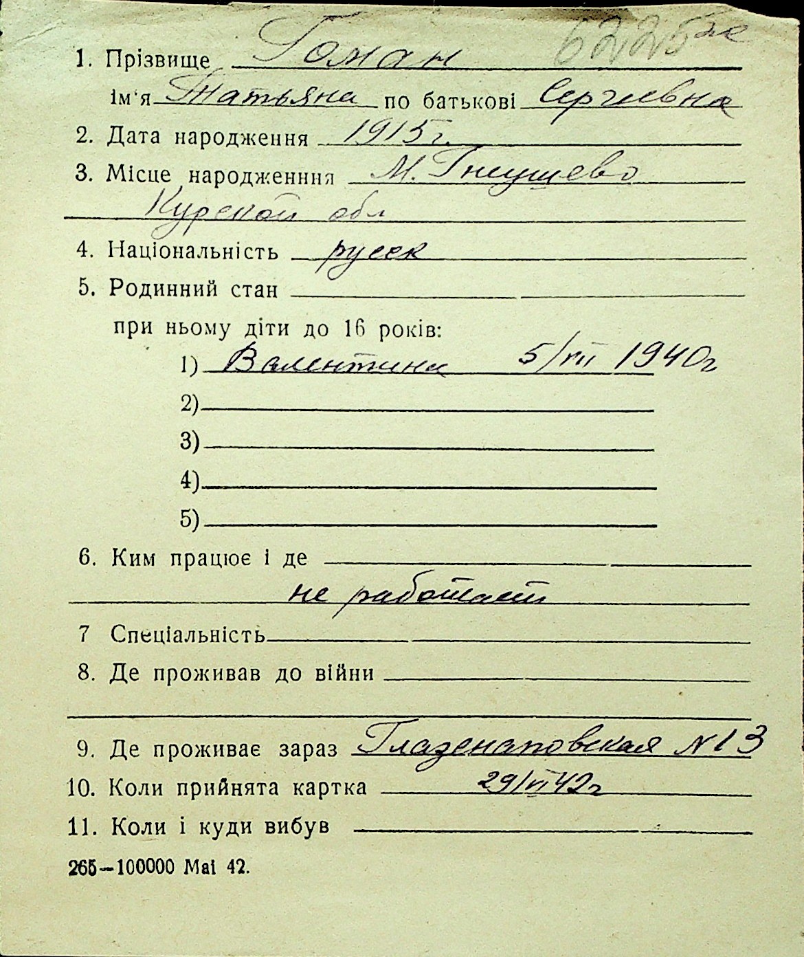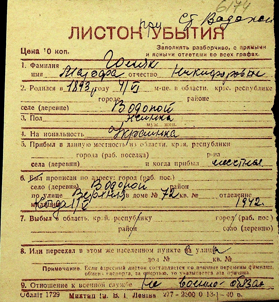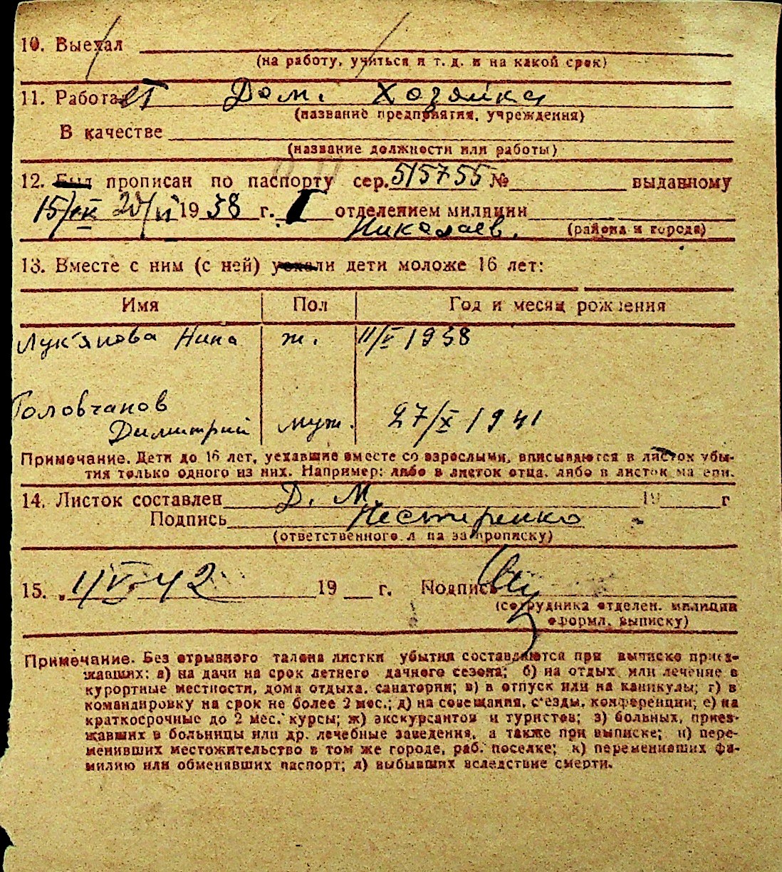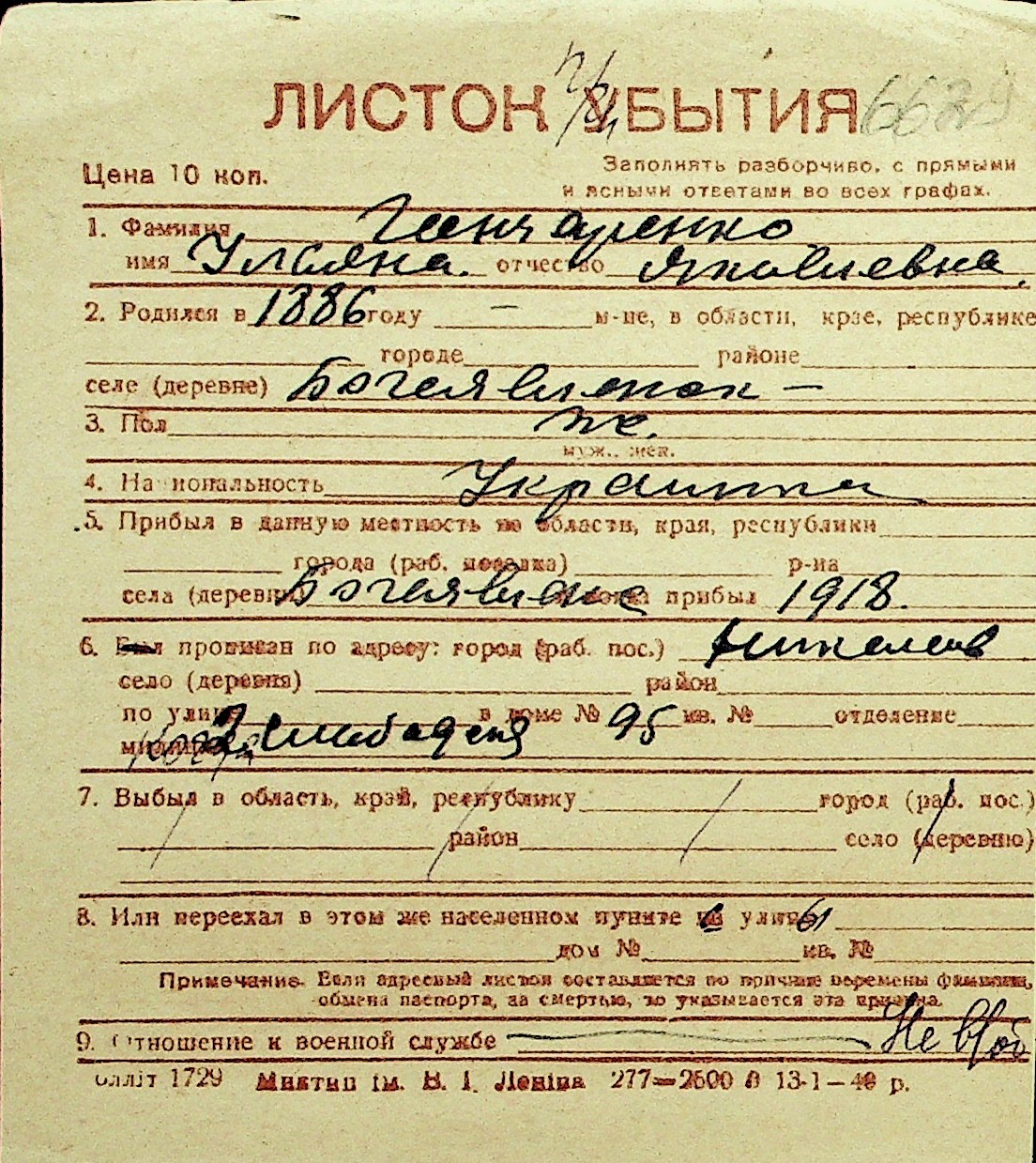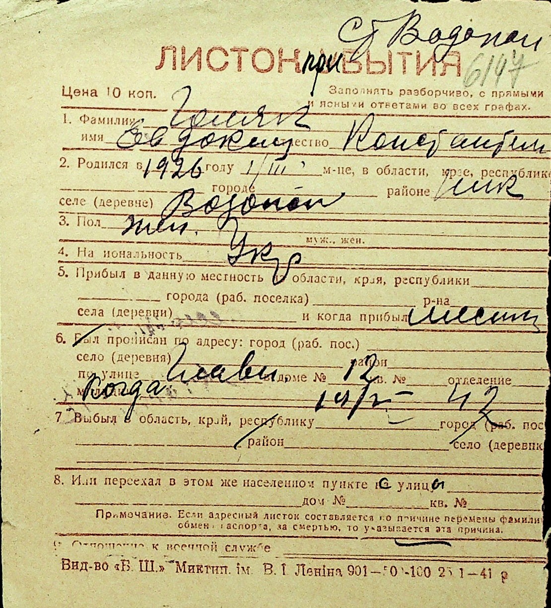 • • Перелік карток до фонду № Н-1016