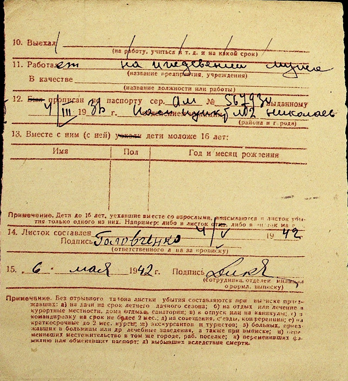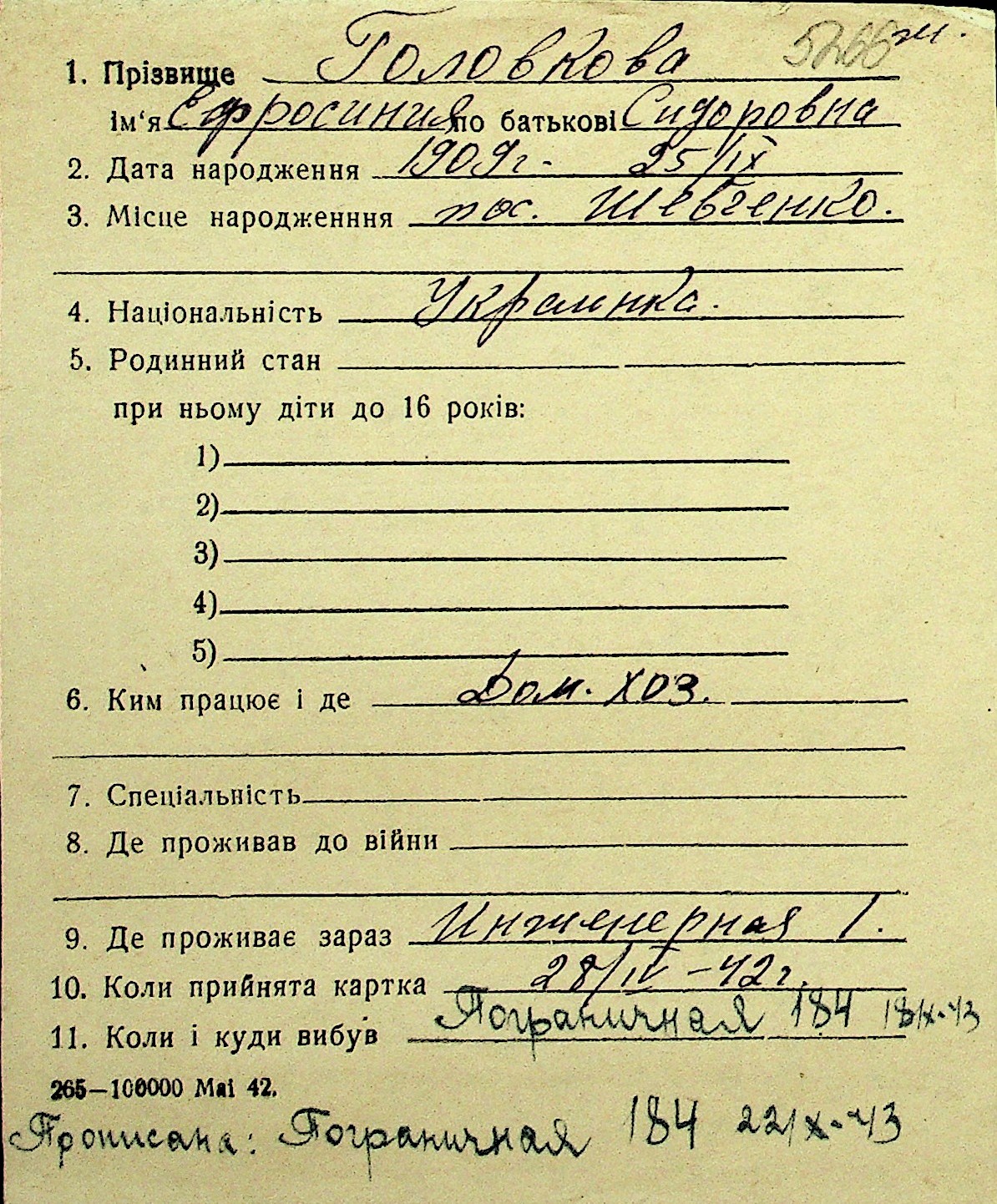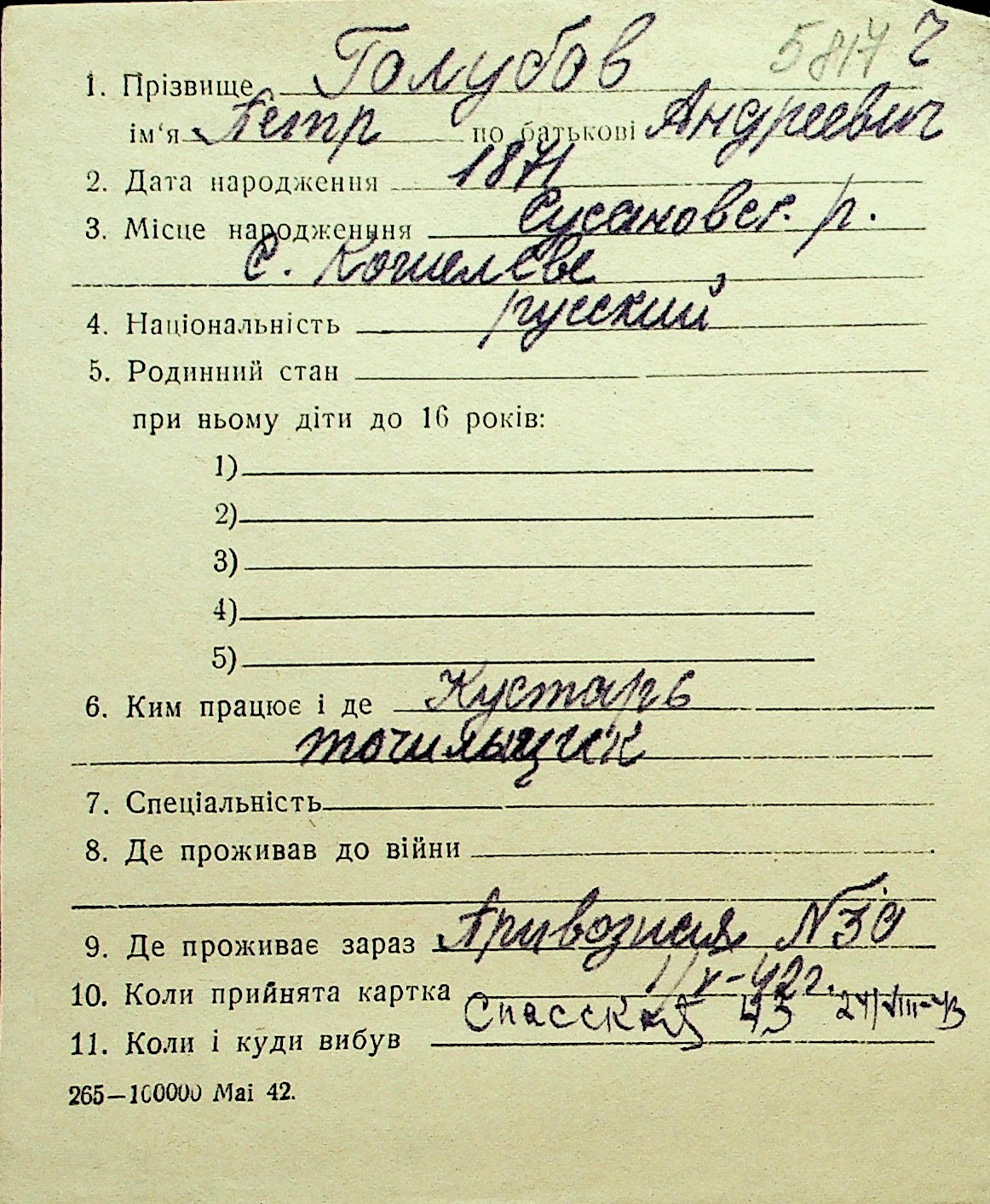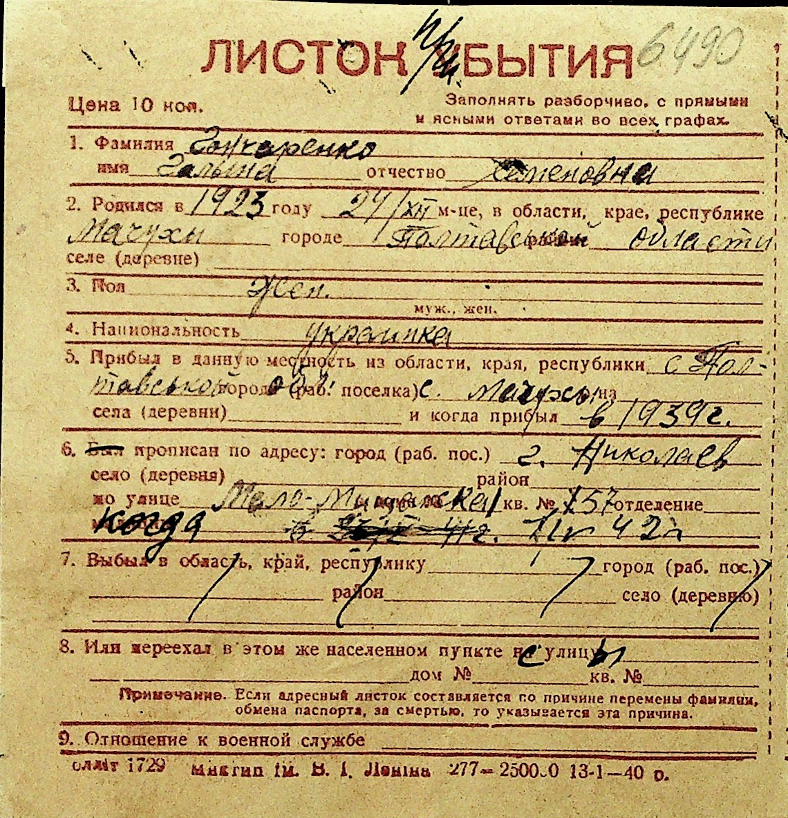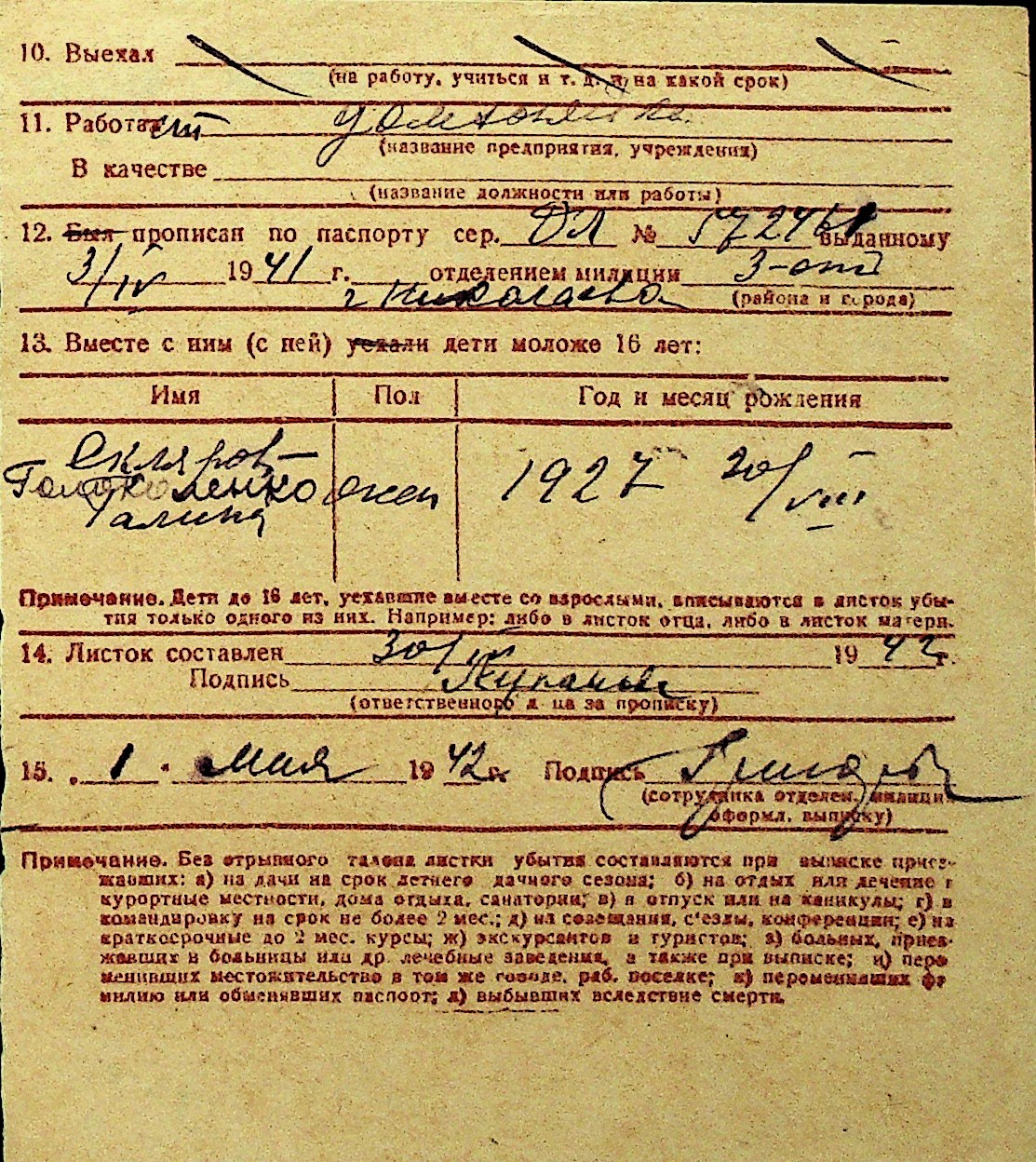 • • Перелік карток до фонду № Н-1016