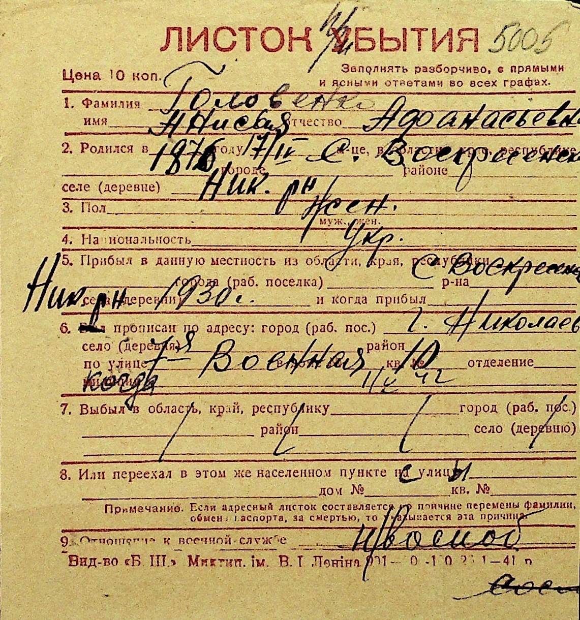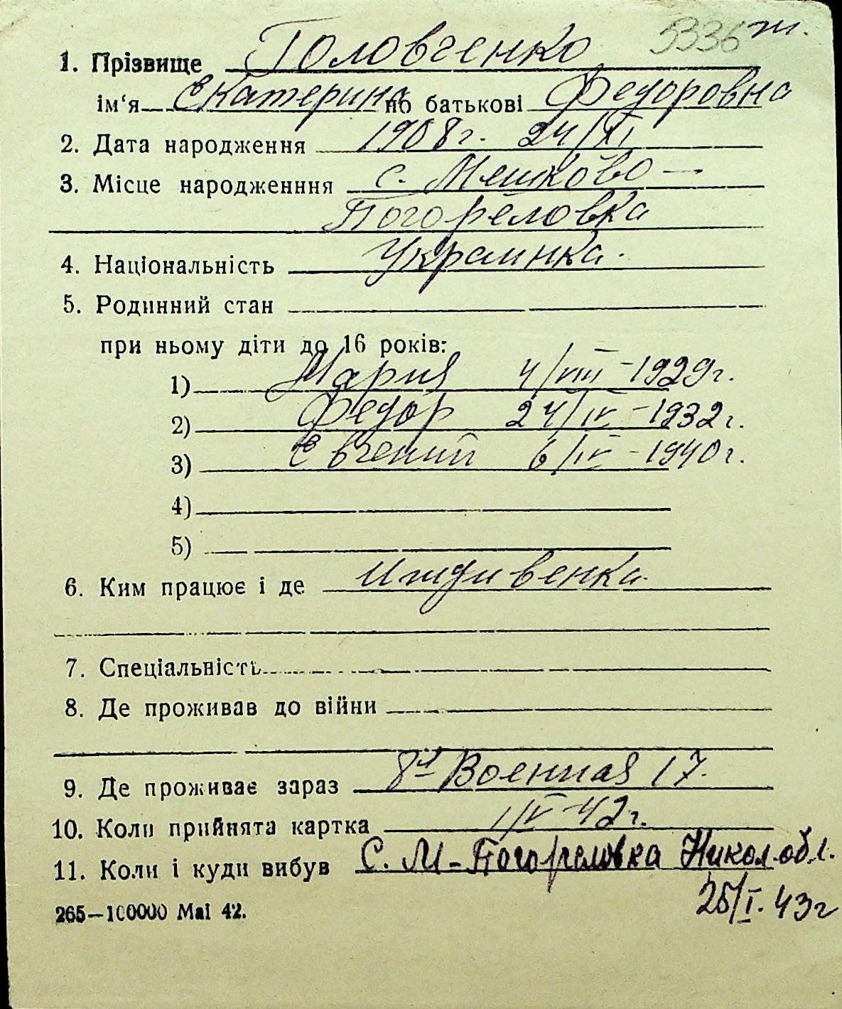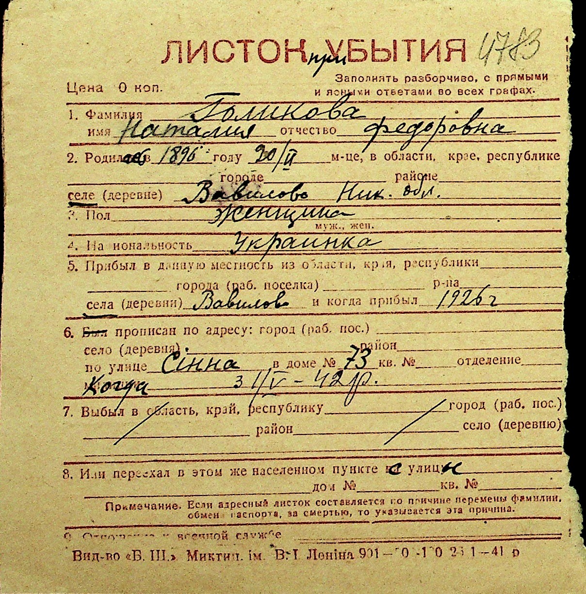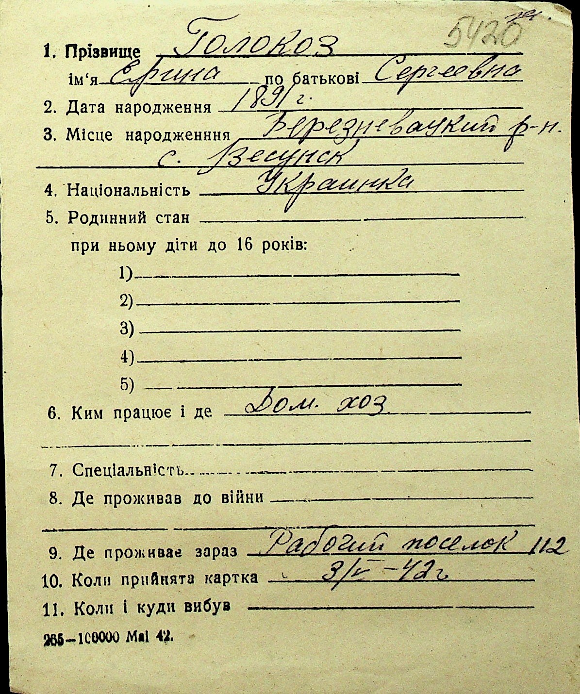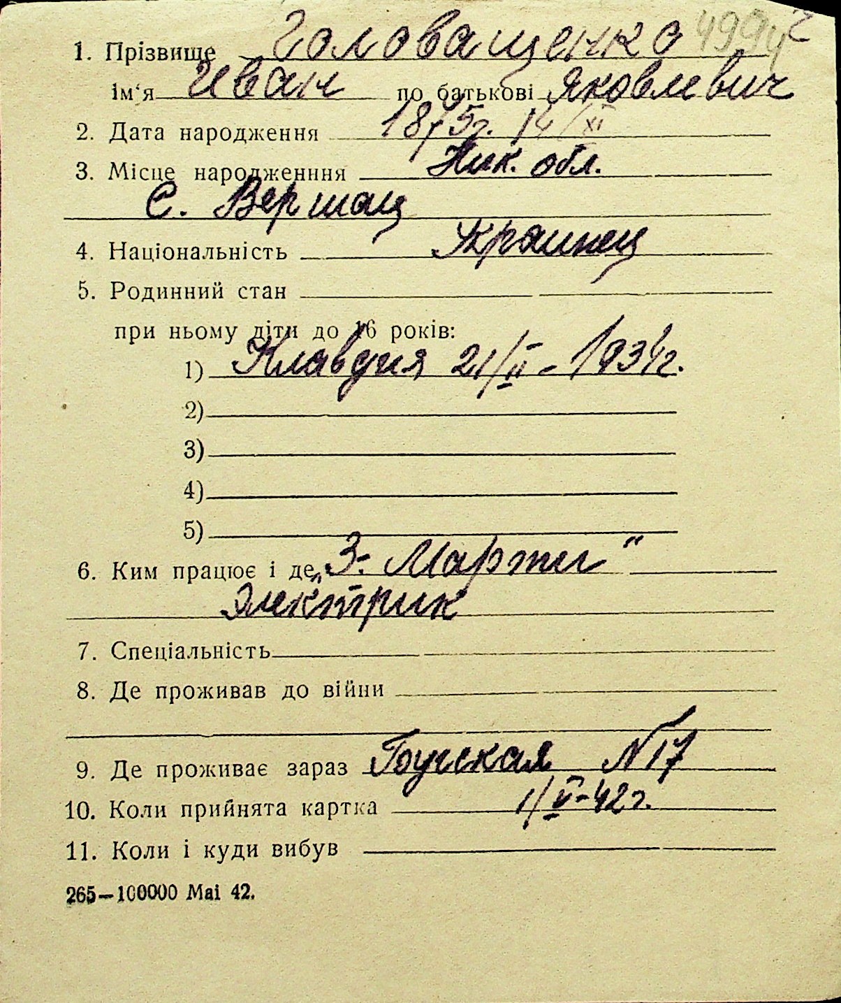 • • Перелік карток до фонду № Н-1016